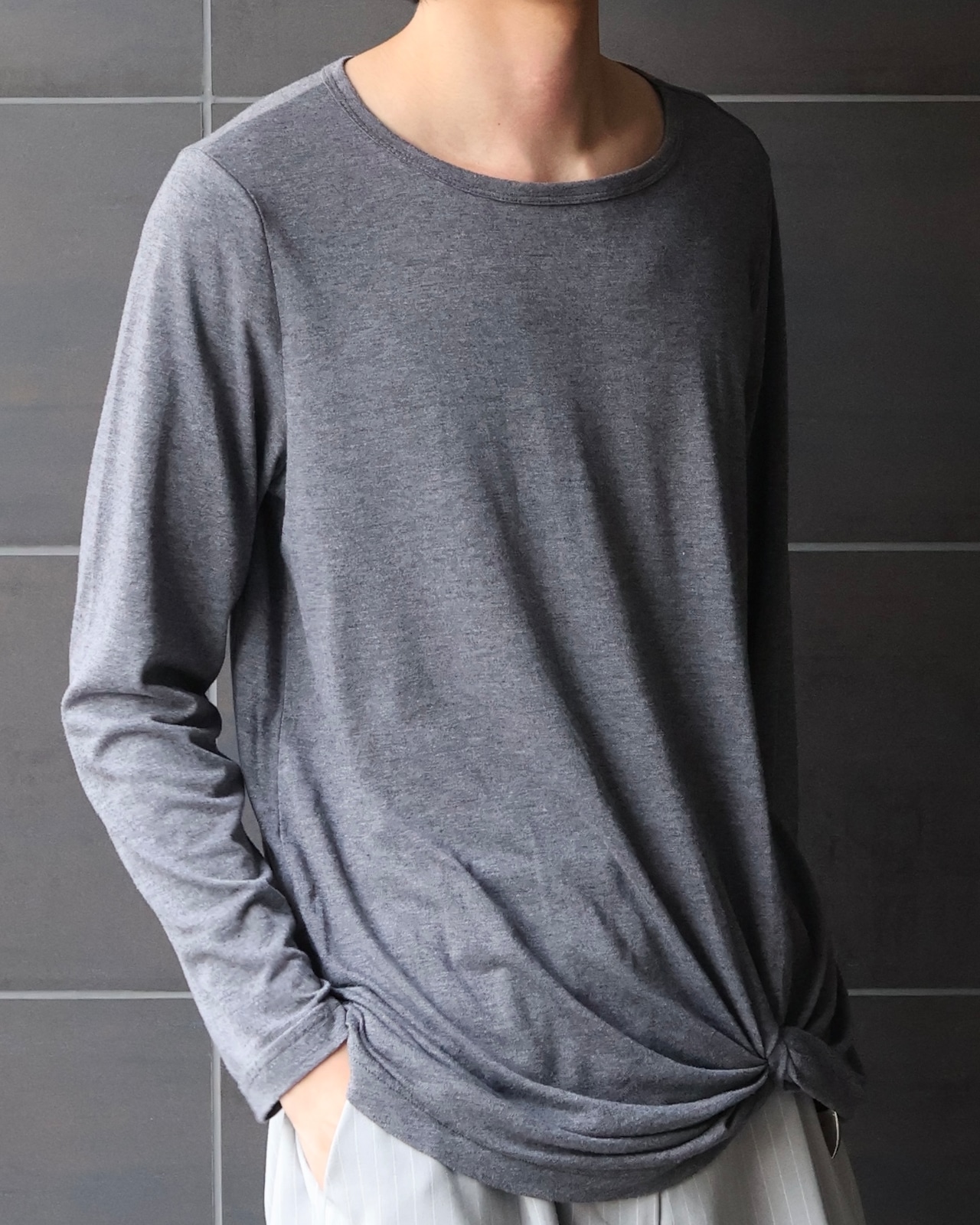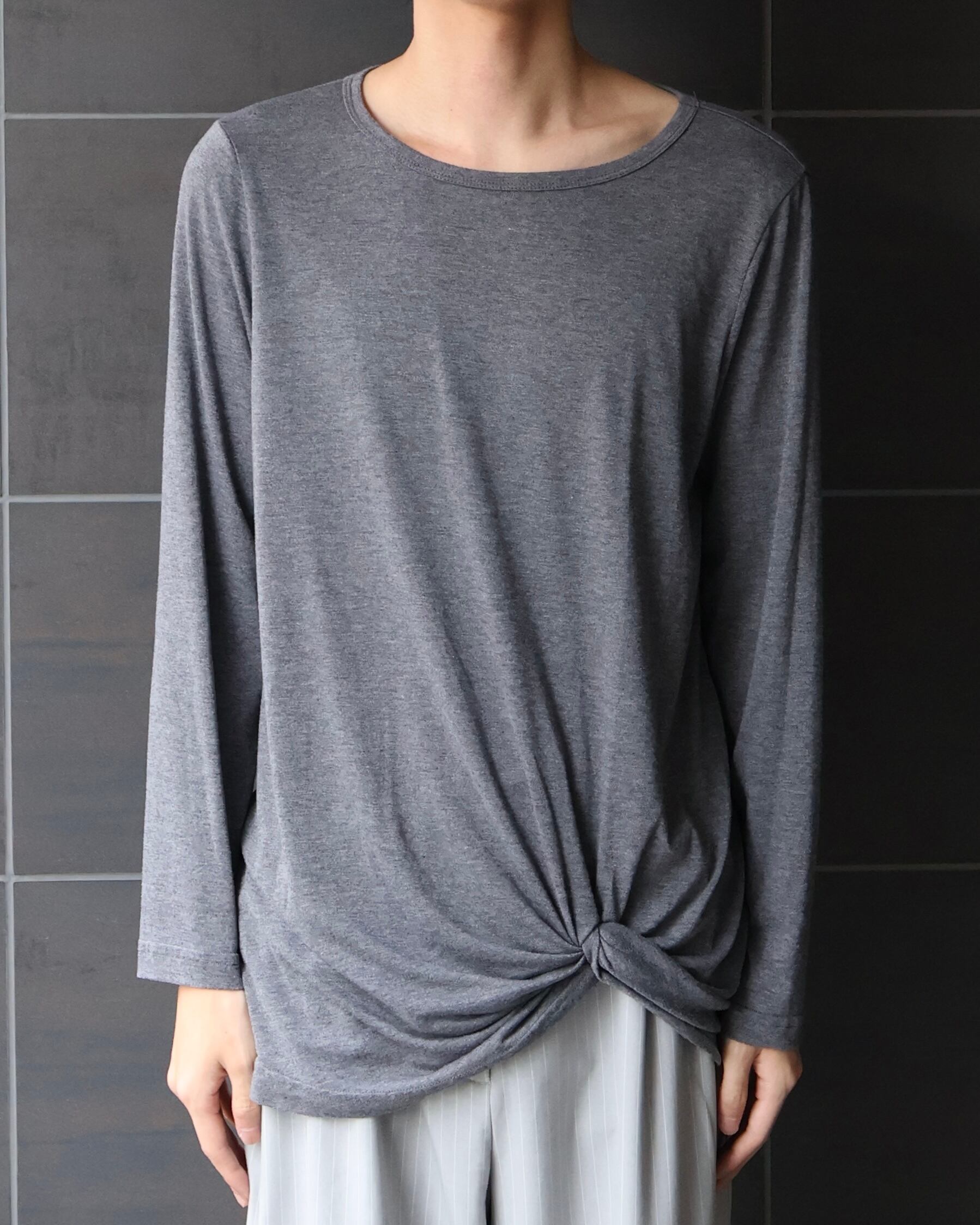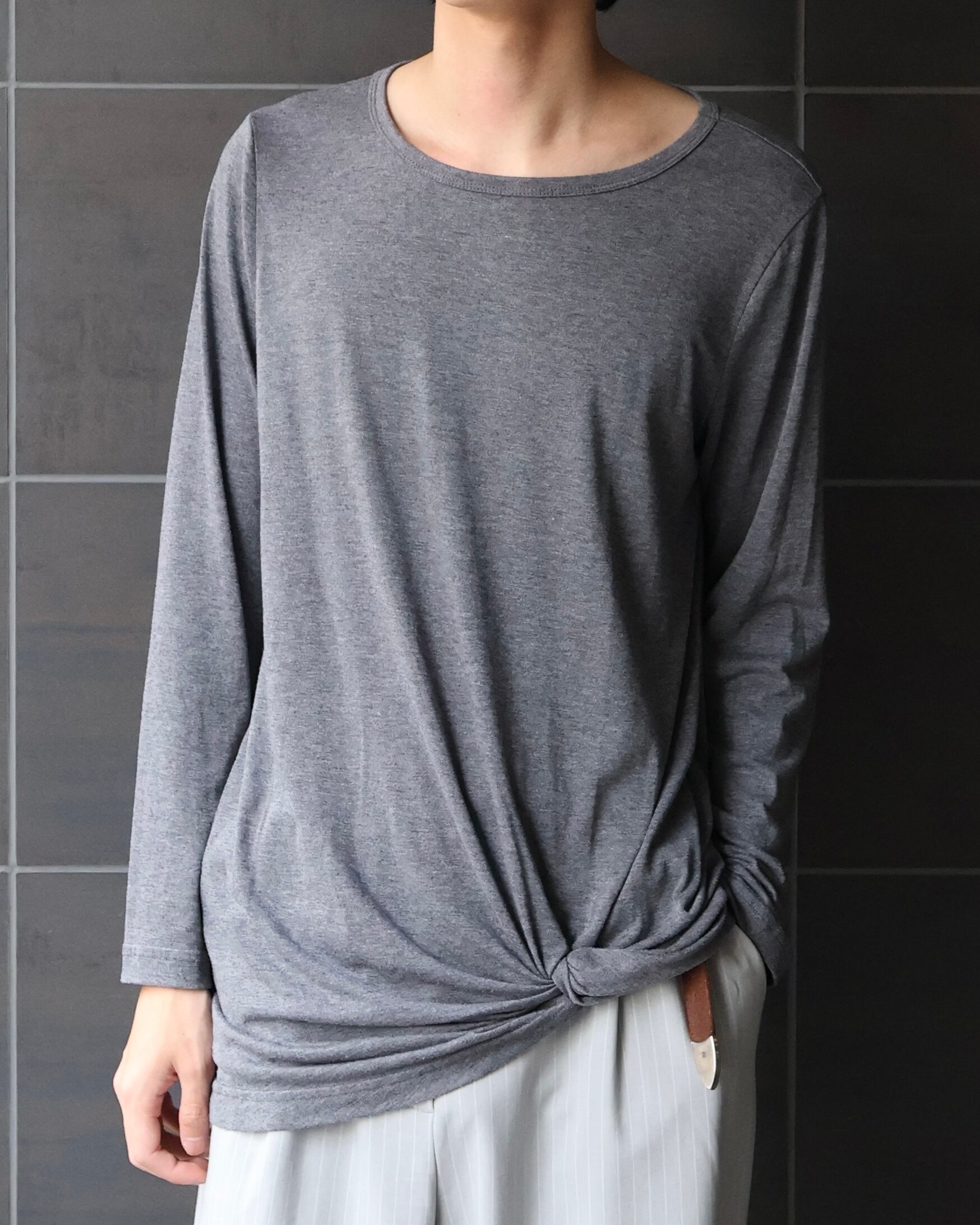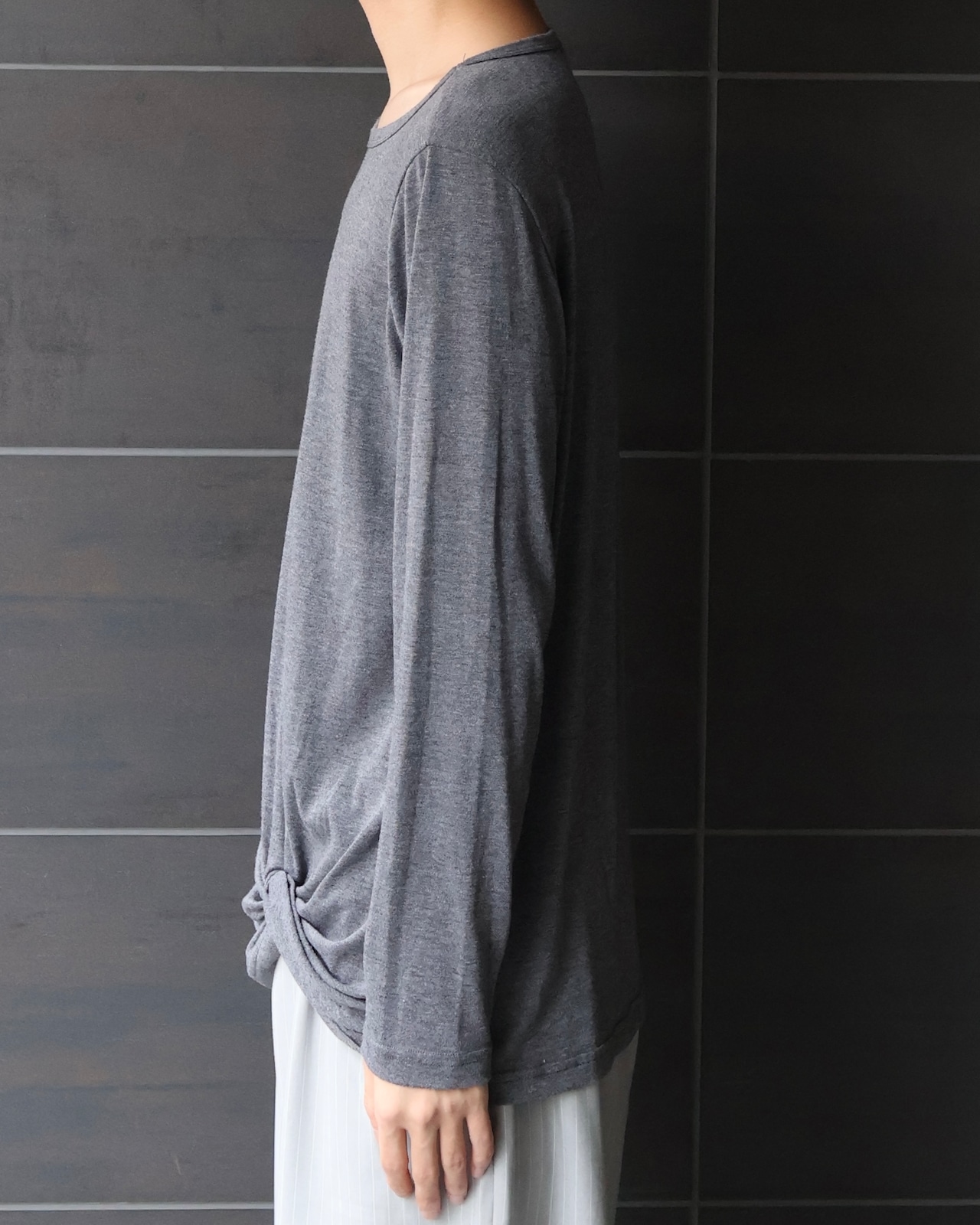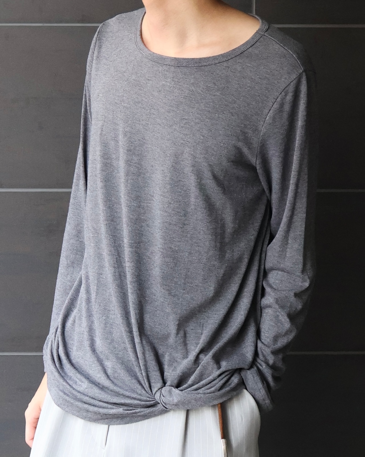 柔らかで落ち感のある素材と裾にあしらわれたデザインがさりげなくアクセントを加えている。ベーシックでありながら、シルエットに変化を持たせることで、洗練されたスタイルを演出する1着。、