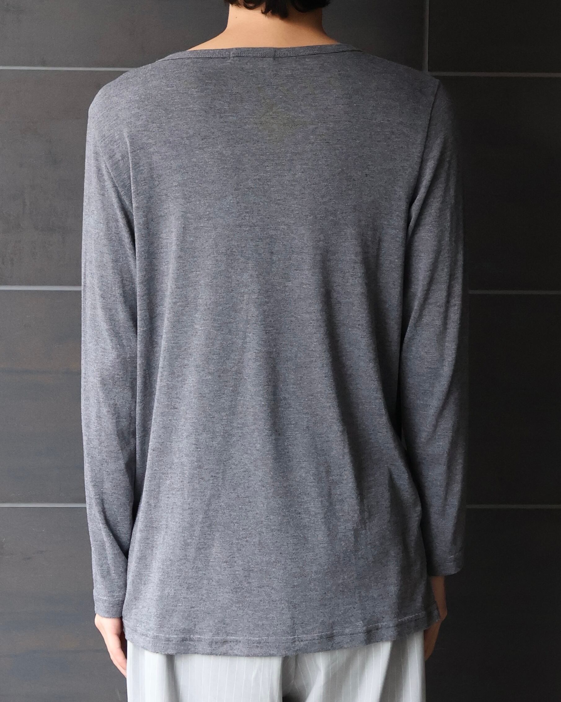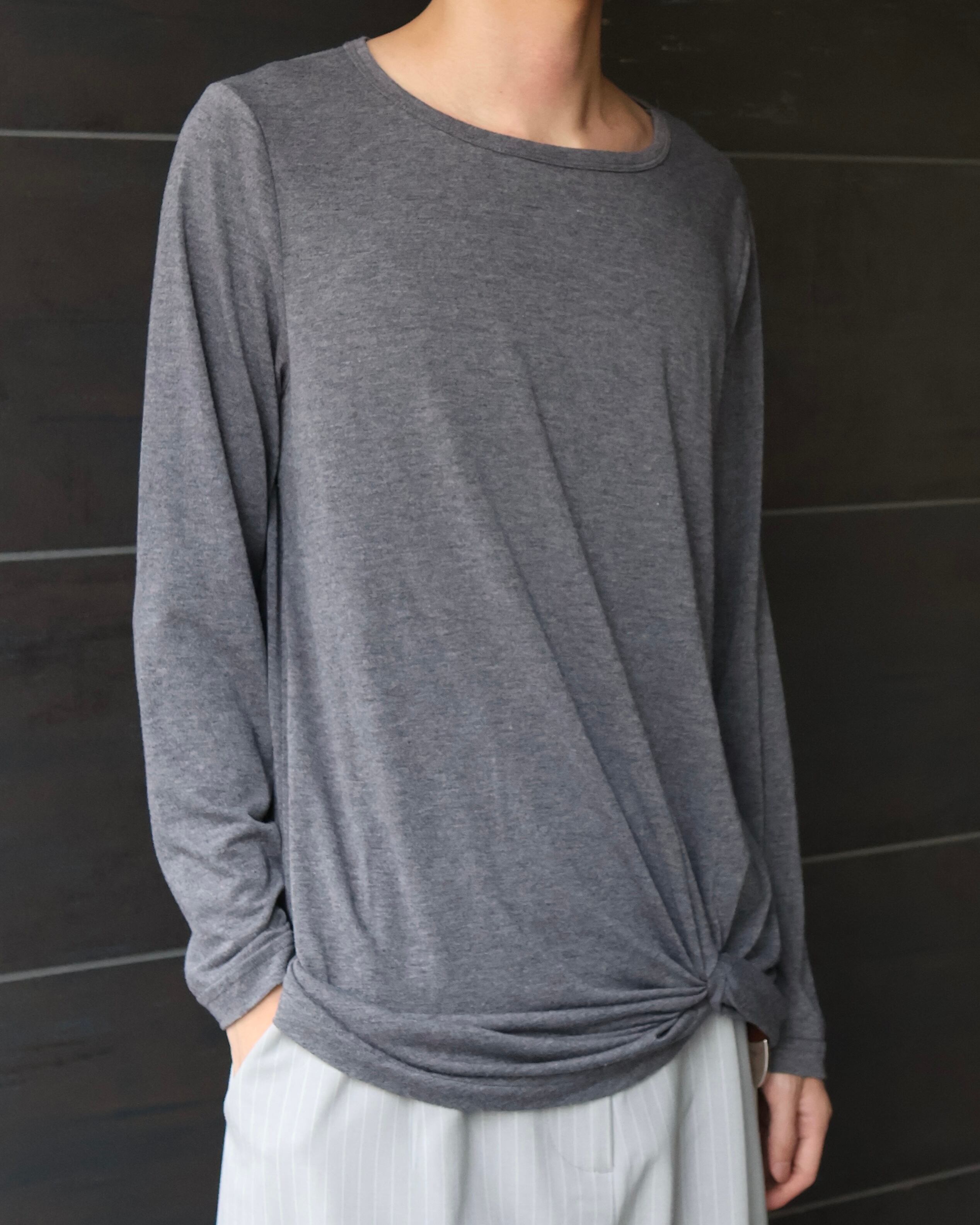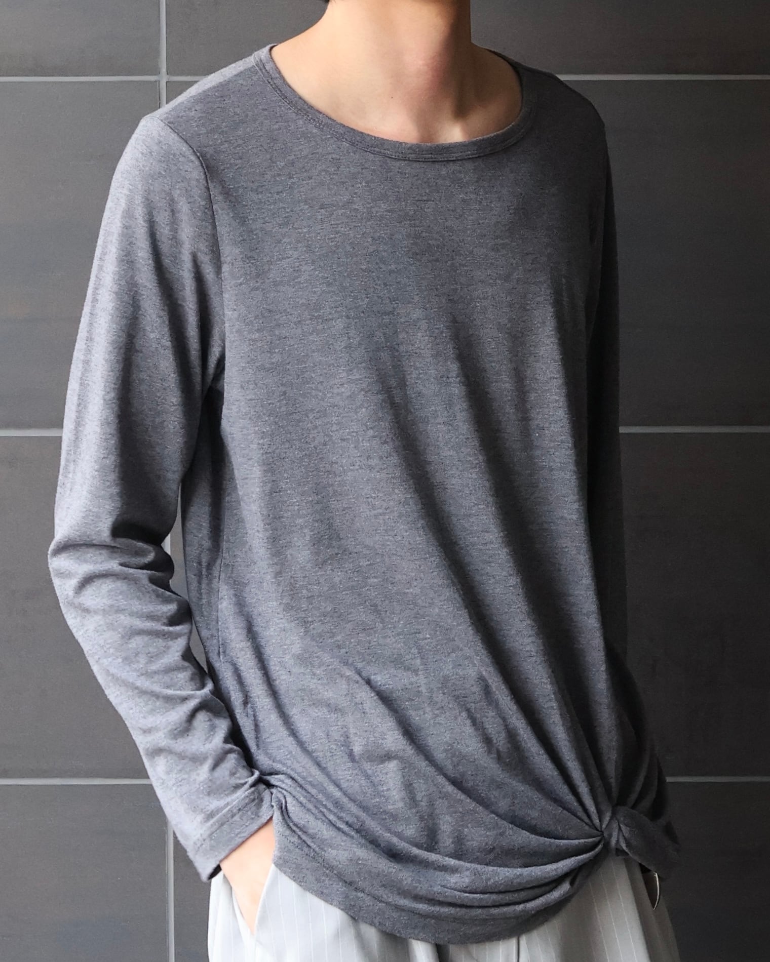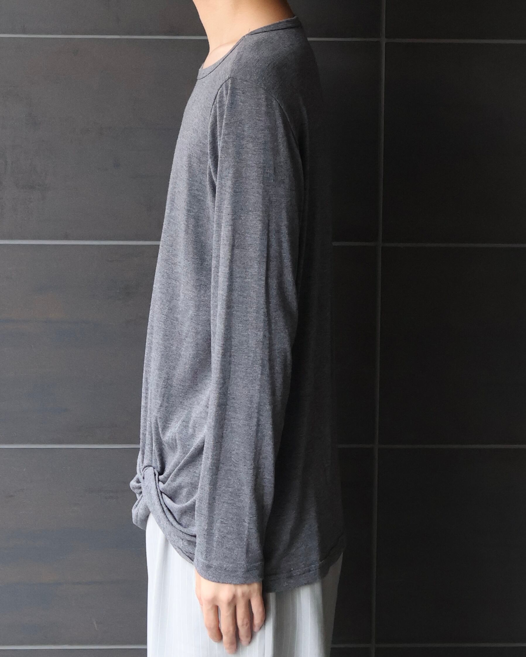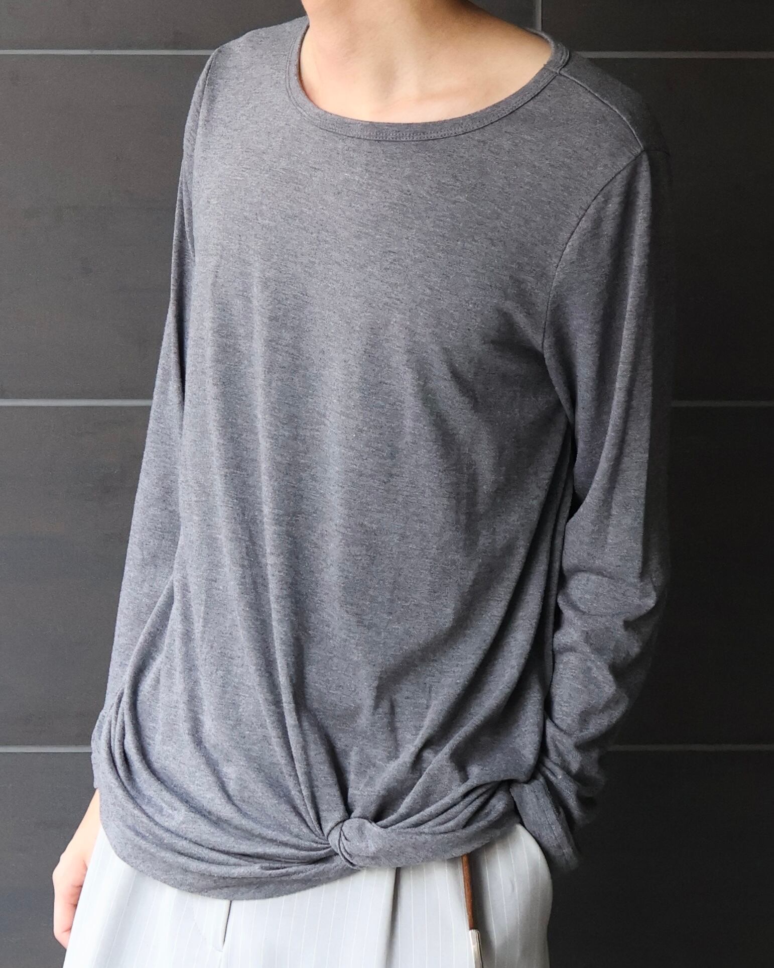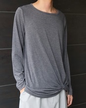 裾部分に施されたデザインが特徴のロングスリーブトップ
