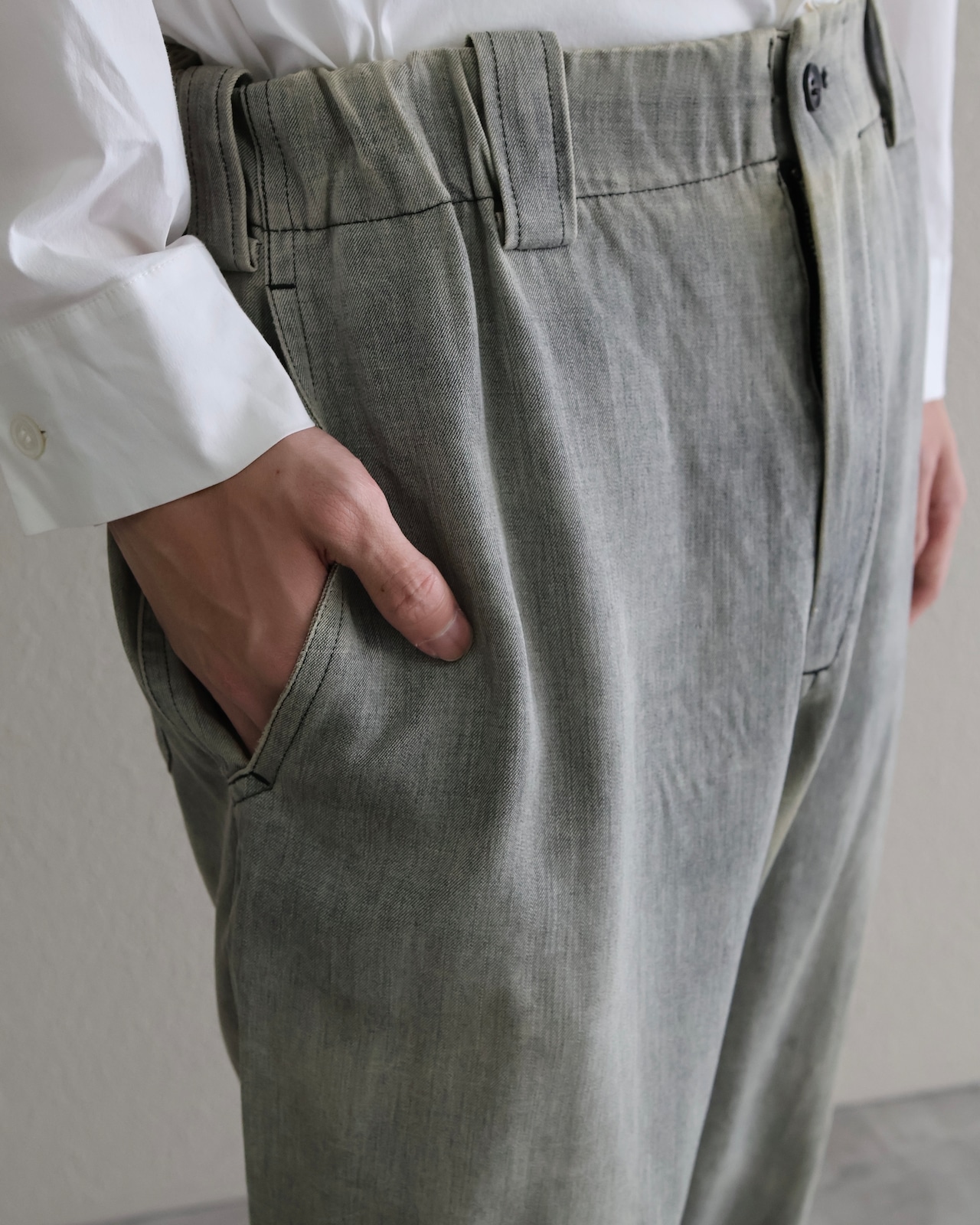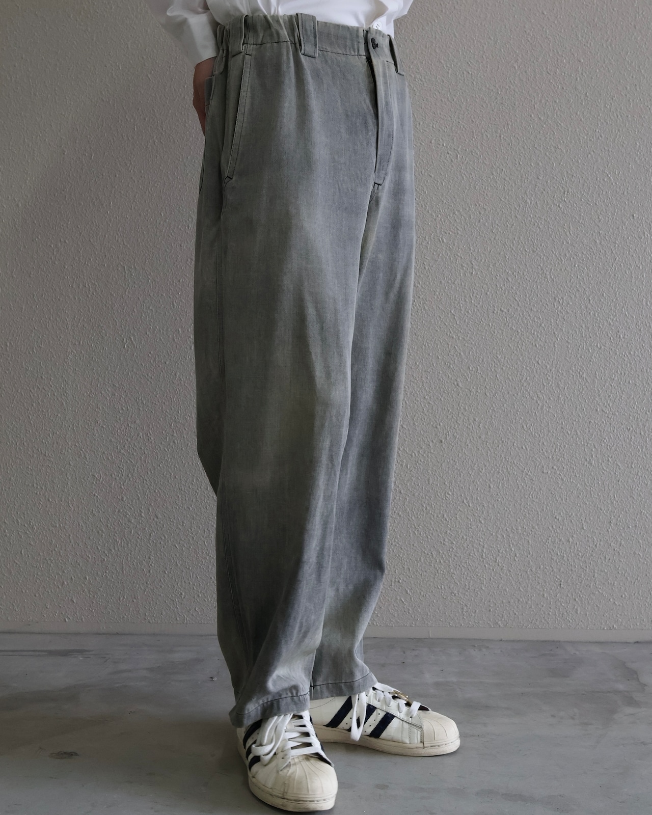 リラックス感のあるワイドフォルムながらも、落ち感のあるラインがシルエットを引き締め、ジャケットとのセットアップはもちろん、単品使いでも存在感を発揮する。モードな空気感を保ちつつ、日常的に取り入れやすい一本。