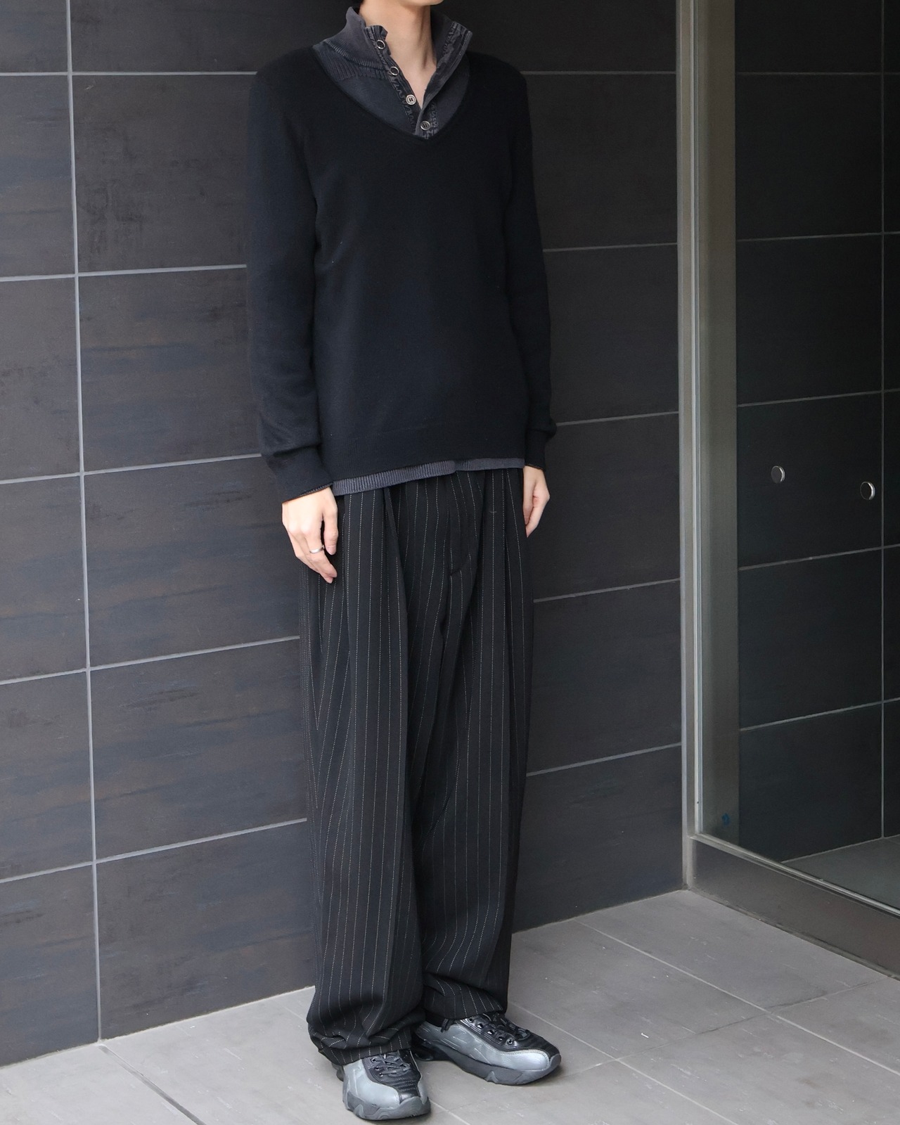 上質なカシミヤを贅沢に使用したVネックニット。柔らかくしなやかな肌触りで、深すぎないVネックが上品な印象。シャツやカットソーとのレイヤードも相性が良く、シンプルながらも素材の良さが際立つ一着。ミニマルなスタイリングからモードまで幅広く対応可能。