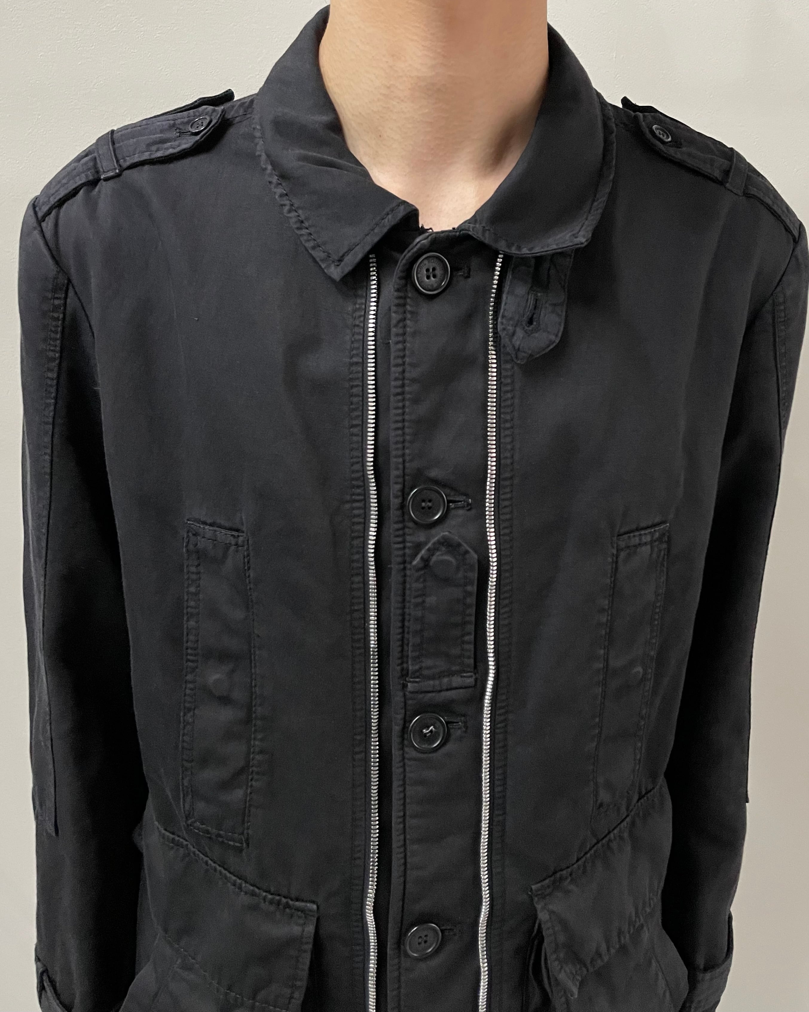 ミリタリーウェアをベースに、ブランドらしいミニマルなデザインとシャープなシルエットで再構築。