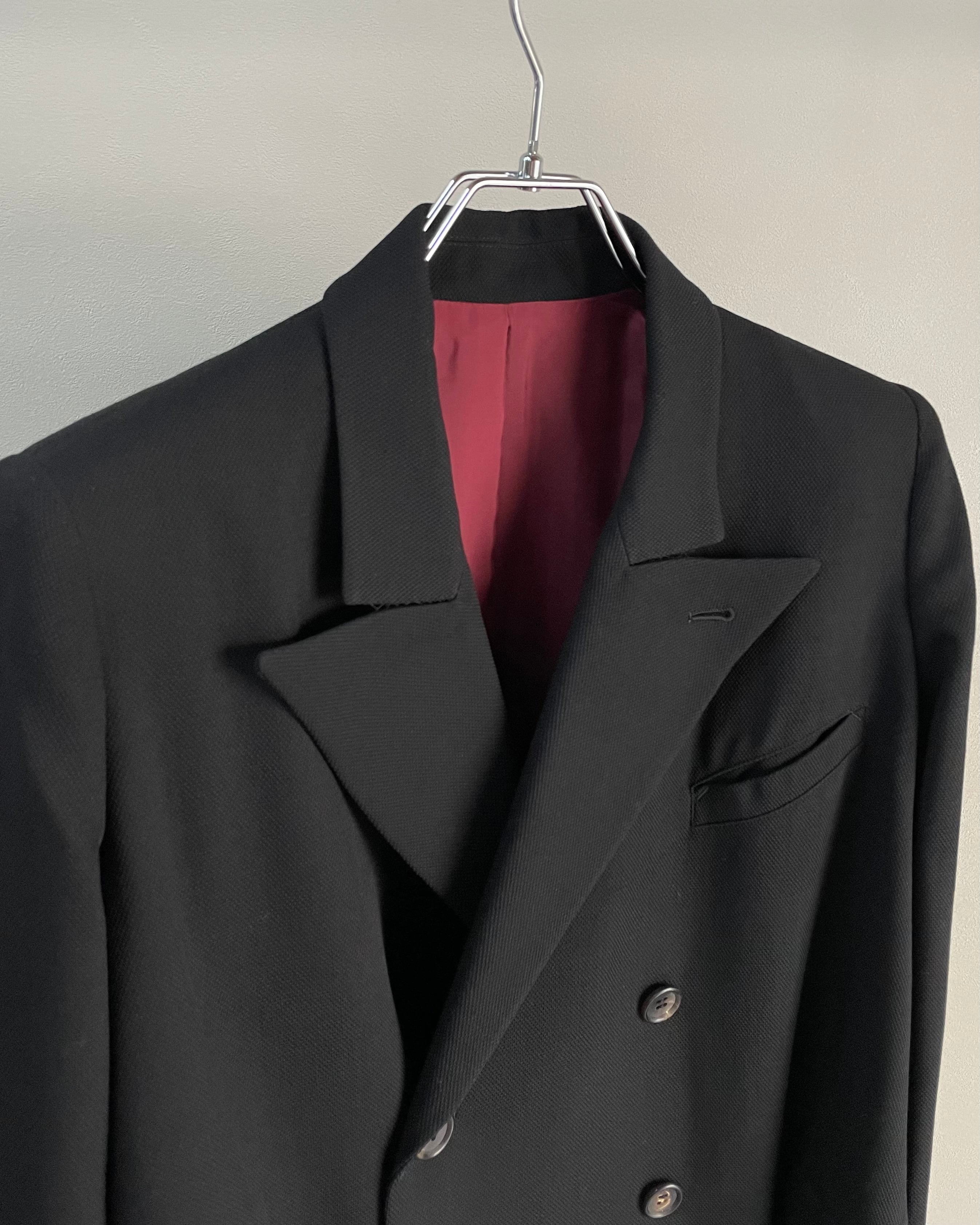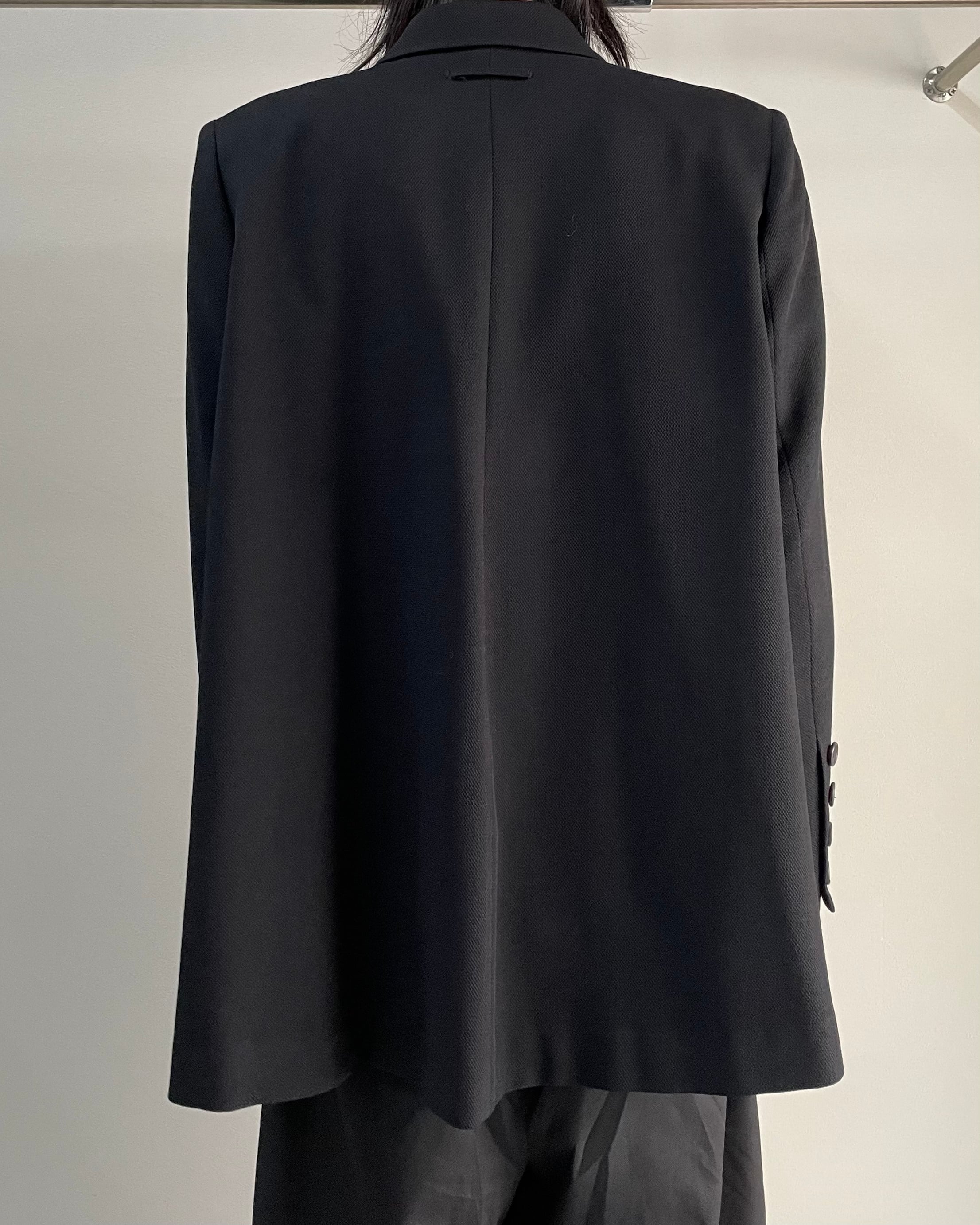 ウエスト部分にかけてフレアに広がるデザインが特徴的で、程よいハリ感のあるウール素材を採用されている為、動きにしなやかさとドレープさを引き出します。