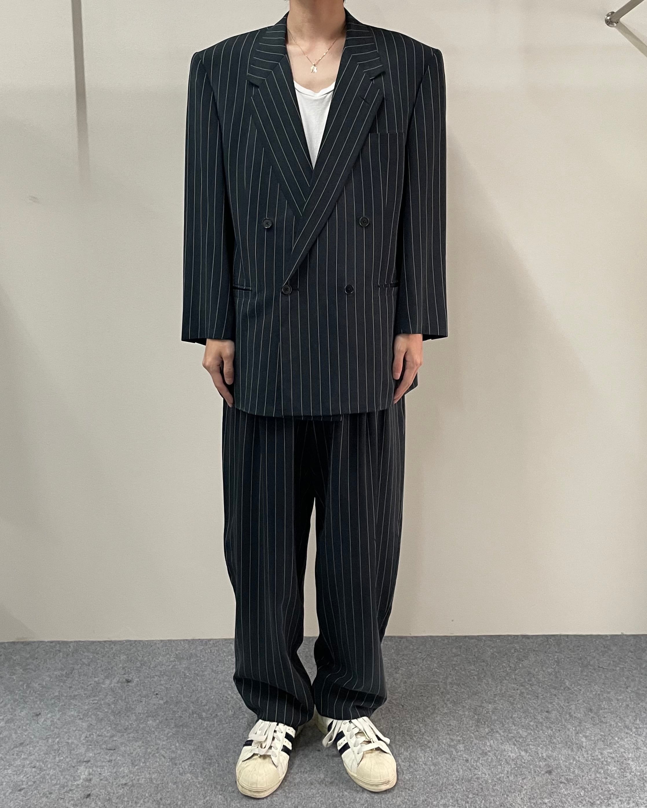 【90s~00s V2 by VERSACE】2 tuck stripe slacks