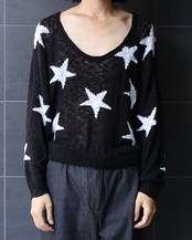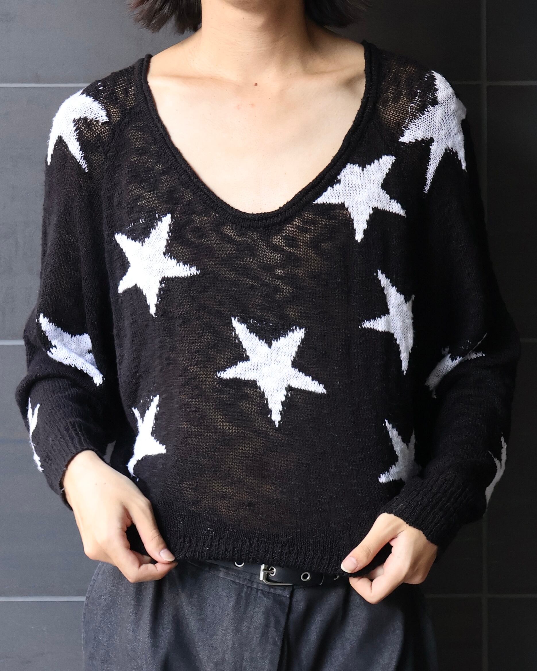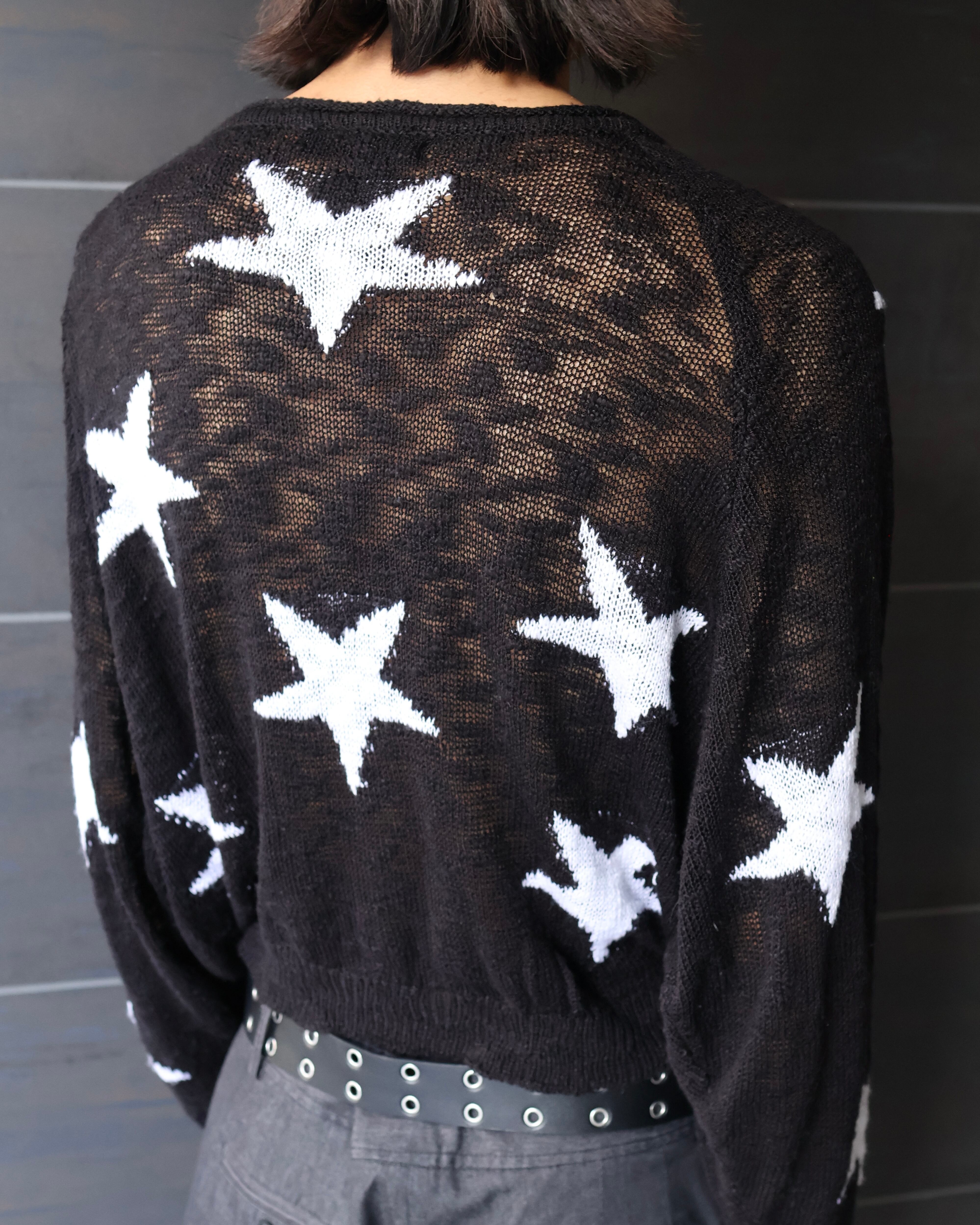 透け感のある軽やかなニットに、大胆な星柄を散りばめた一枚