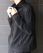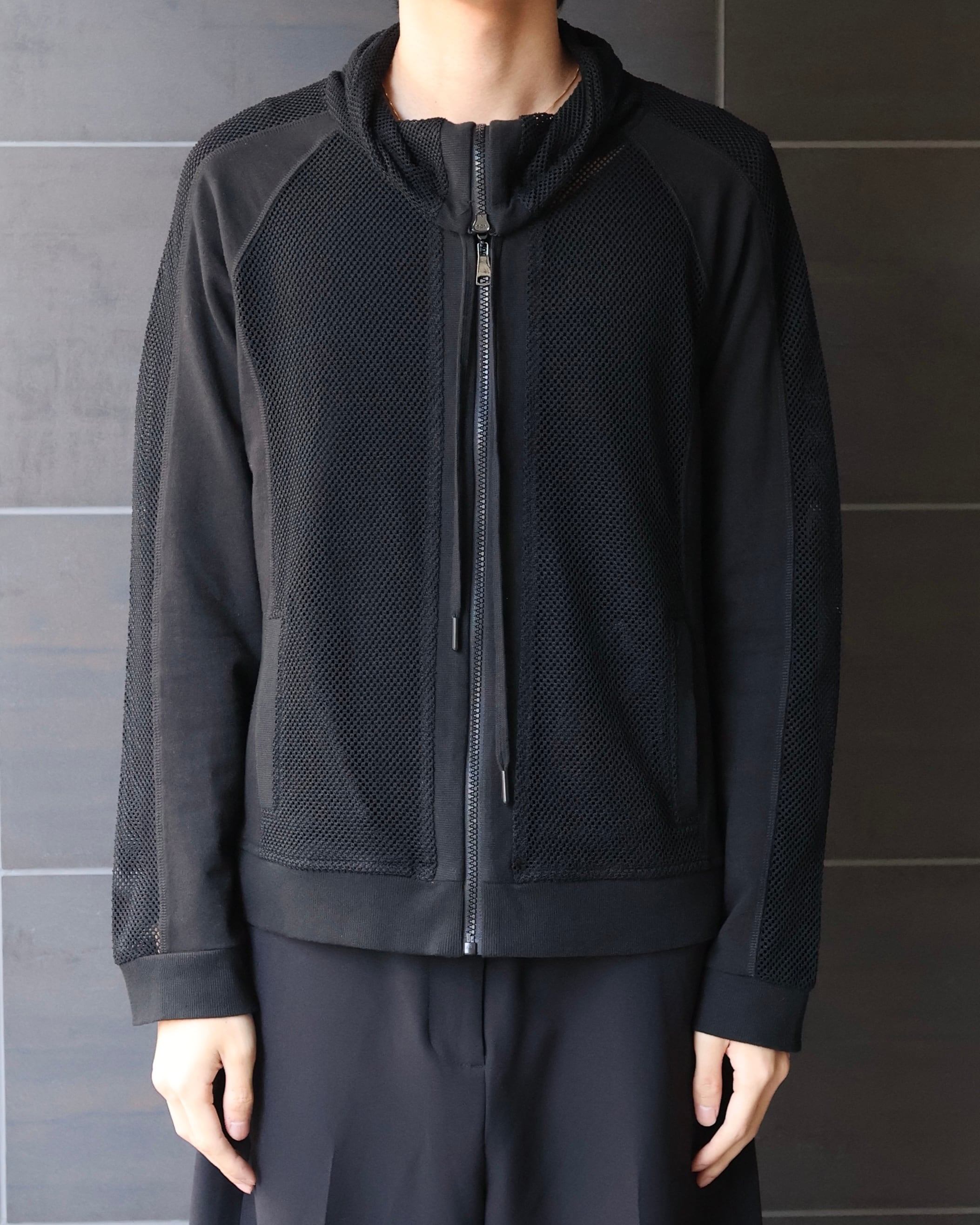 立体的なメッシュ素材を全面に配したジップアップブルゾン