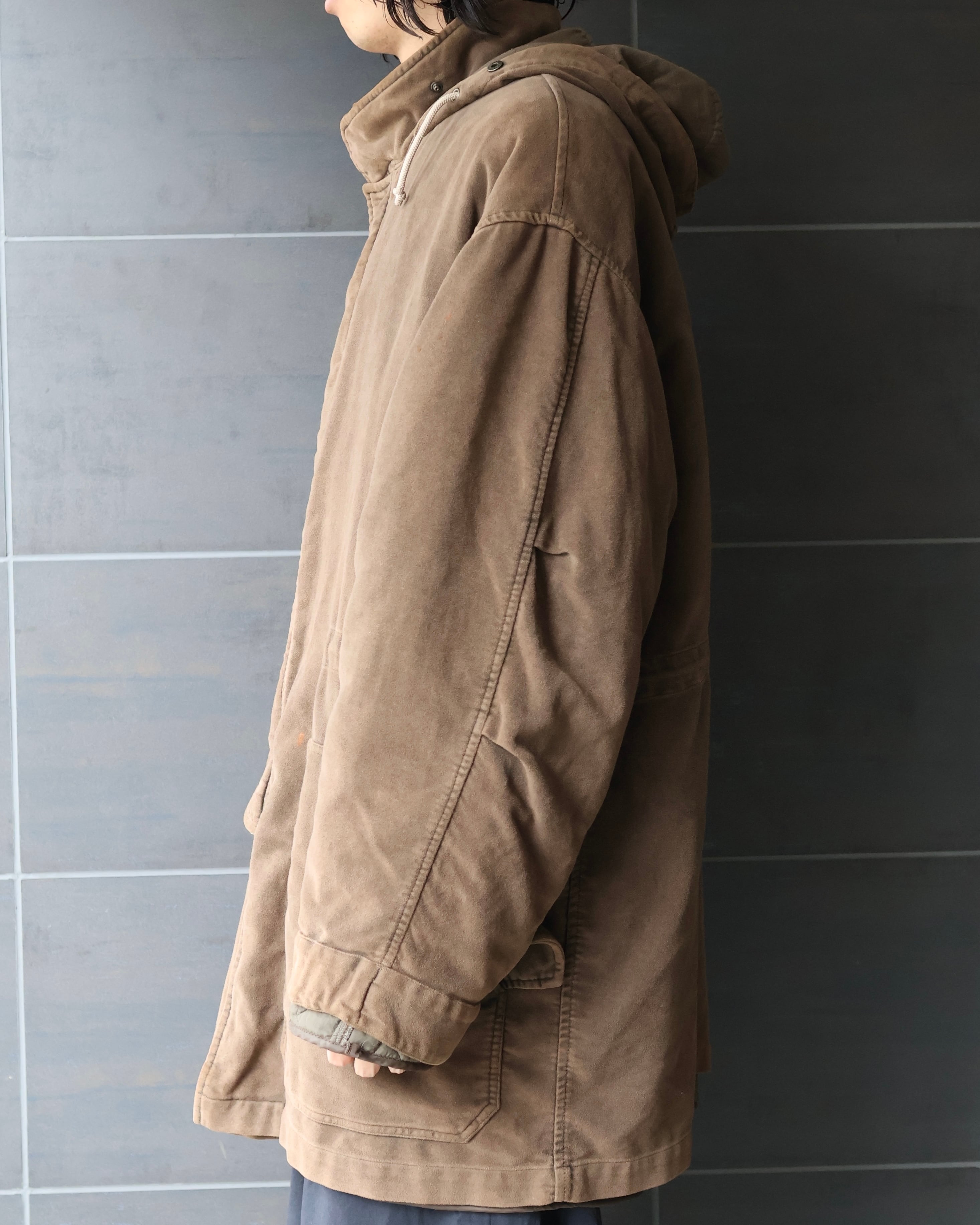 コットン地をベースに、程よい厚みと柔らかな風合いを持たせた一着。ゆとりのあるシルエットが抜け感を生み、内側のライナーと袖口のレイヤードが奥行きを演出。ライナー付きで防寒性もある秋冬のメインアウター。