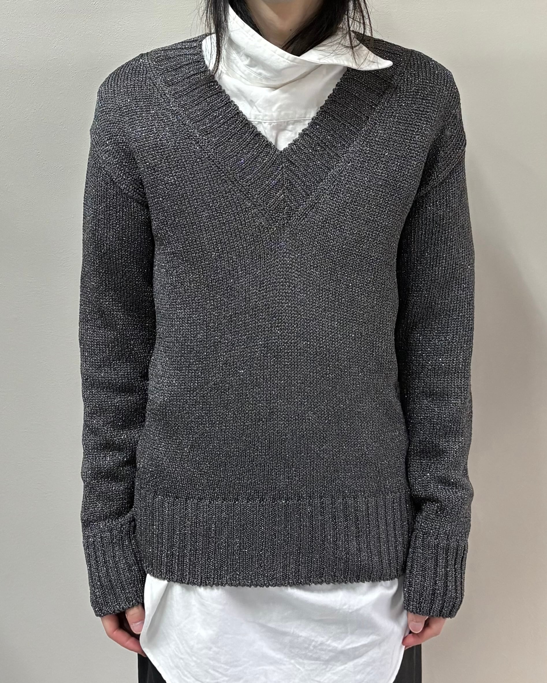 【DOLCE&GABBANA】v neck glitter rib knit