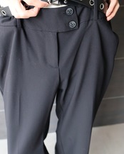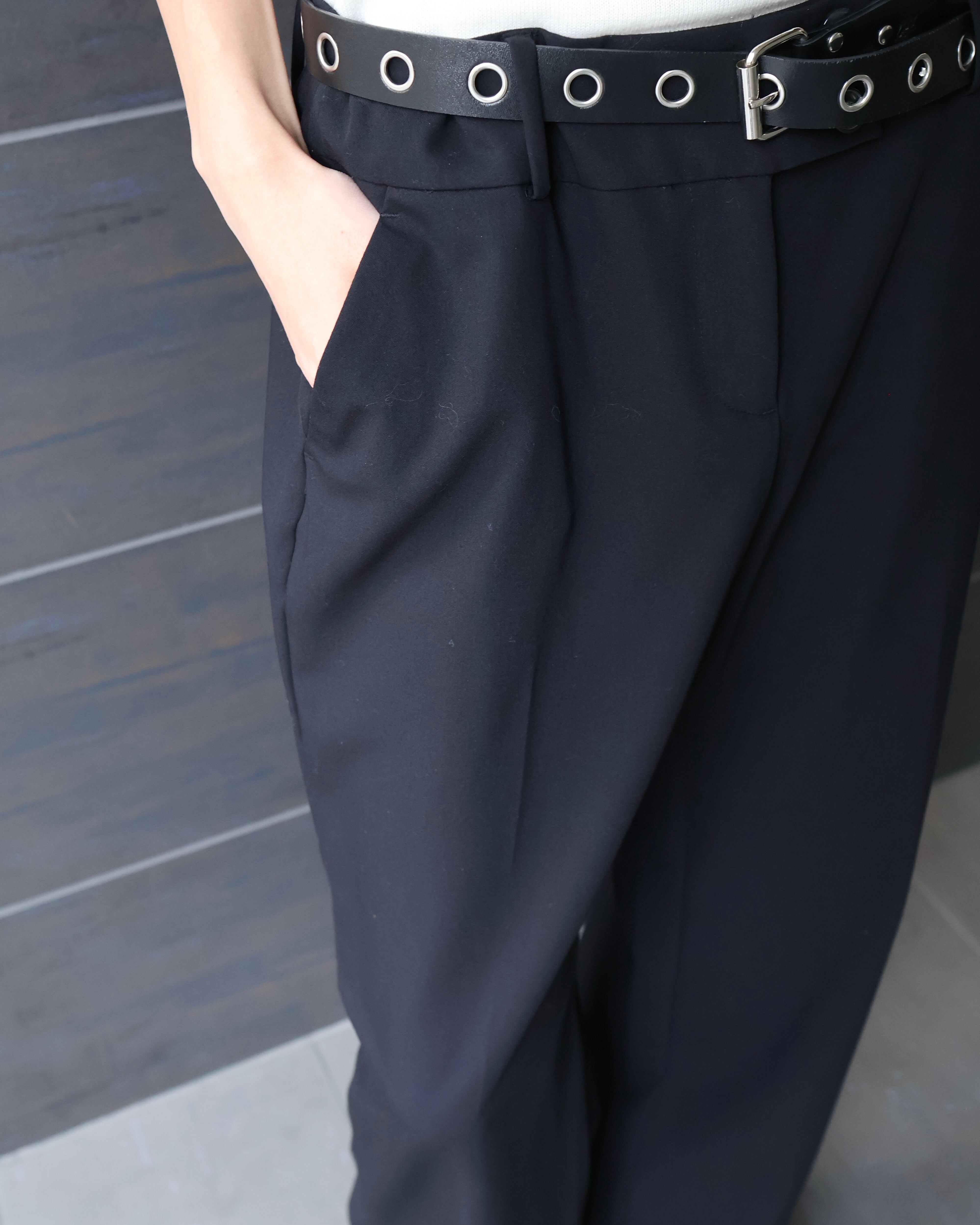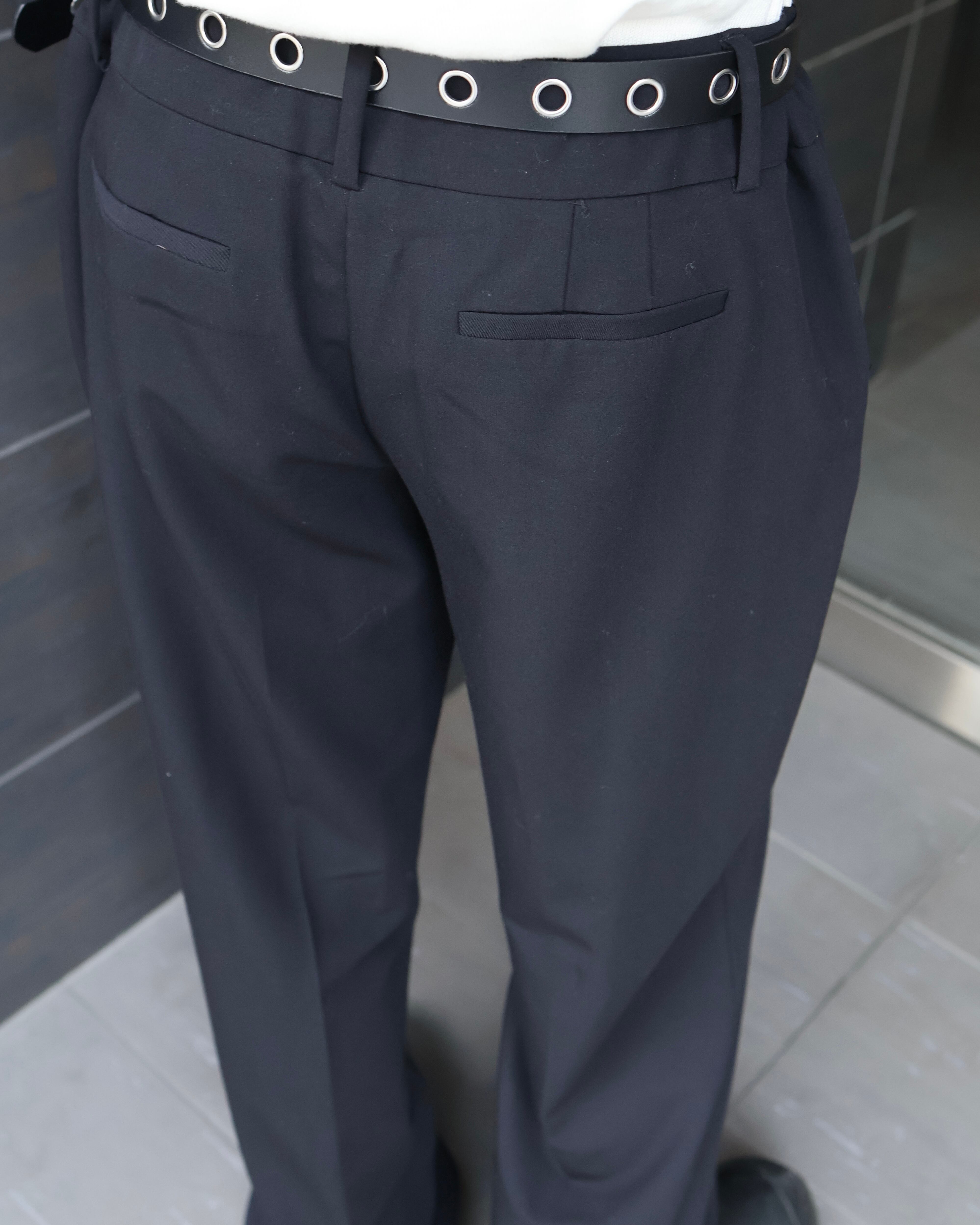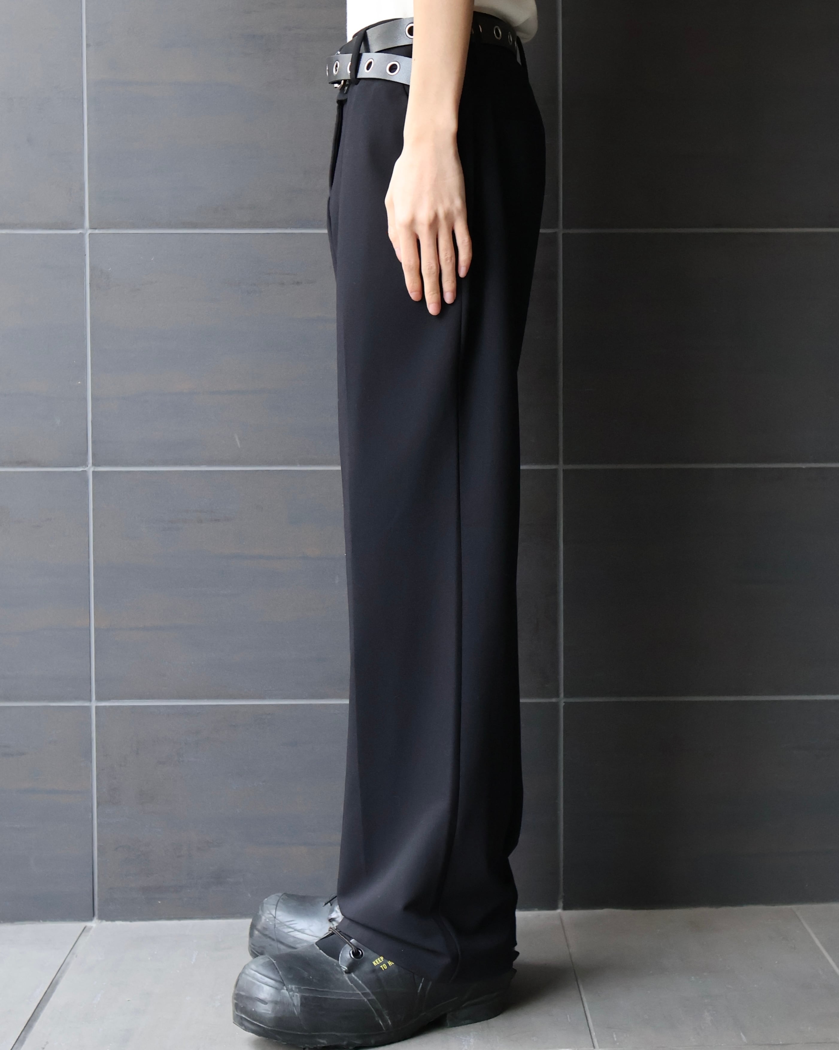ドレープ感がありながらもシルエットが崩れにくく、上品な印象。カジュアルにもモードにも対応できる万能な一本で、ベルトやシューズ次第で印象を自在に変えられる。