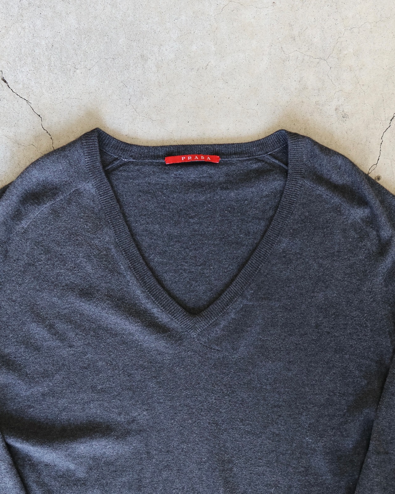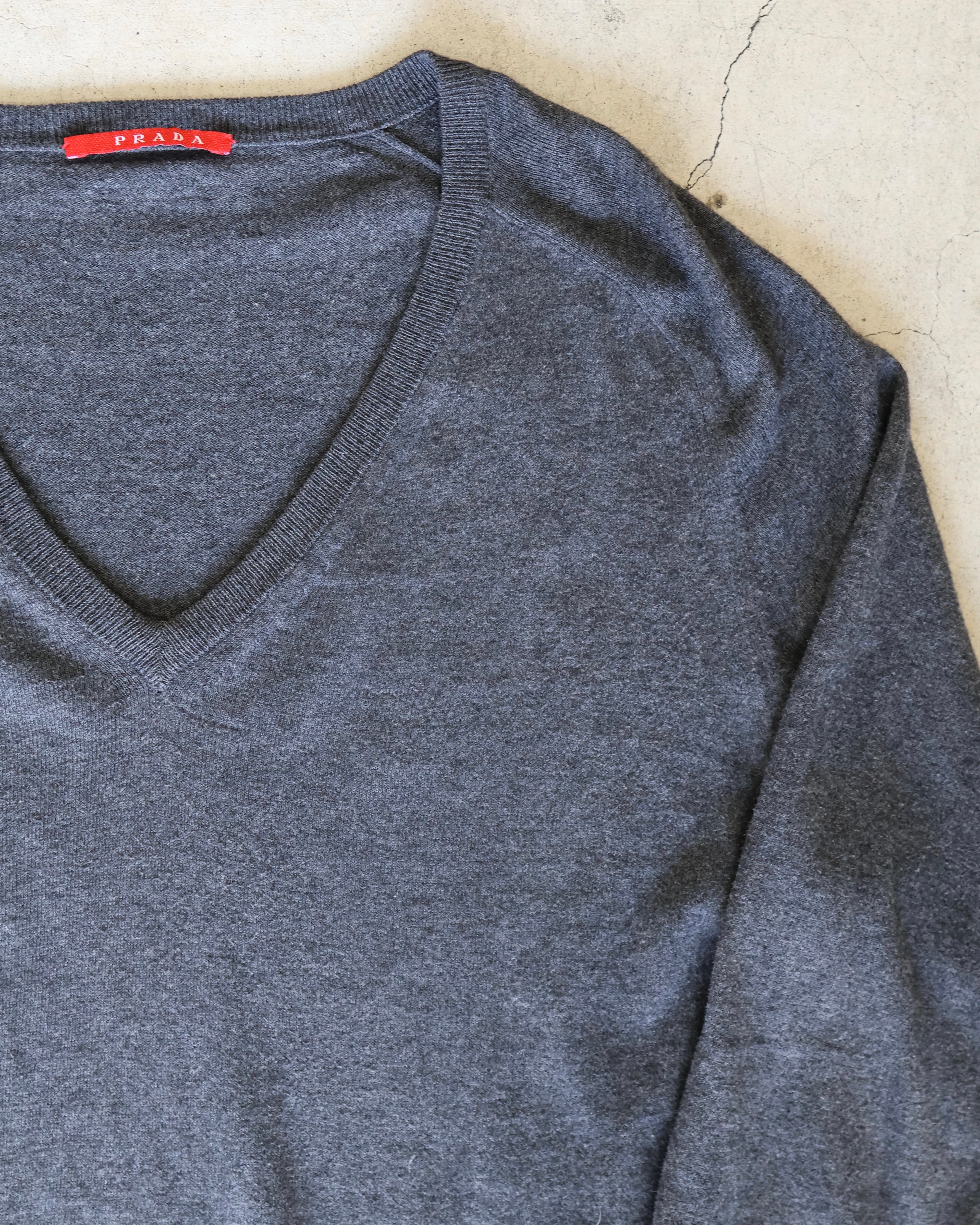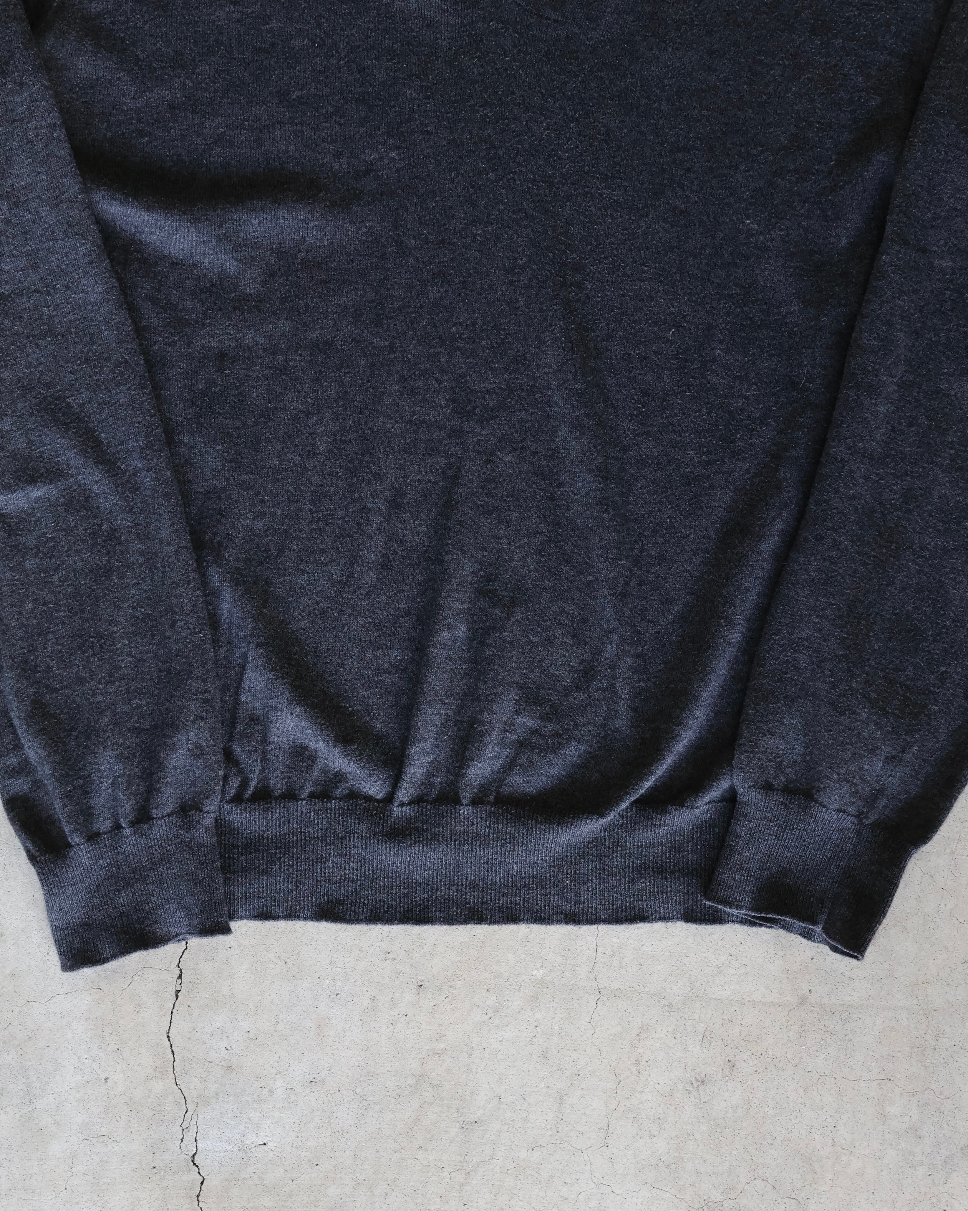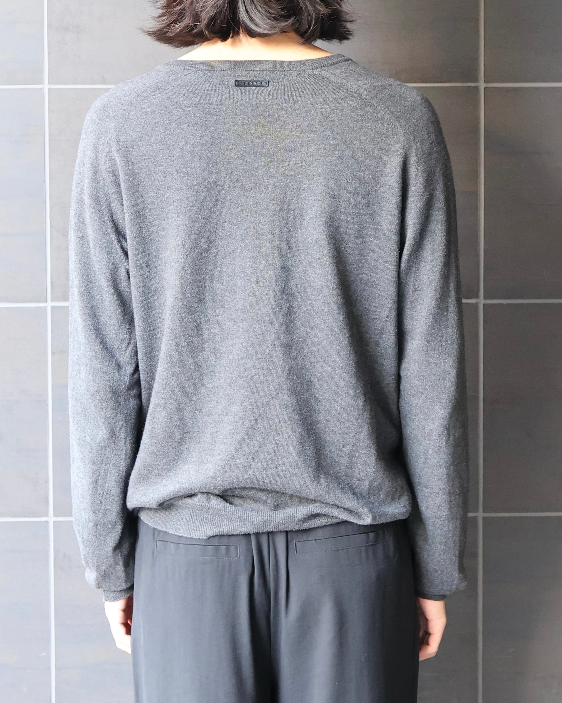 コットンカシミヤで上質で柔らかなニット。深めのVゾーンが洋服の持つ色気や、レイヤードできる遊び心を併せ持つ。1着で様々なコーディネートができる万能ニット。