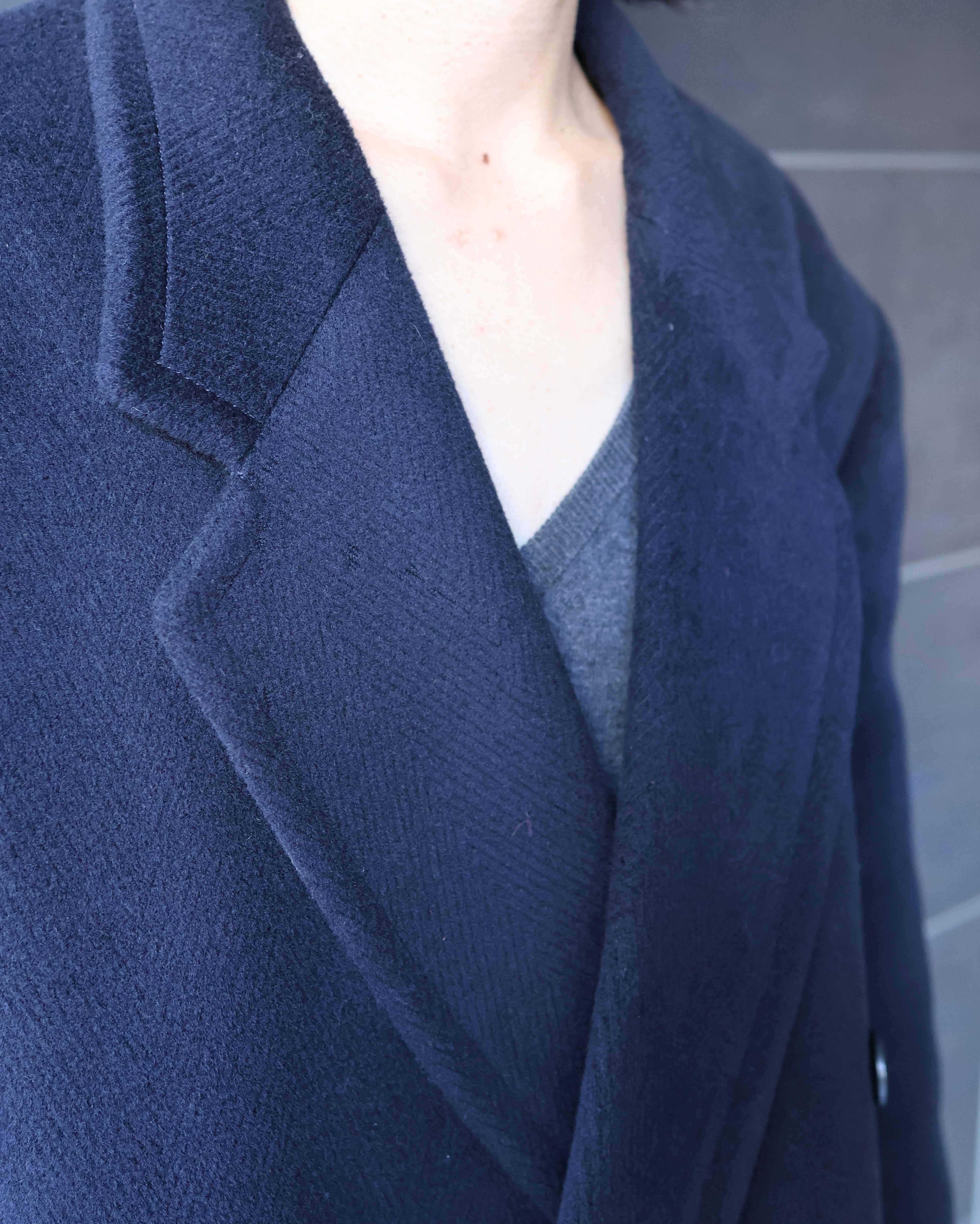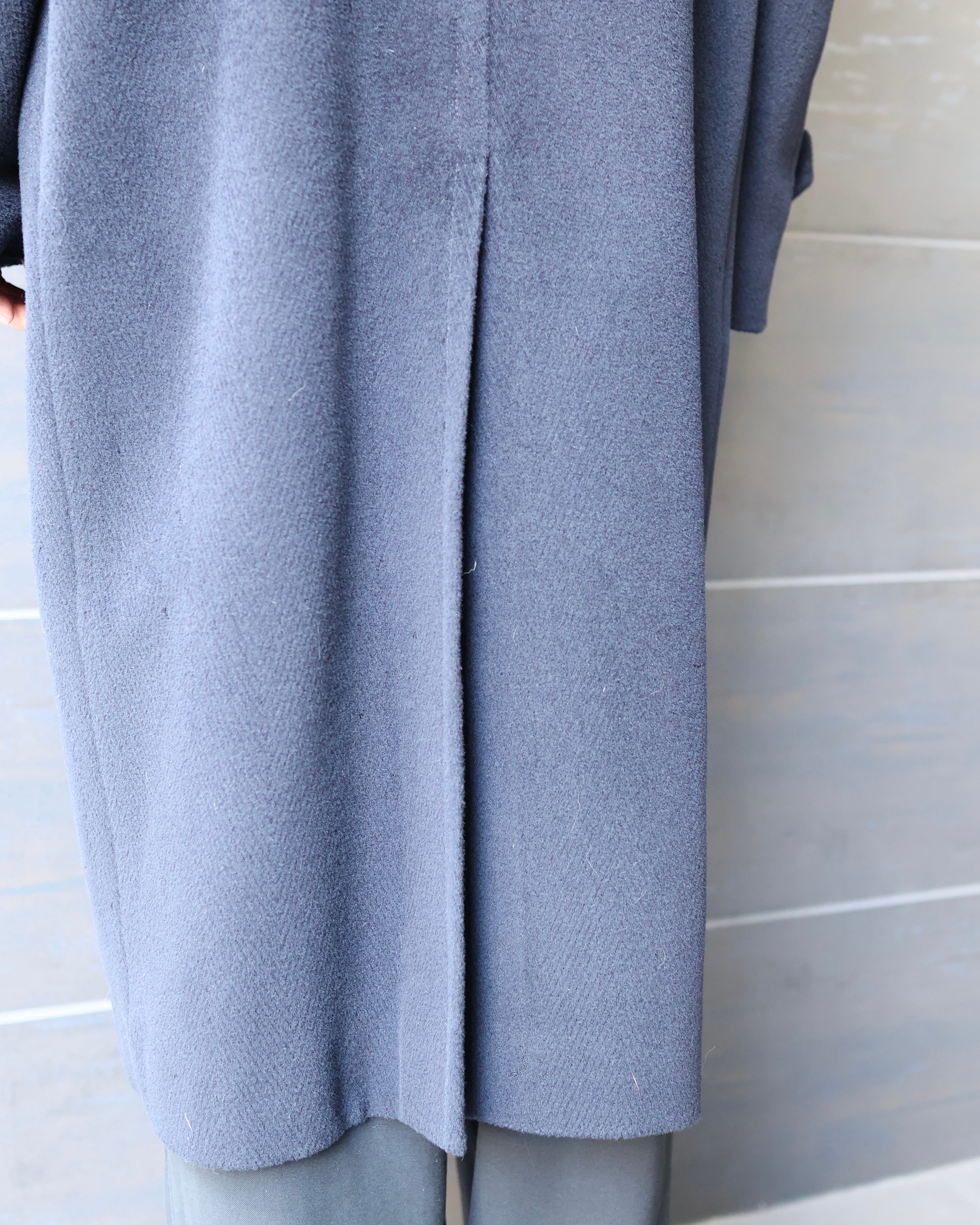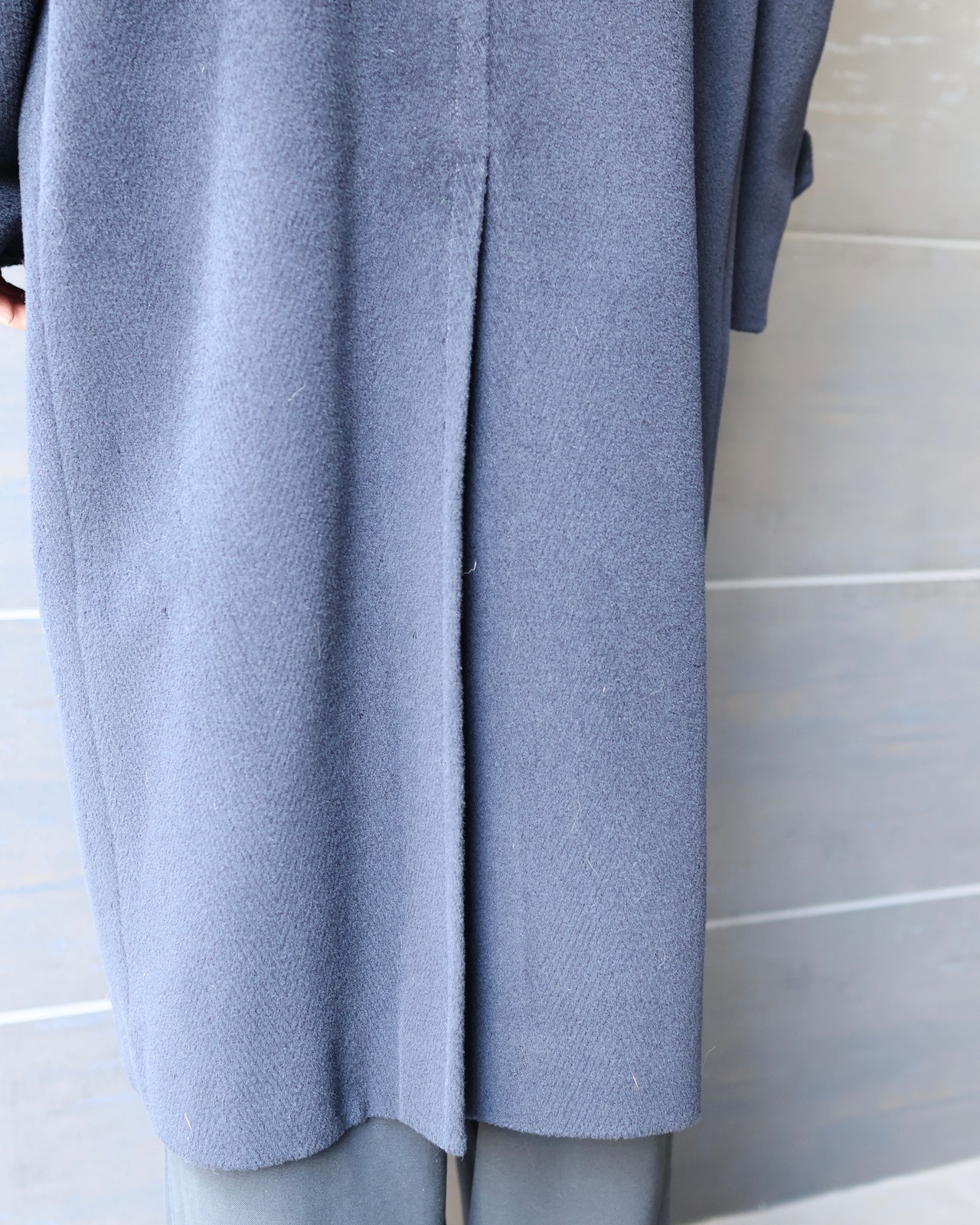 ウールの重厚感で一枚でファッションできるマキシコート。