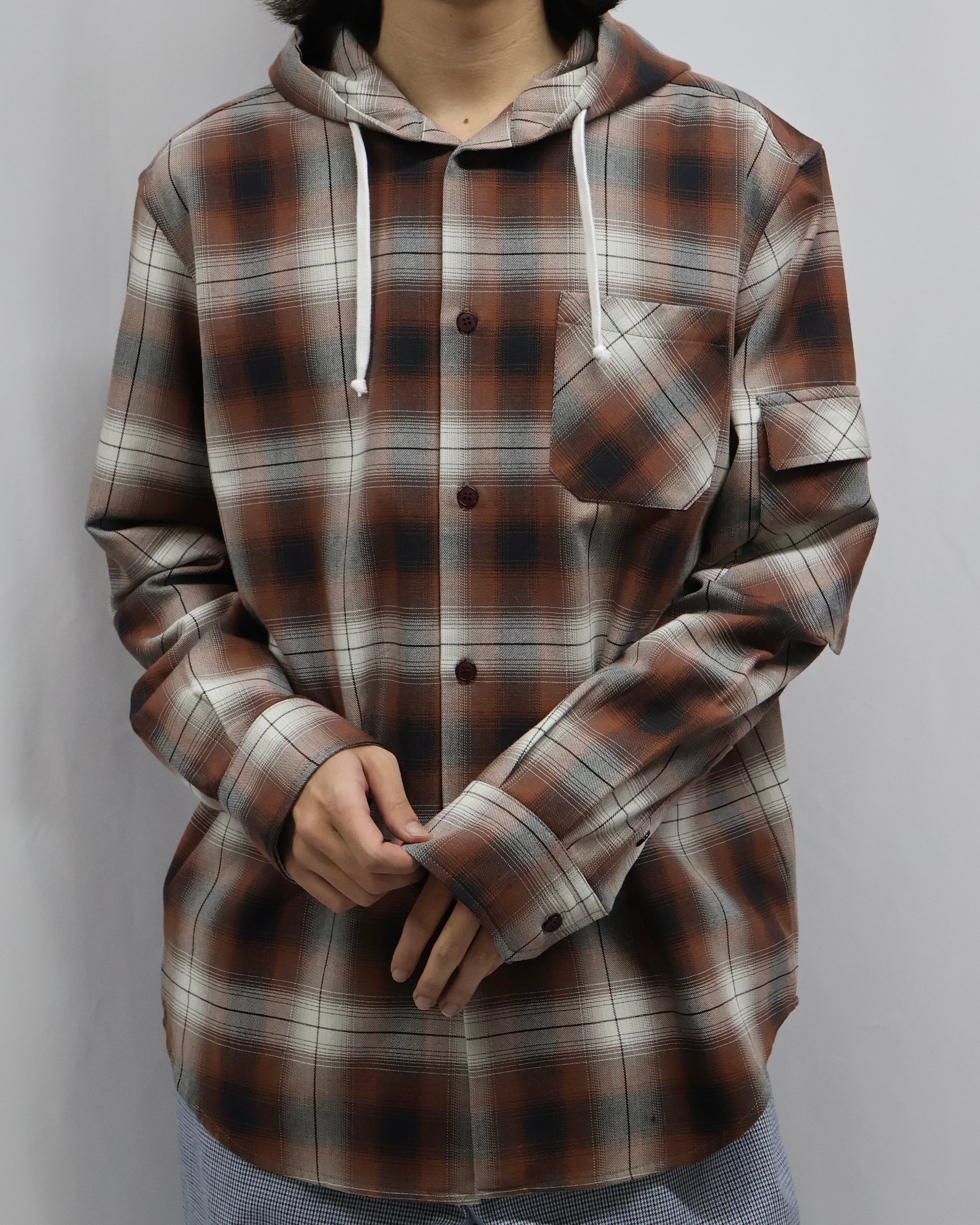 GAMS NOTE 25AW/CHECK HOODED SHIRT