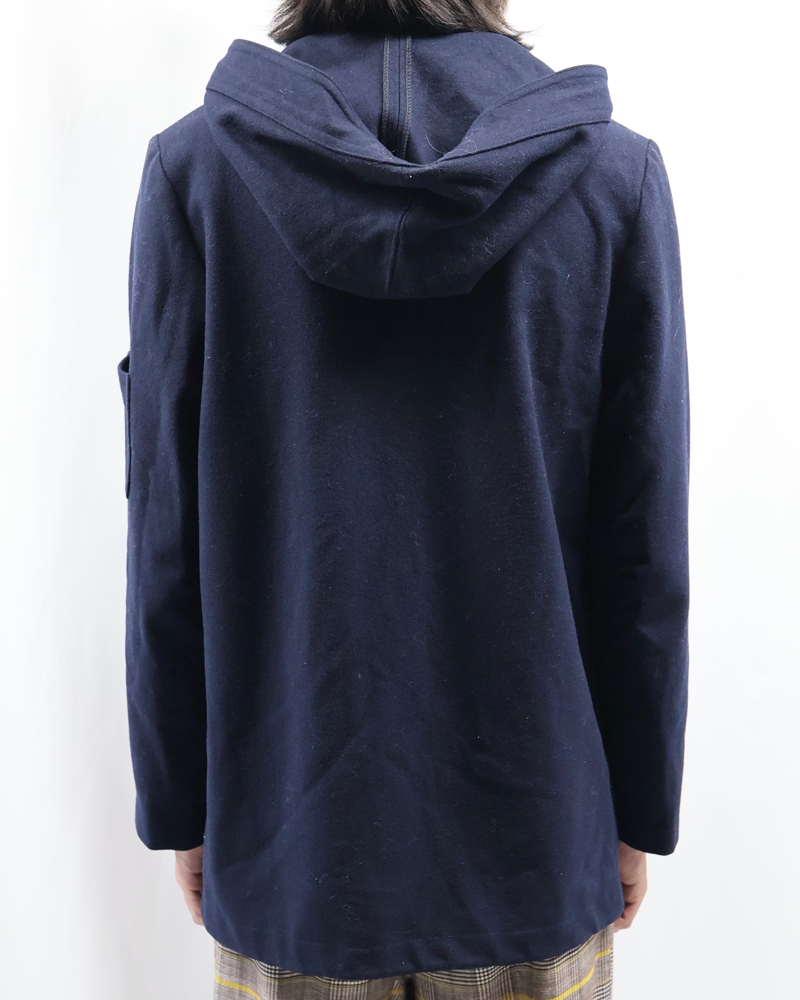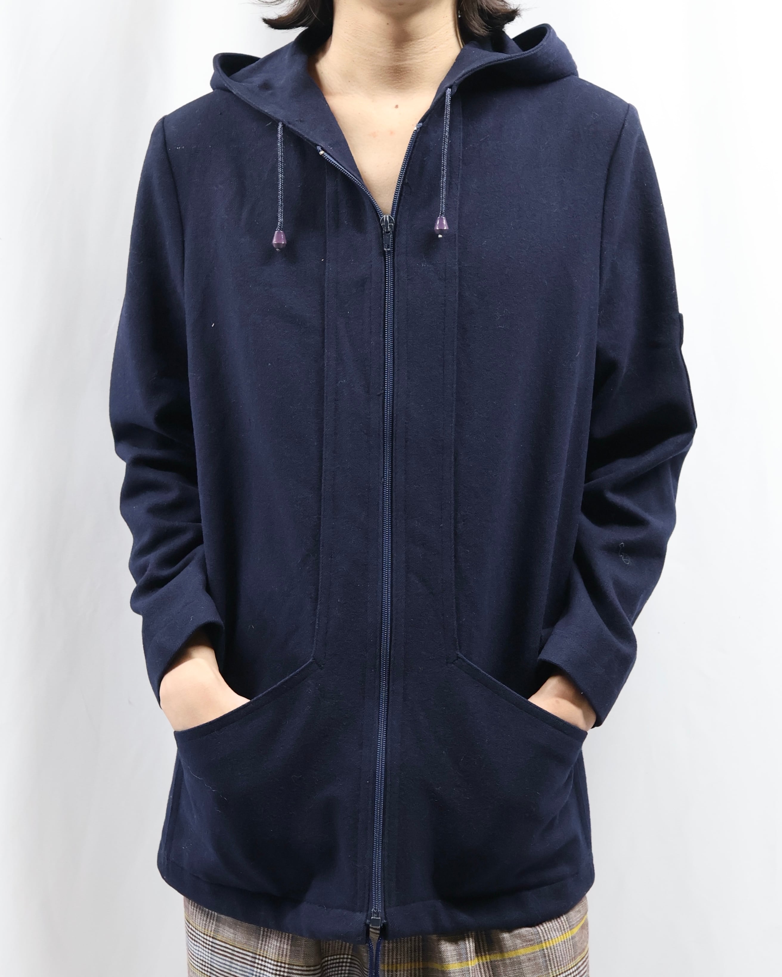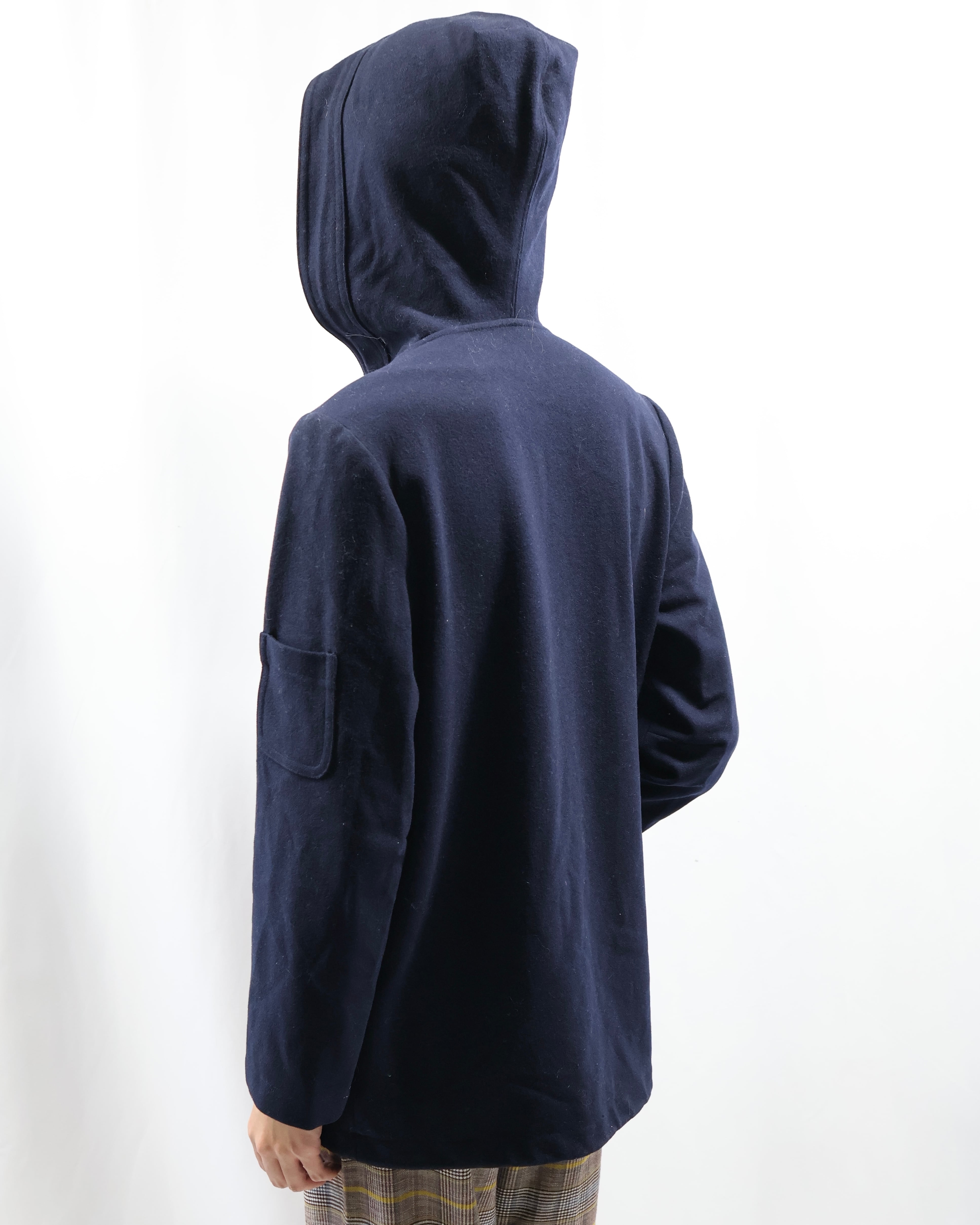 しっかりした生地感でフードの形も綺麗に立つため、上にアウターを重ねてもフードの存在感が程よく映えるアイテム。控えめながら上品な雰囲気のあるフーディ。
