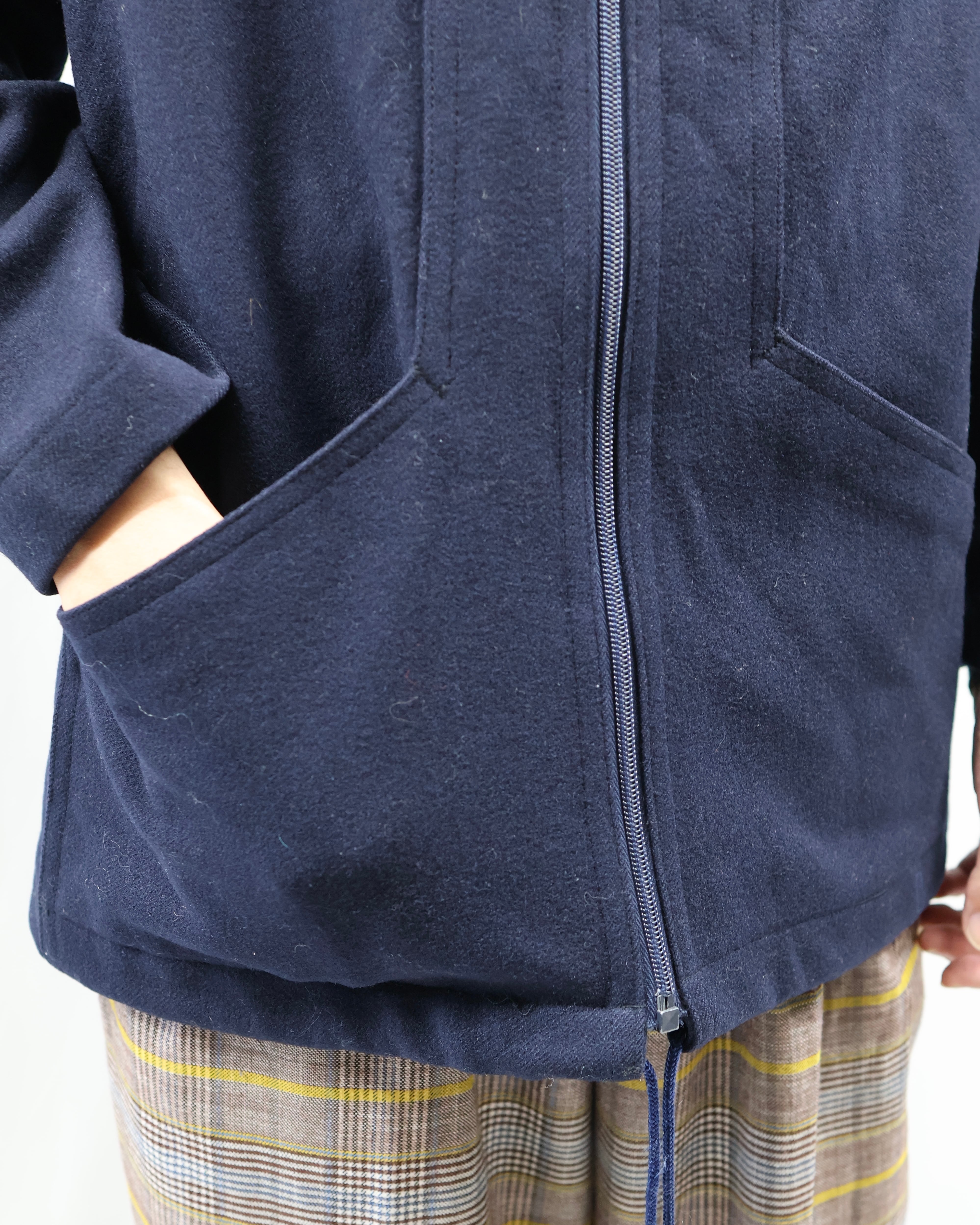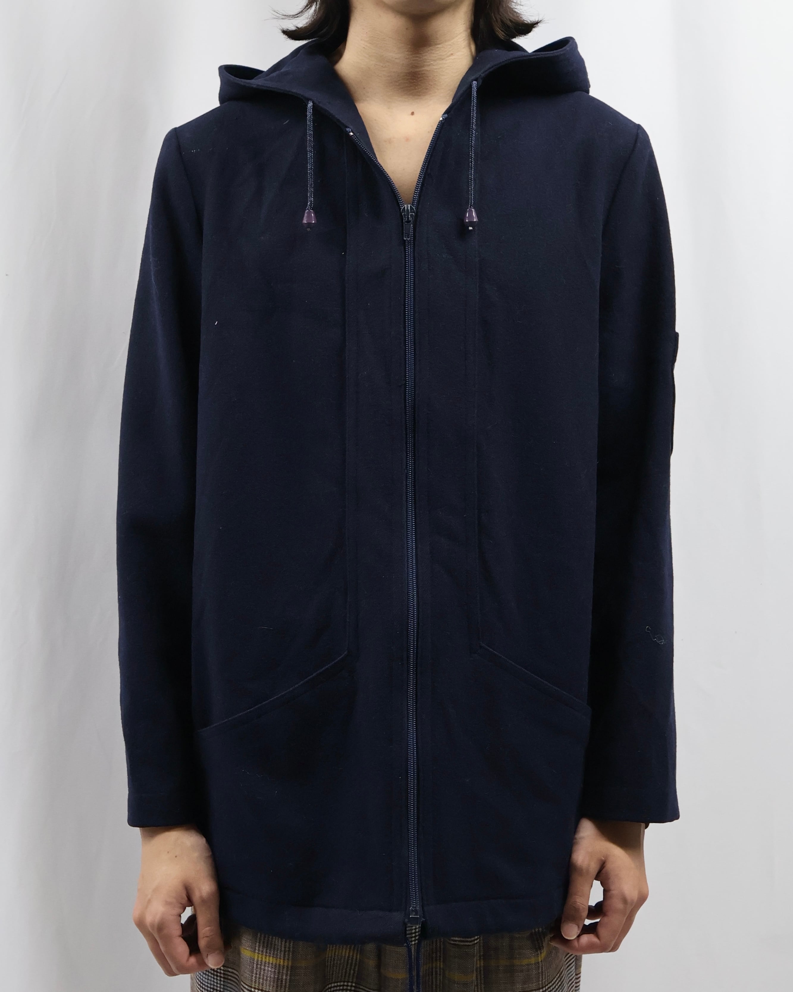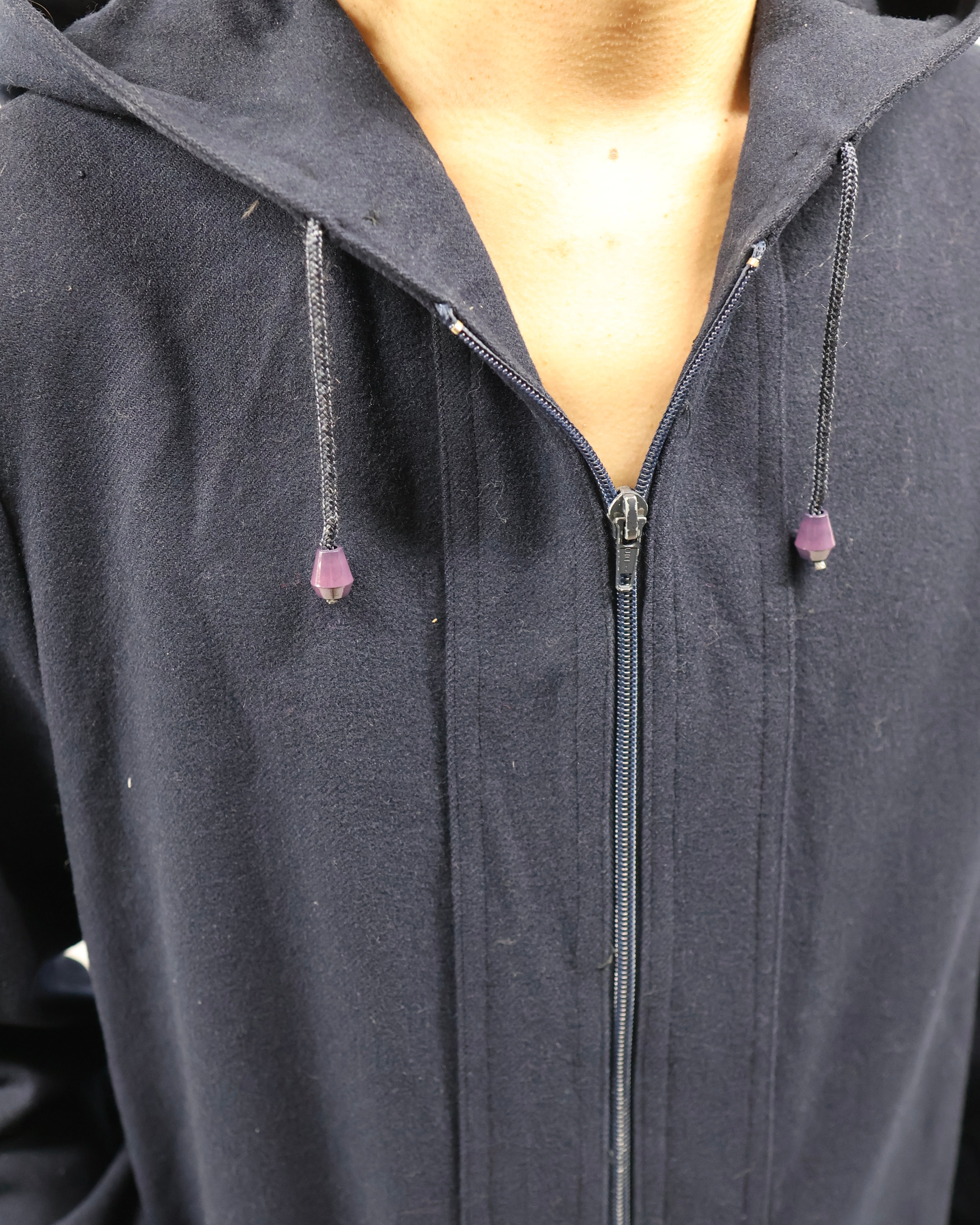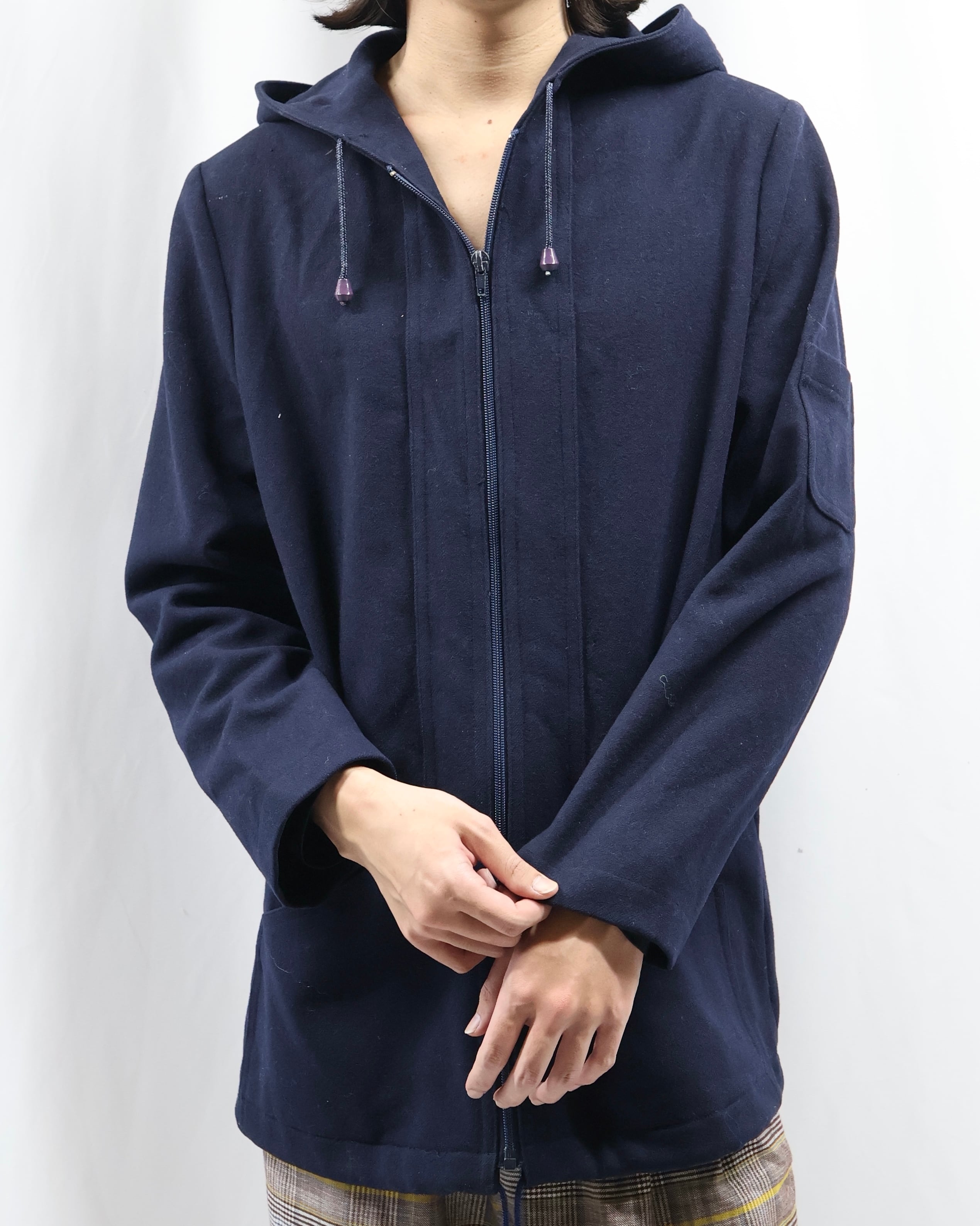 しっかりした生地感でフードの形も綺麗に立つため、上にアウターを重ねてもフードの存在感が程よく映えるアイテム。控えめながら上品な雰囲気のあるフーディ。