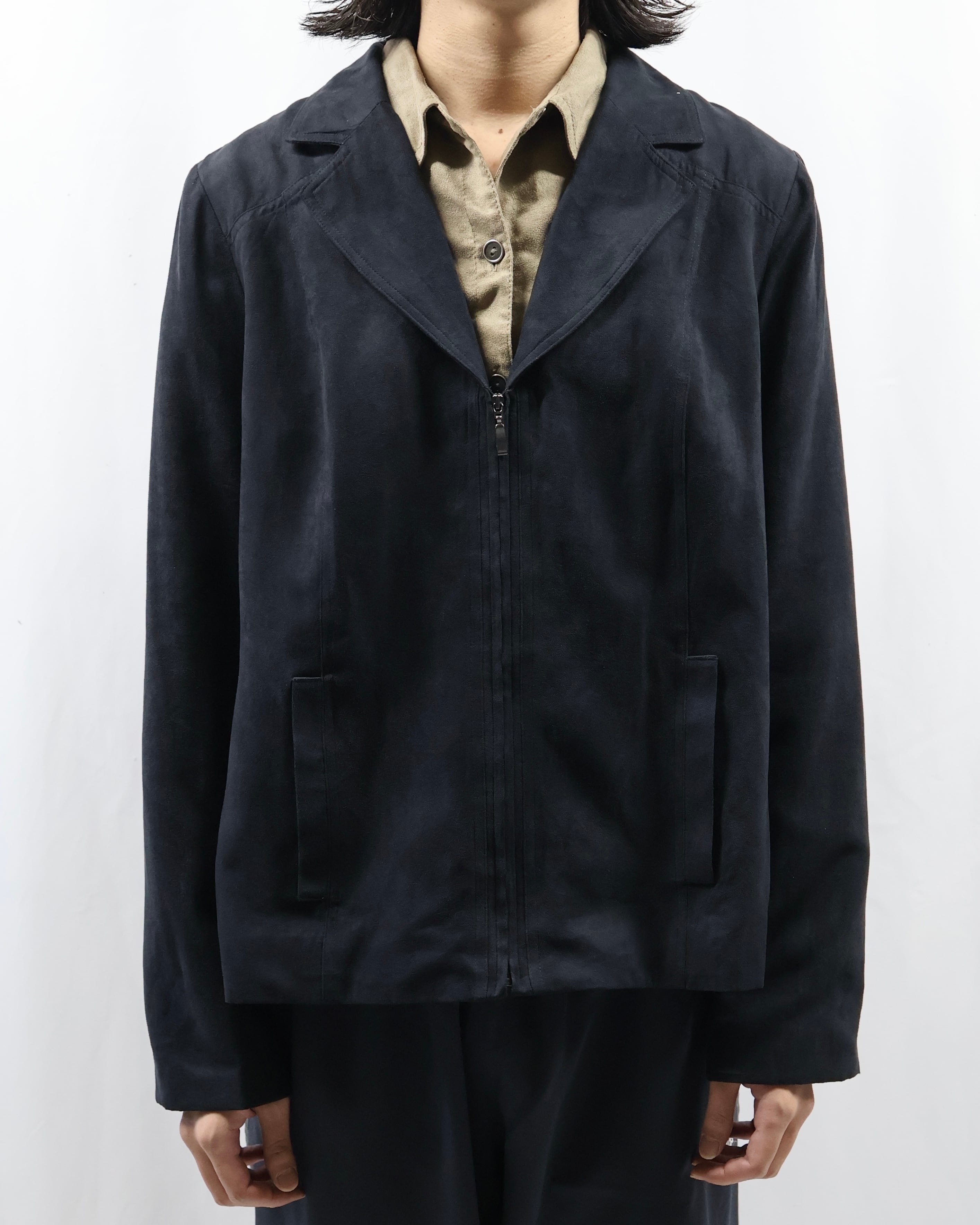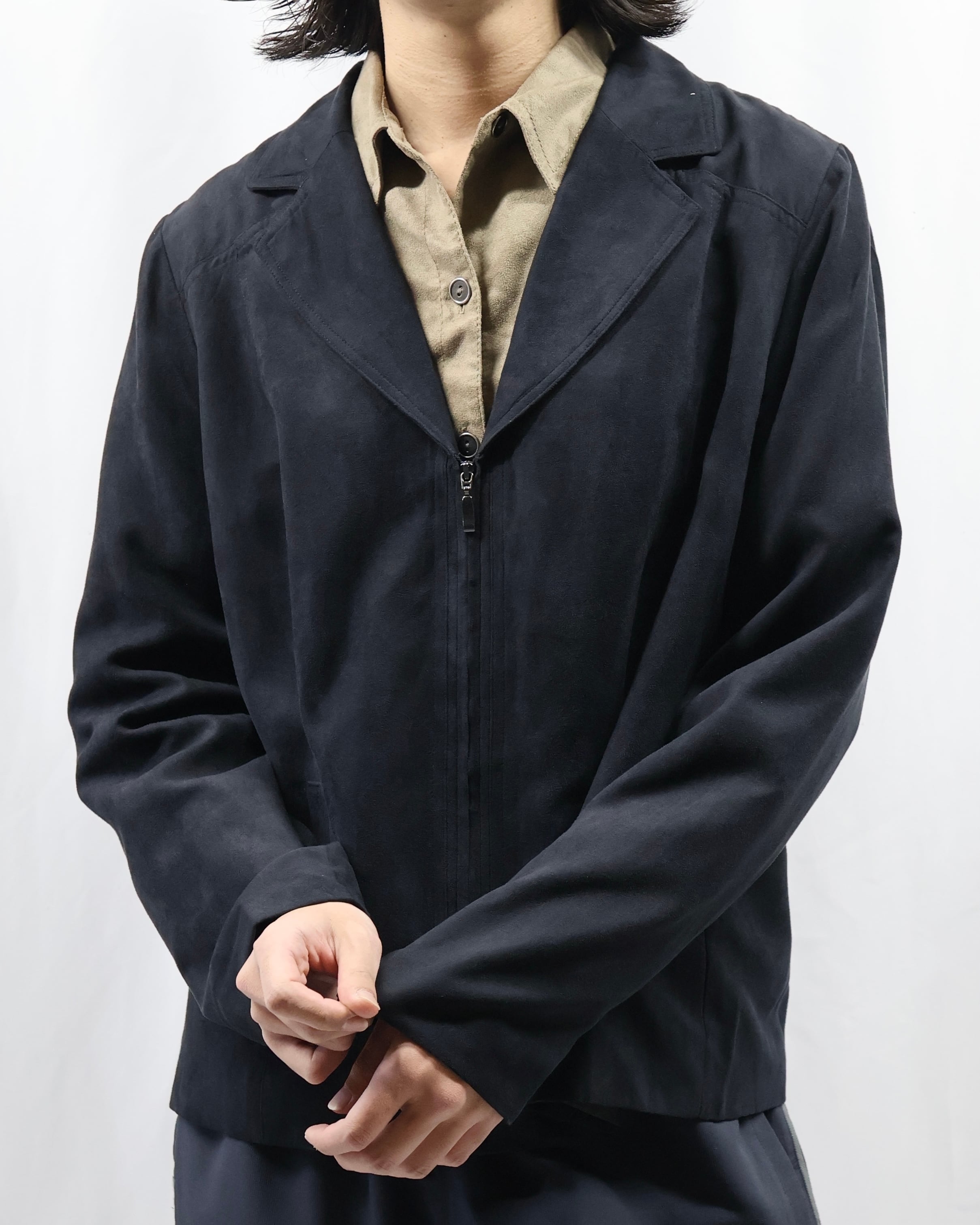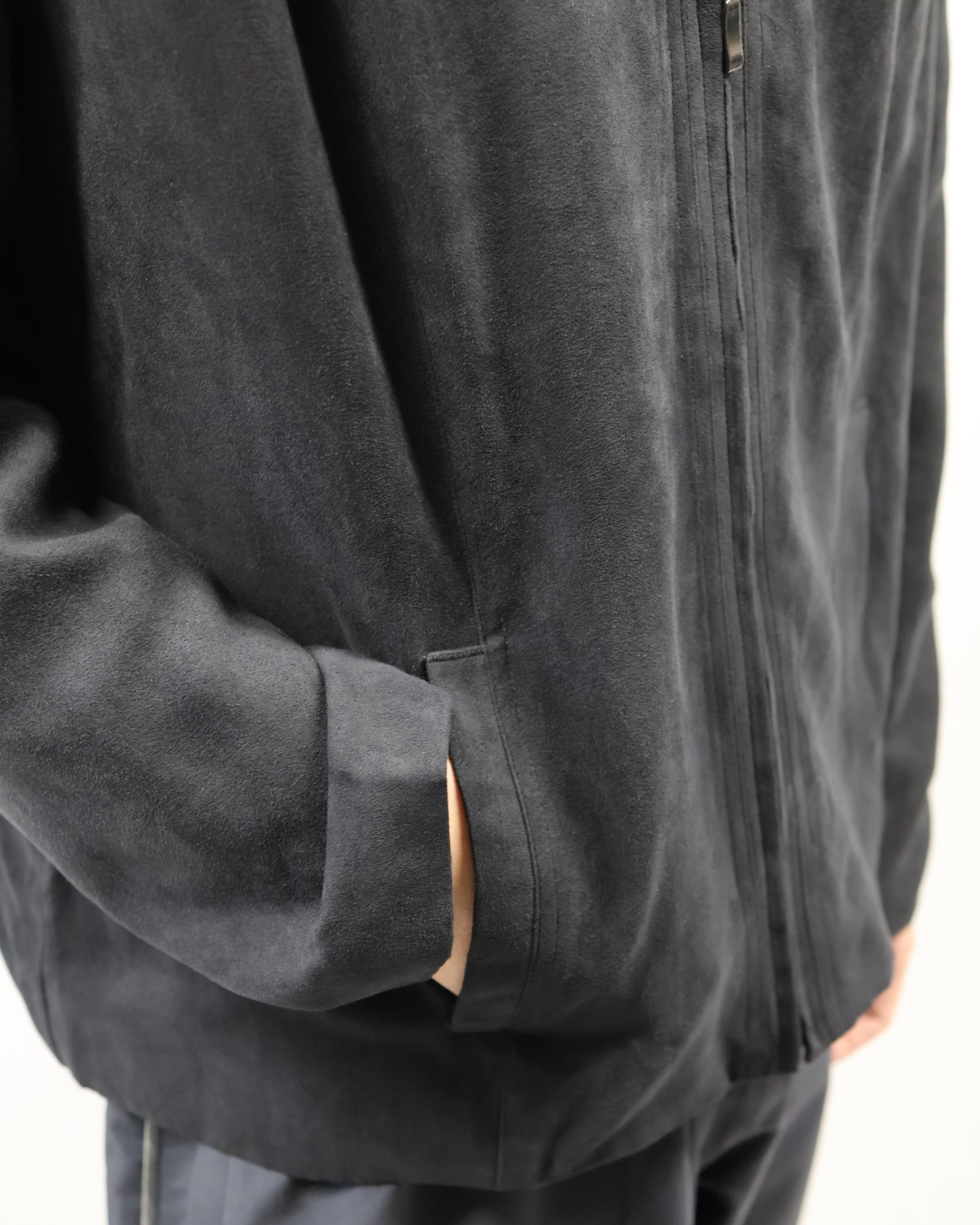 スエード調の生地感が特徴のテーラードジャケット型のジップアップブルゾン