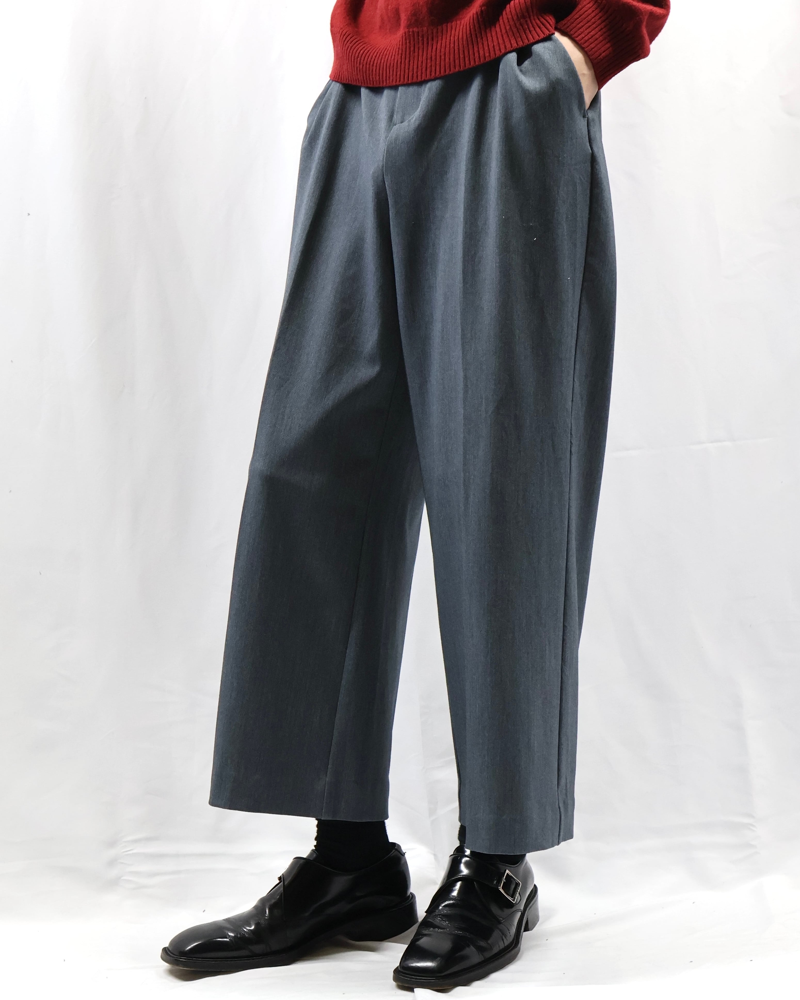 落ち着いたグレーのカラーリングでどんな色とも馴染むパンツ。ストンと落ちる綺麗なシルエットでモードにもストリートにも対応出来るアイテム。