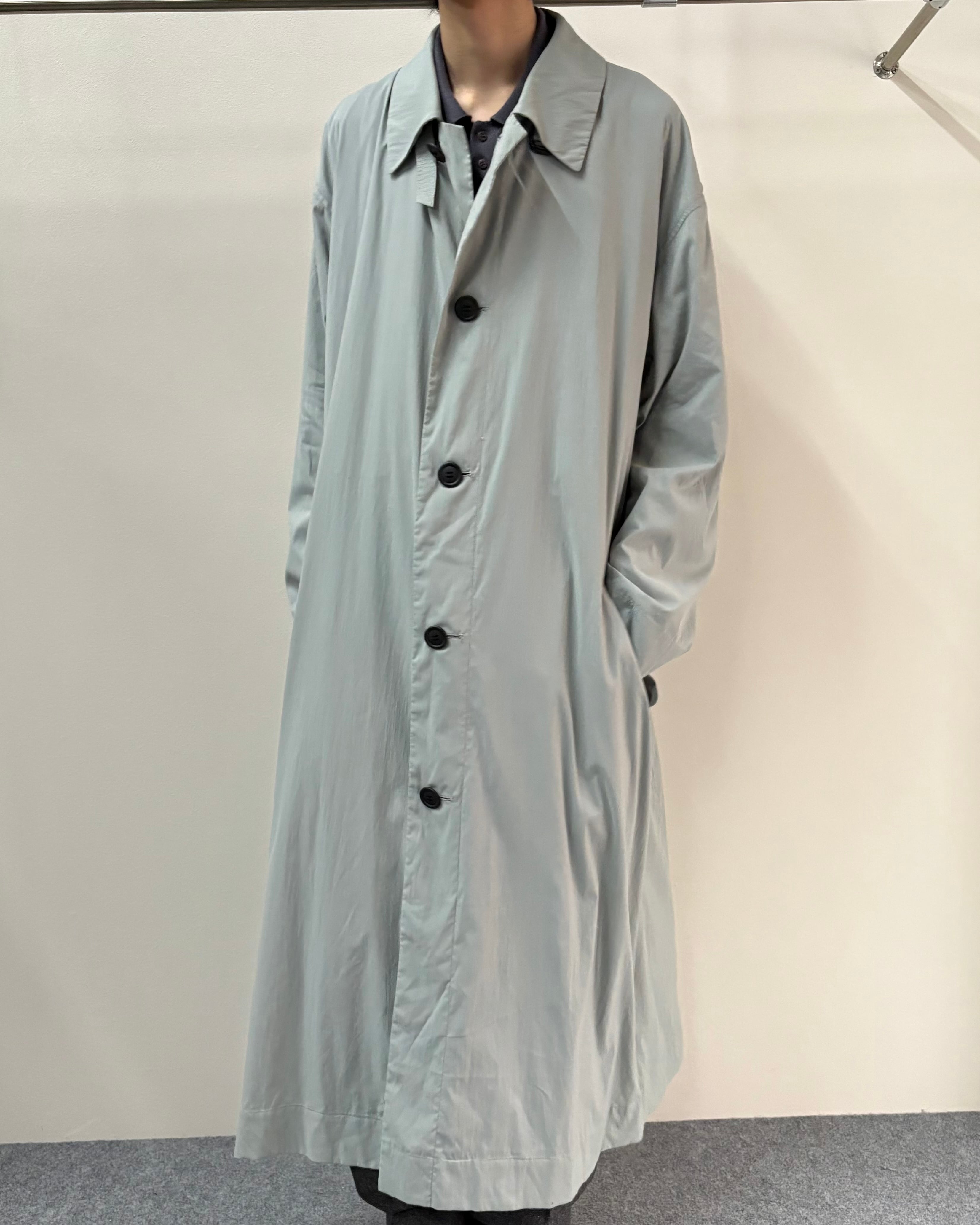 イッセイミヤケらしいカラーリングと無駄を削ったミニマルなデザインが特徴のスーパーロングステンカラーコート