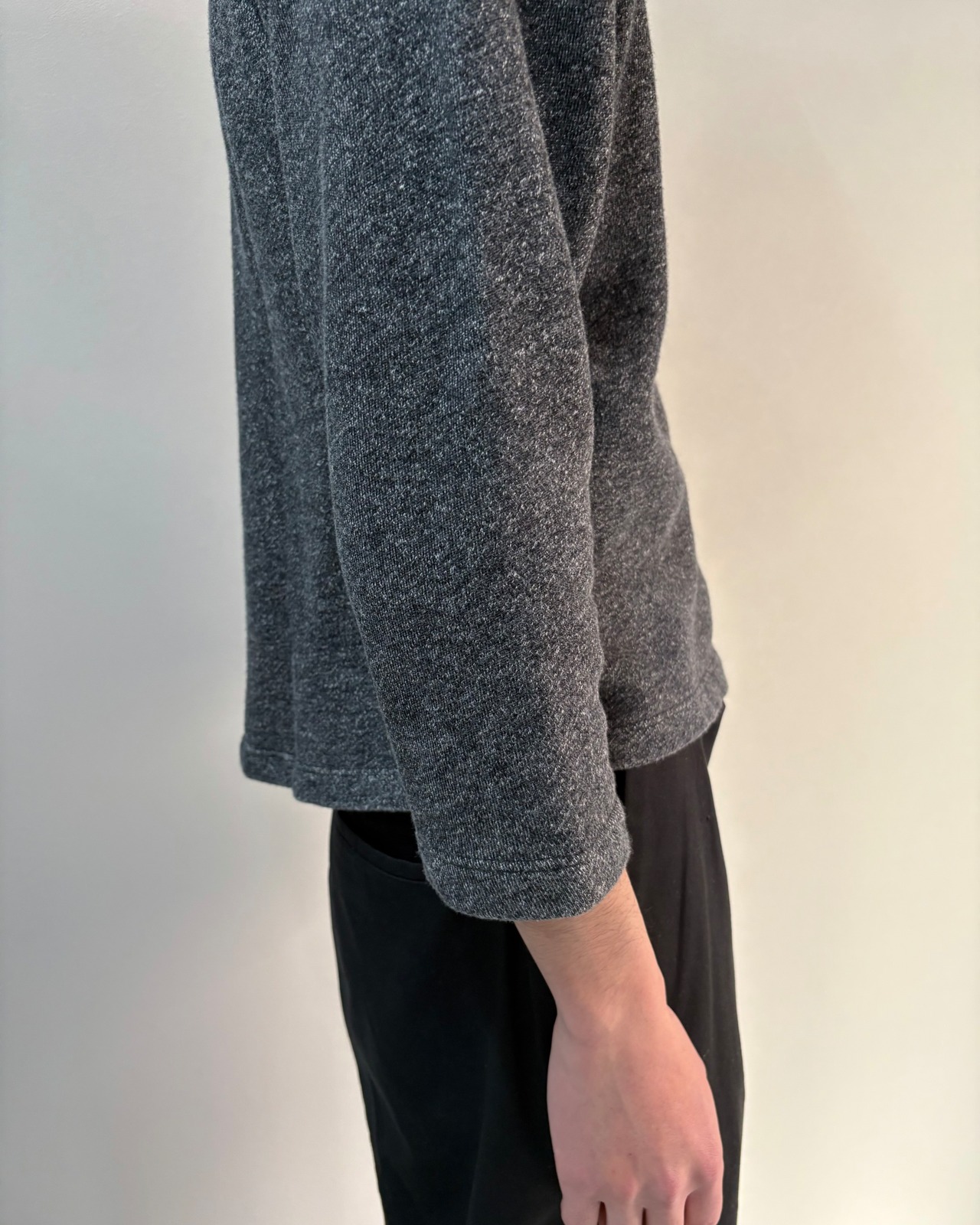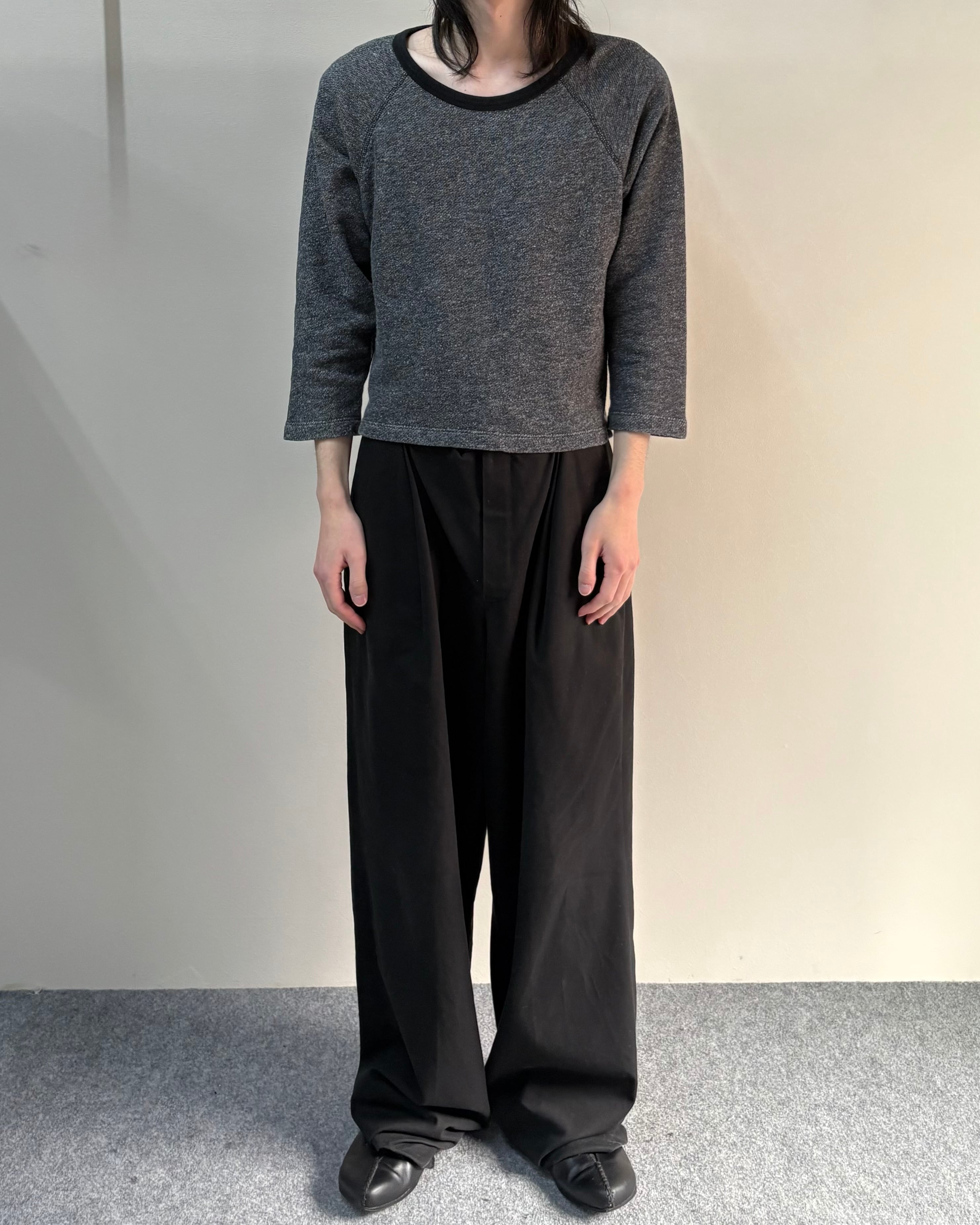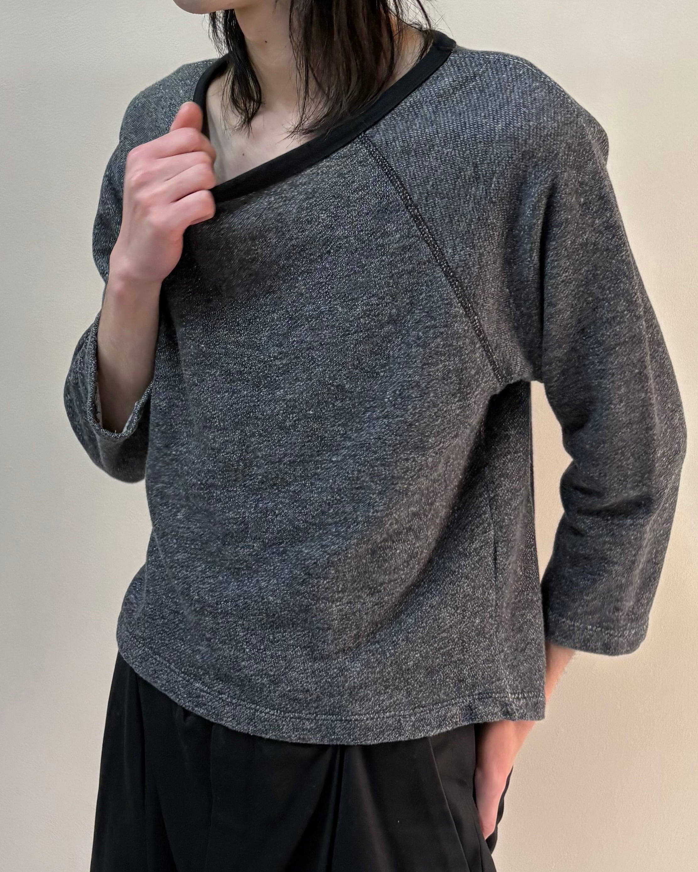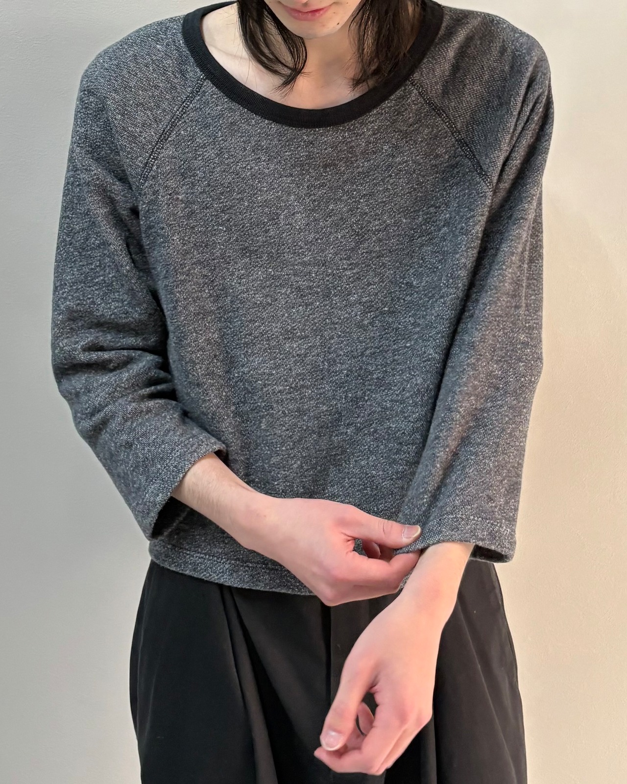 ラグランスリーブと7分袖のバランスが、ラフさと上品さを両立。普段使いからモードなスタイリングまで幅広く活躍する一着。