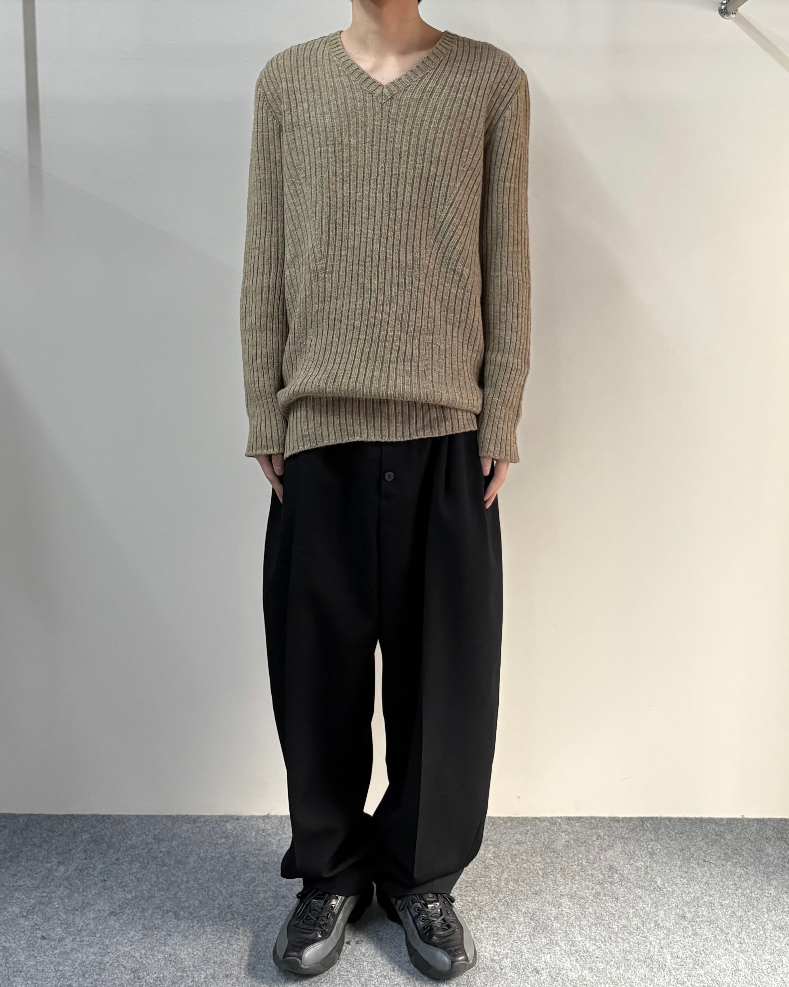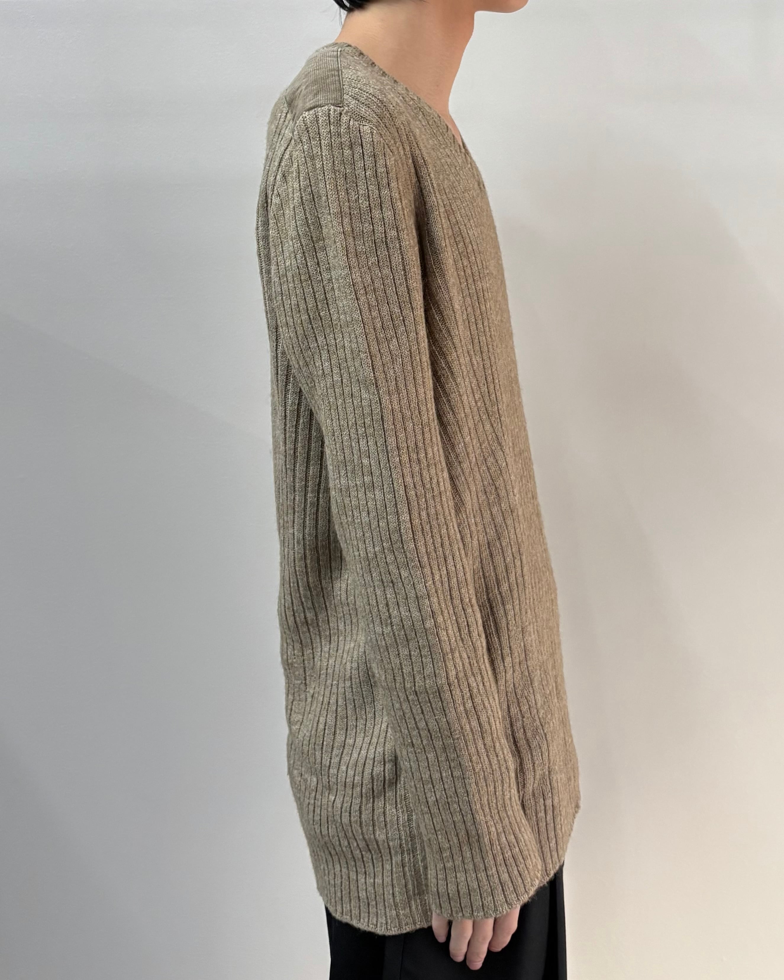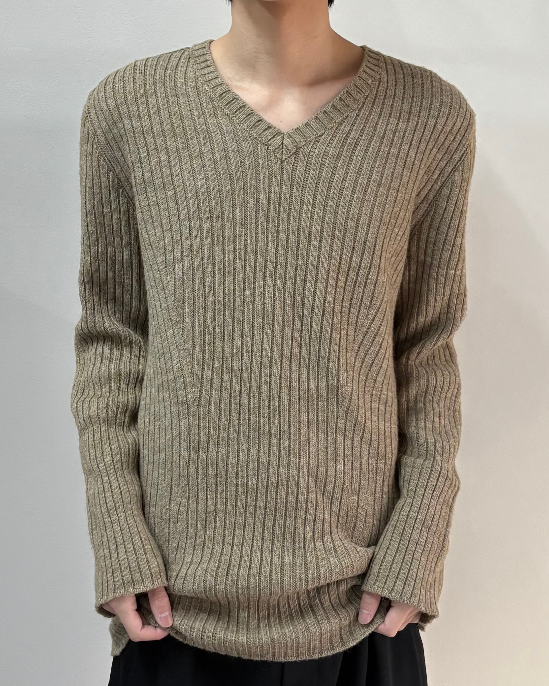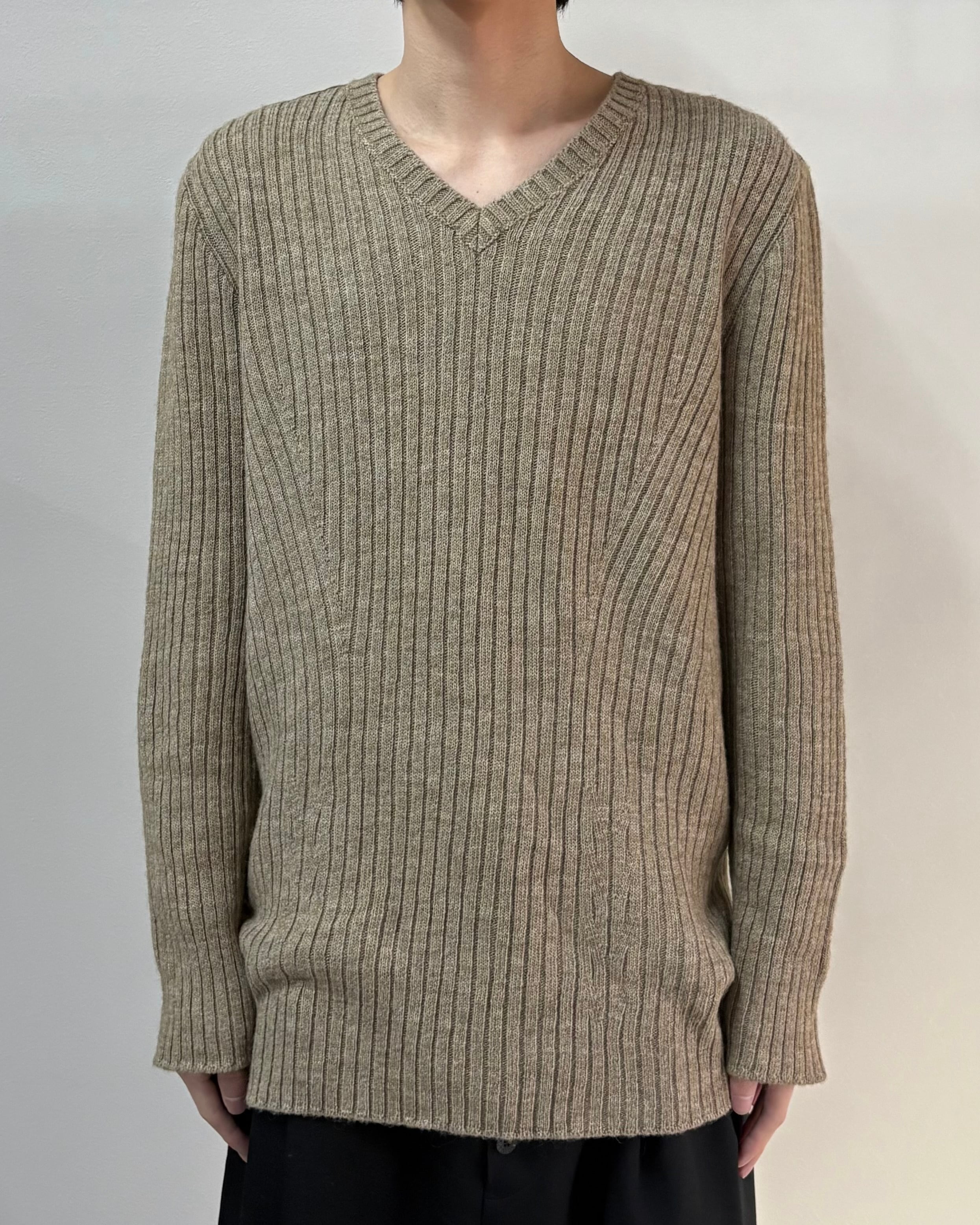 ウール混の柔らかい生地感でゆるく身体に沿うデザインが特徴。シンプルながらリブの表情や肩の切り替えなど一枚で着ても様になる万能ニット。