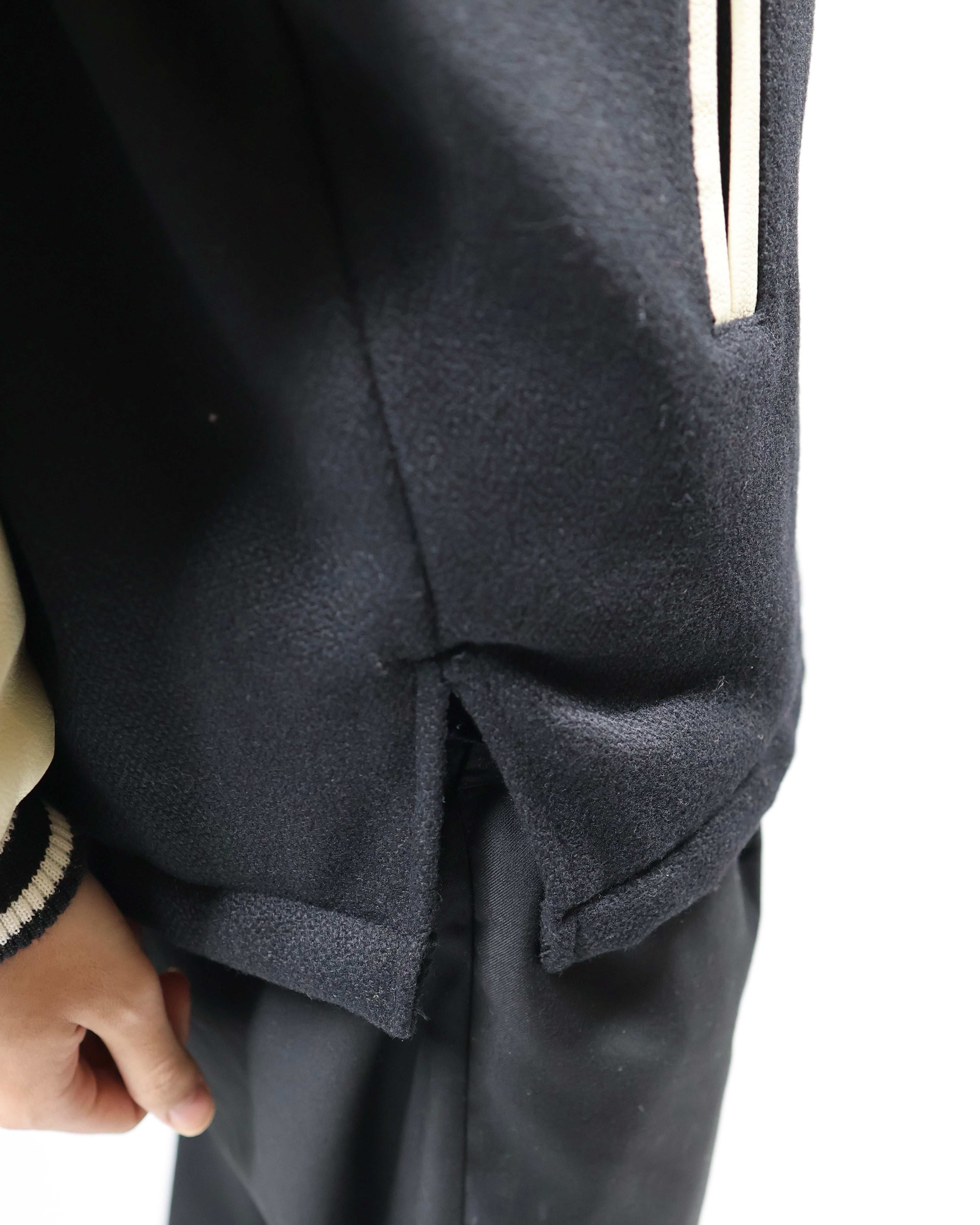ボディには温かみのあるウールメルトン、スリーブには滑らかなレザーを組み合わせ、コントラストの効いた存在感あるアイテム。