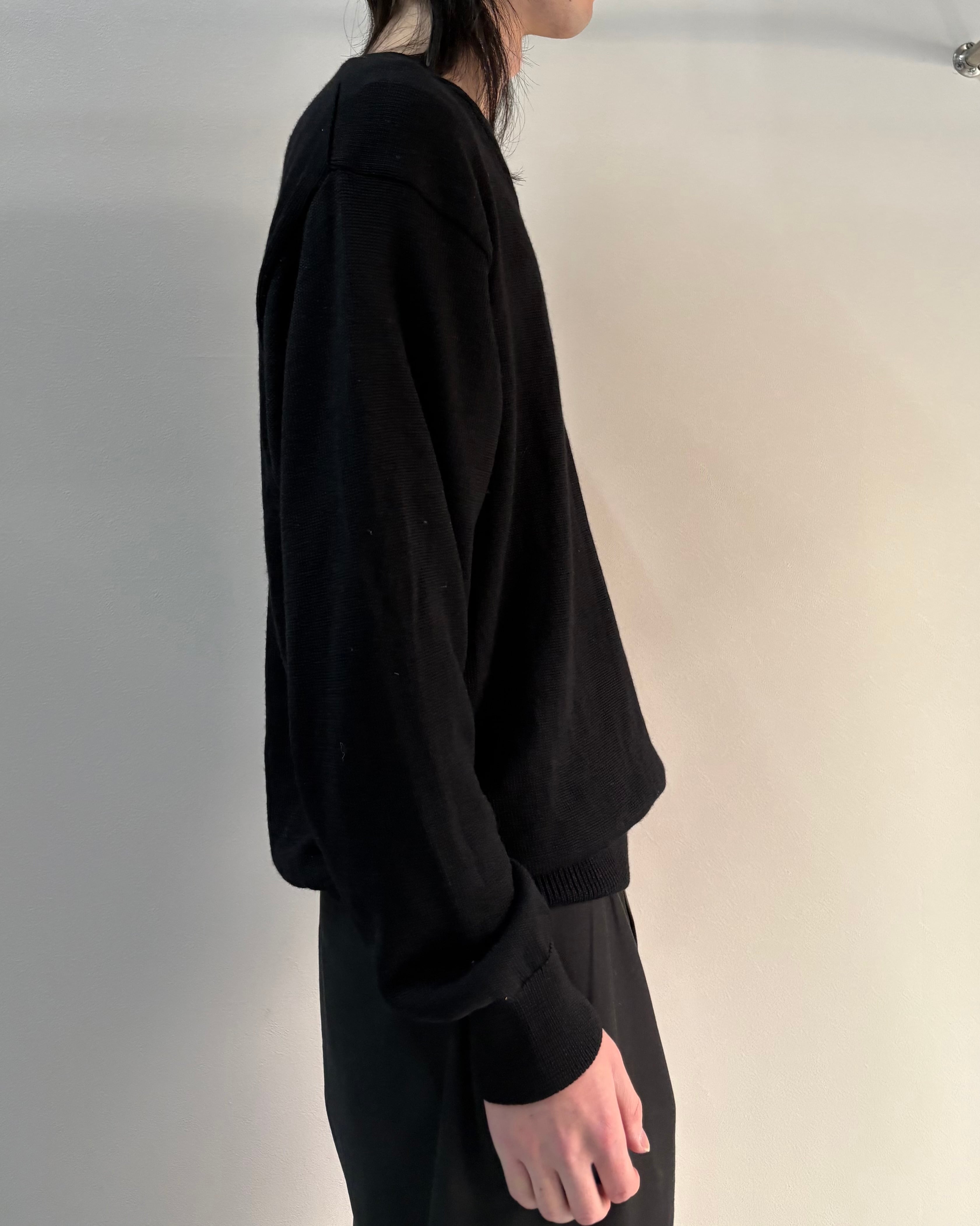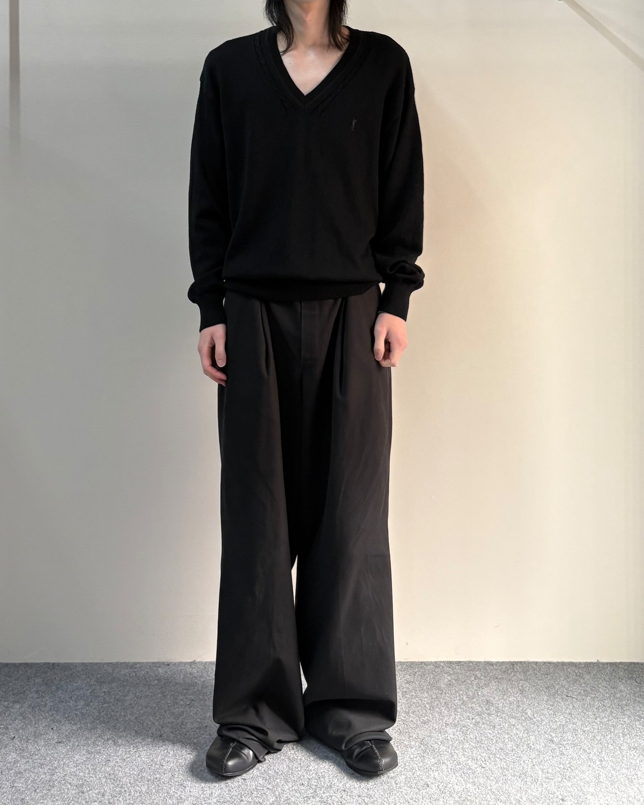 vネックの開き具合が程よい抜け感を出せ、首元のさり気ないデザインも気品さを感じられます