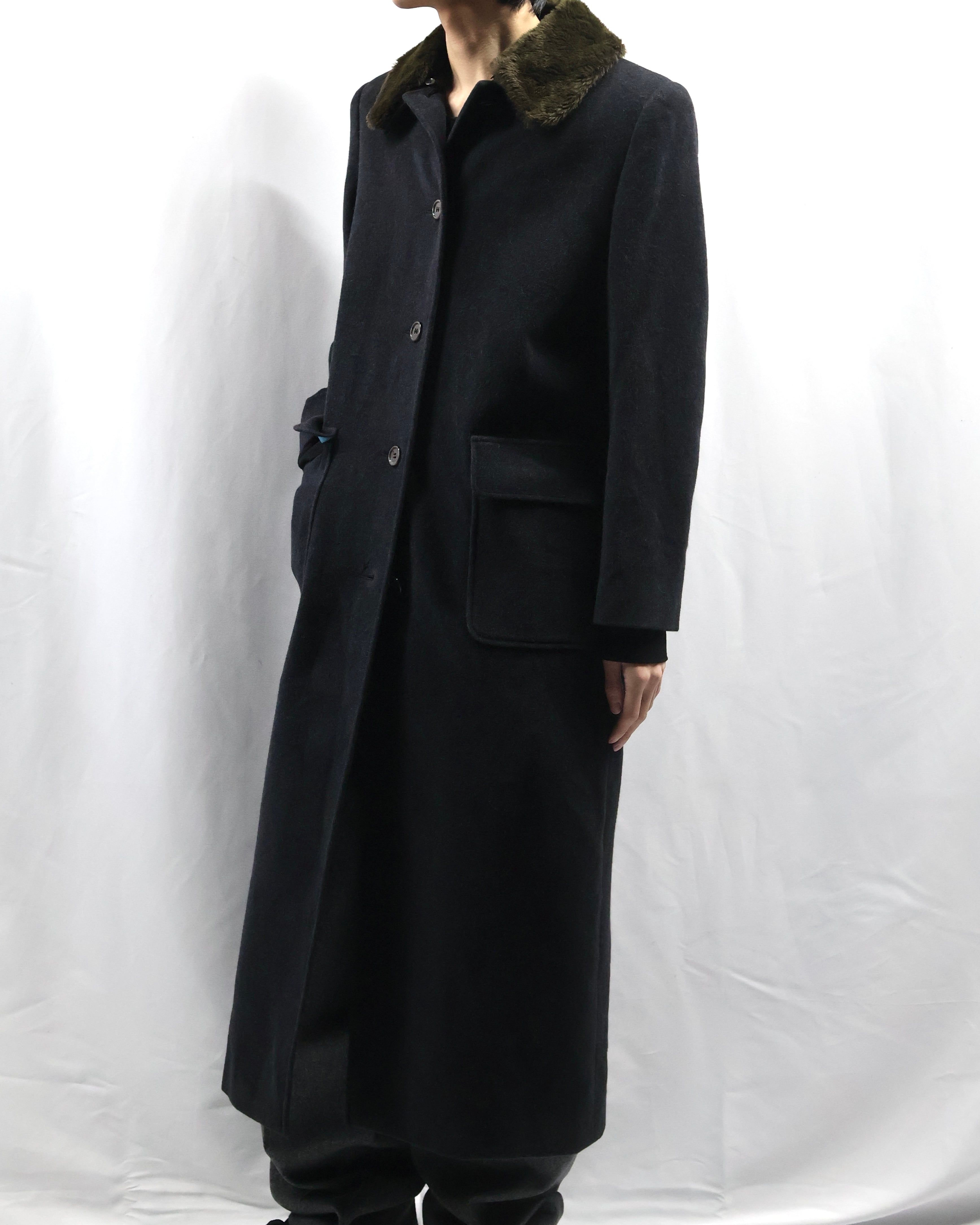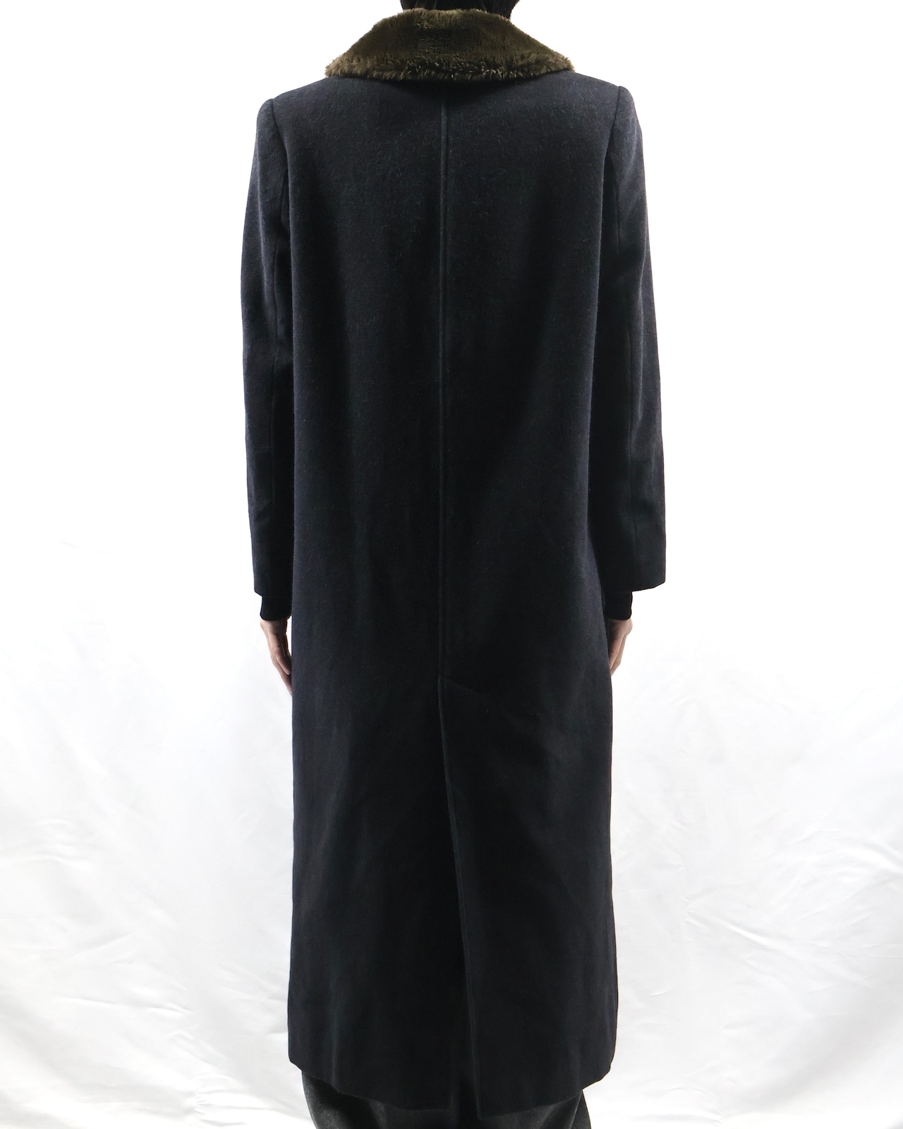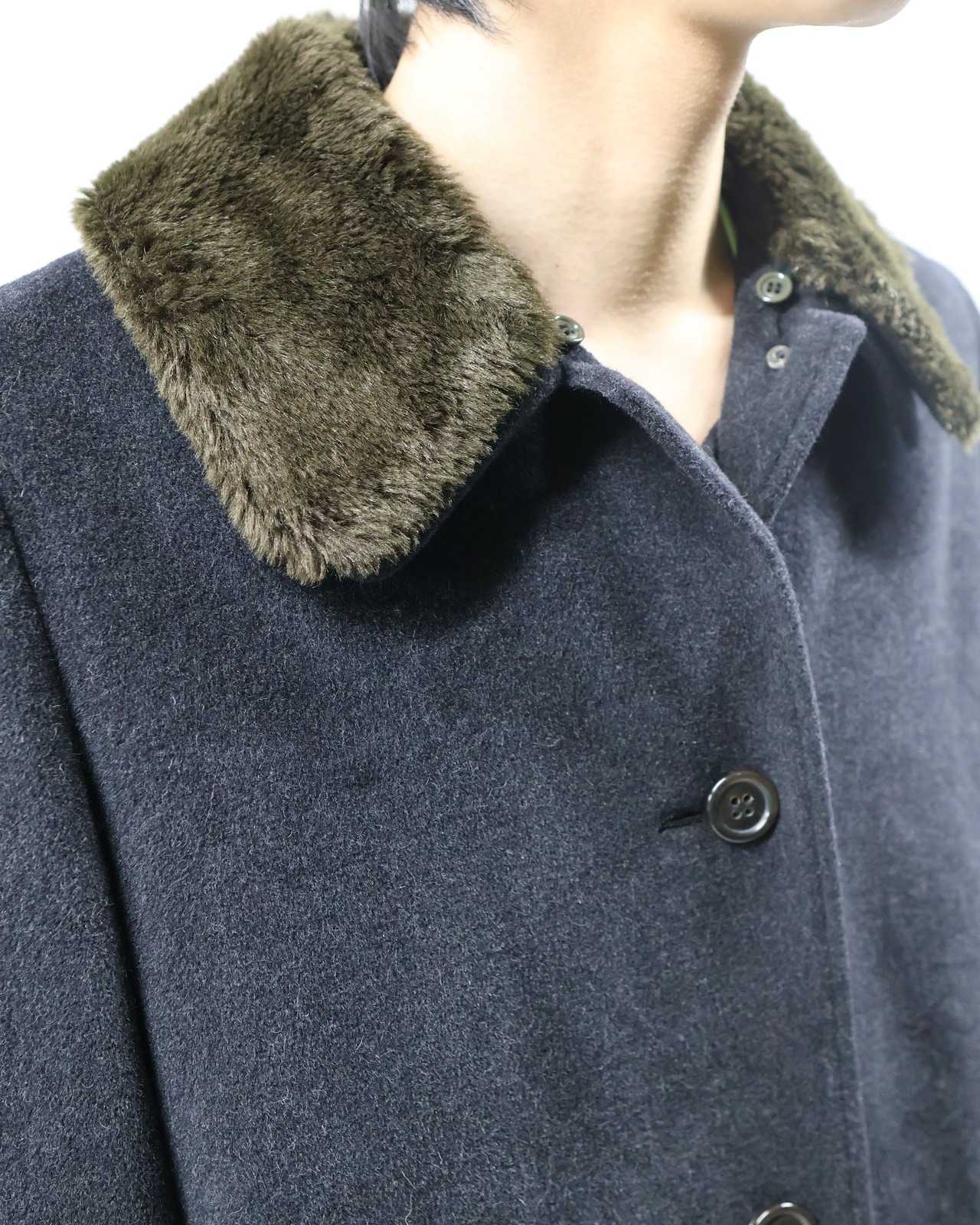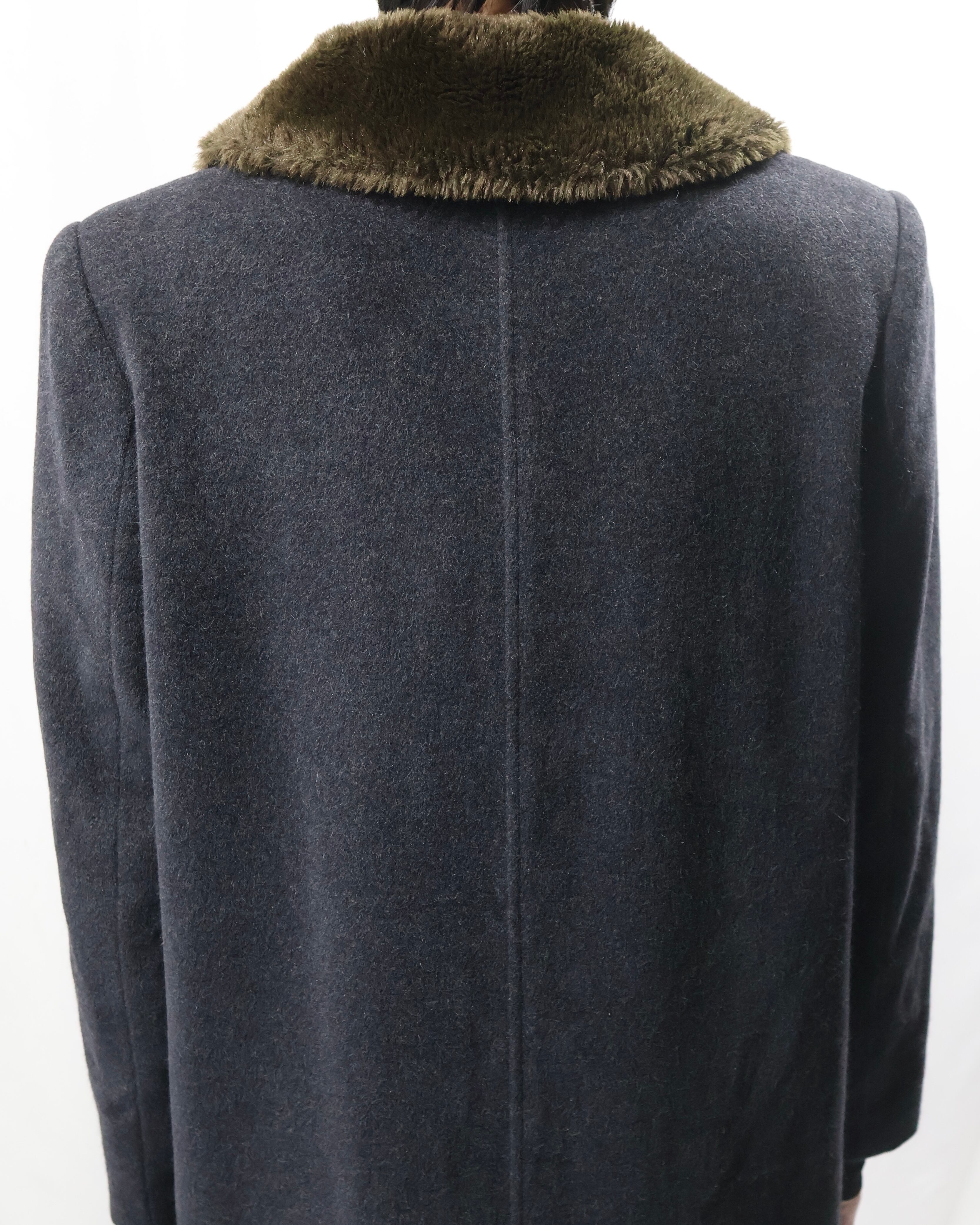落ち着いた深みのあるグレーカラーと長めの着丈、襟元に取り外し可能なファーを組み合わせることで、クラシックながらもアクセントの効いたデザイン。羽織るだけで様になるコート。