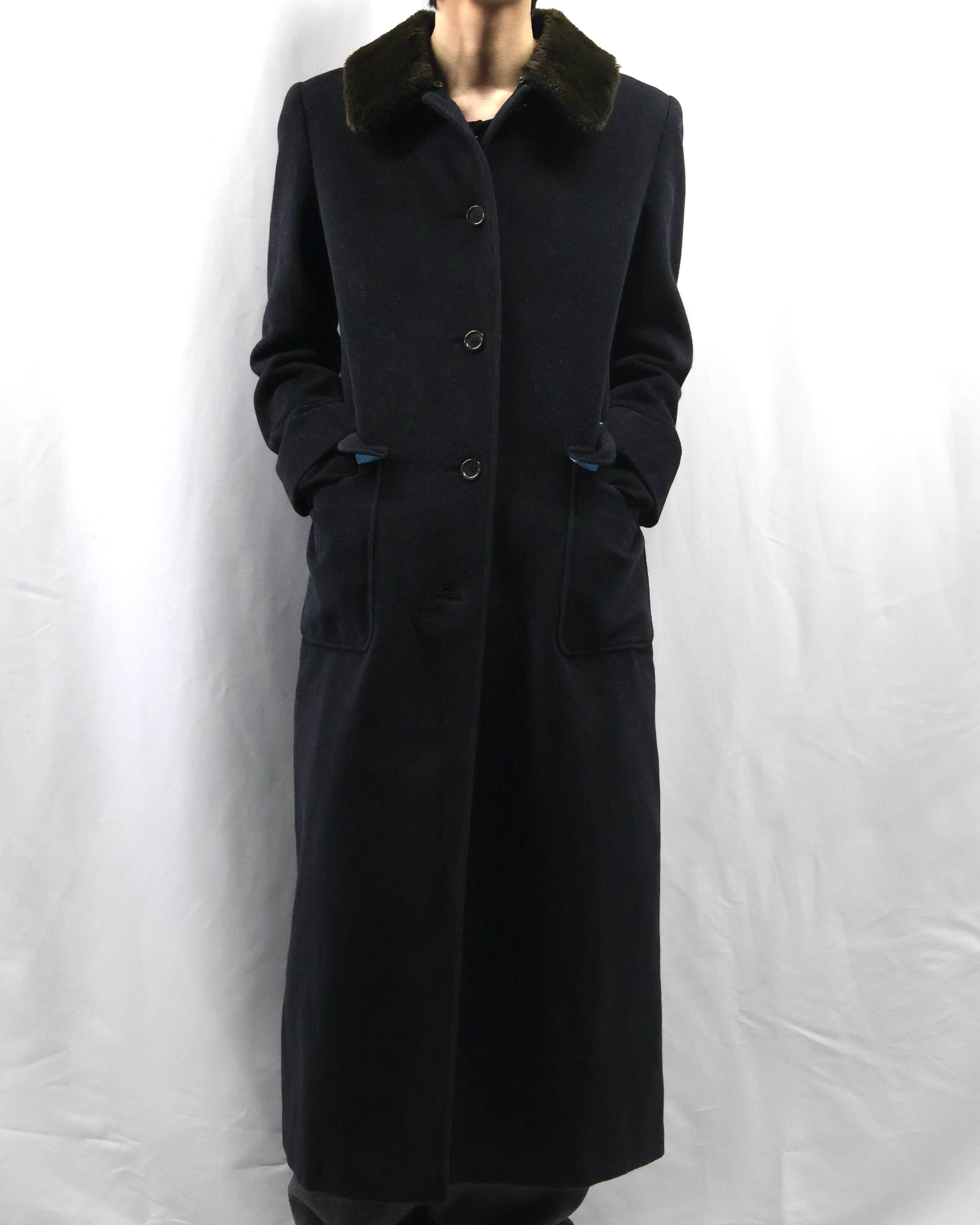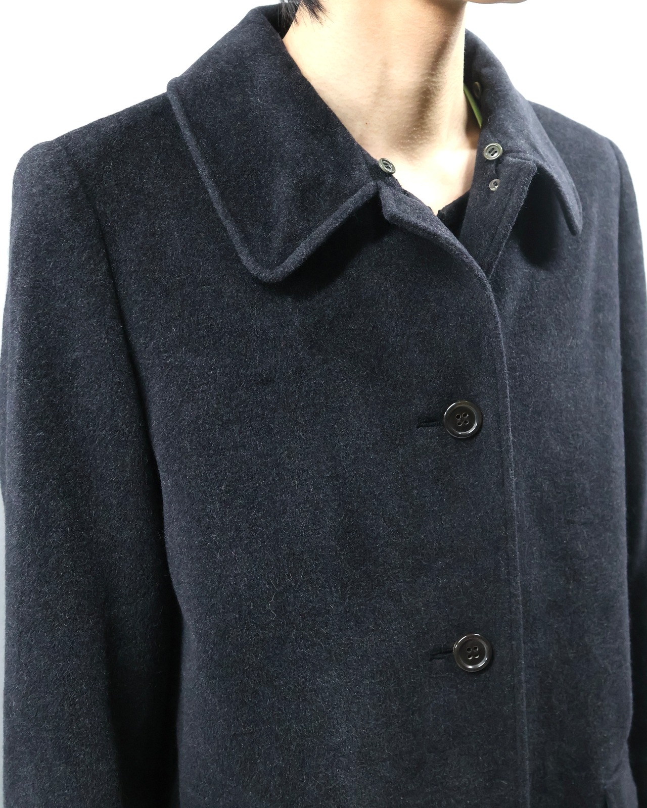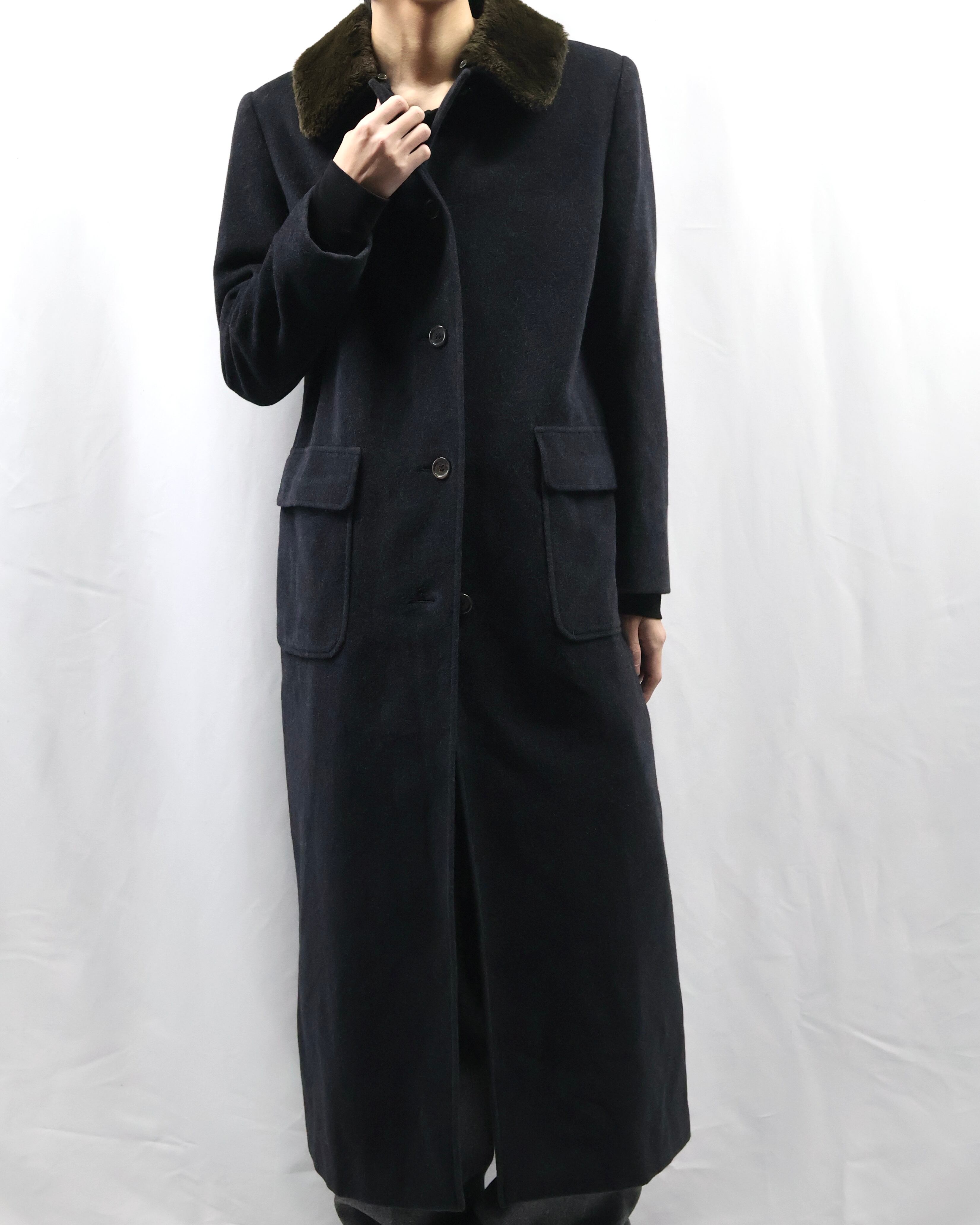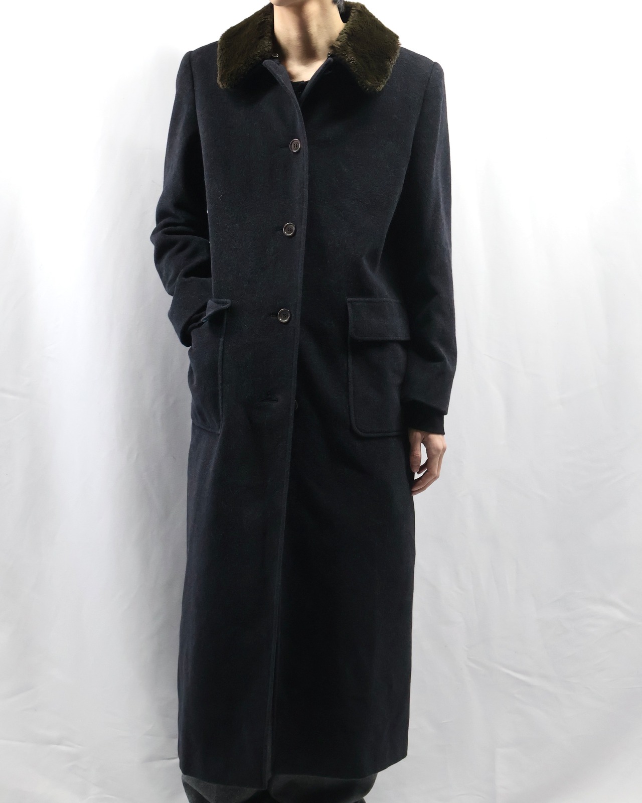 落ち着いた深みのあるグレーカラーと長めの着丈、襟元に取り外し可能なファーを組み合わせることで、クラシックながらもアクセントの効いたデザイン。羽織るだけで様になるコート。