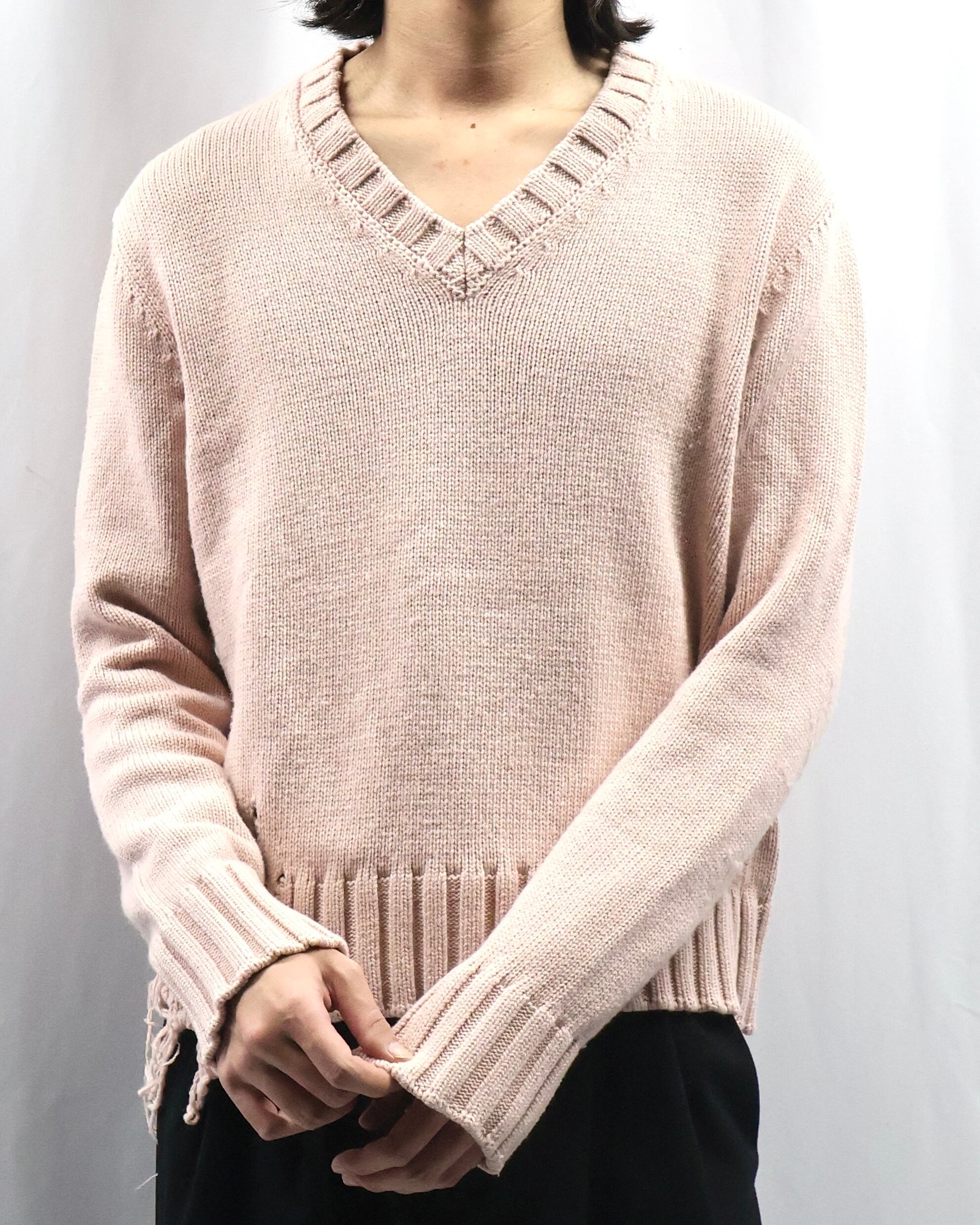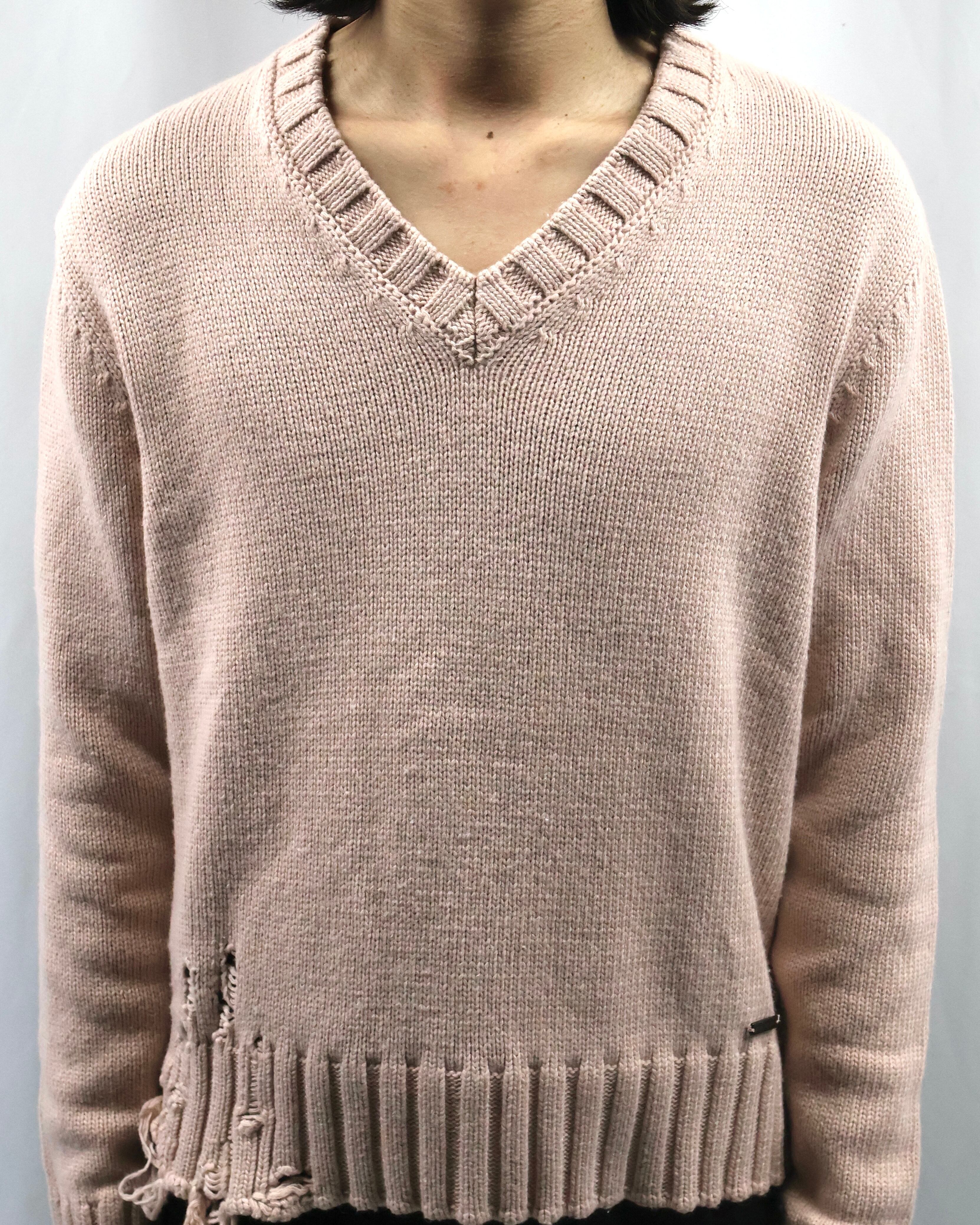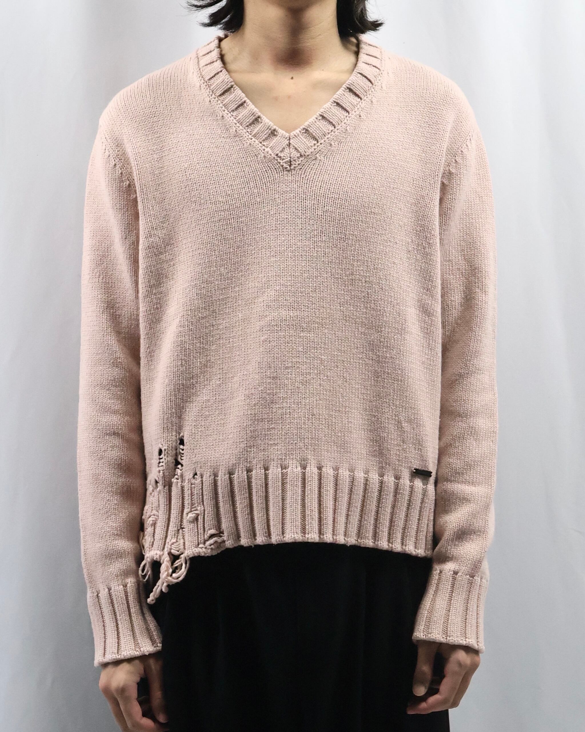 2014年DSQUARED2の柔らかなカラーリングと大胆に施されたダメージ加工が特徴のVネックニット