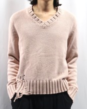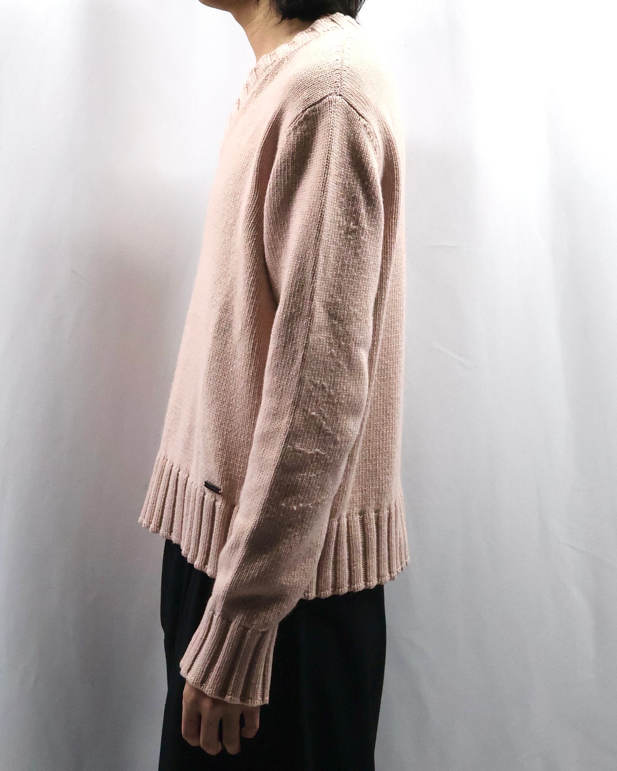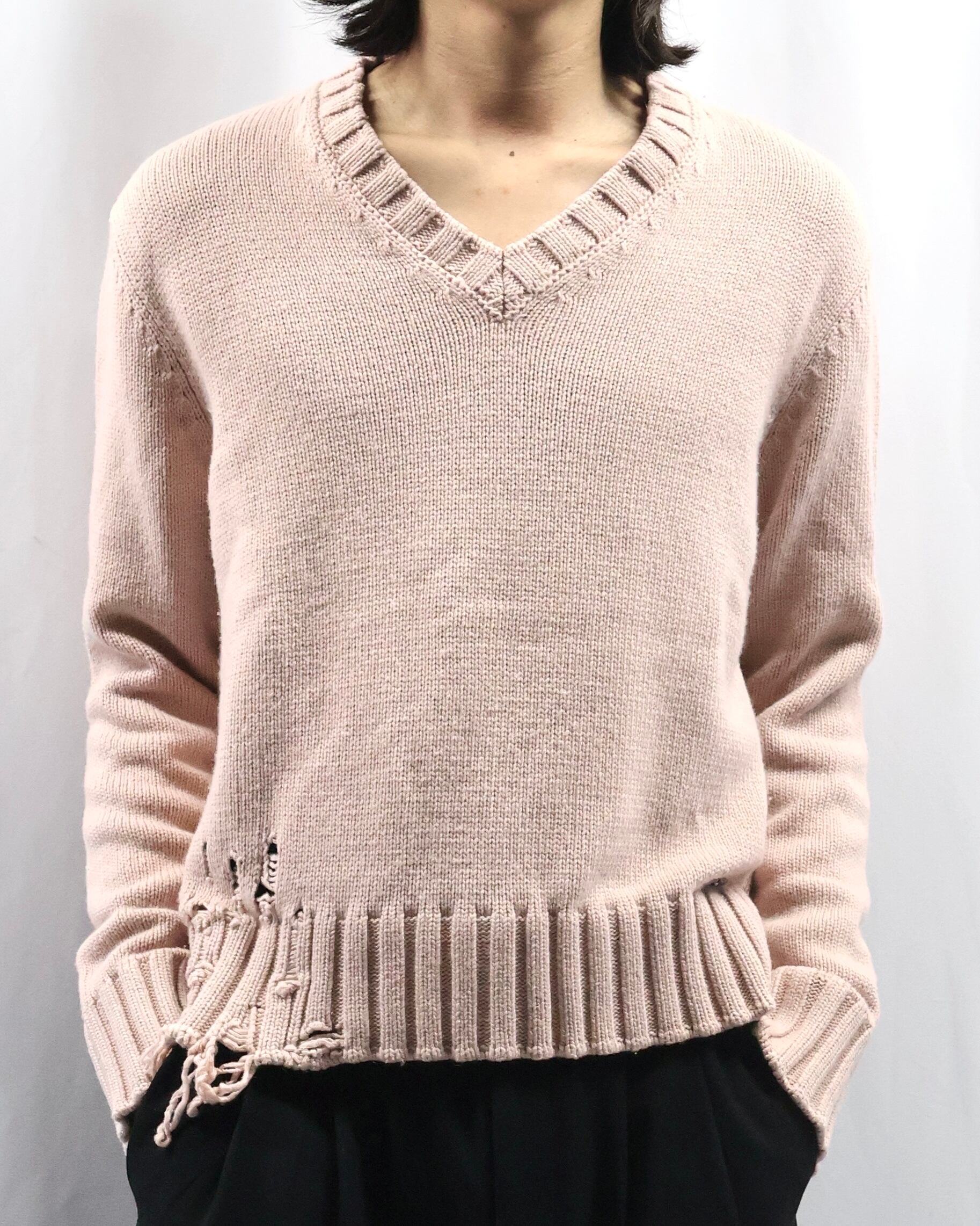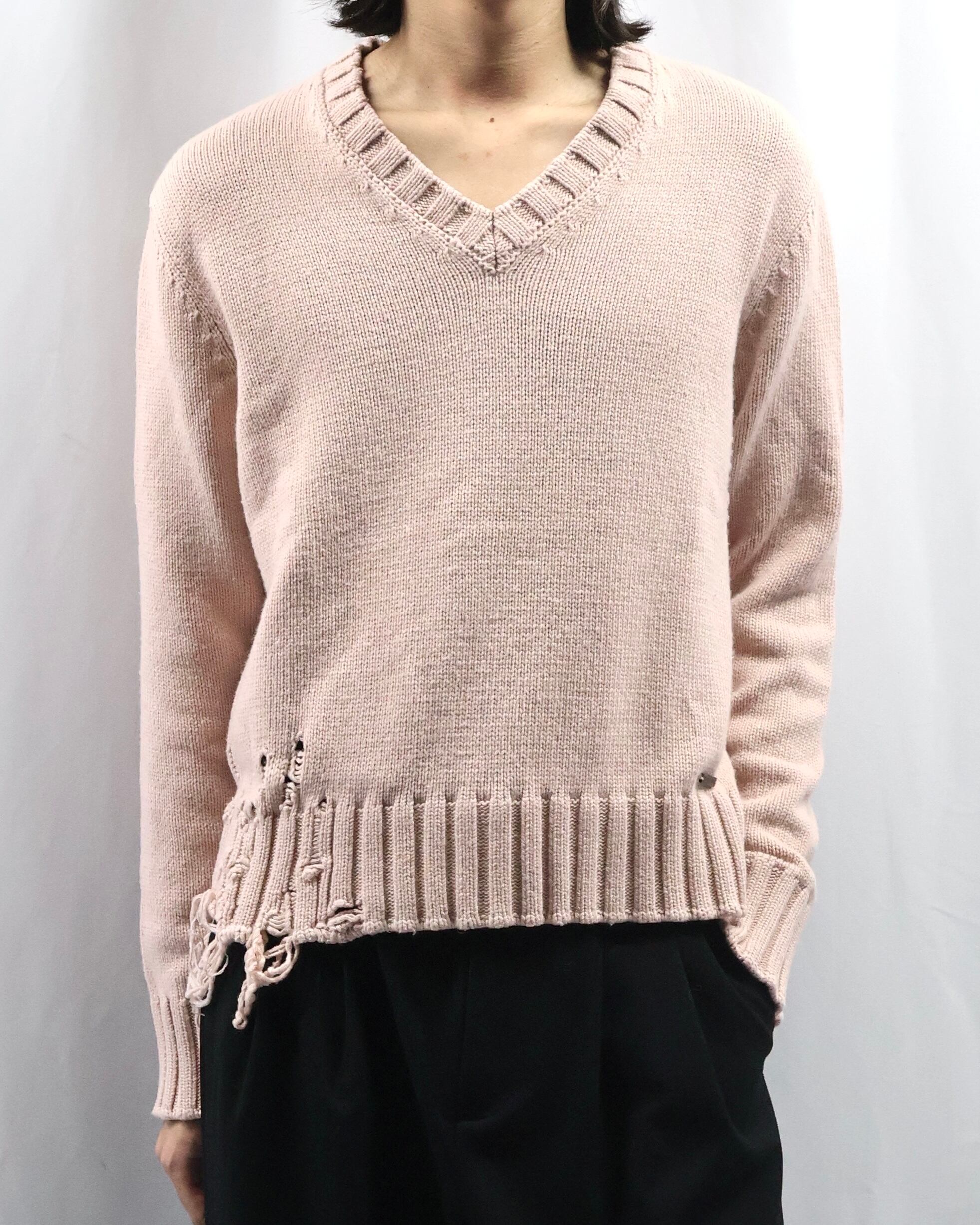2014年DSQUARED2の柔らかなカラーリングと大胆に施されたダメージ加工が特徴のVネックニット