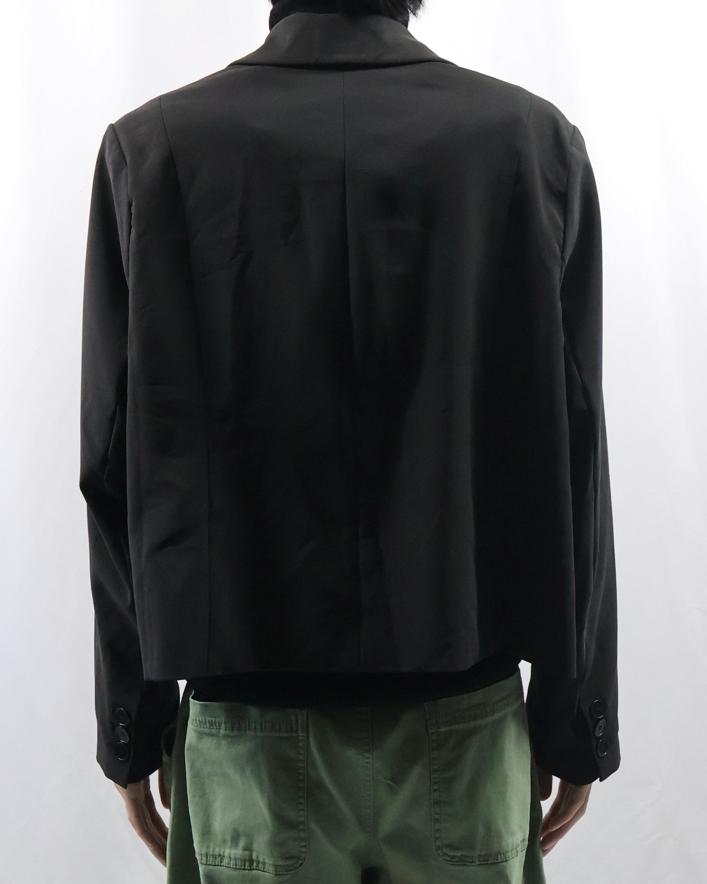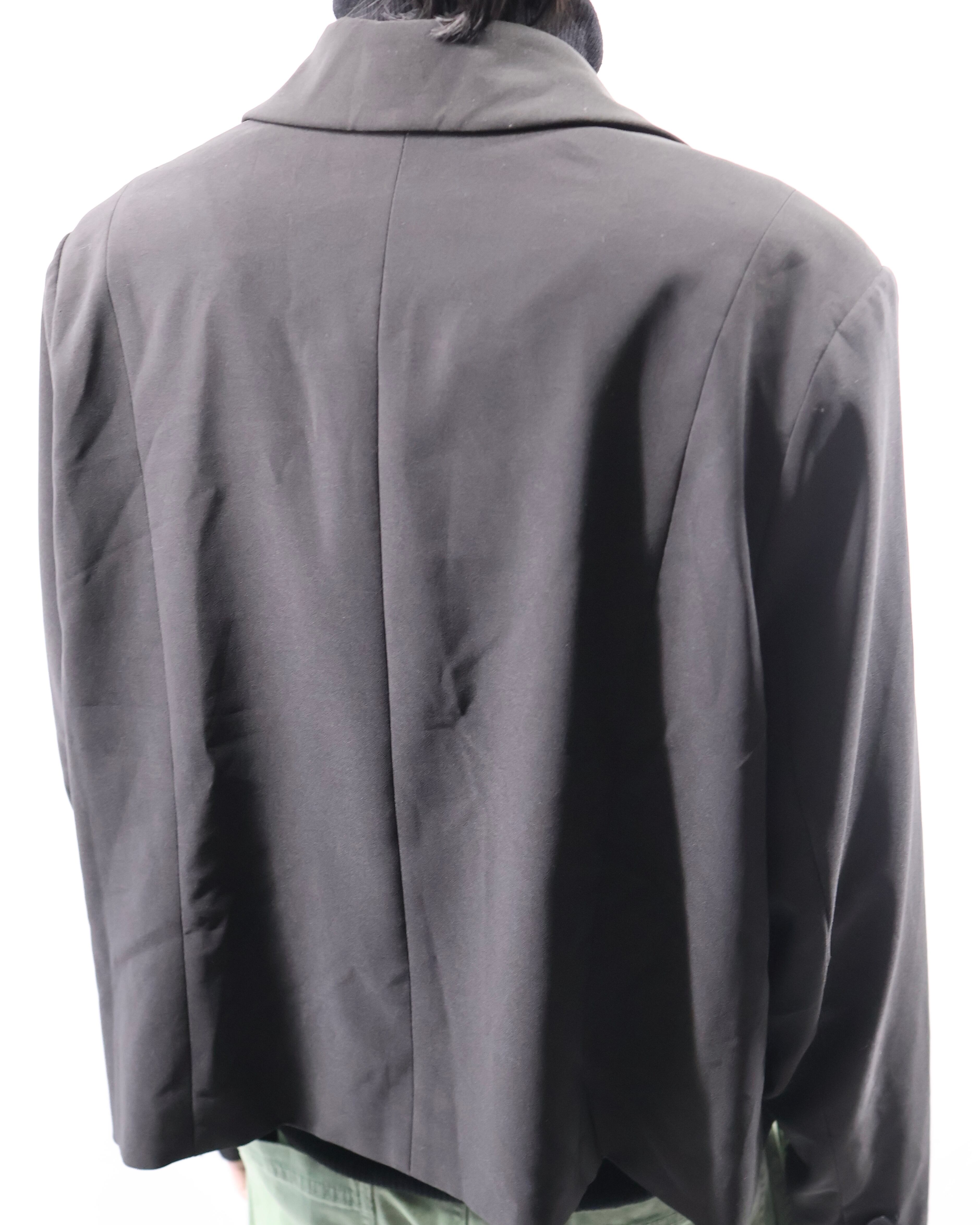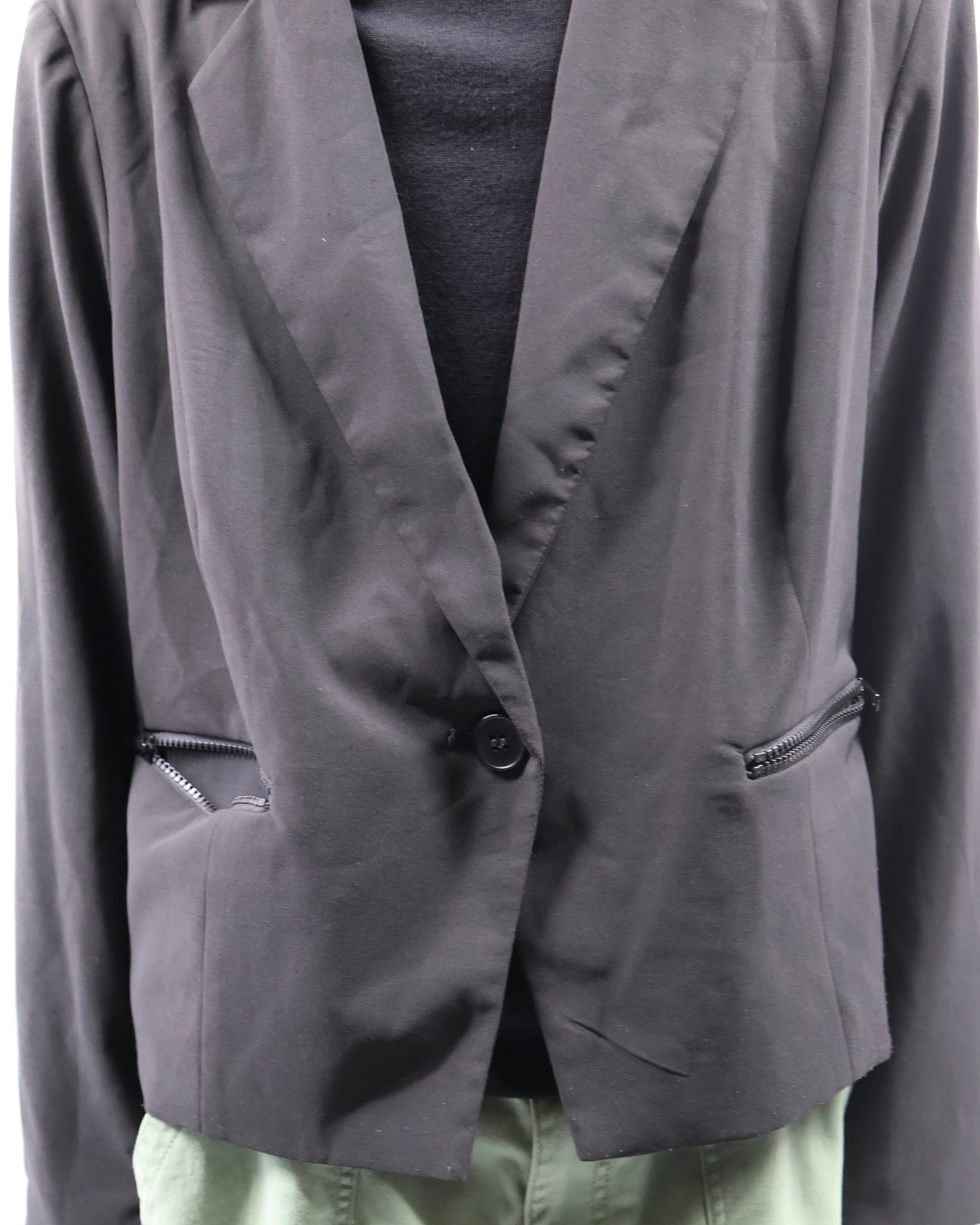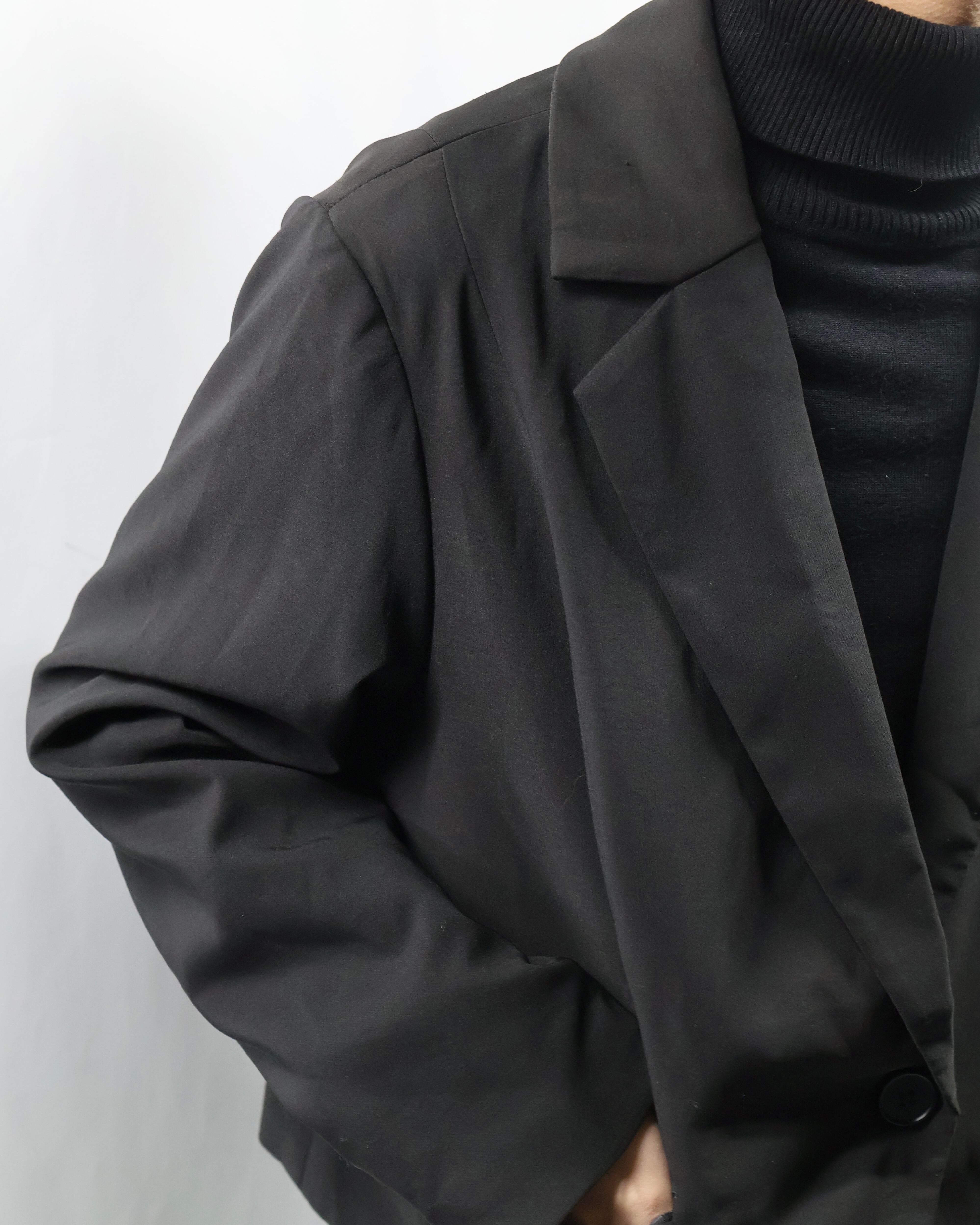 フロントは1ボタンで、サイドのジップポケットが程よいアクセントに。リラックスしたサイズ感でインナーを選ばず着用可能。
