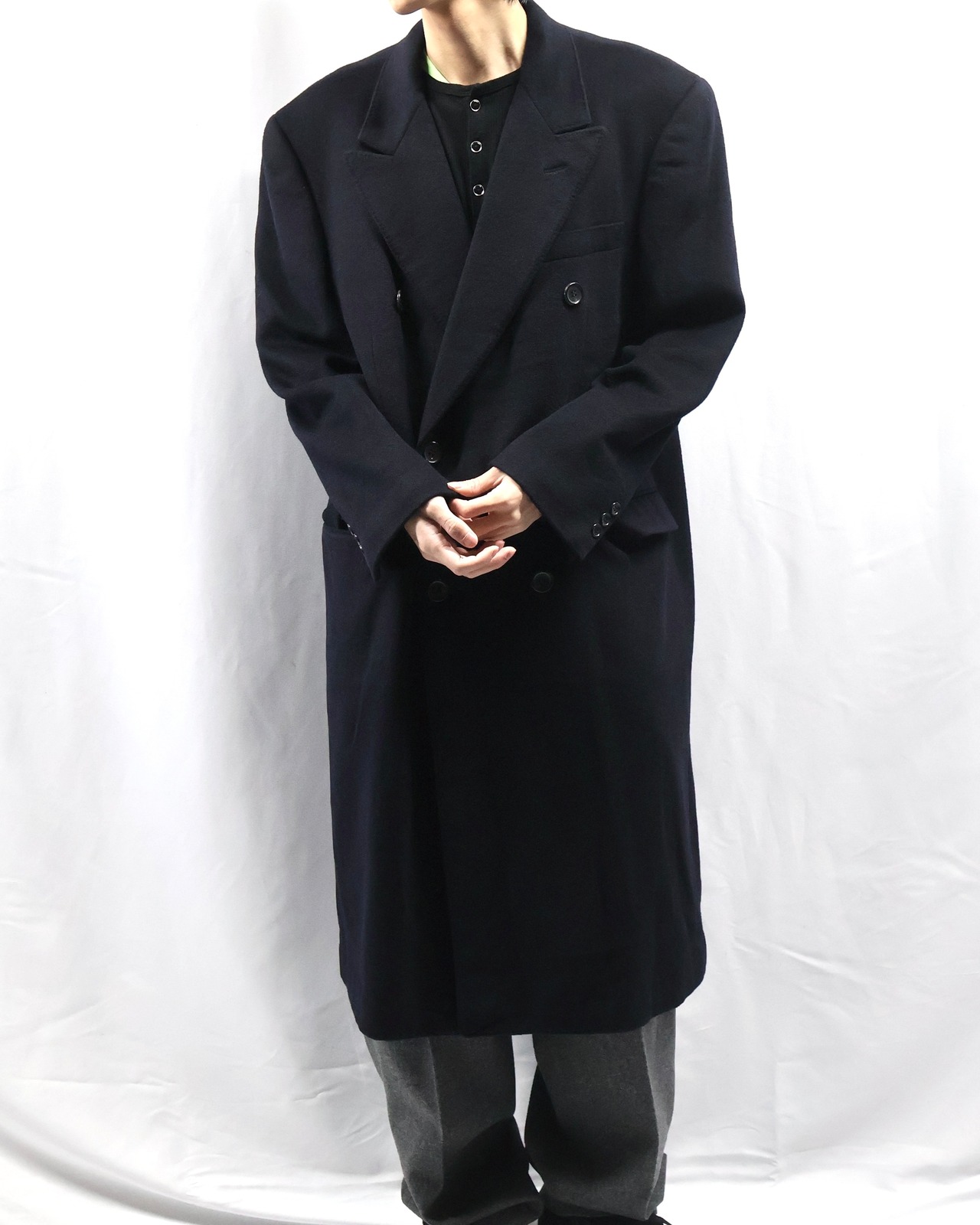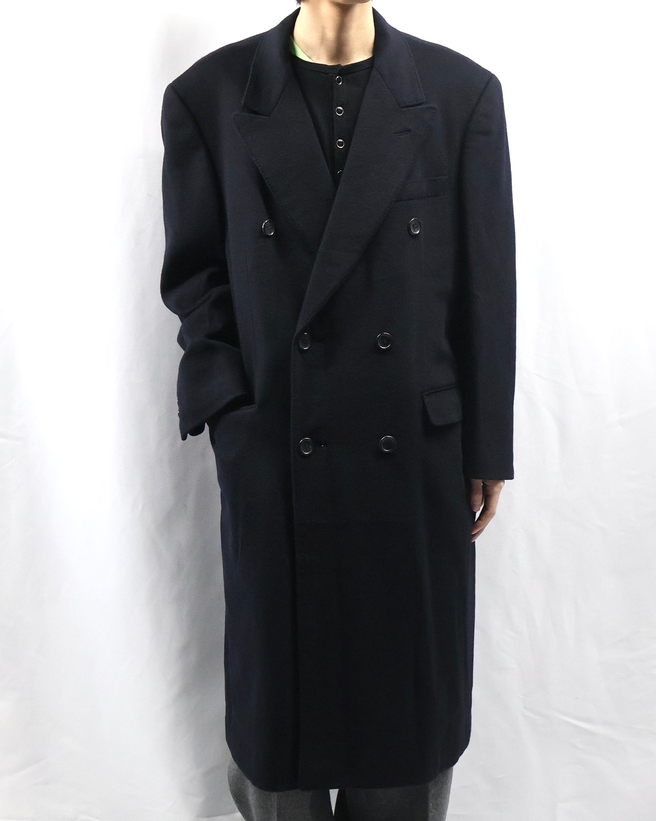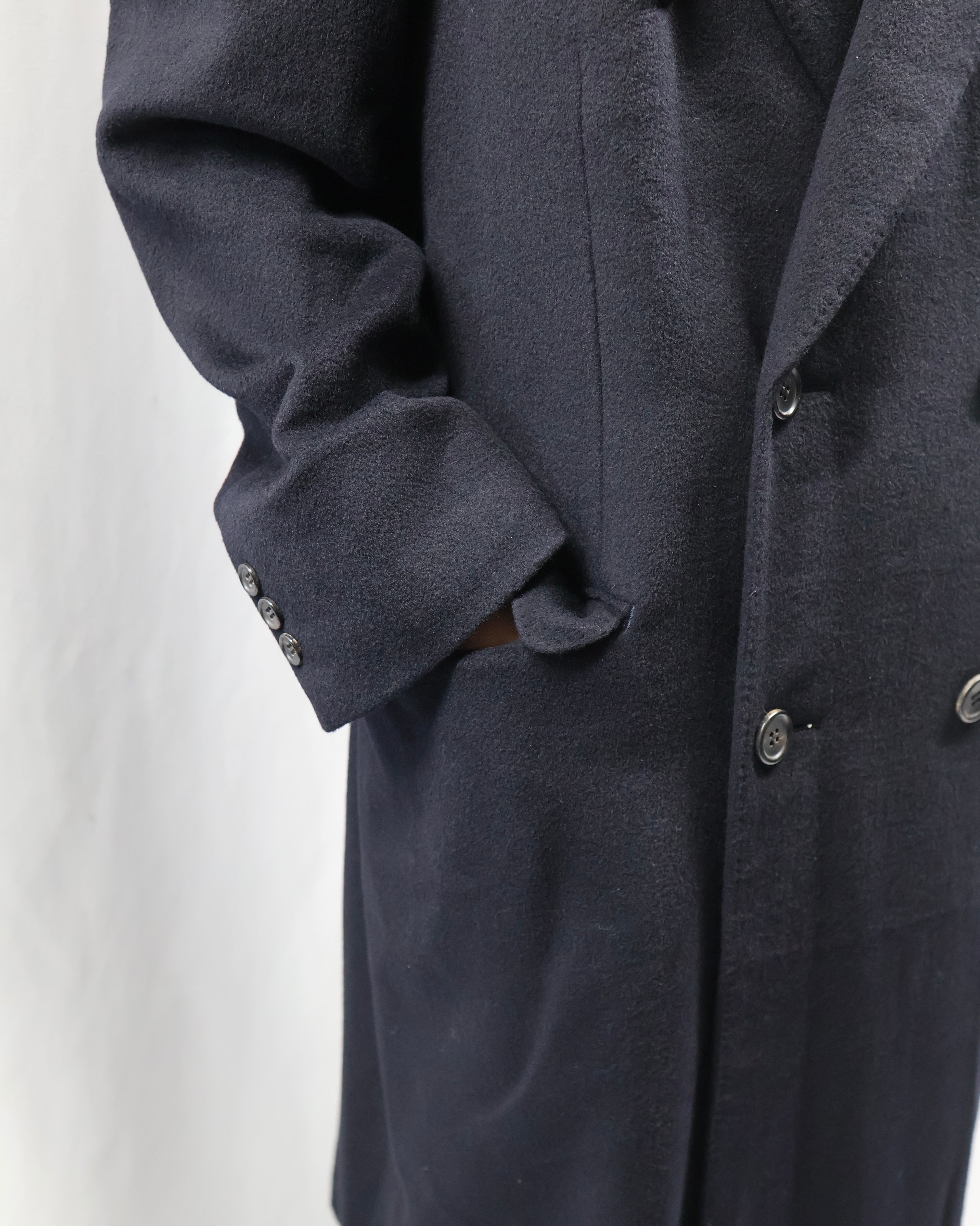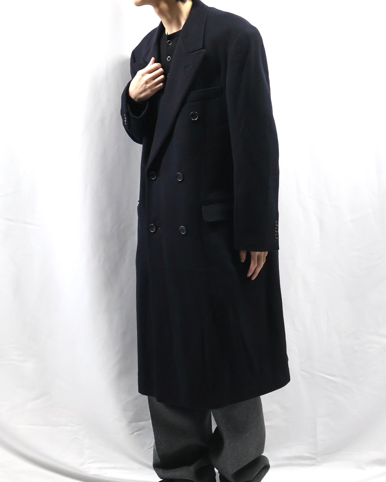 上質なカシミヤを贅沢に使用した、存在感のあるダブルブレステッドロングコート