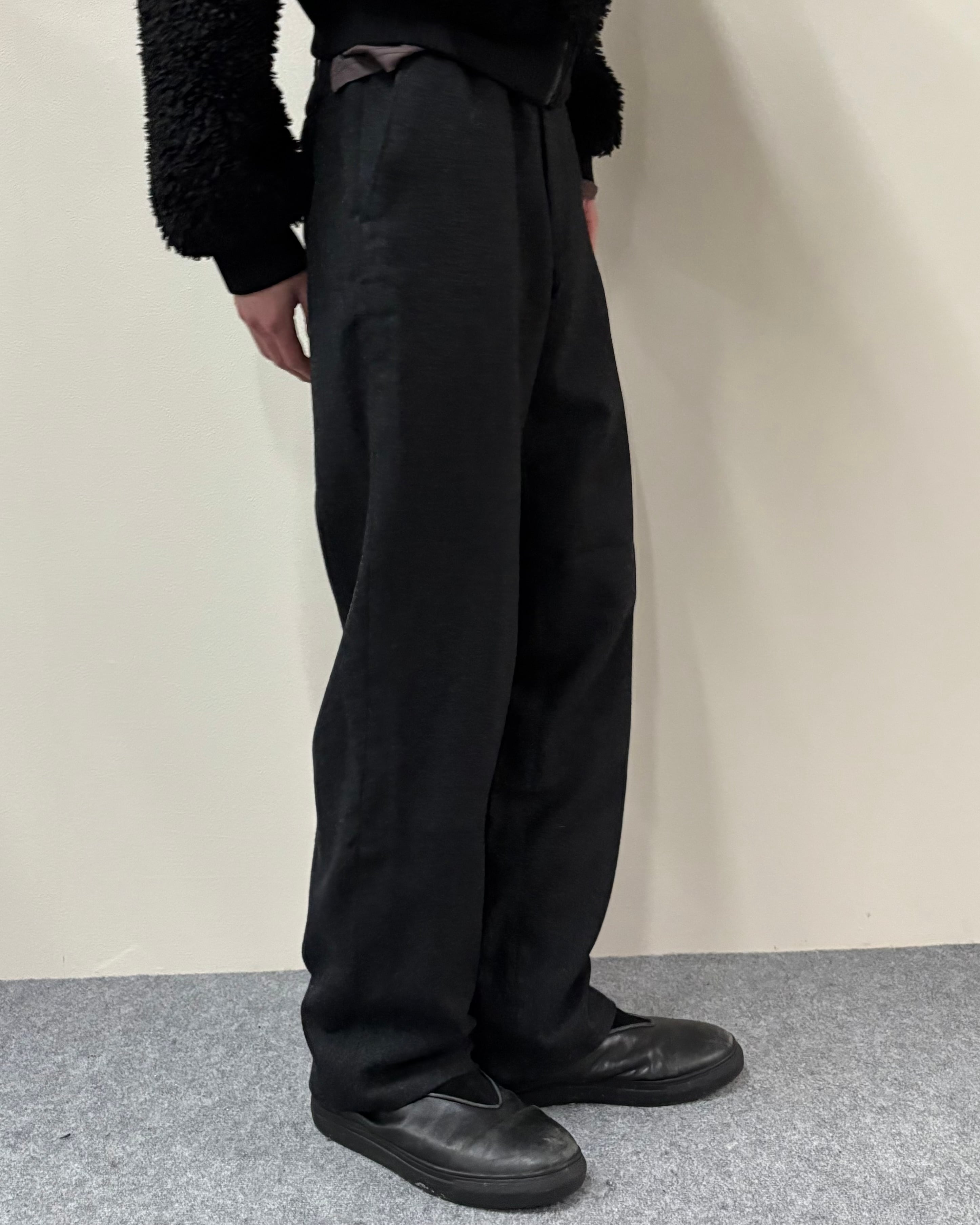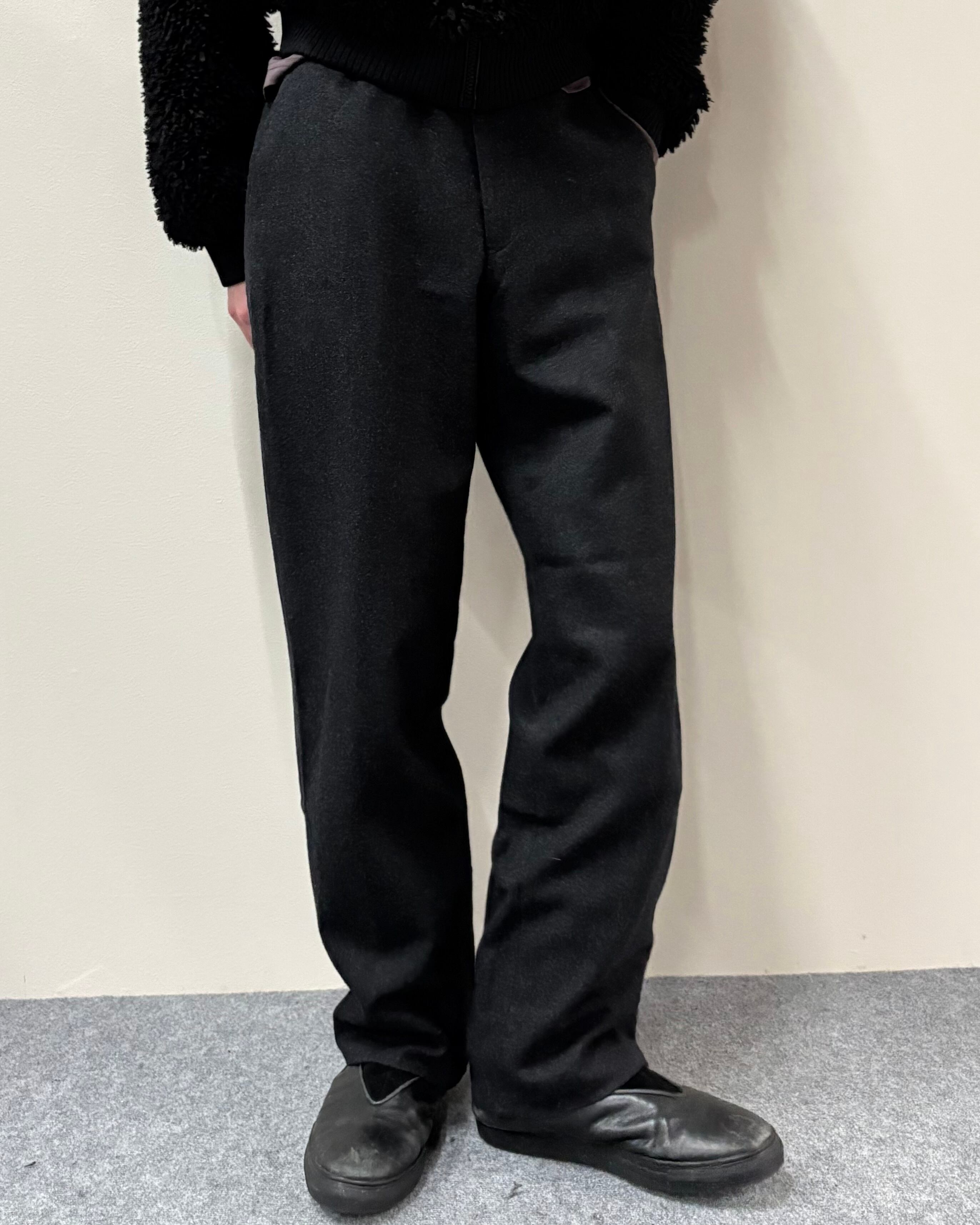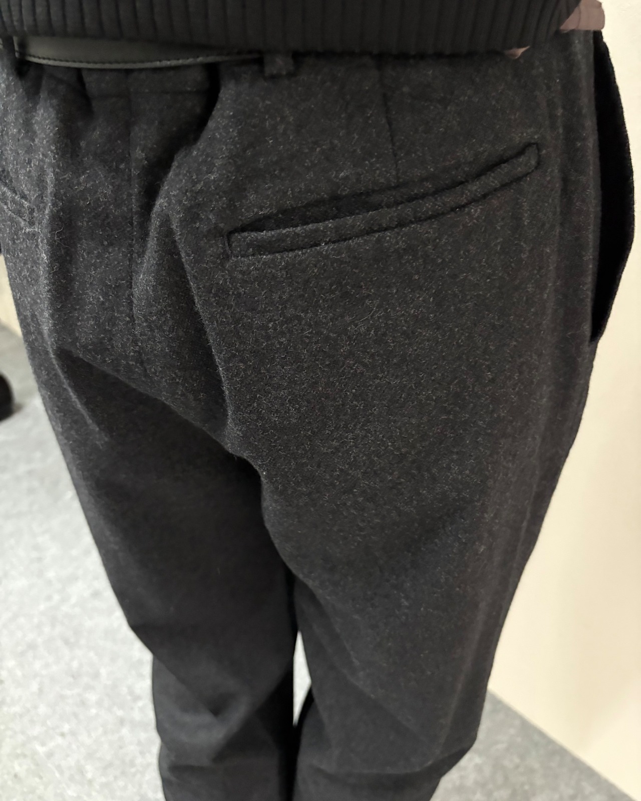 上質なウール地を採用した、細すぎず、太すぎない太さをしており、細身を活かしたスタイリングやブーツインコーデなど幅広く活躍できる1着