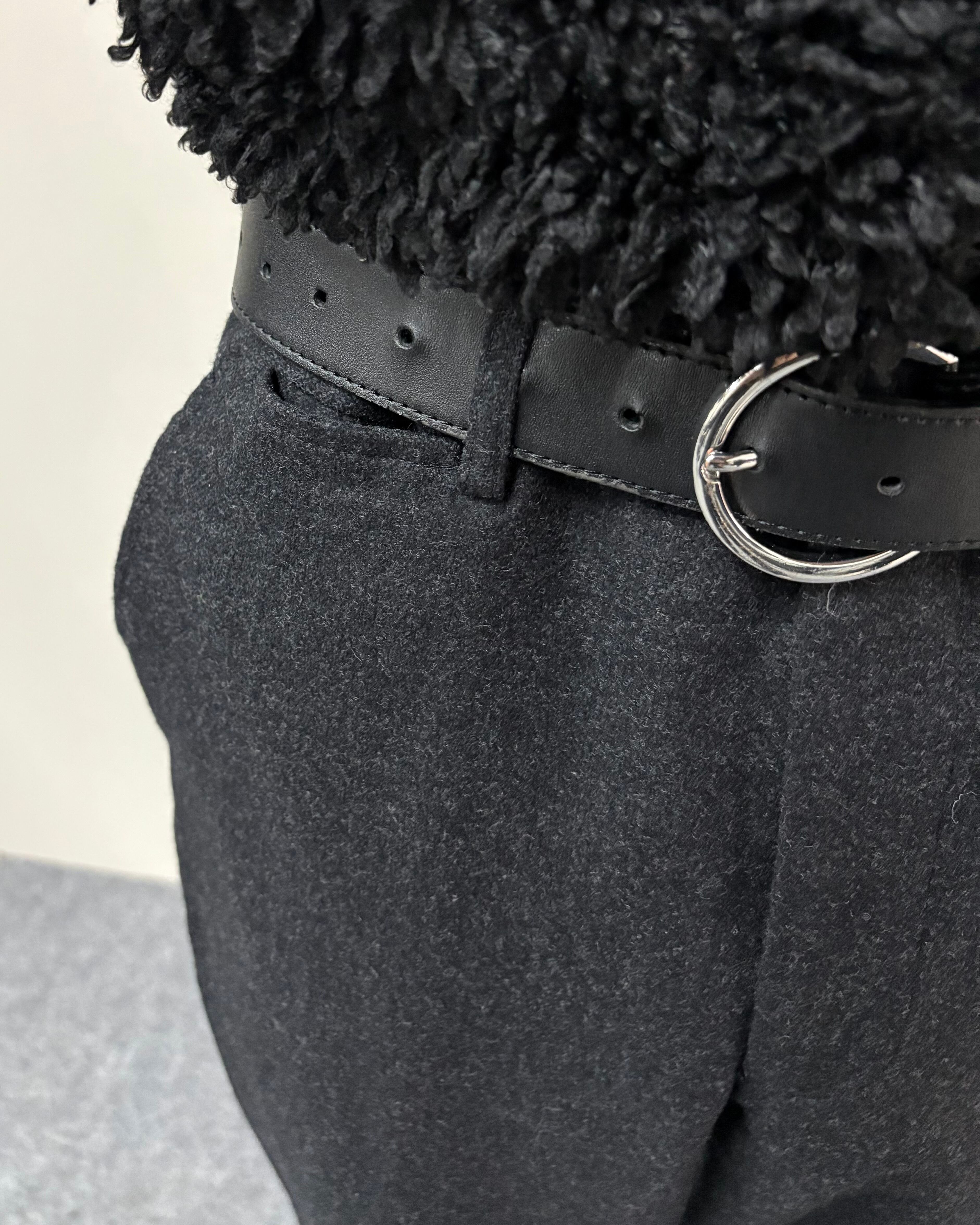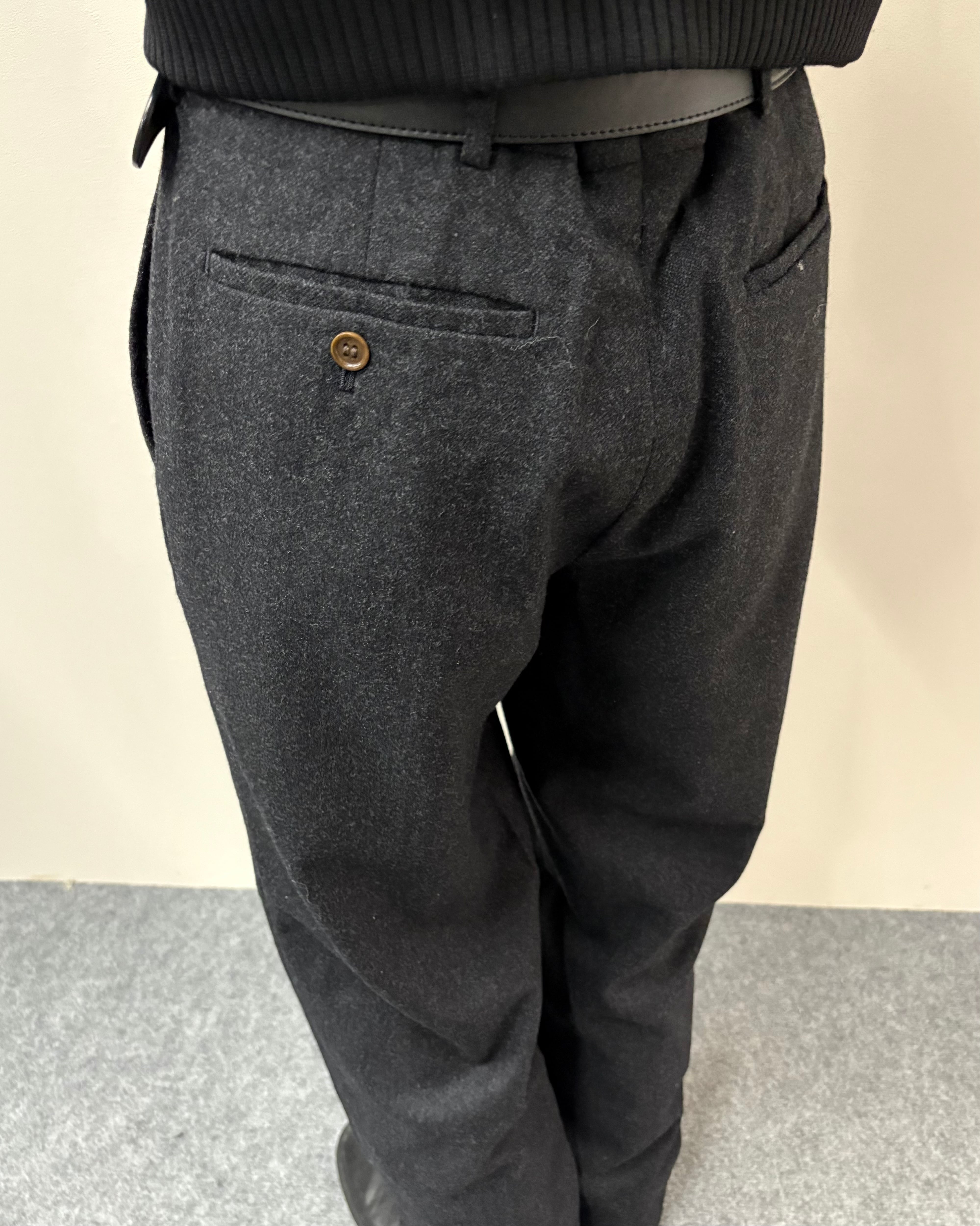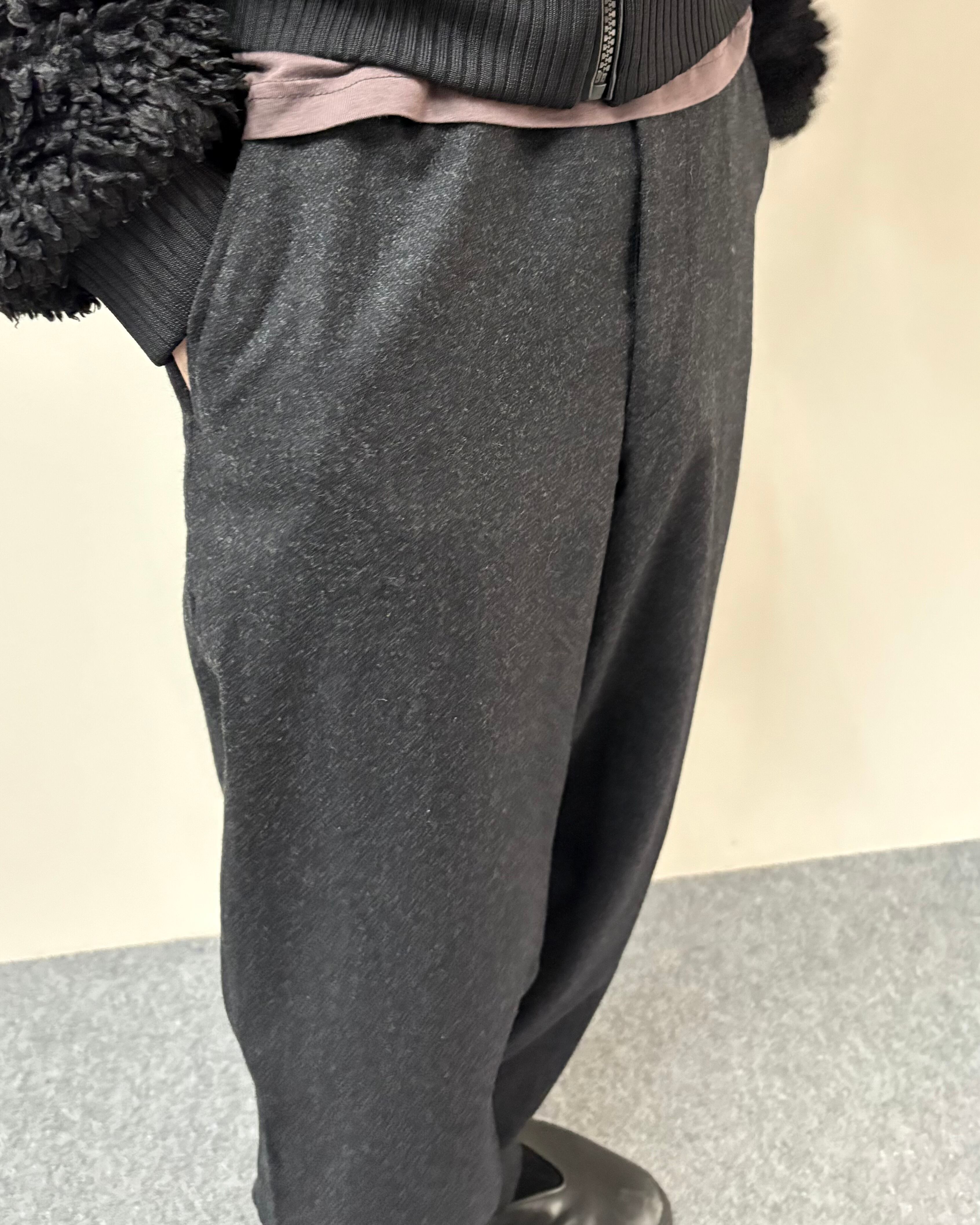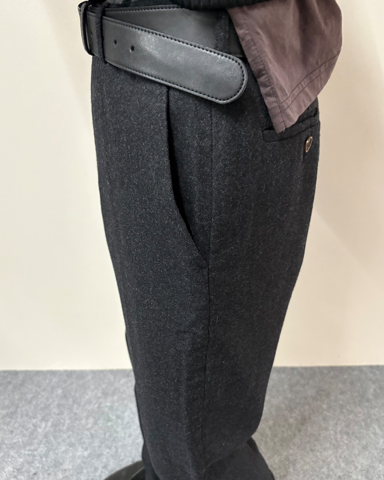 上質なウール地を採用した、細すぎず、太すぎない太さをしており、細身を活かしたスタイリングやブーツインコーデなど幅広く活躍できる1着