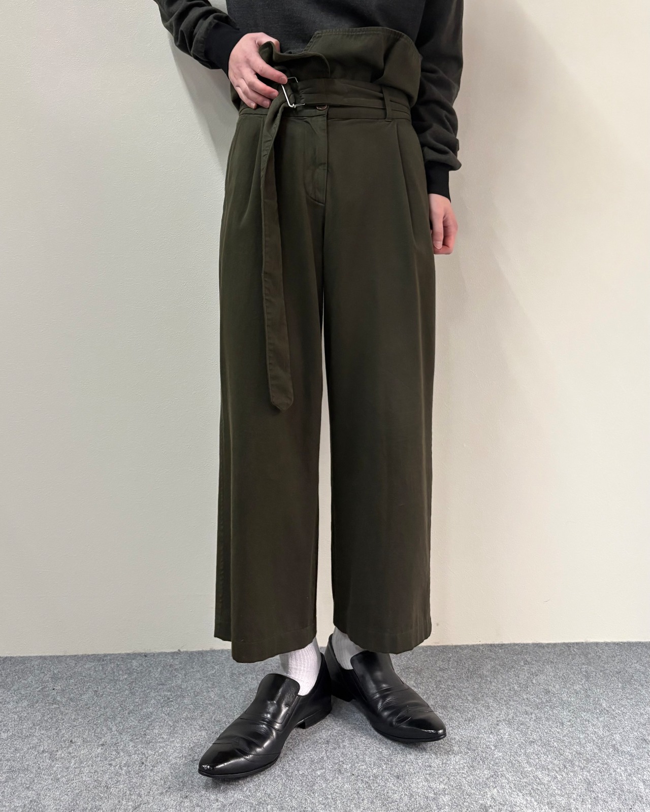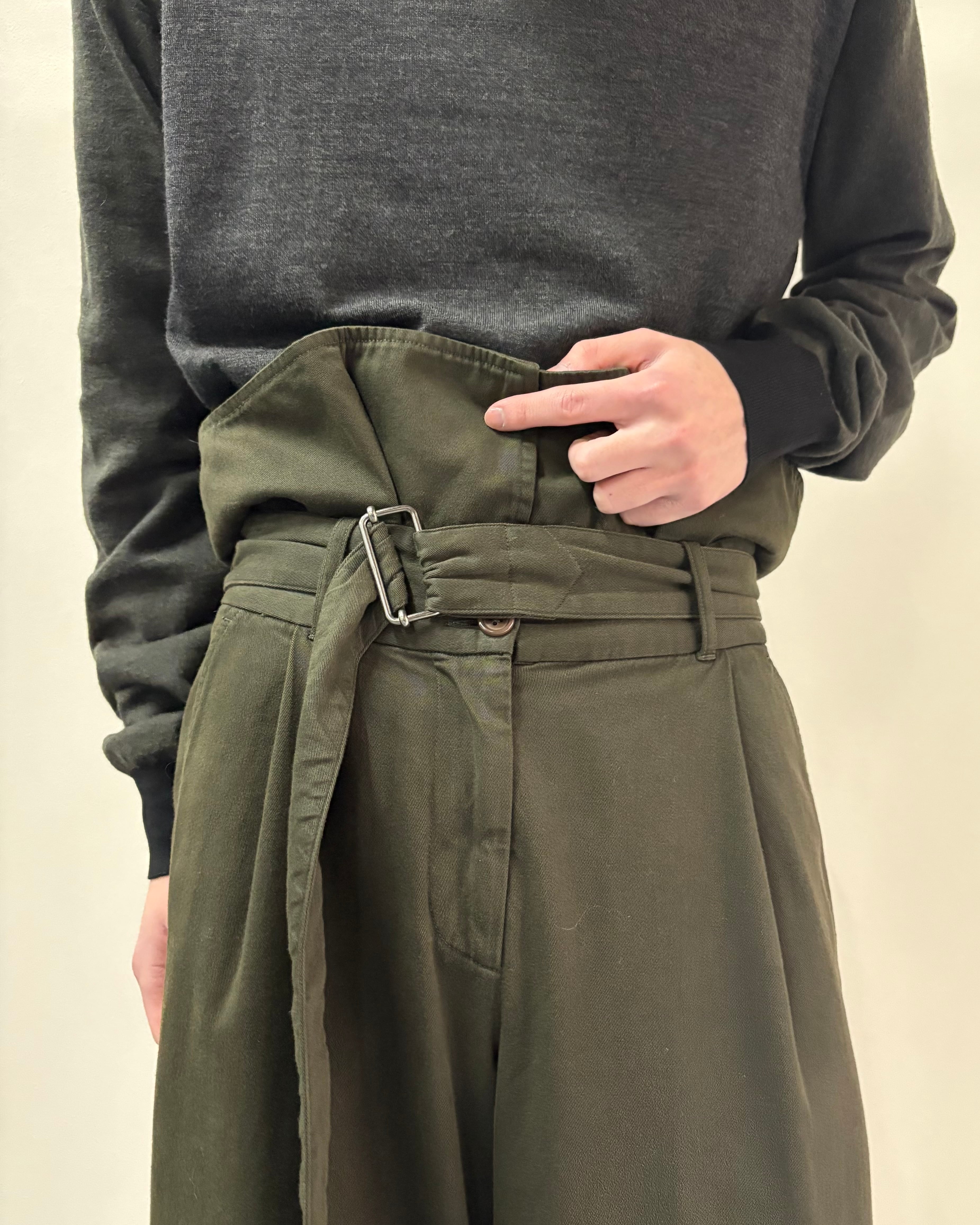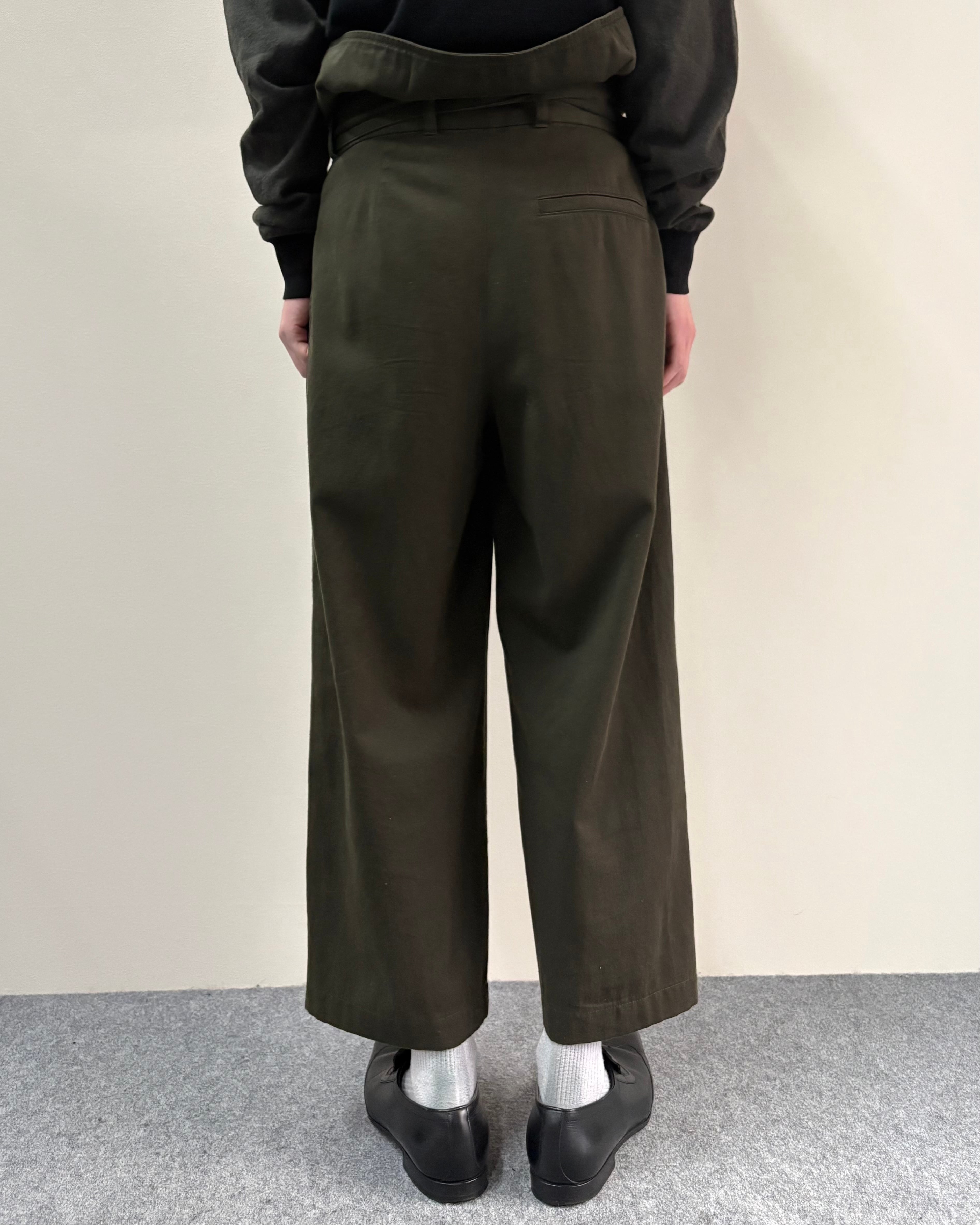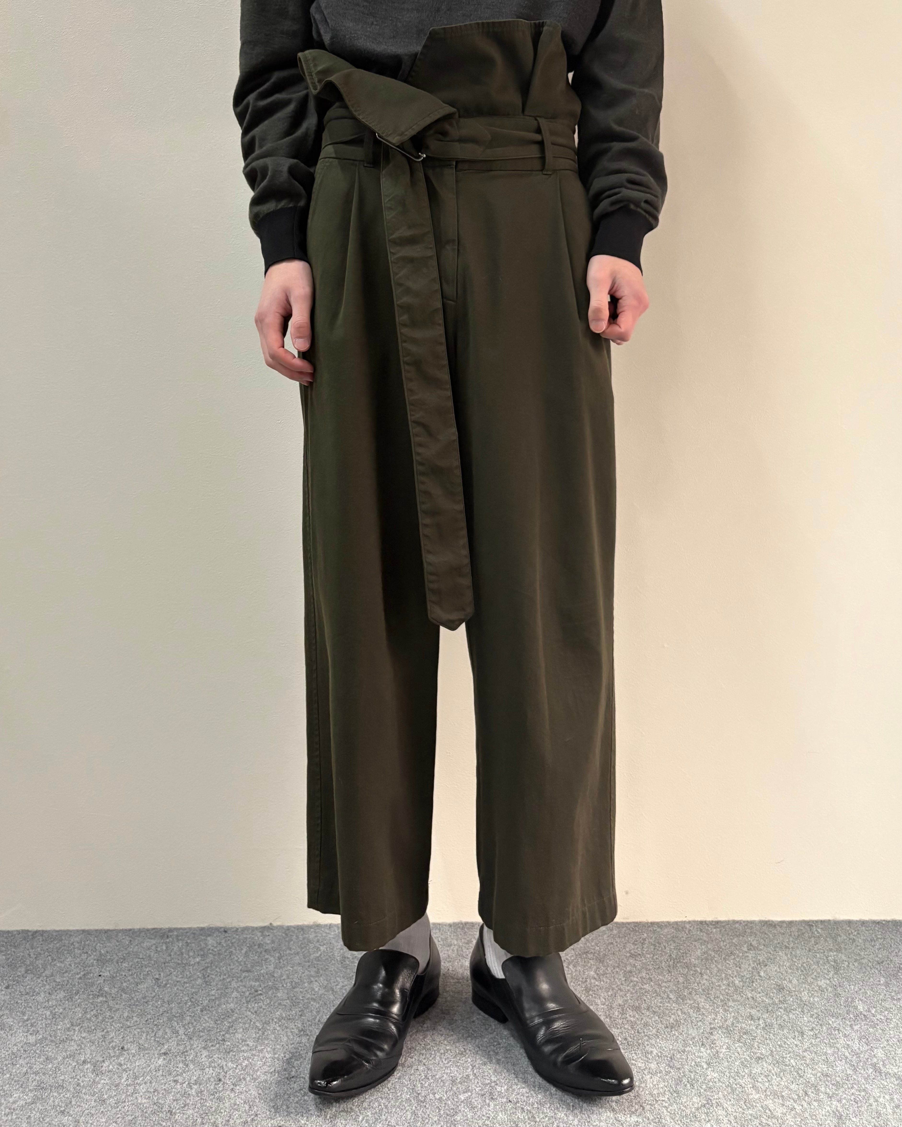 深みのあるカーキ色、絶妙な丈感、ベルデットデザインによりシックな印象を引き出しつつ無骨なミリタリーな雰囲気をも作り出せる唯一無二な1着。