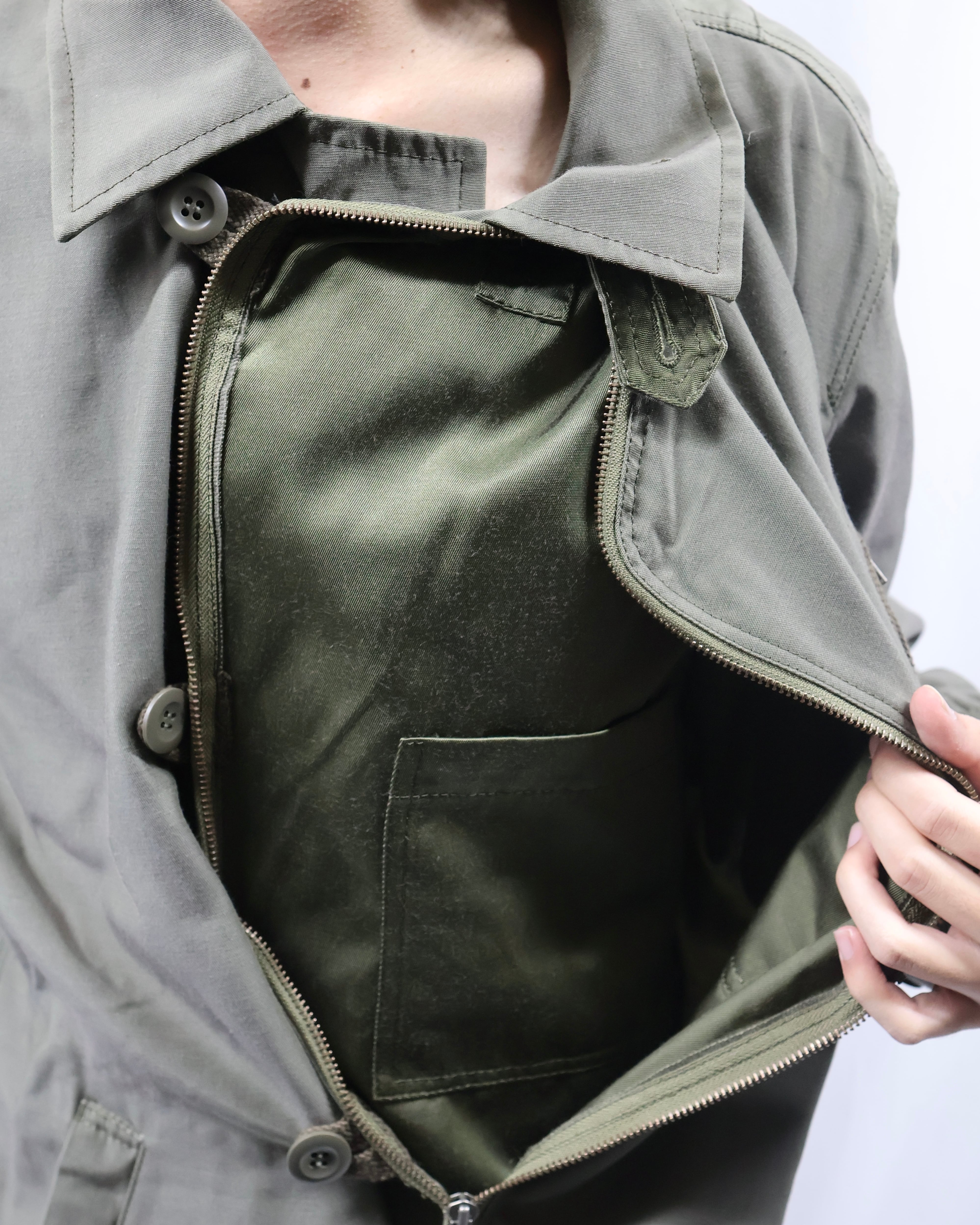 機能性とデザイン性を兼ね備えたFINAL HOMEらしい、ミリタリーエッセンスを反映したライトアウター。軽い着心地ながら存在感のあるディテールが特徴で、ブランドらしい“アーバンミリタリー”を体現した一着。ライトアウターとしてはもちろん、コートのインナーなど幅広いスタイリングにハマるアイテム。