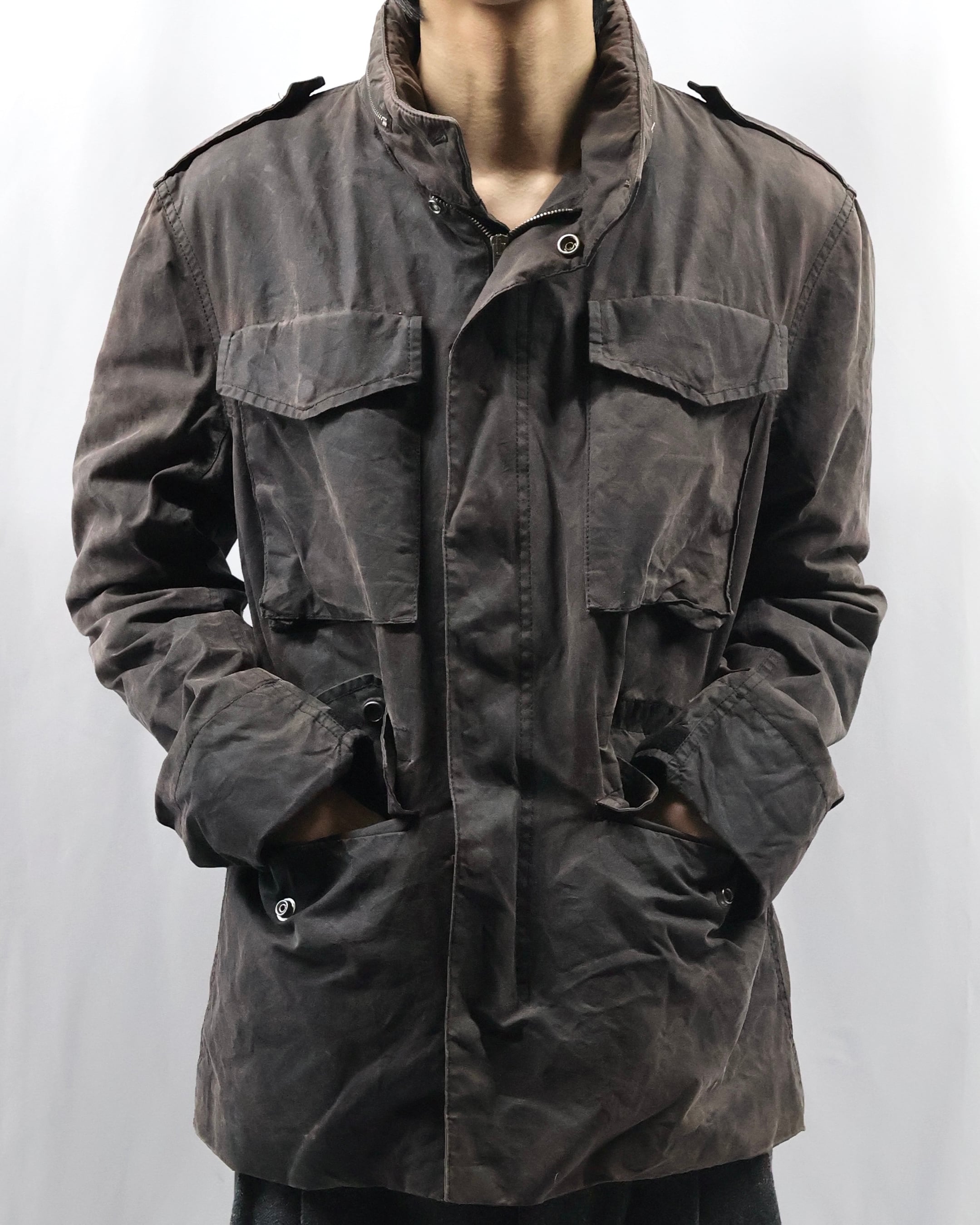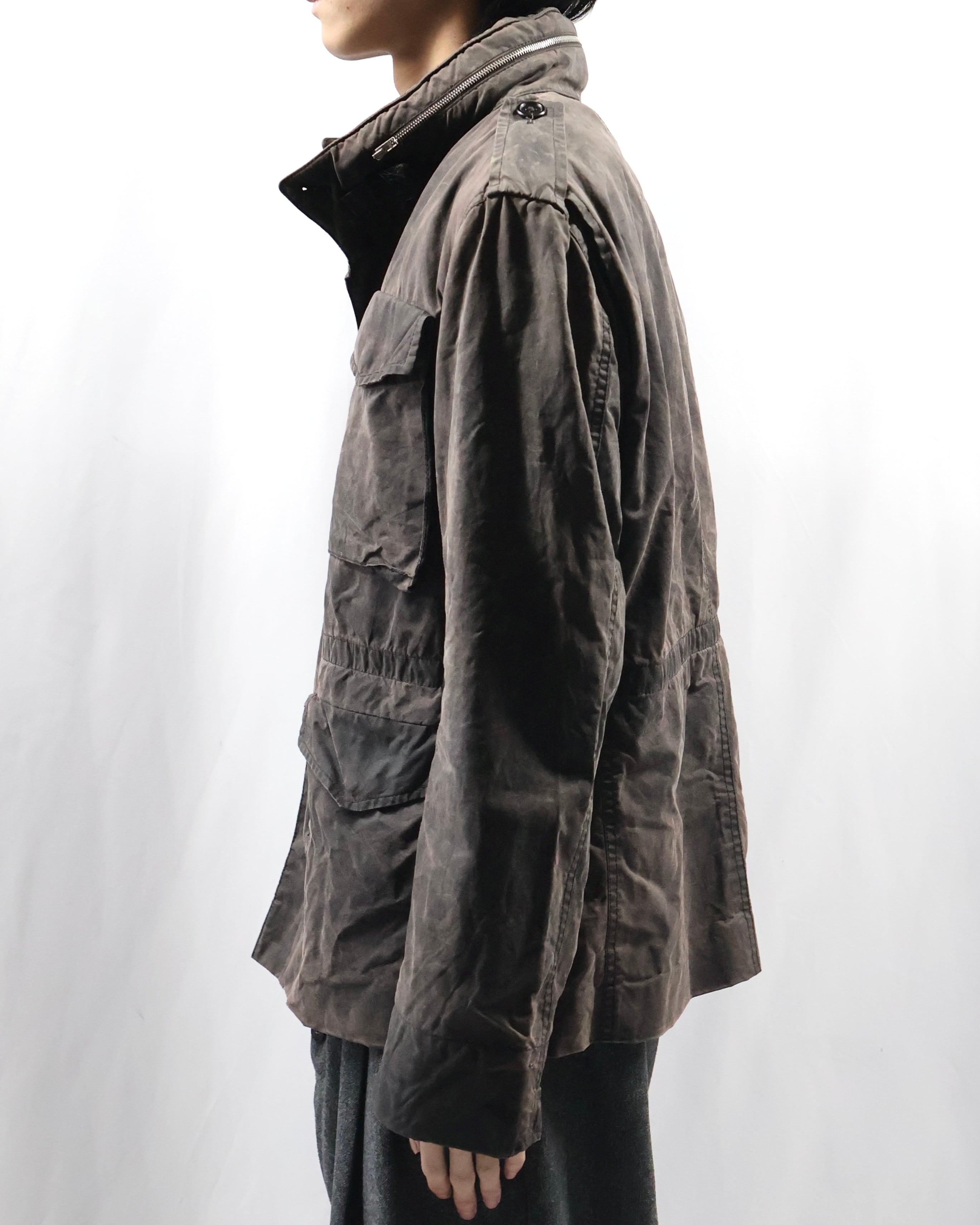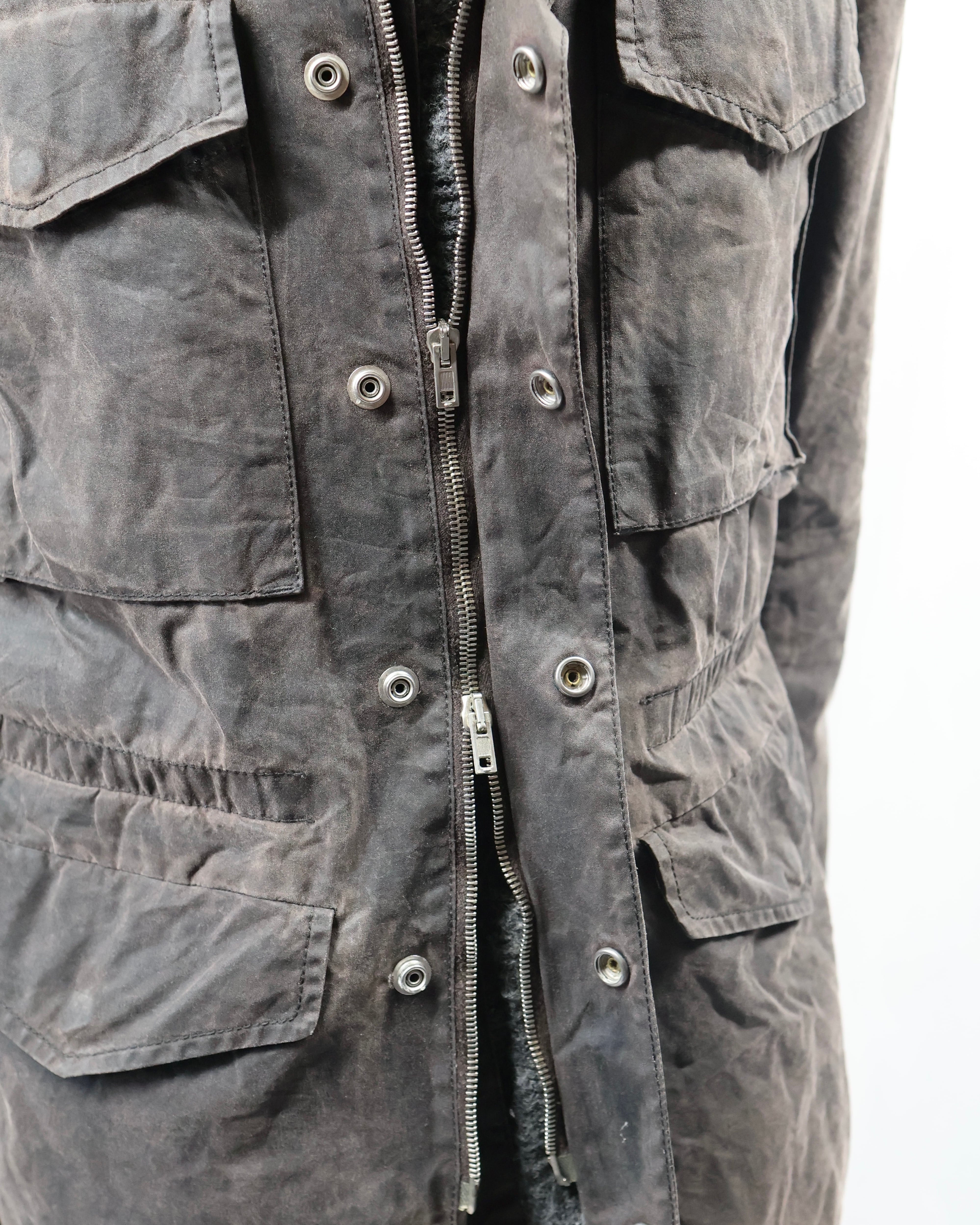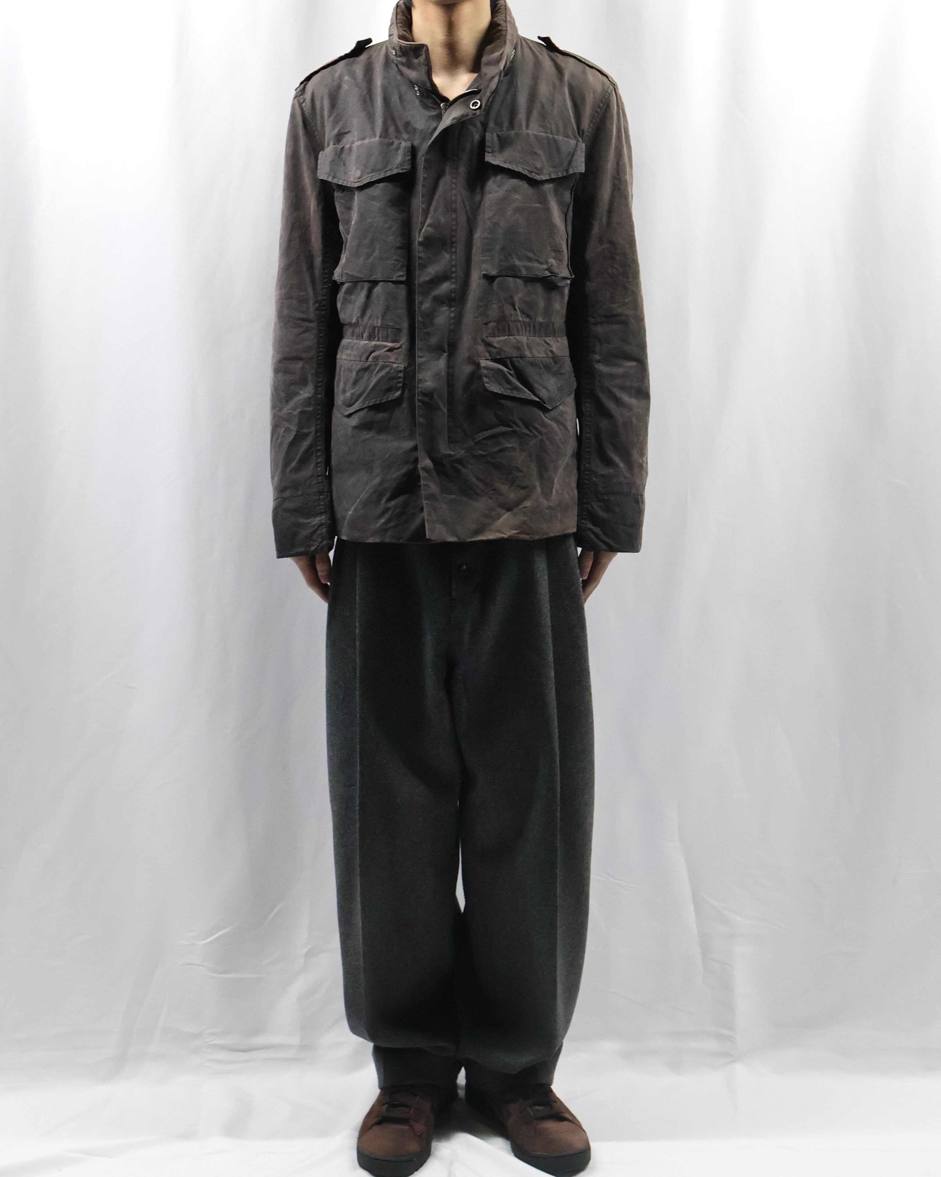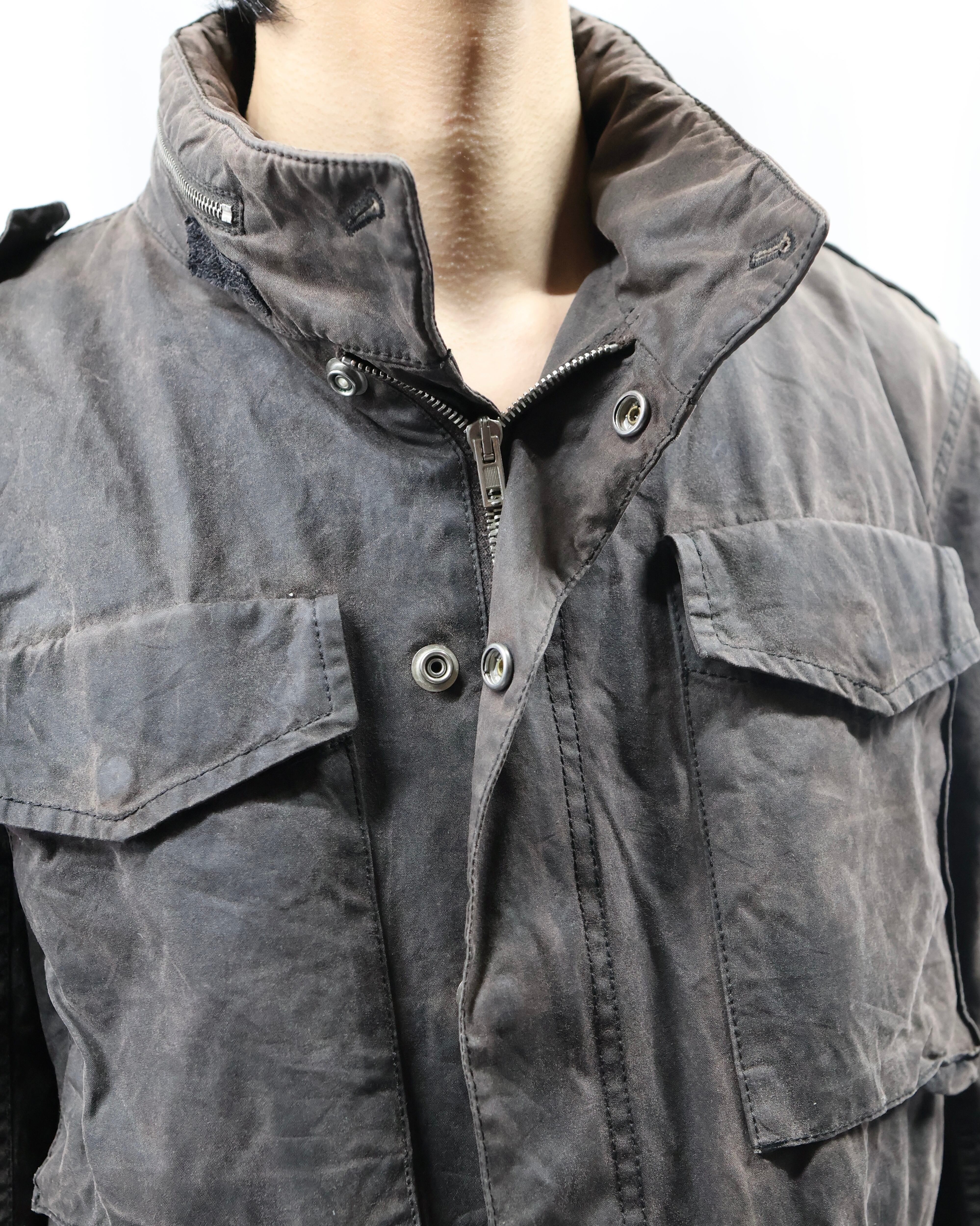 オイルドのコットン生地と洗い加工によって生まれた独特のシワ感と色ムラが、ヴィンテージのような深みを演出。細身すぎないシルエットで、ニットなどのインナーとのレイヤード可能。カジュアルはもちろん、都会的スタイリングにも馴染む、使い勝手の良い一着。