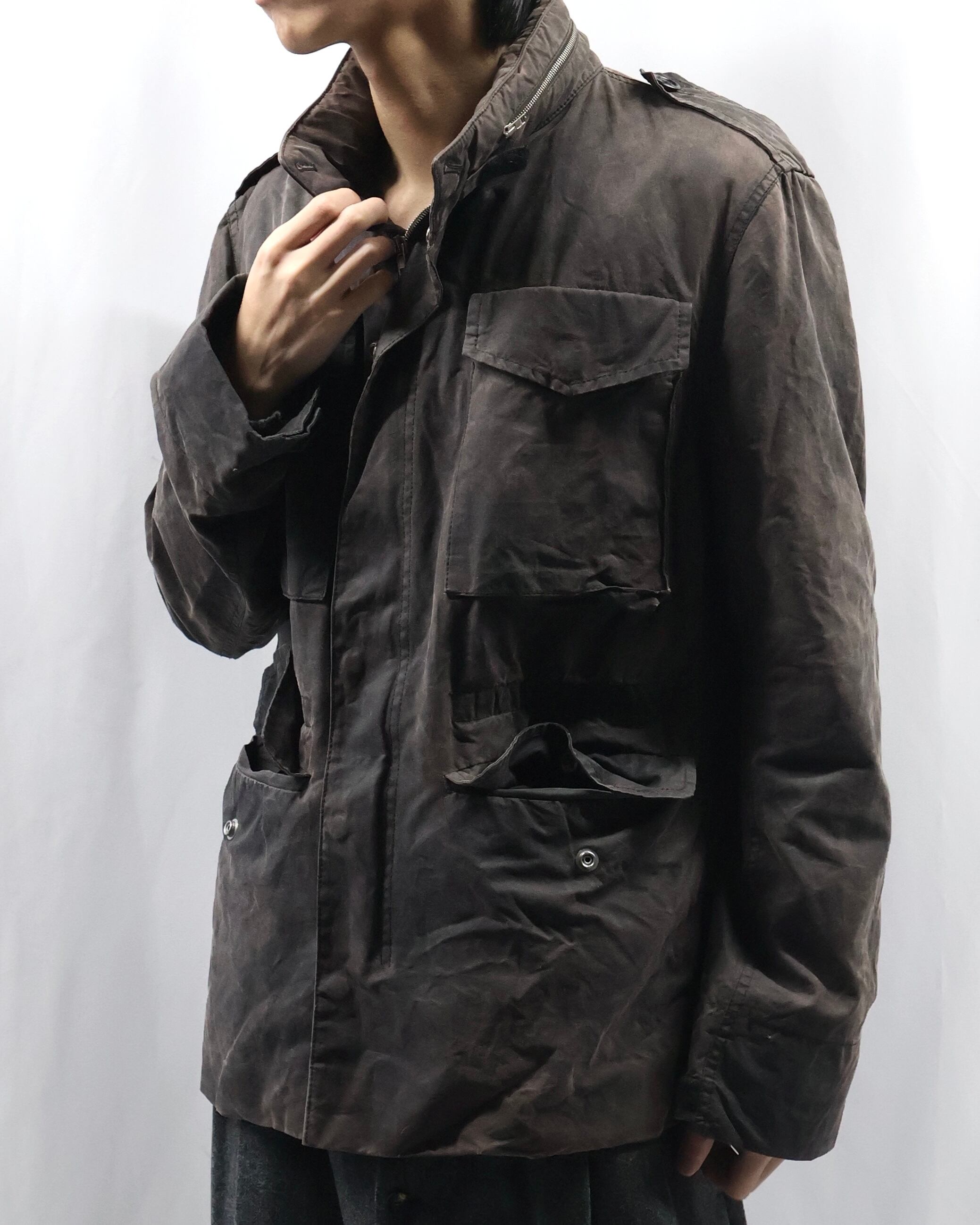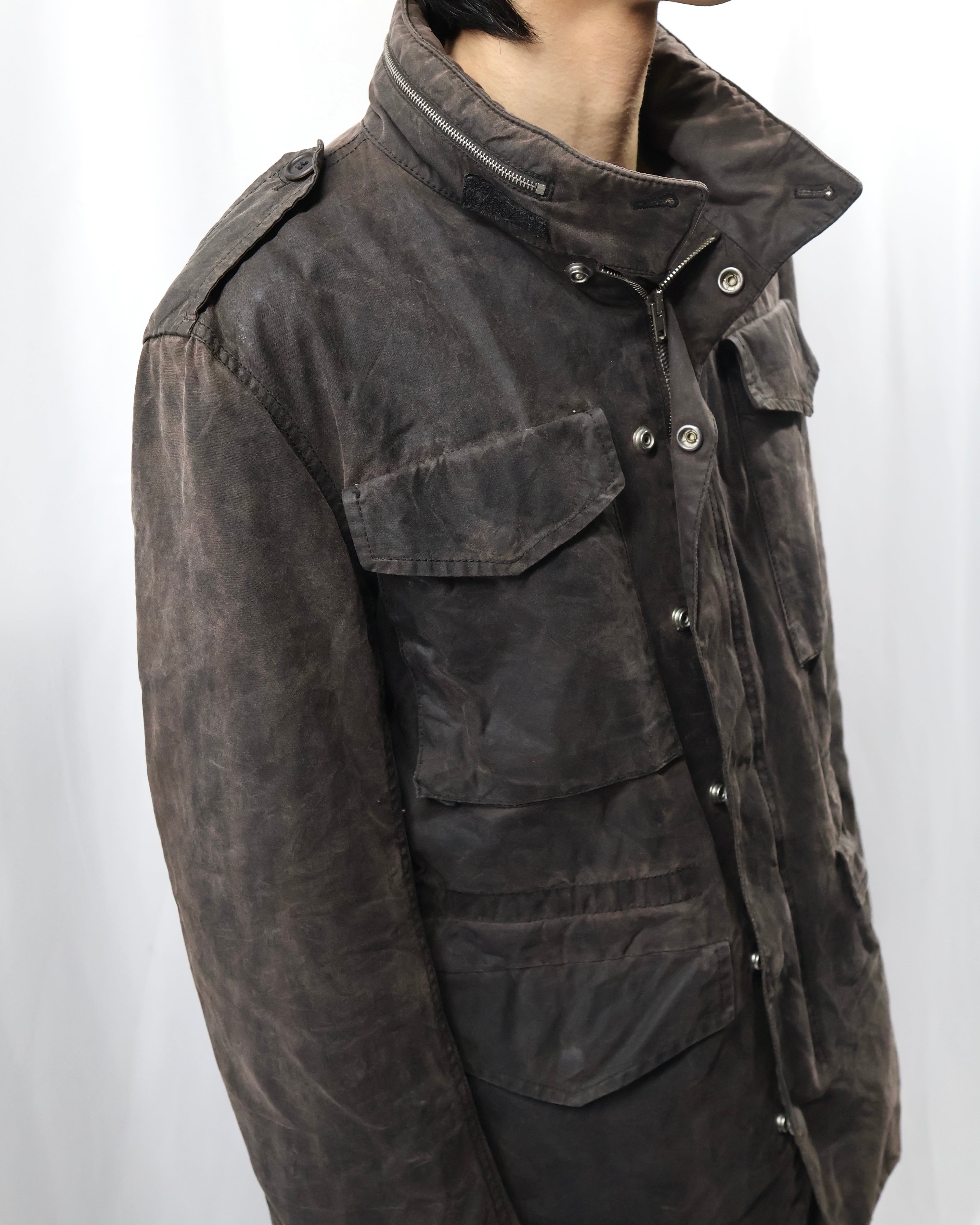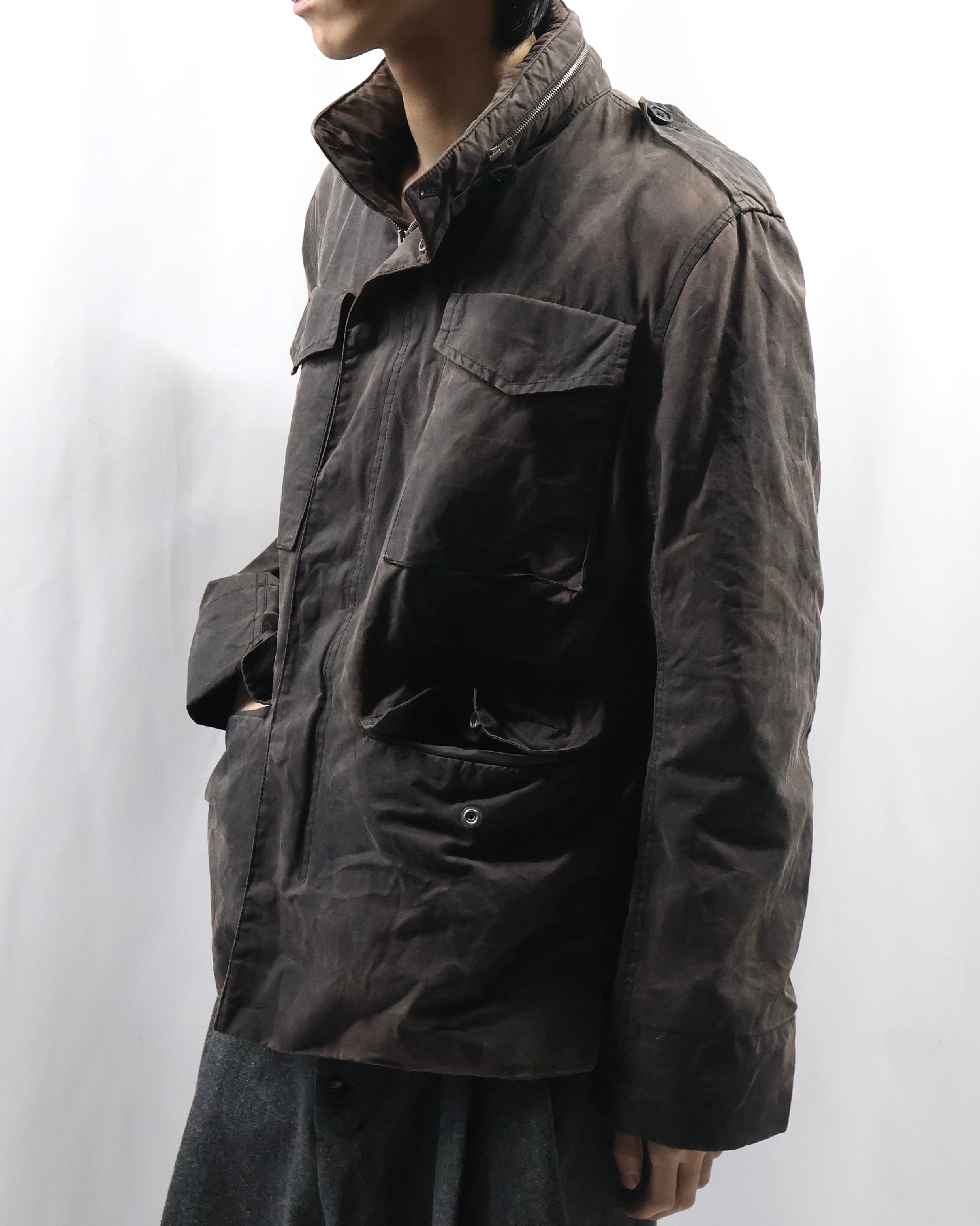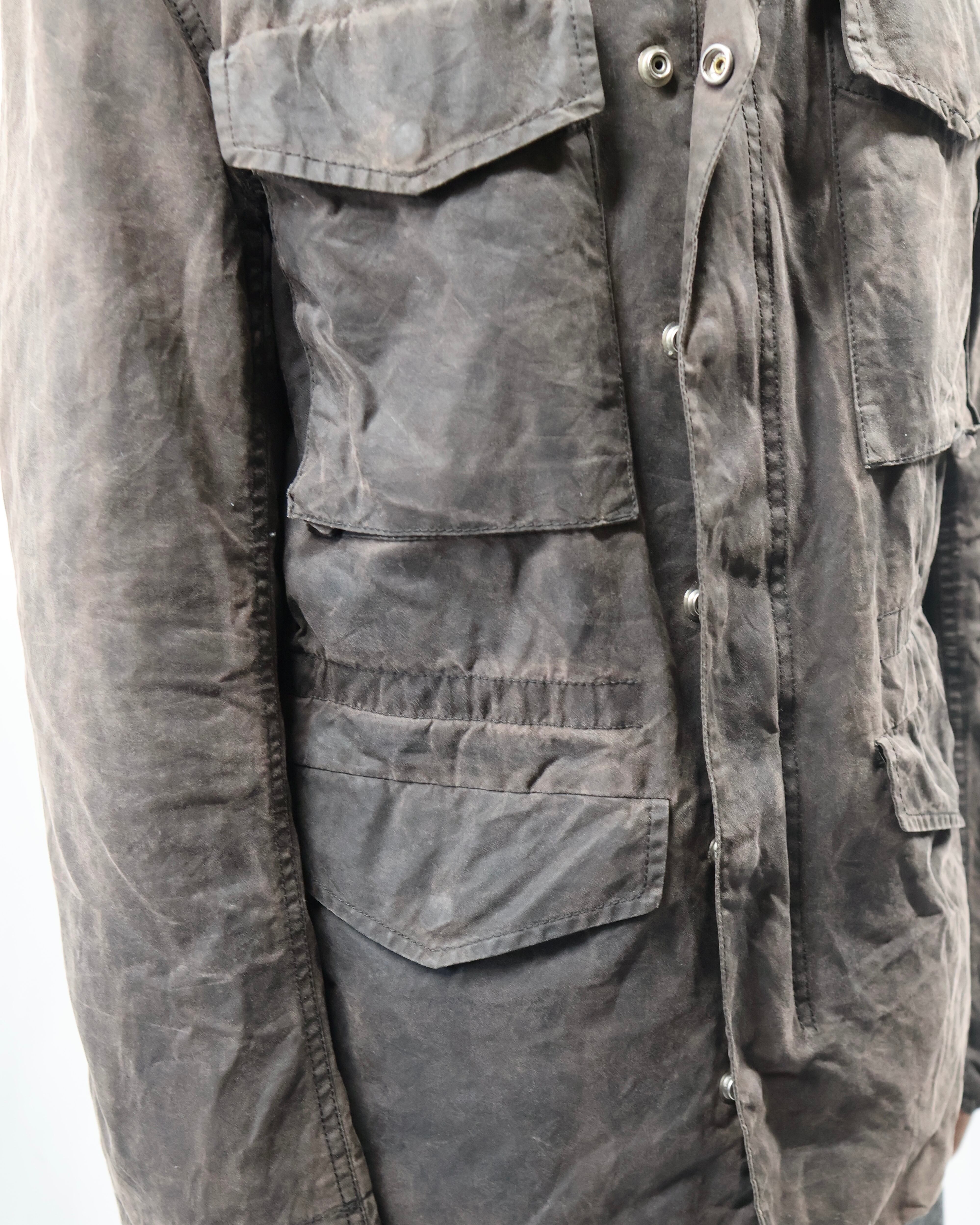 オイルドのコットン生地と洗い加工によって生まれた独特のシワ感と色ムラが、ヴィンテージのような深みを演出。細身すぎないシルエットで、ニットなどのインナーとのレイヤード可能。カジュアルはもちろん、都会的スタイリングにも馴染む、使い勝手の良い一着。