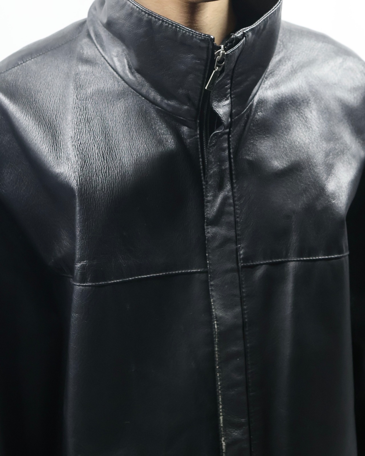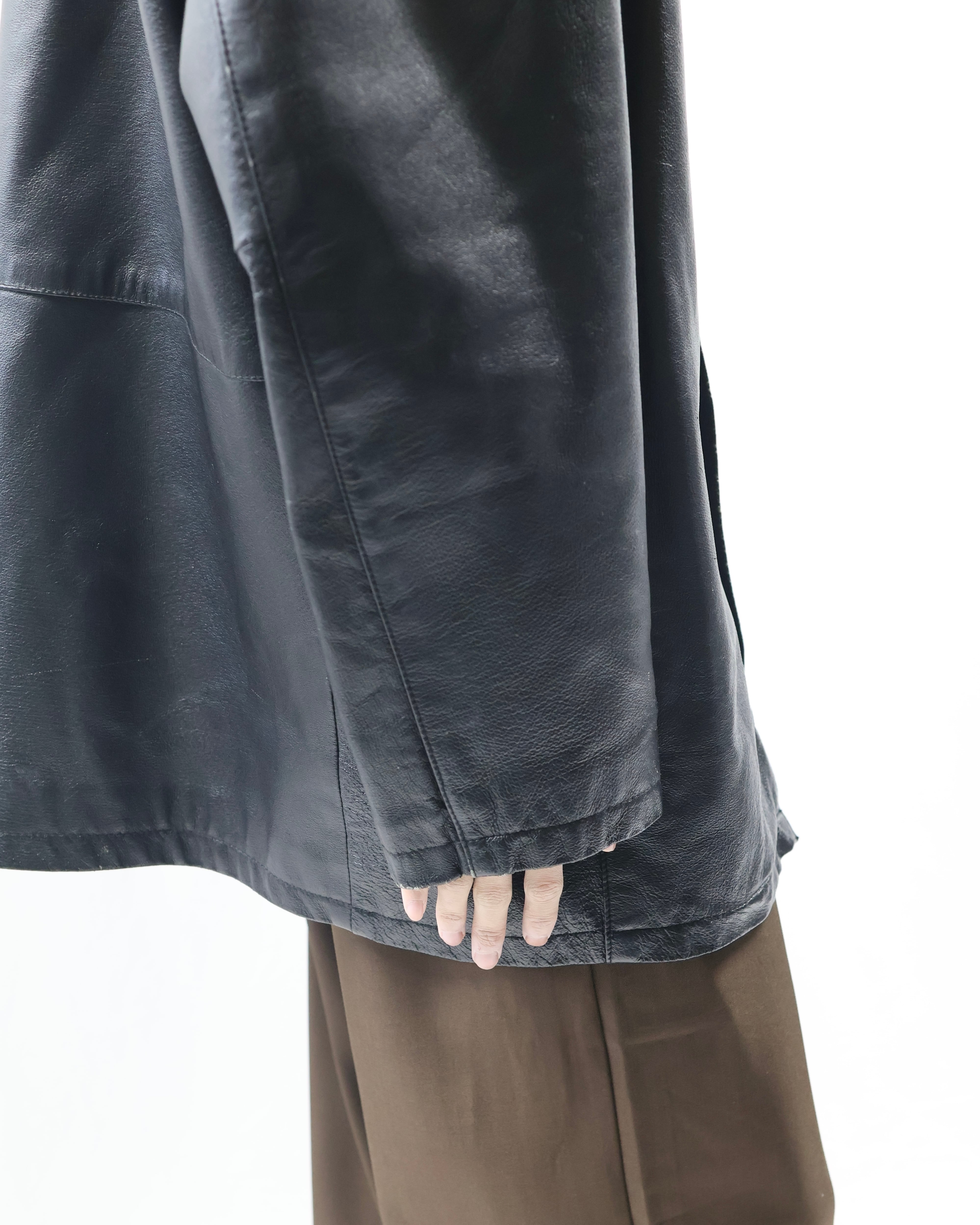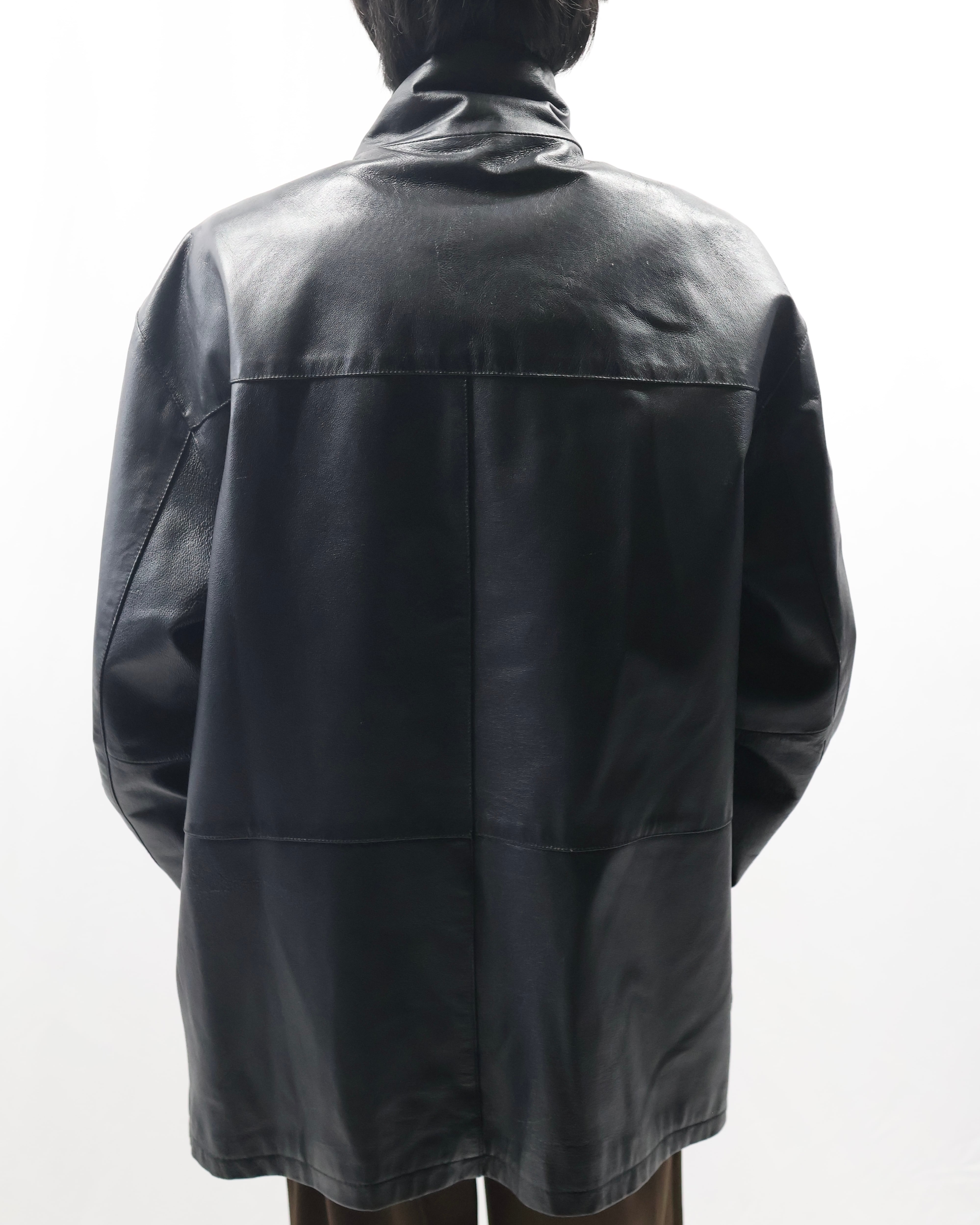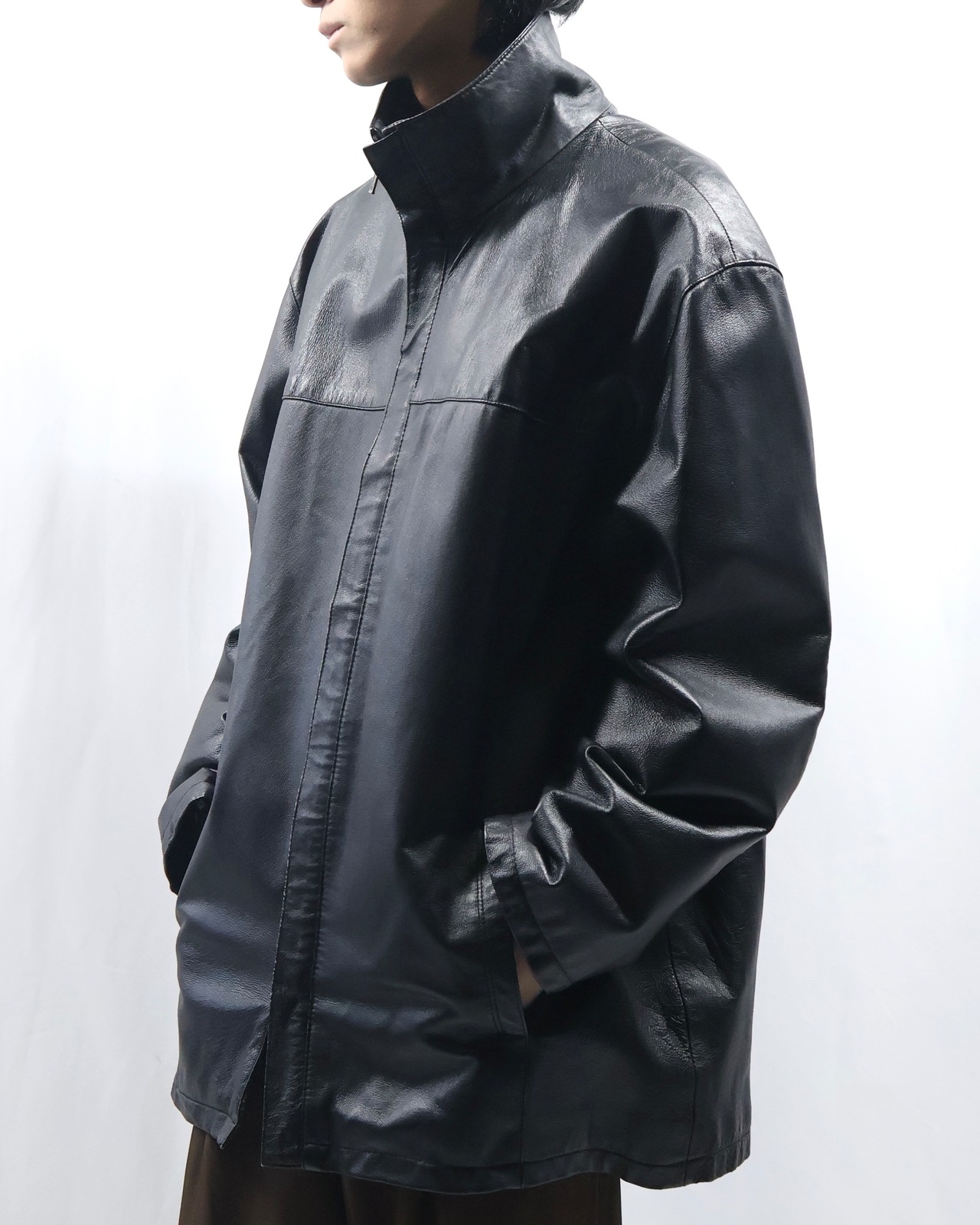 滑らかレザーを使用した、ミニマルなレザーハーフジャケット