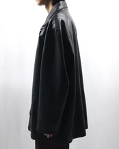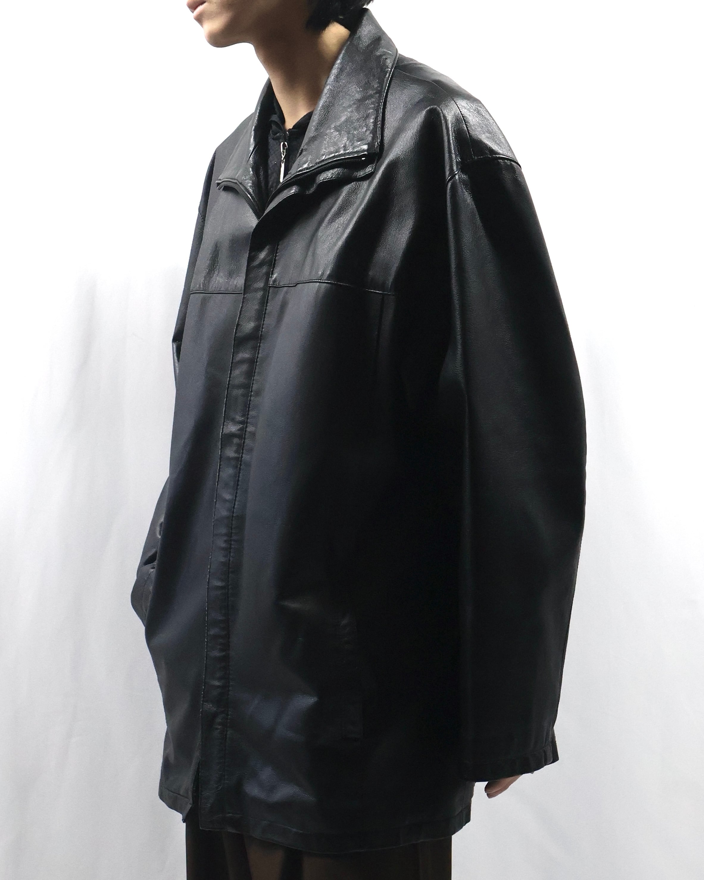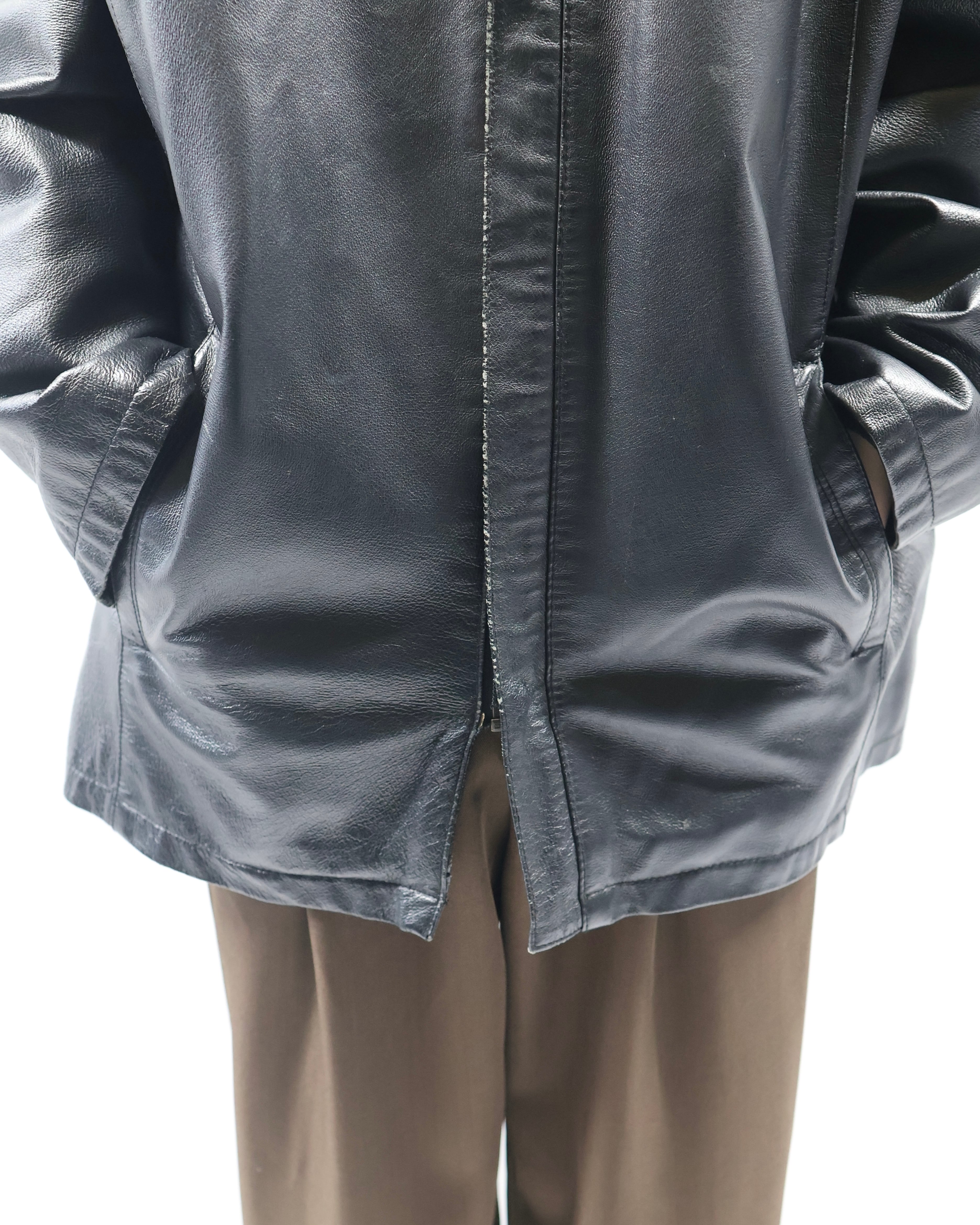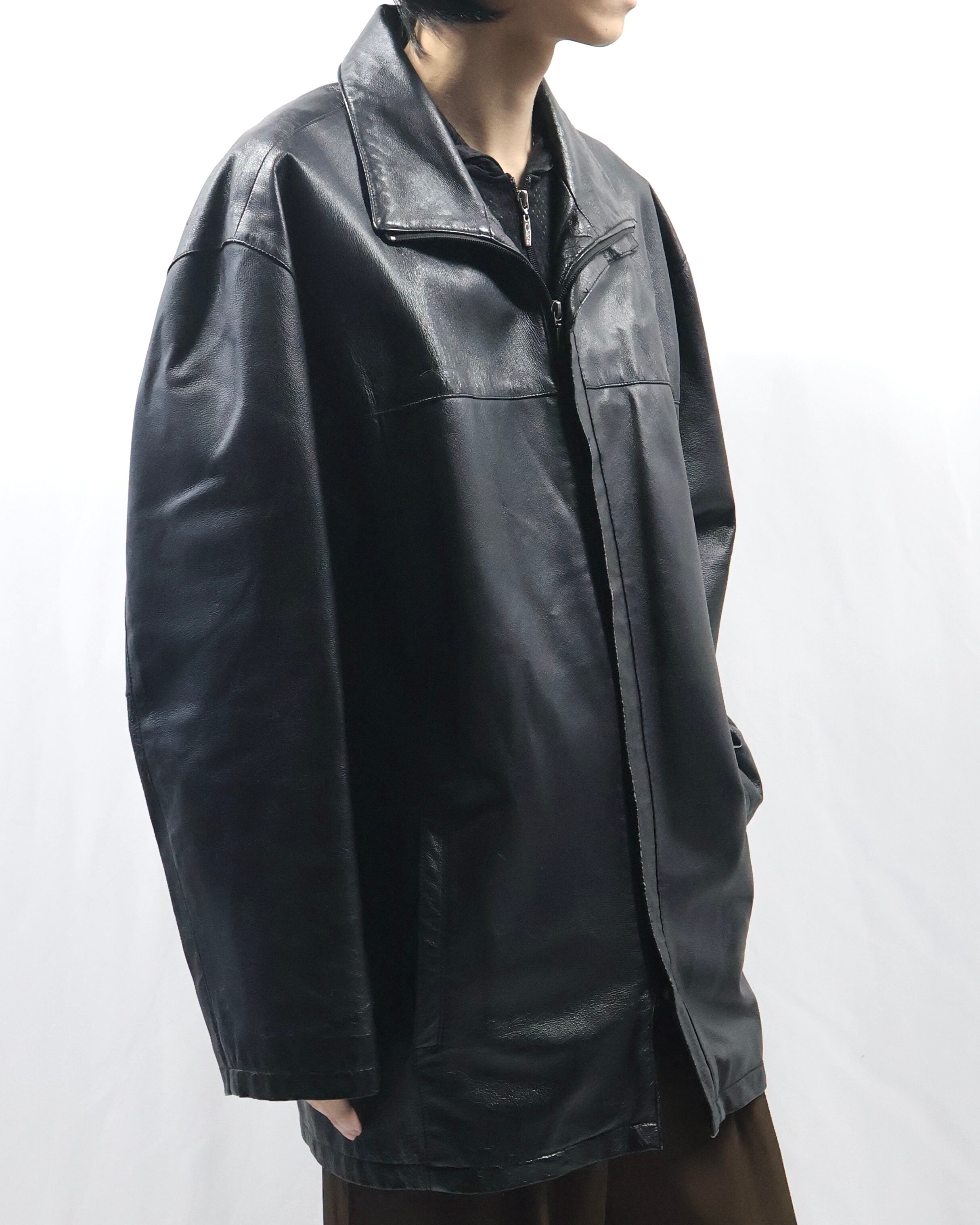 滑らかレザーを使用した、ミニマルなレザーハーフジャケット