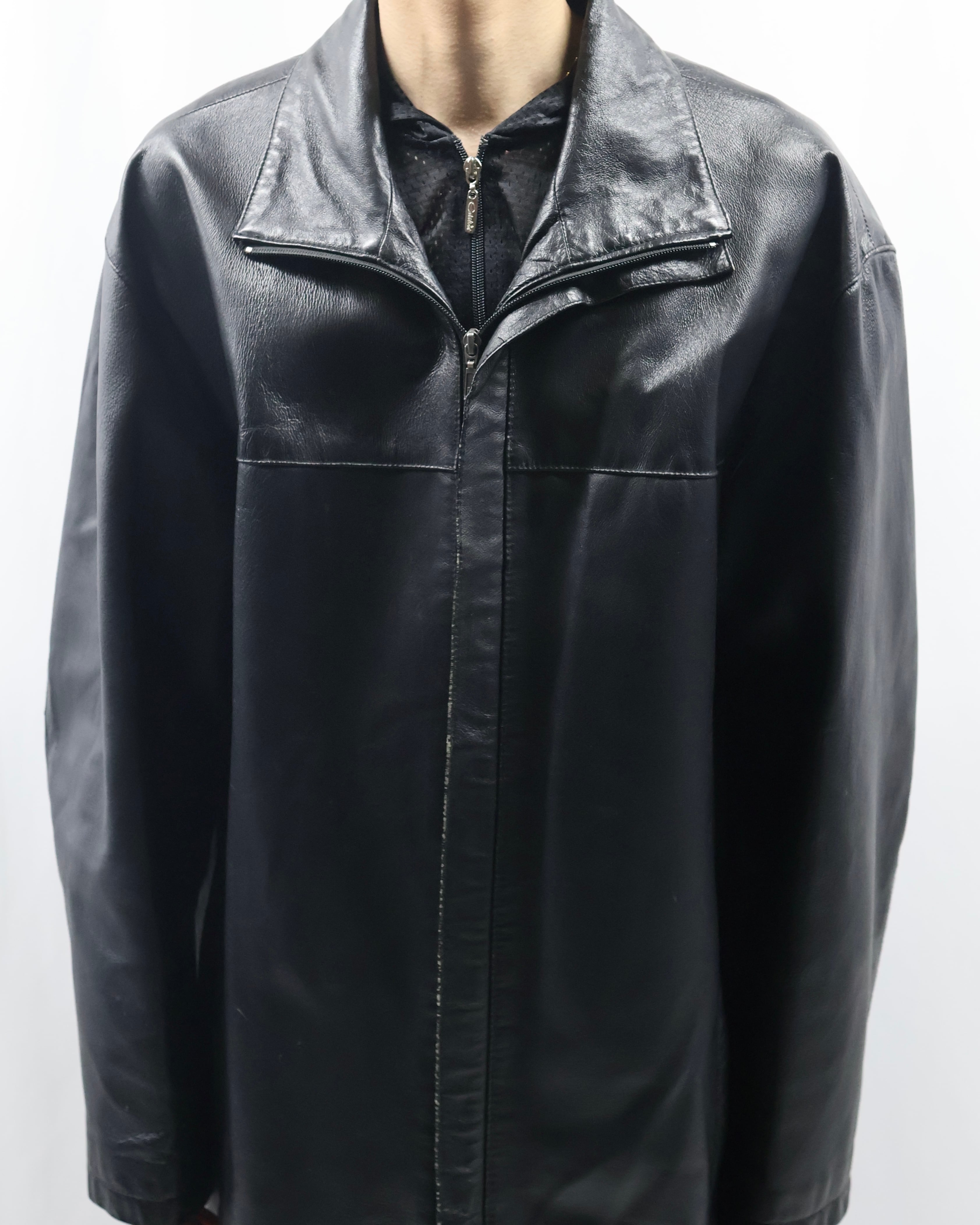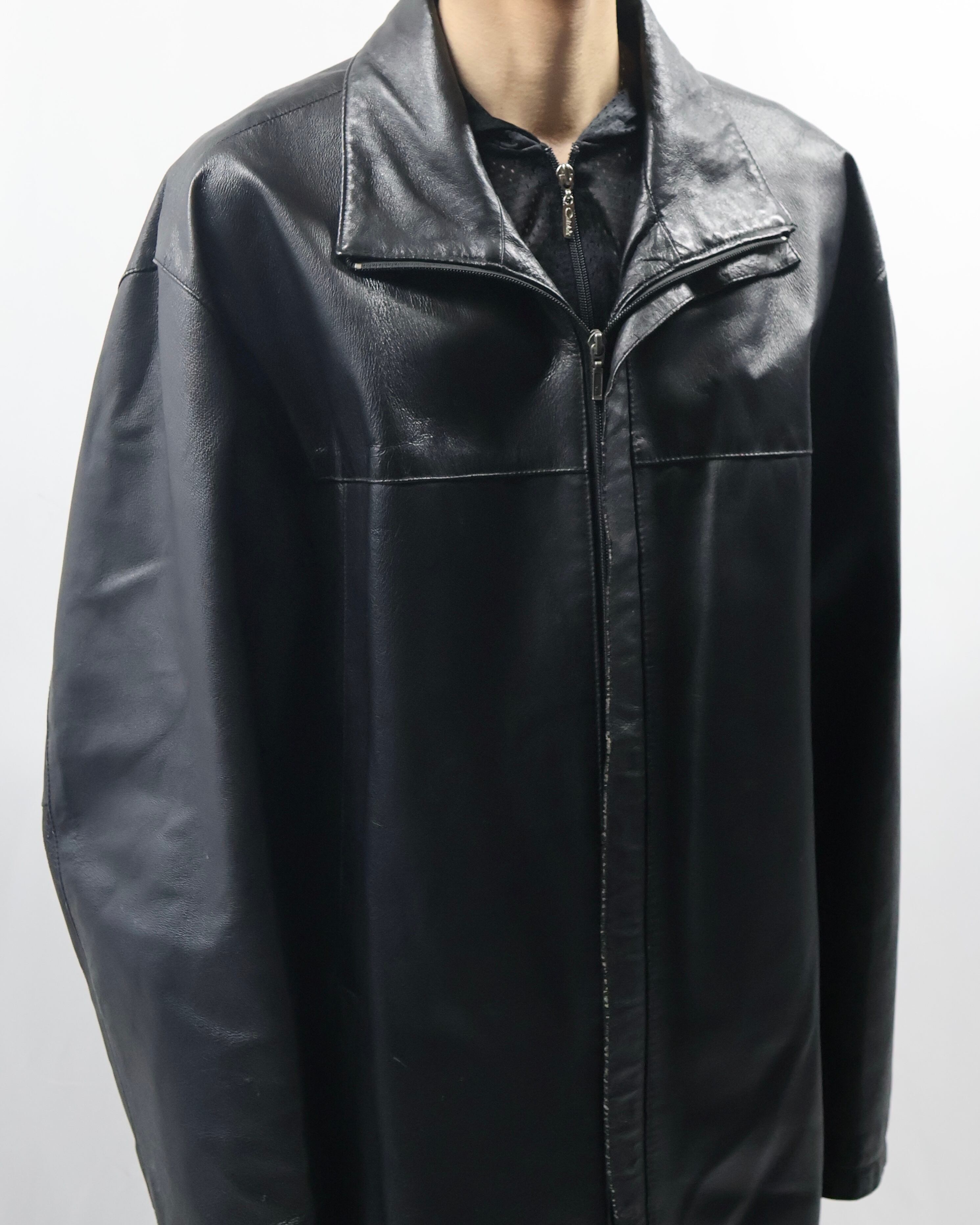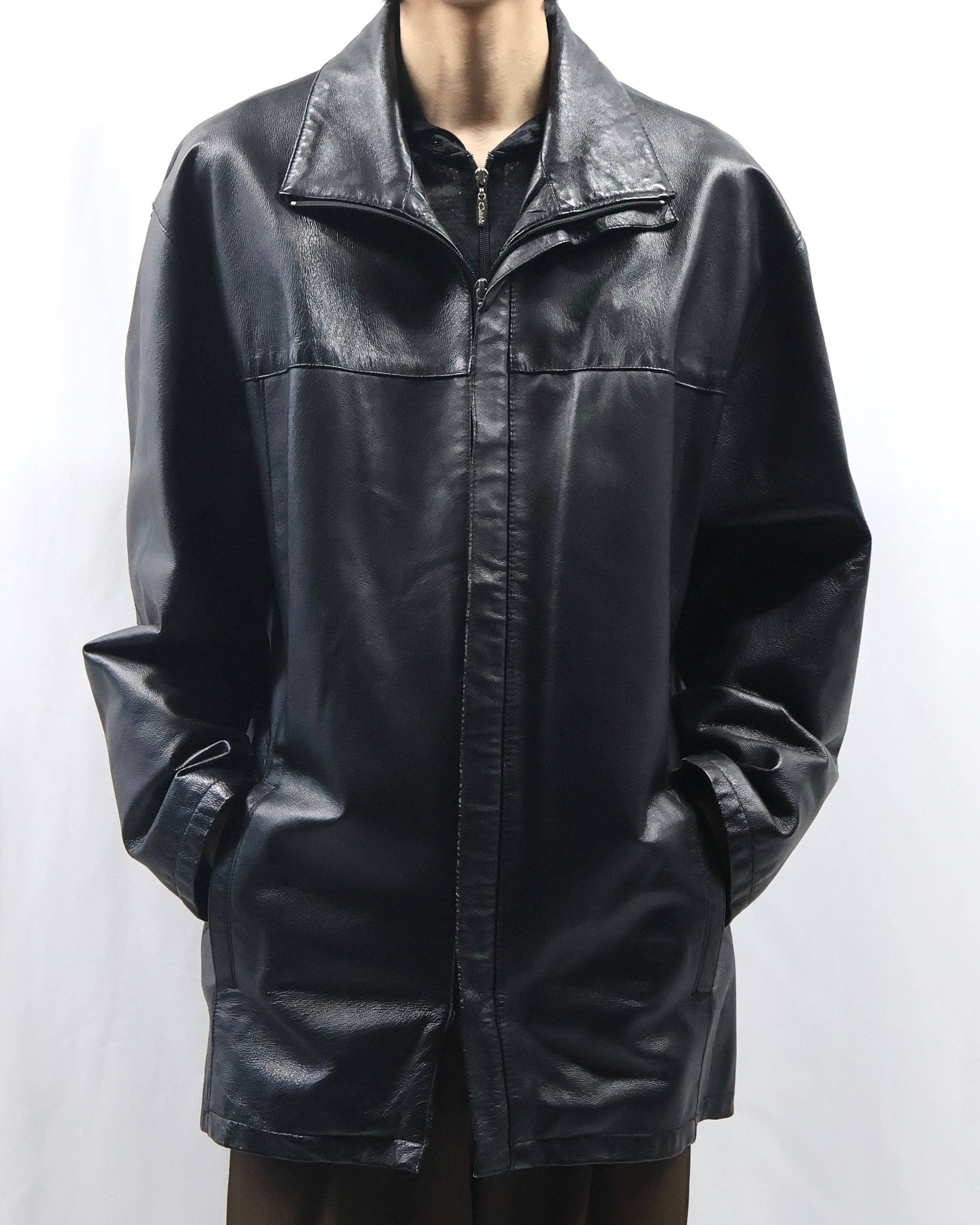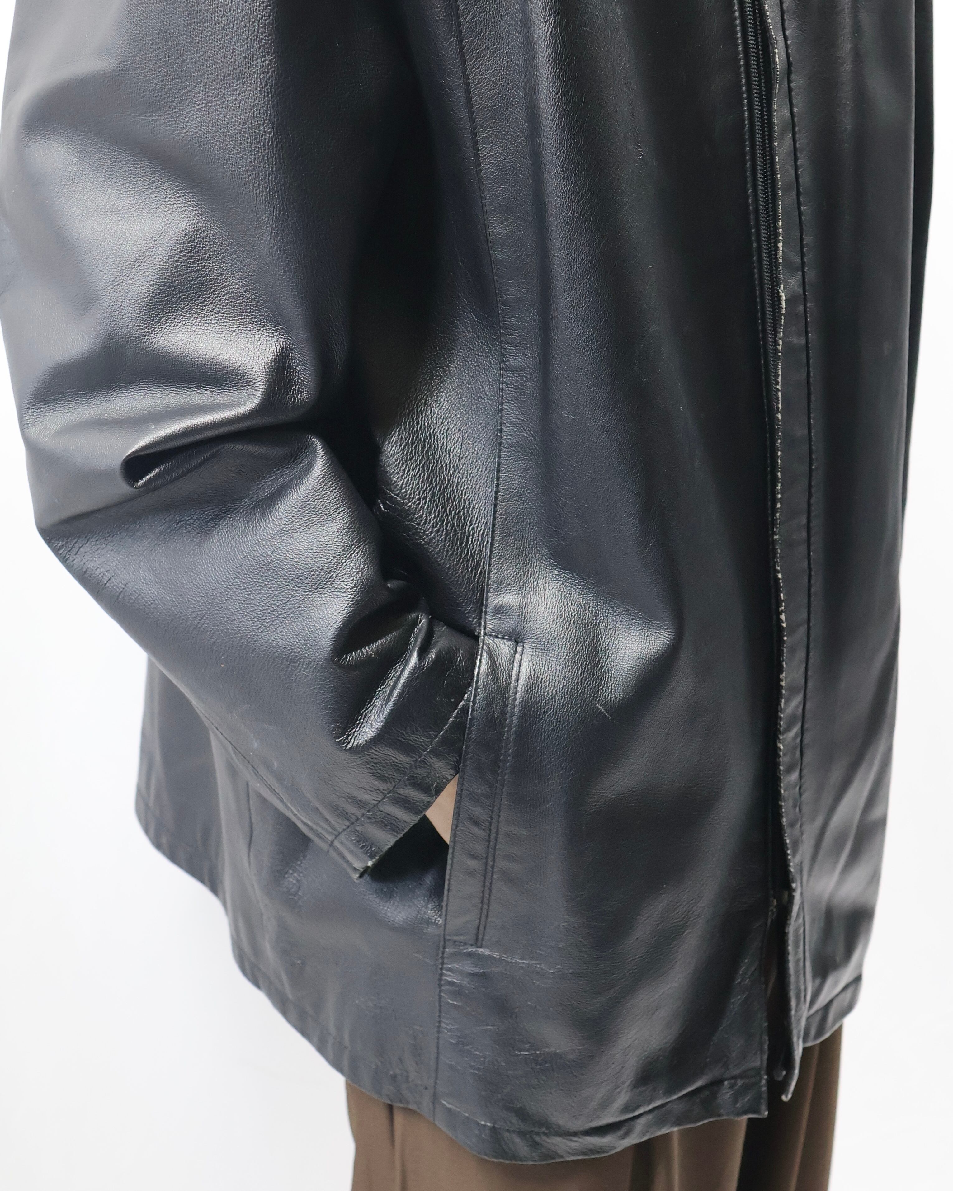 滑らかレザーを使用した、ミニマルなレザーハーフジャケット