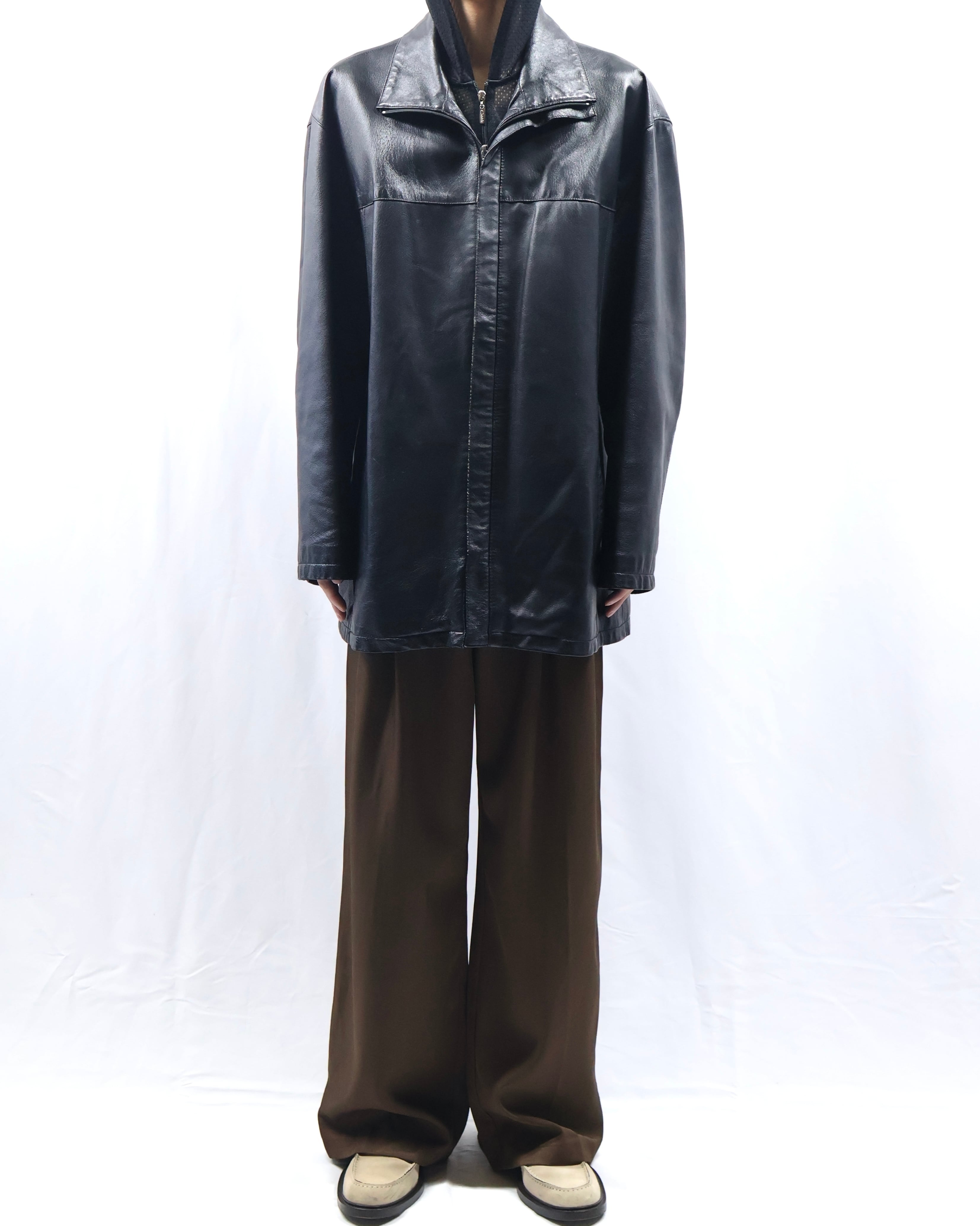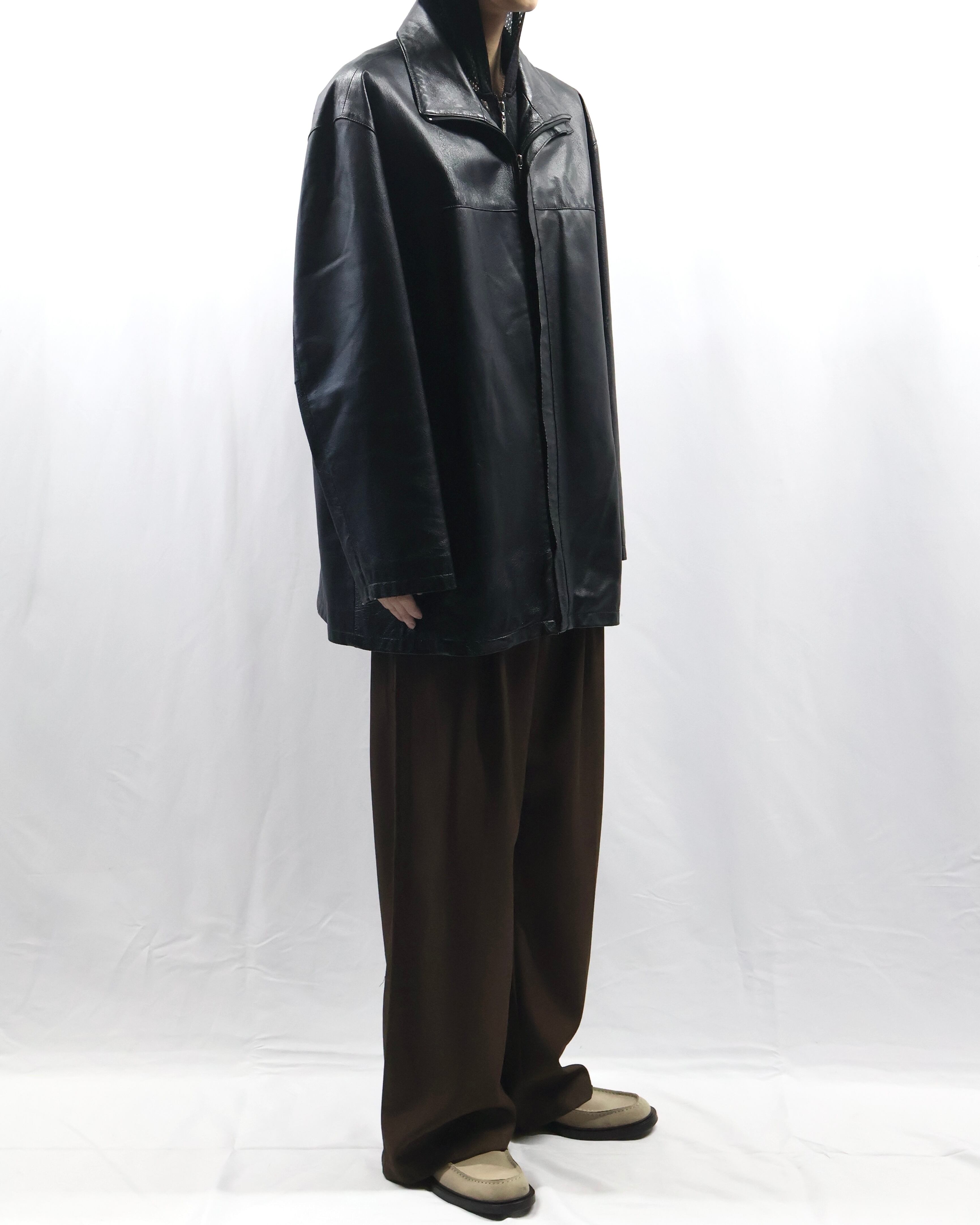 しなやかな質感と程よい艶感が、モードな雰囲気を引き立ててくれる一着。無駄のないシンプルなデザインで、どんなスタイリングにも自然に馴染むアイテム。