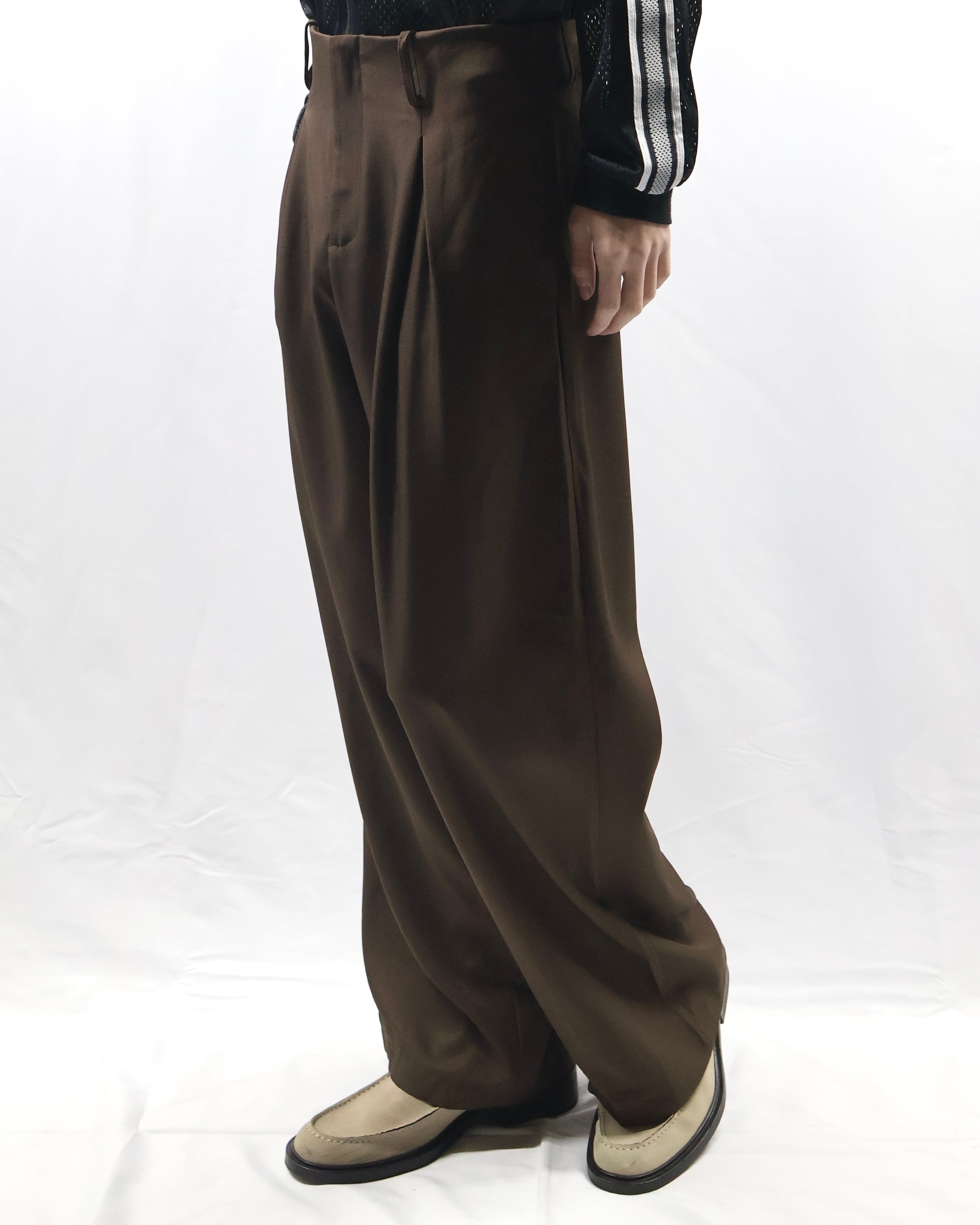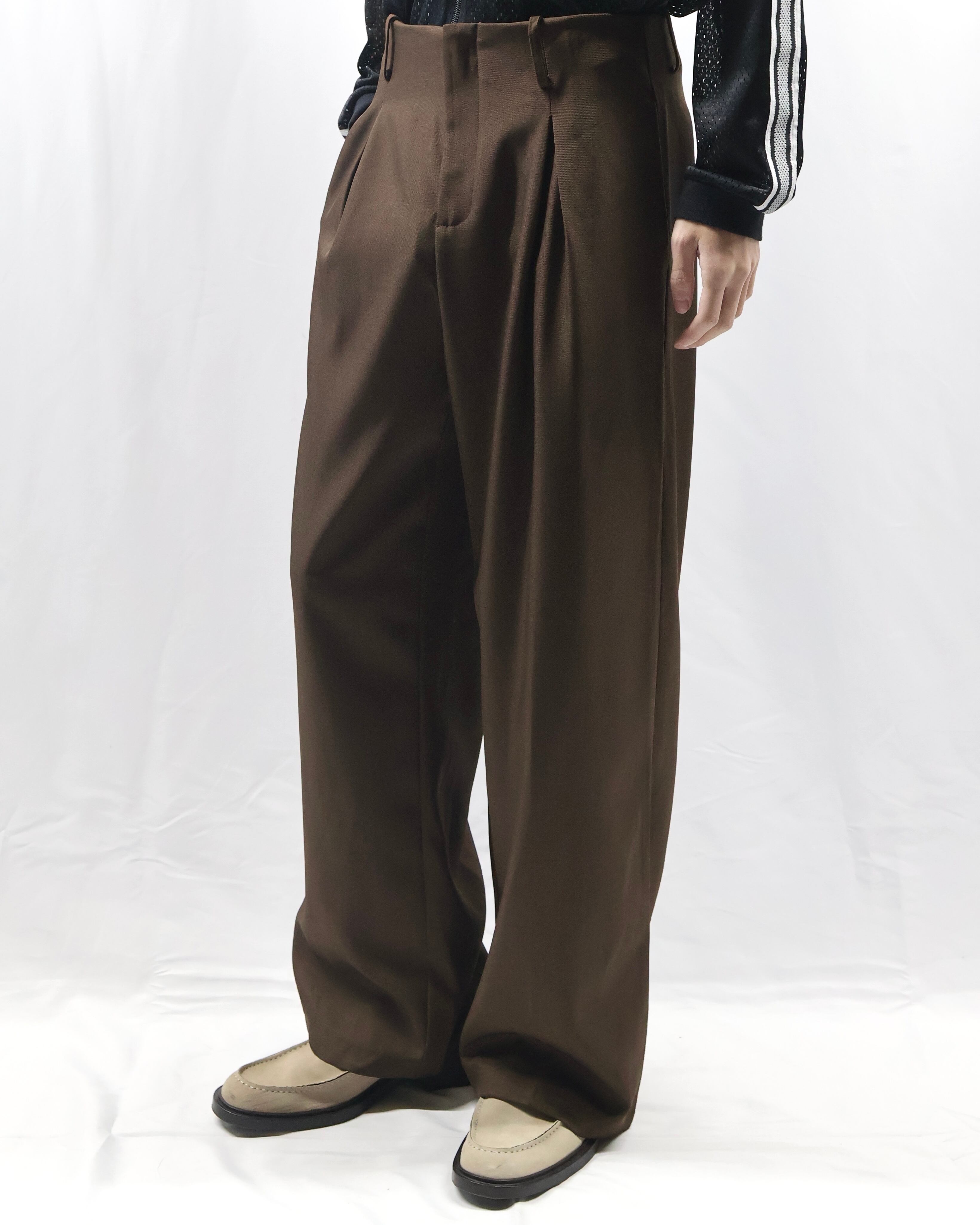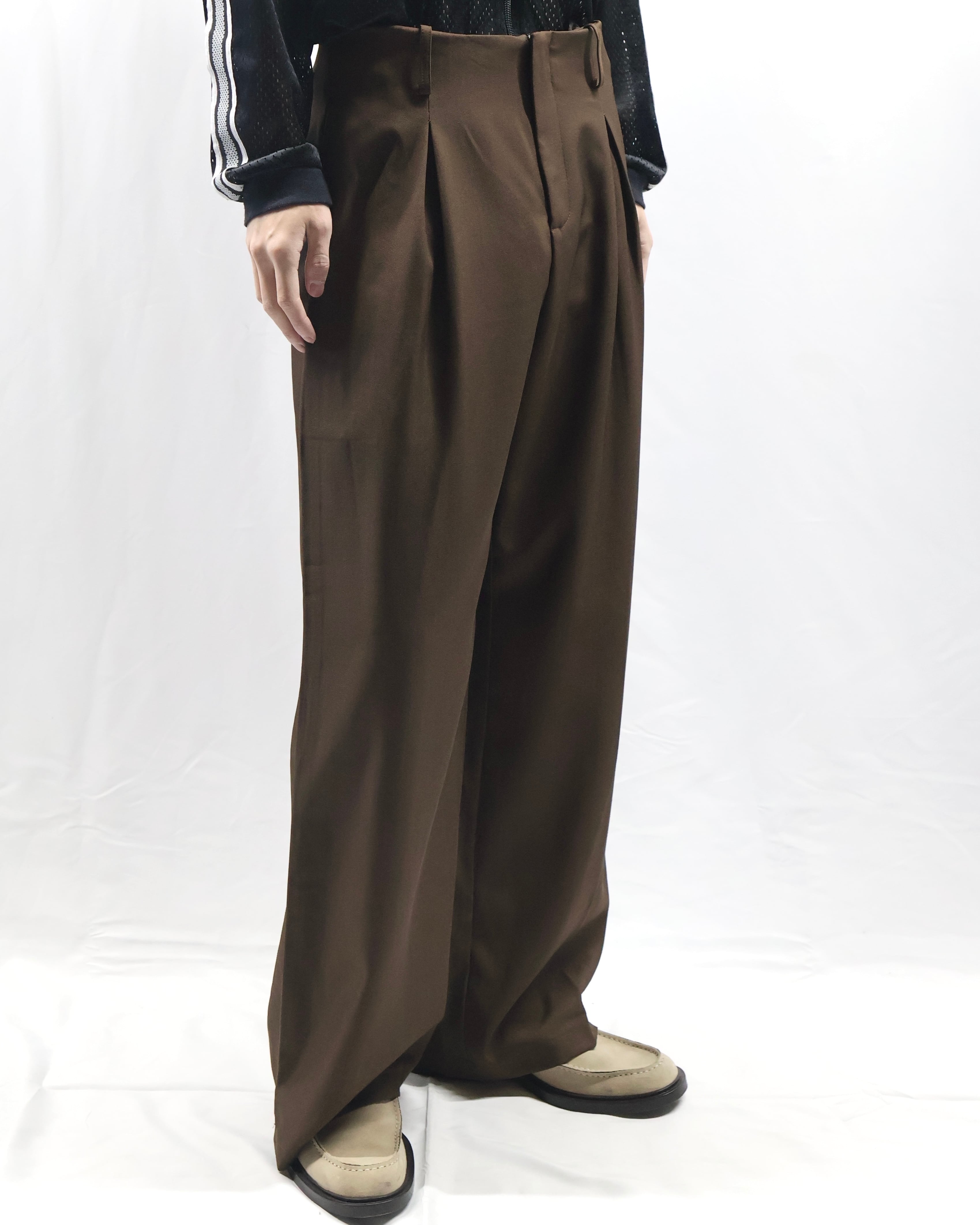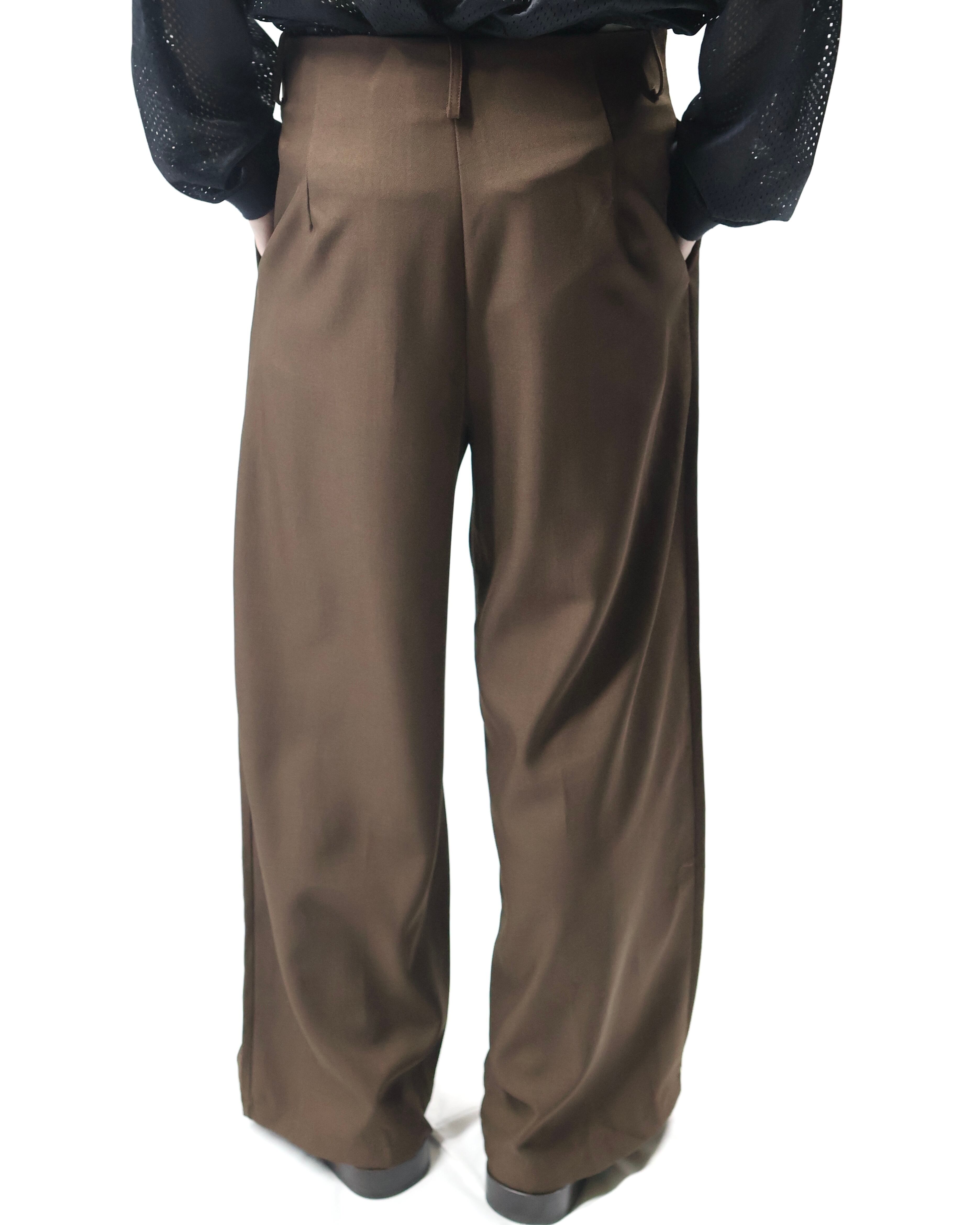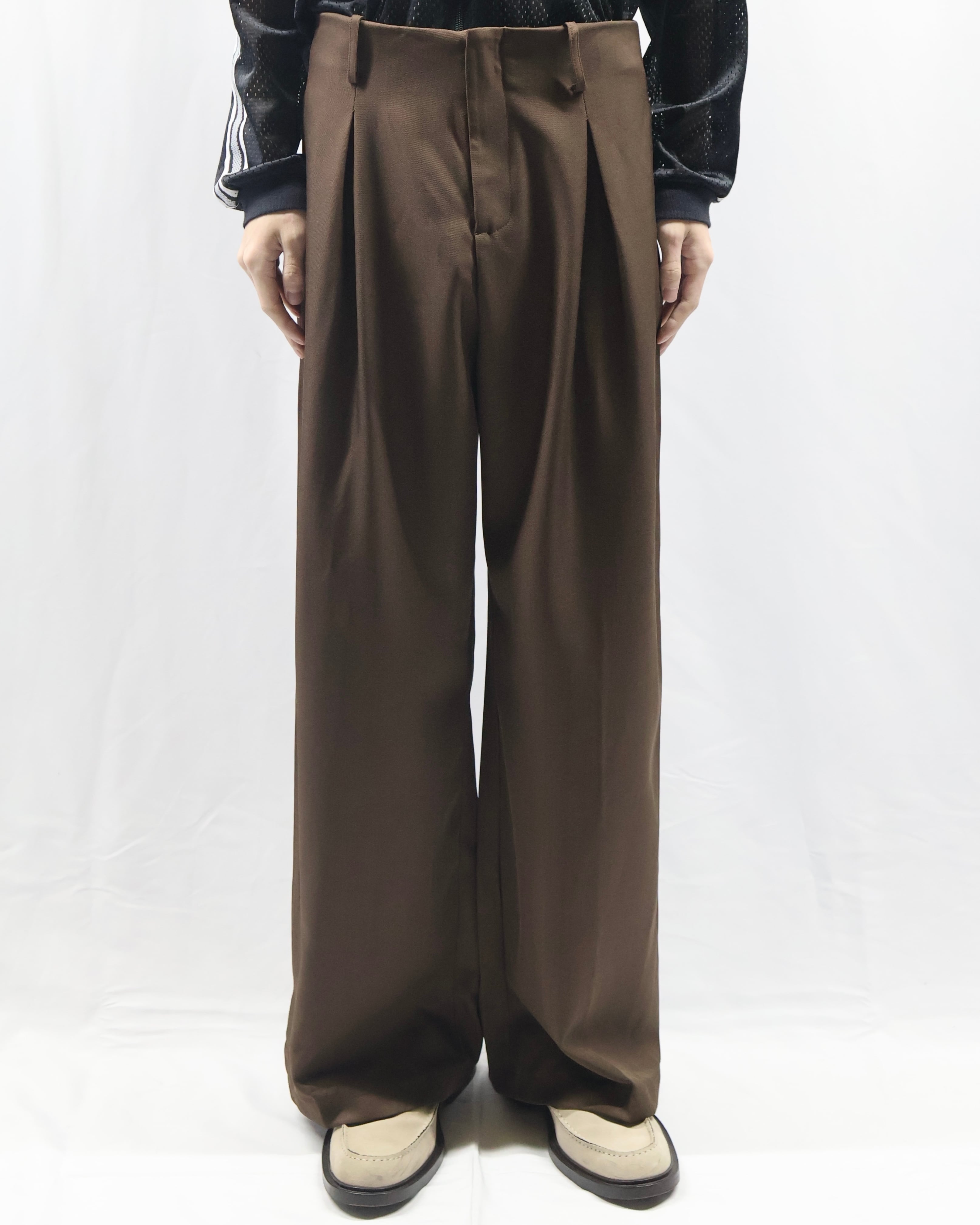 歩くたびに揺れる落ち感が、上品さとモードな存在感を演出。ブラウンの柔らかい色味がスタイリングに深みを与え、ニットからシャツまで幅広く対応可能。