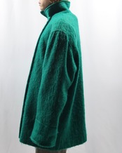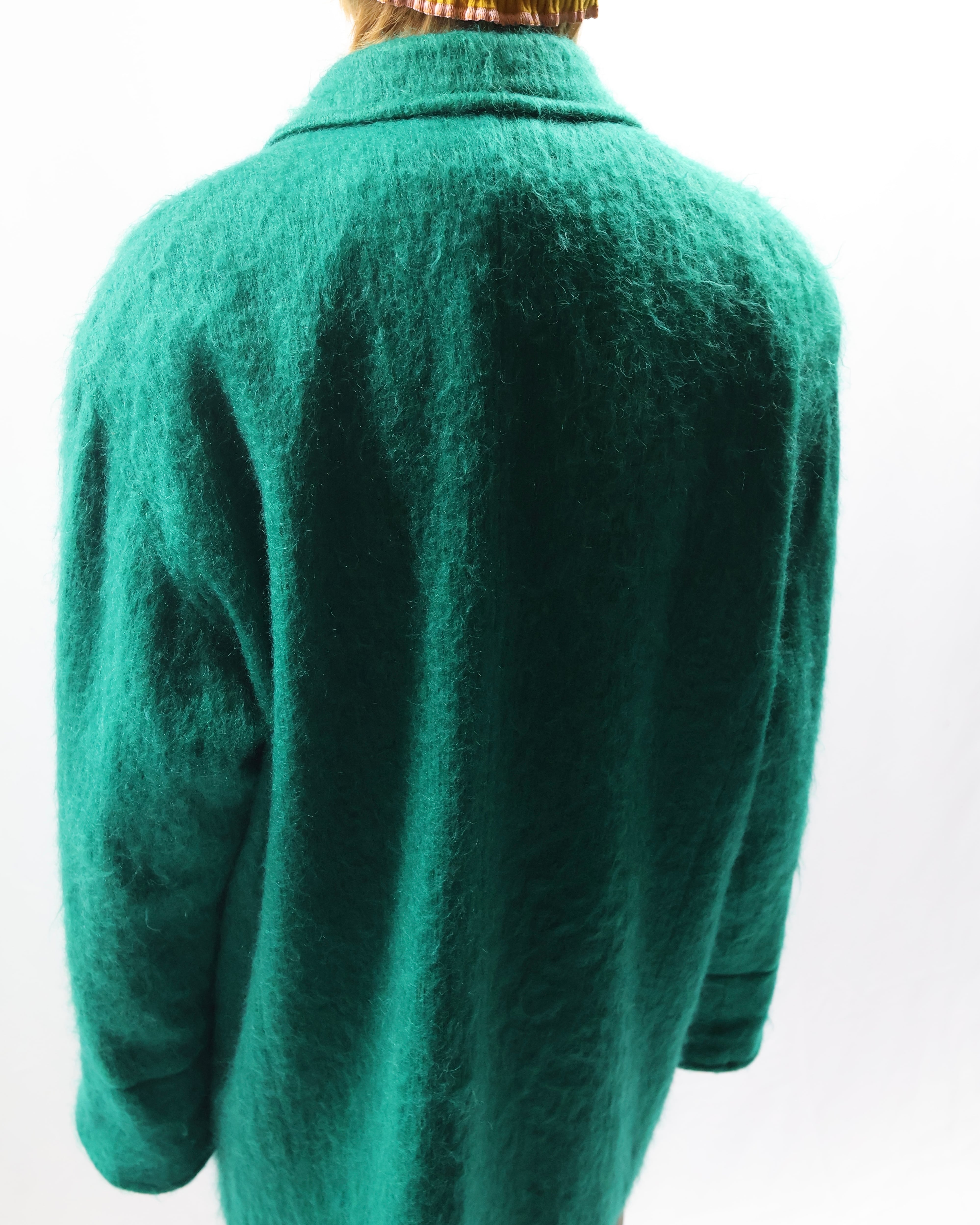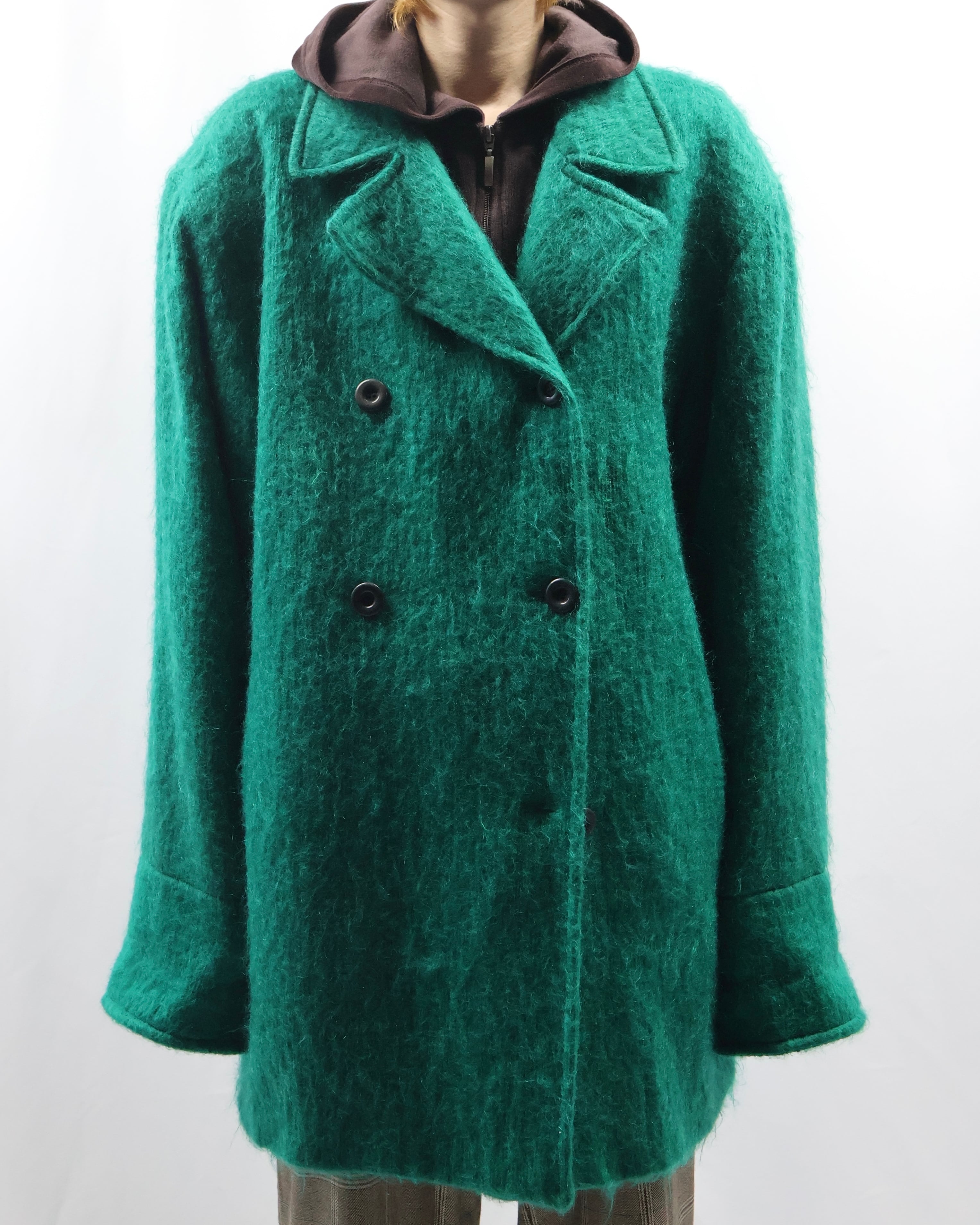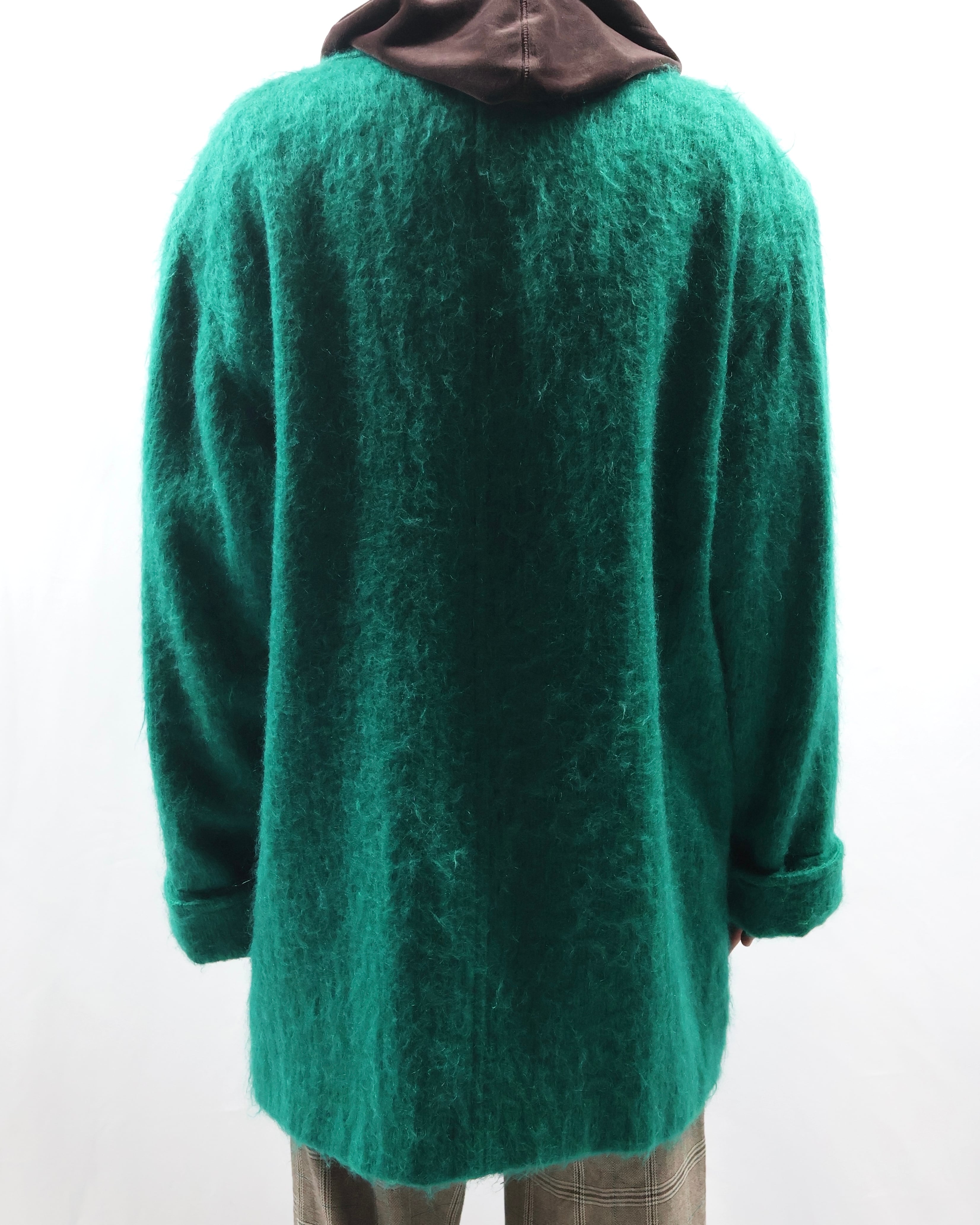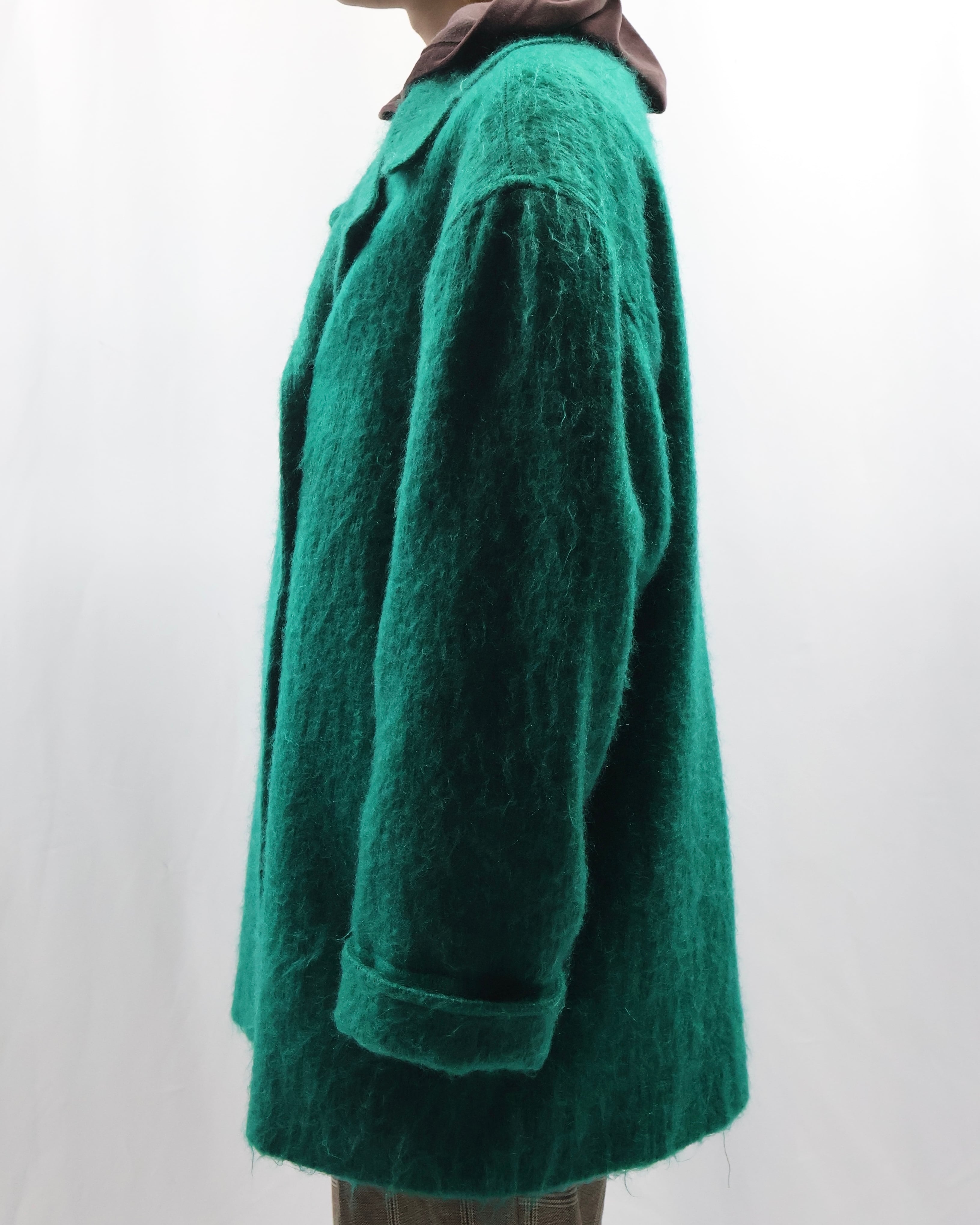 存在感のあるエメラルドグリーンのカラーが特徴のモヘアPコート