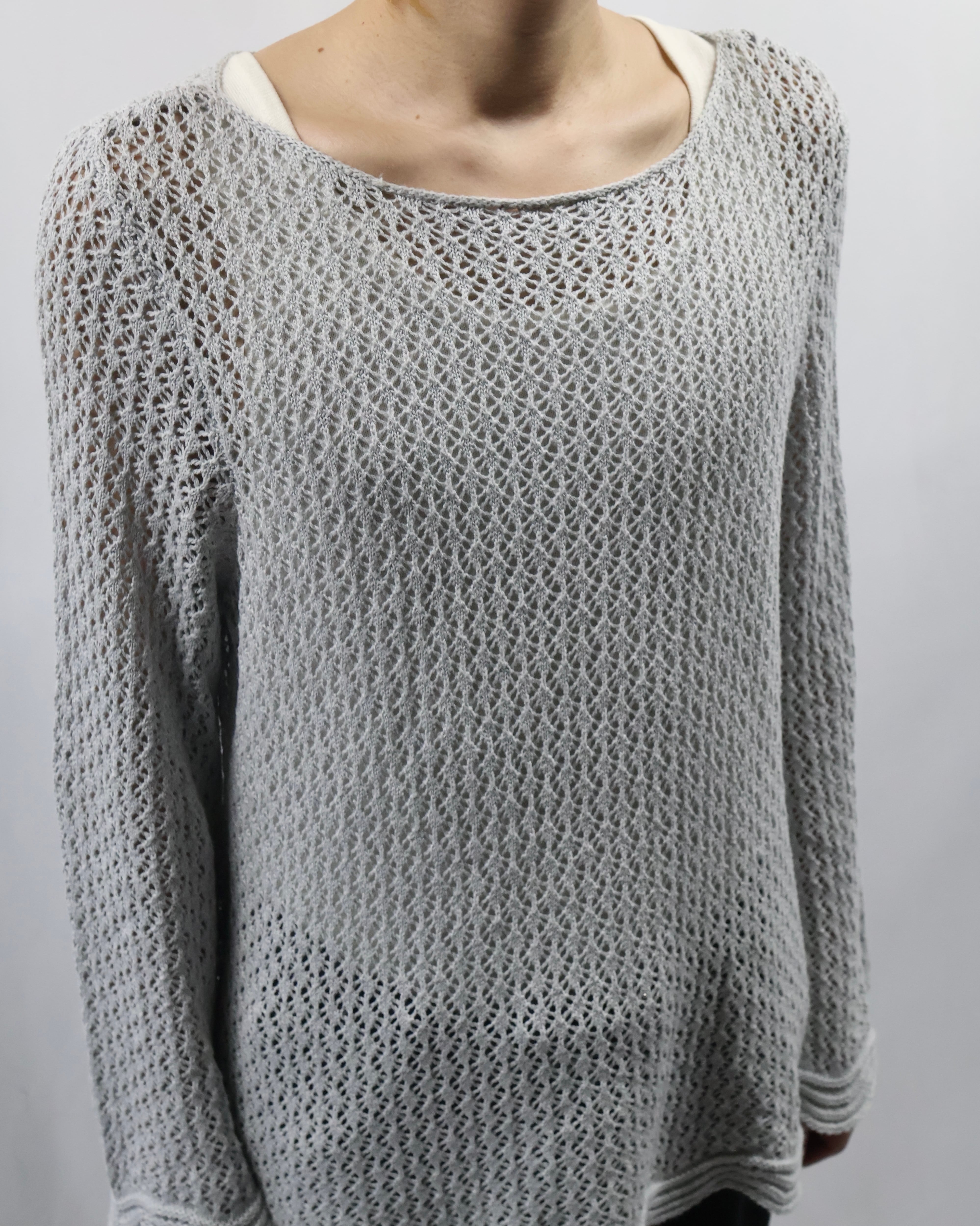 軽やかな透け感が特徴のメッシュニットプルオーバー
