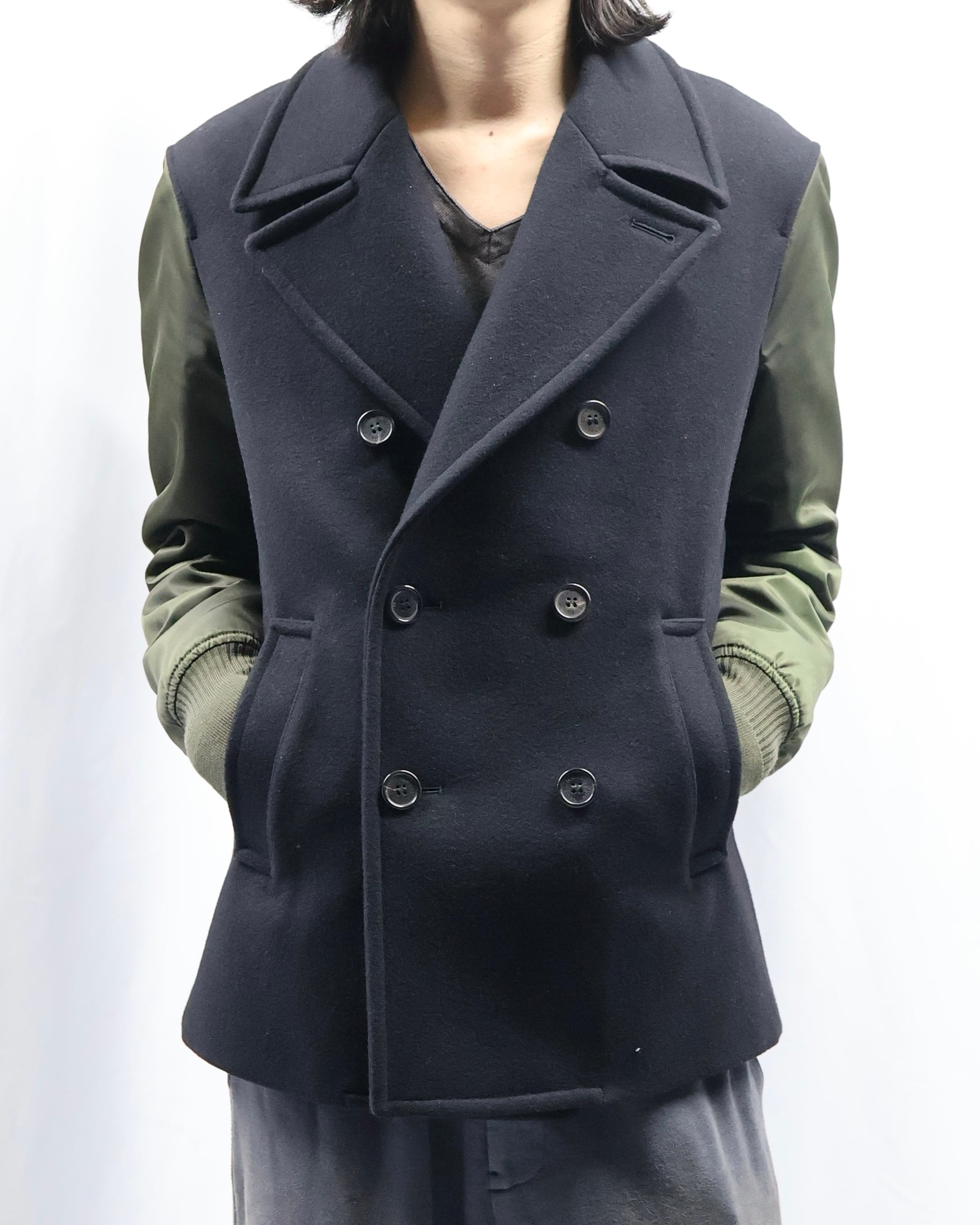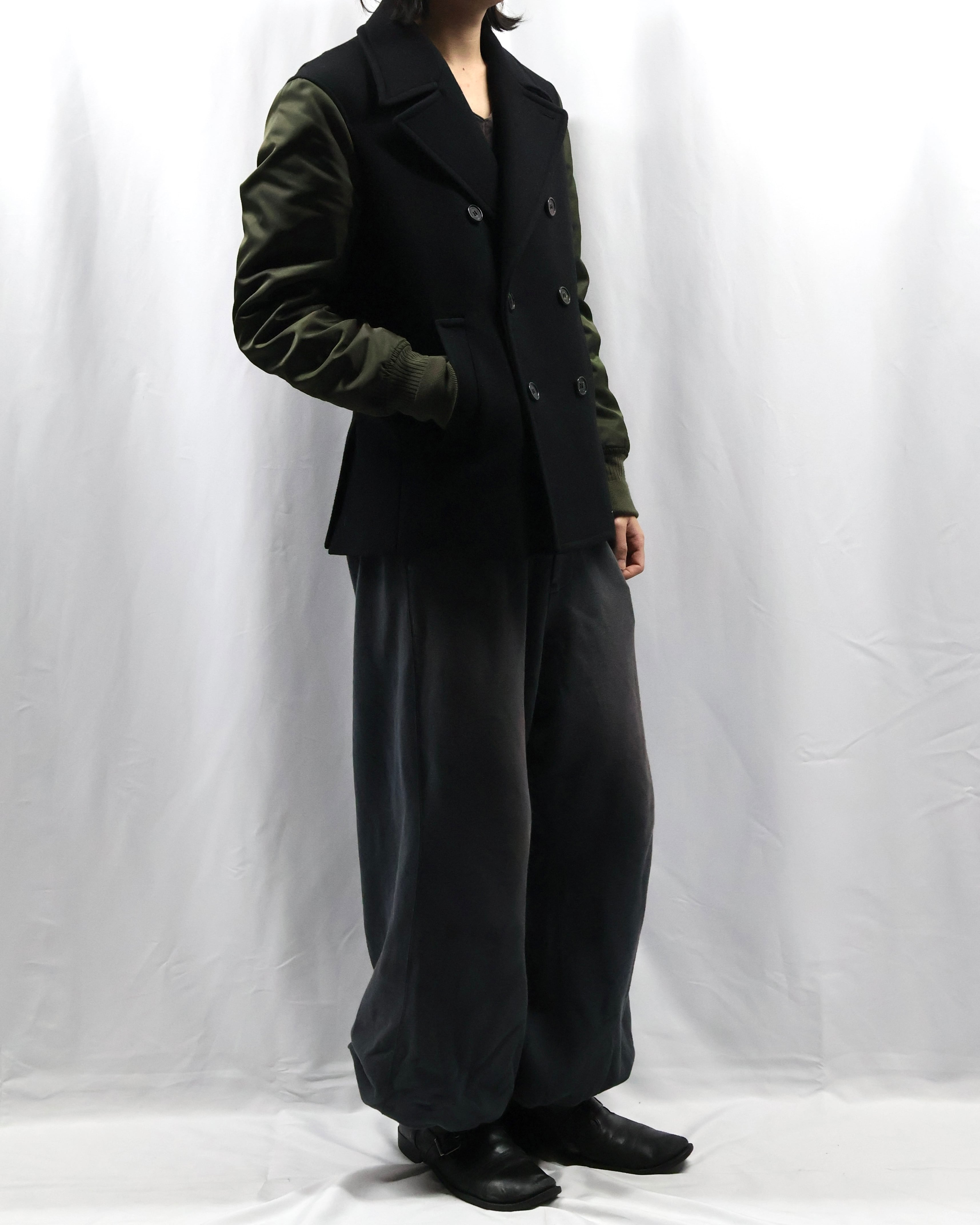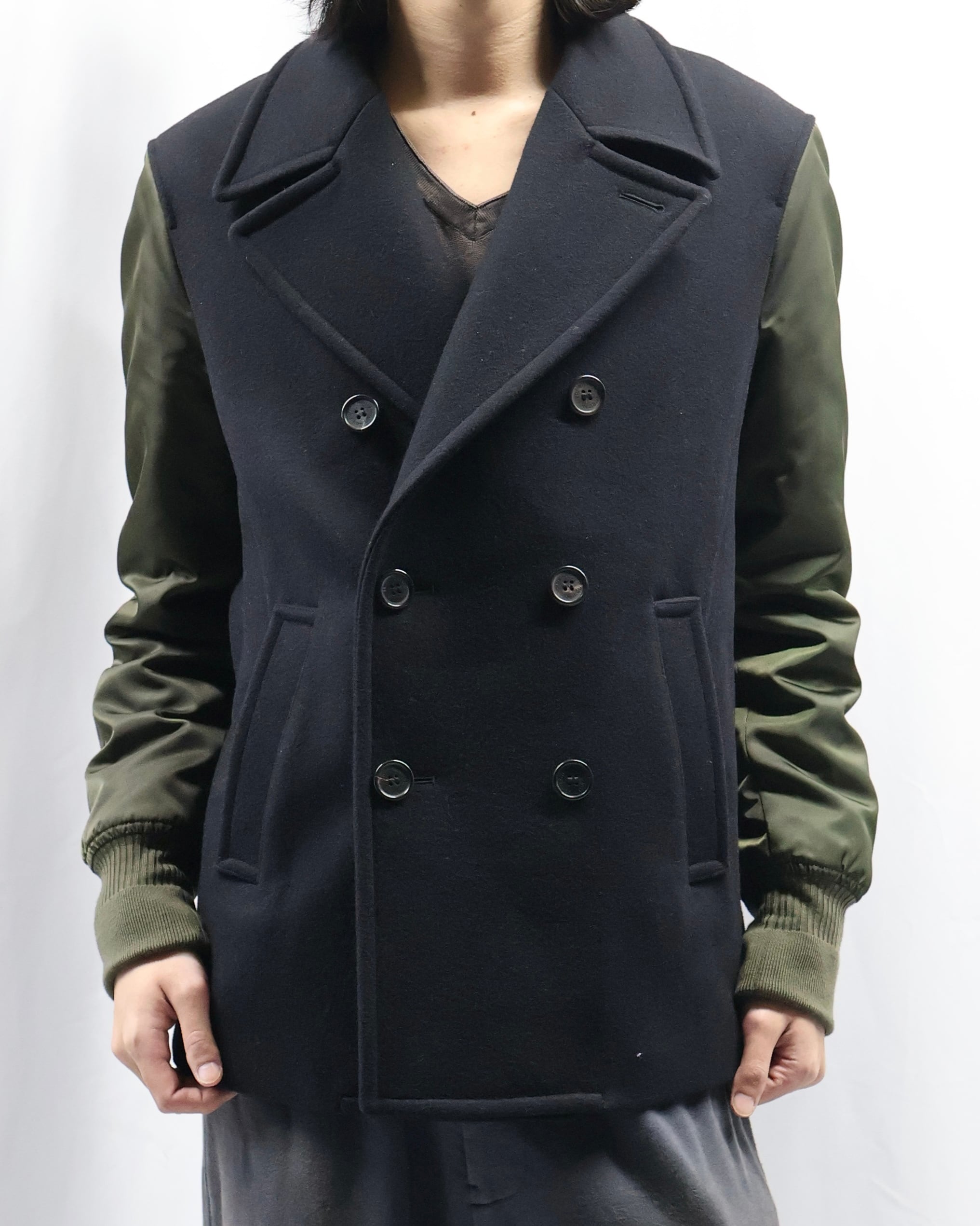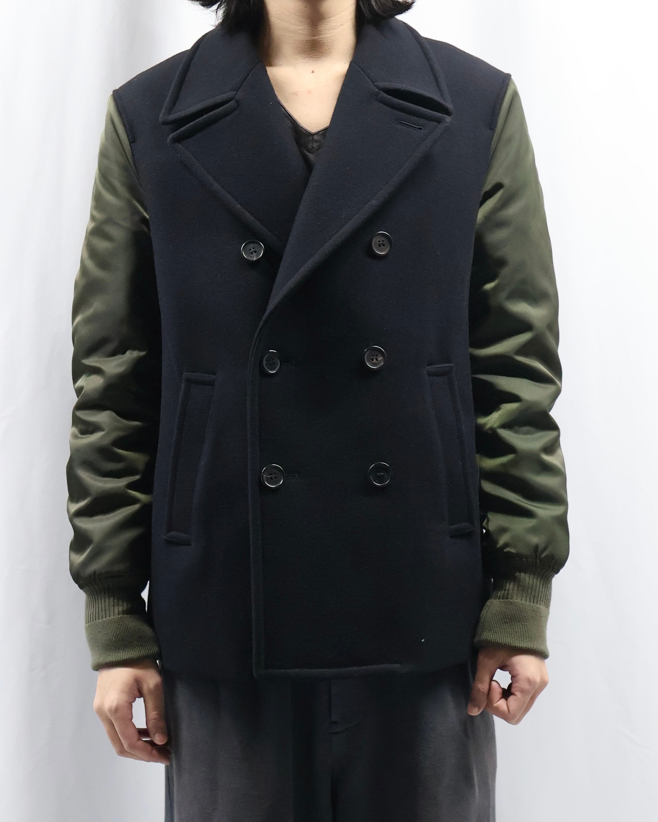 ウール素材でキレイな印象がありながらナイロン素材の袖切り替えがあるため多系統に着用できる汎用性のあるアイテム。
