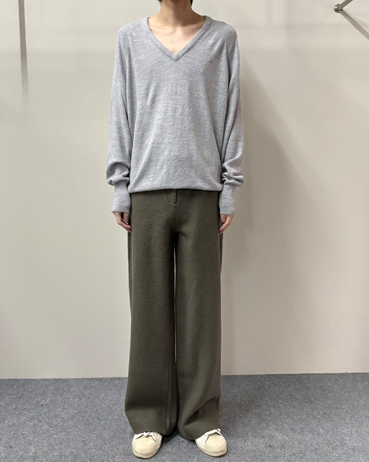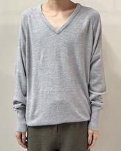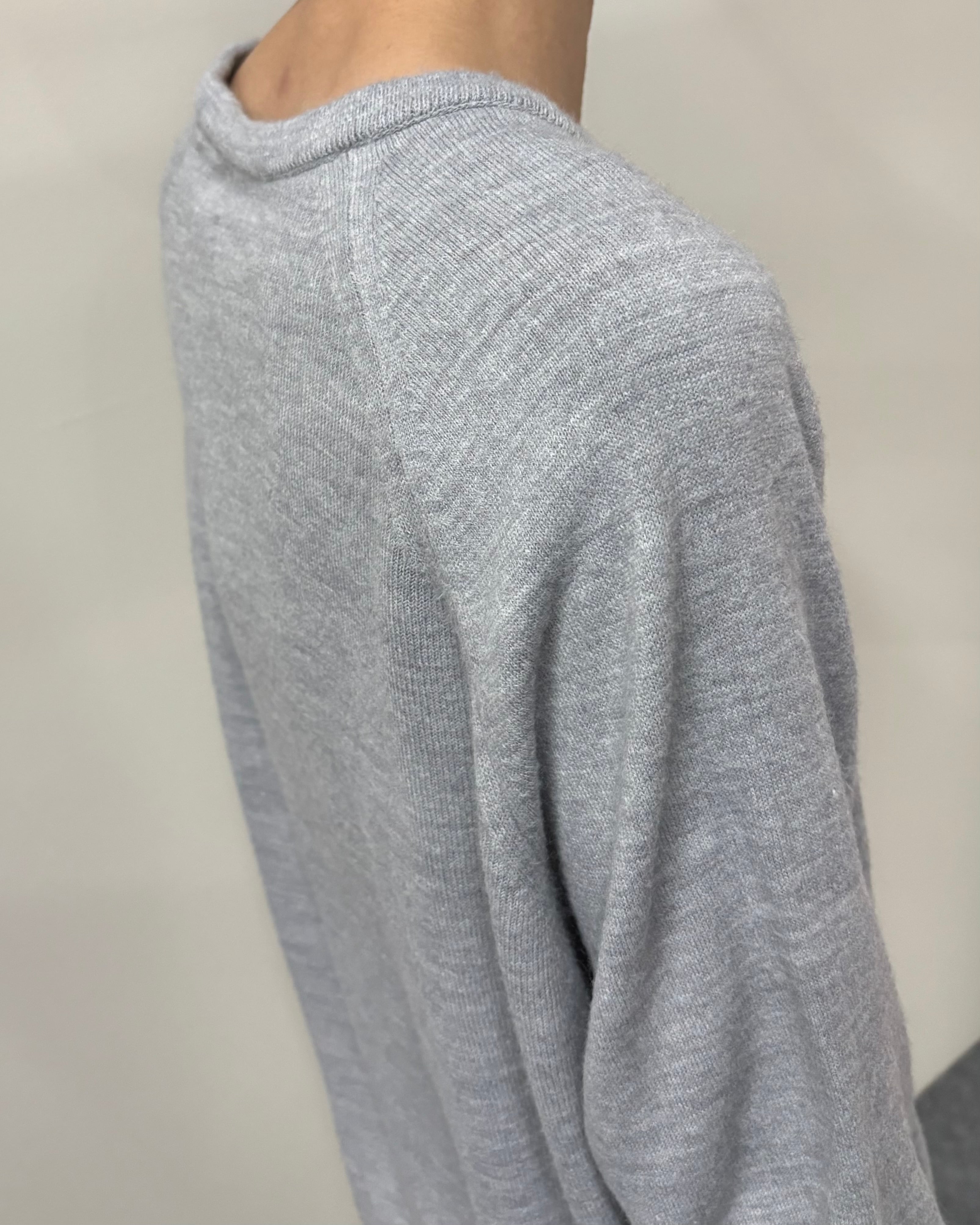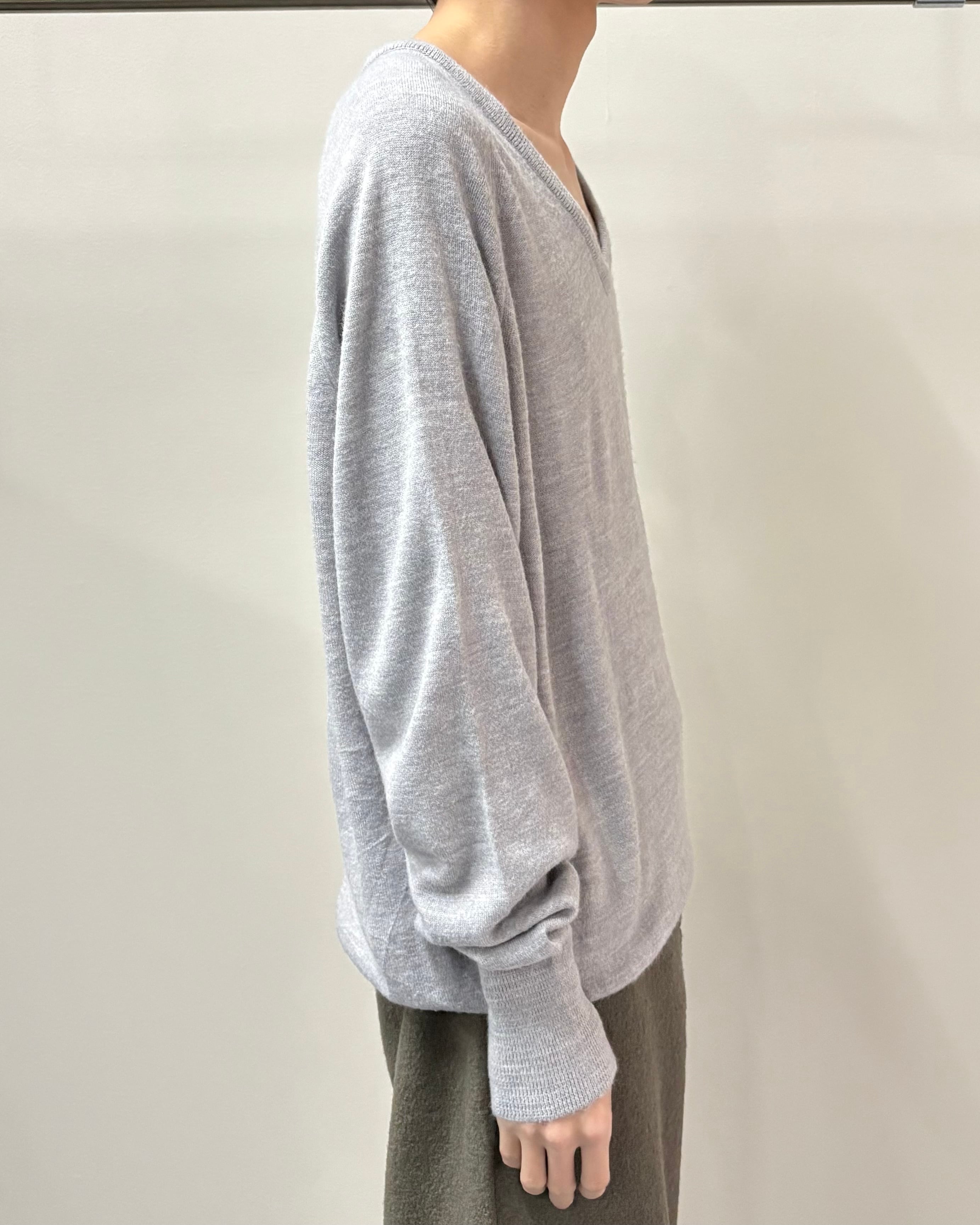 落ち着きのあるグレーカラーがモダンな表情を与え、深すぎないネックの開きによりどこか気品さをも感じられる、1枚でもインナーとしても活躍できる1着