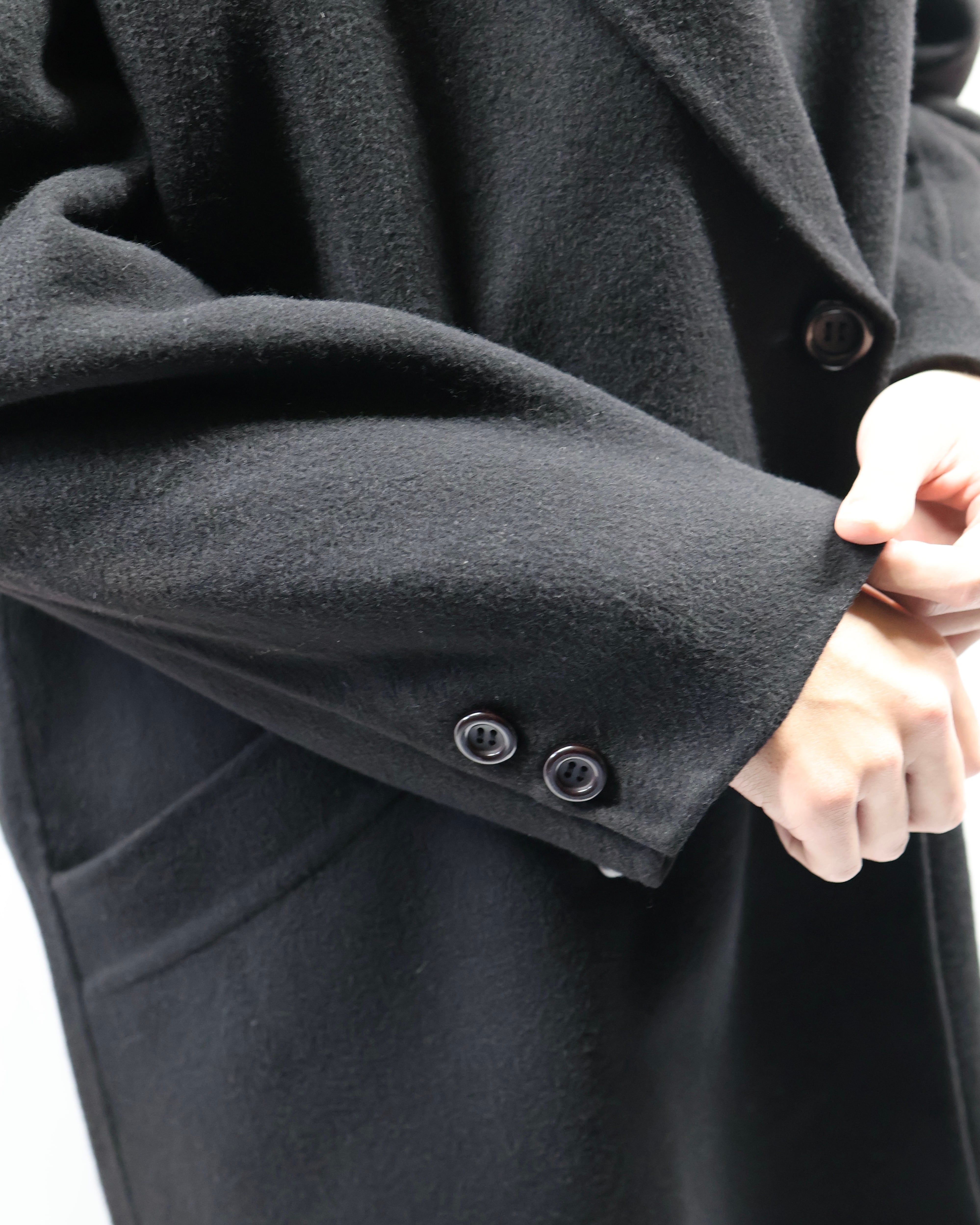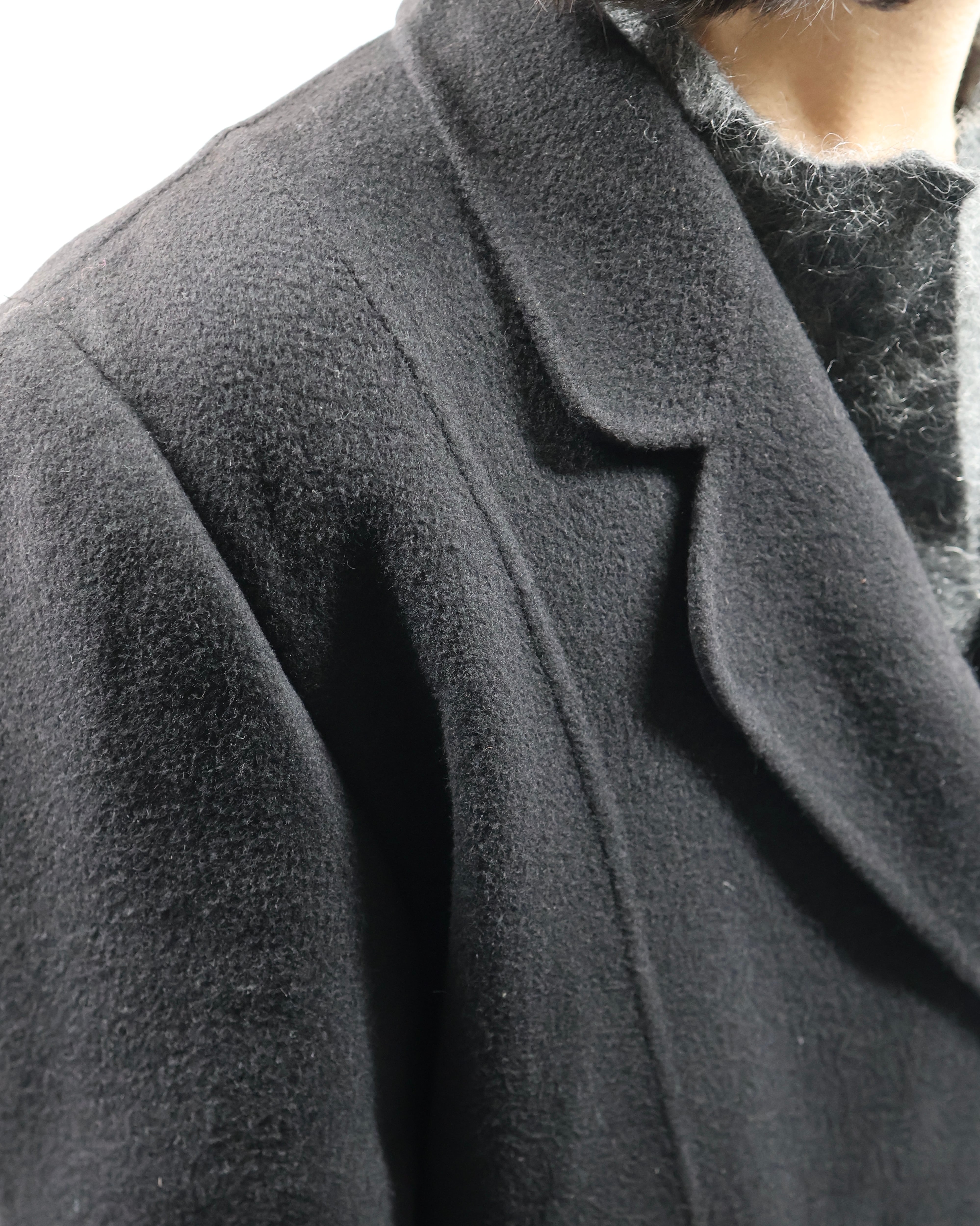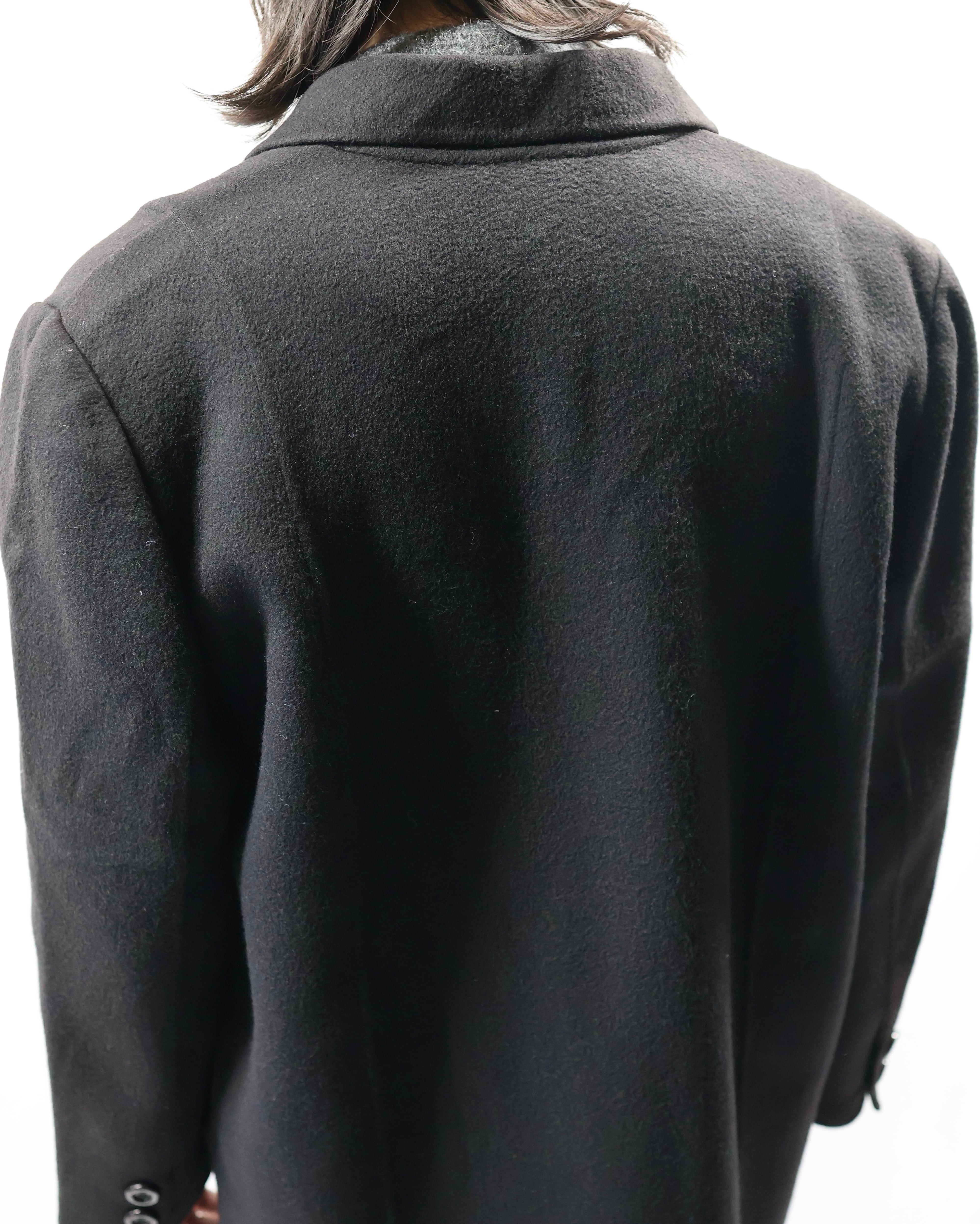 程よく構築的な肩周りと、身体のラインに沿って落ちるシルエットが落ち着きのある洗練された一着。