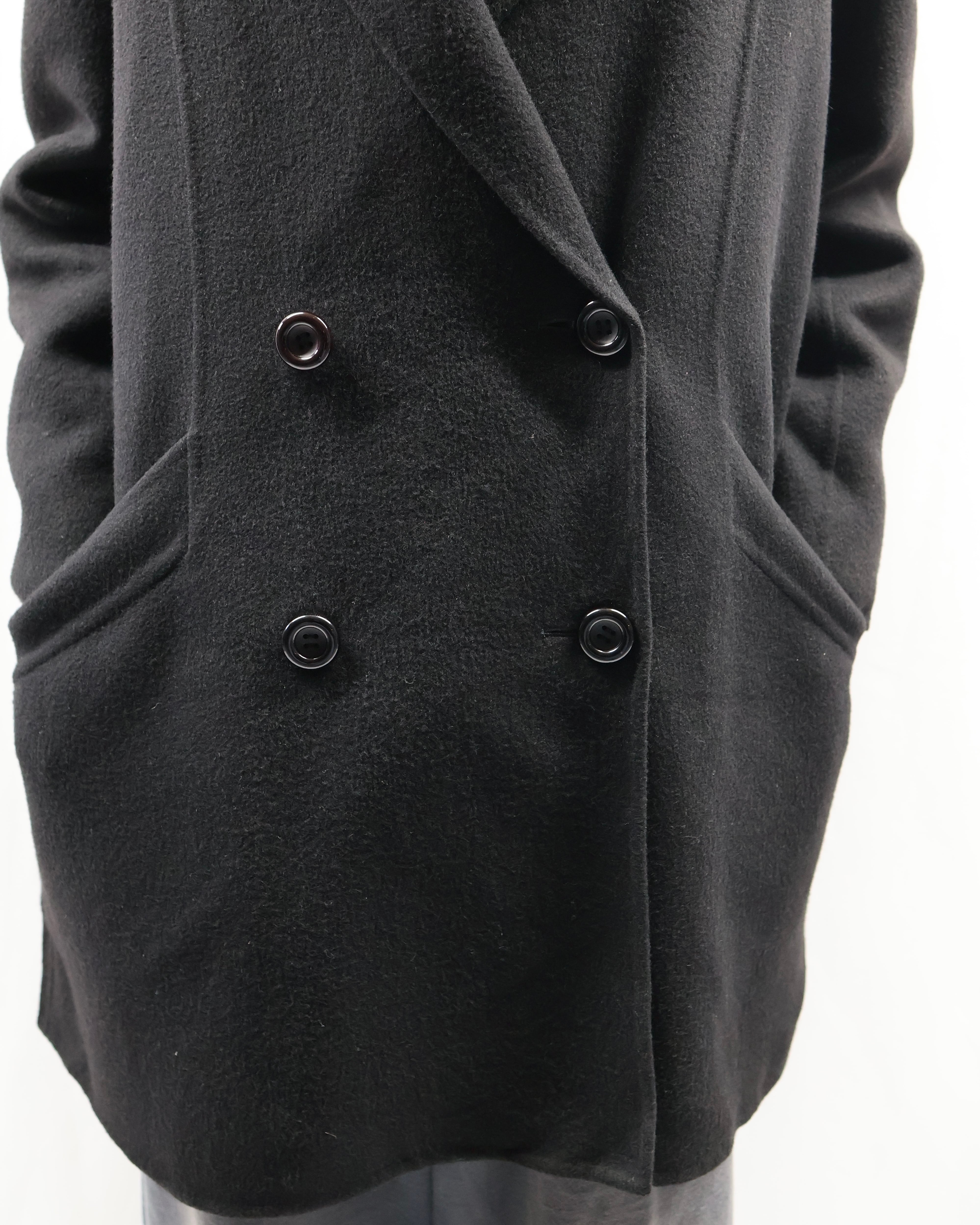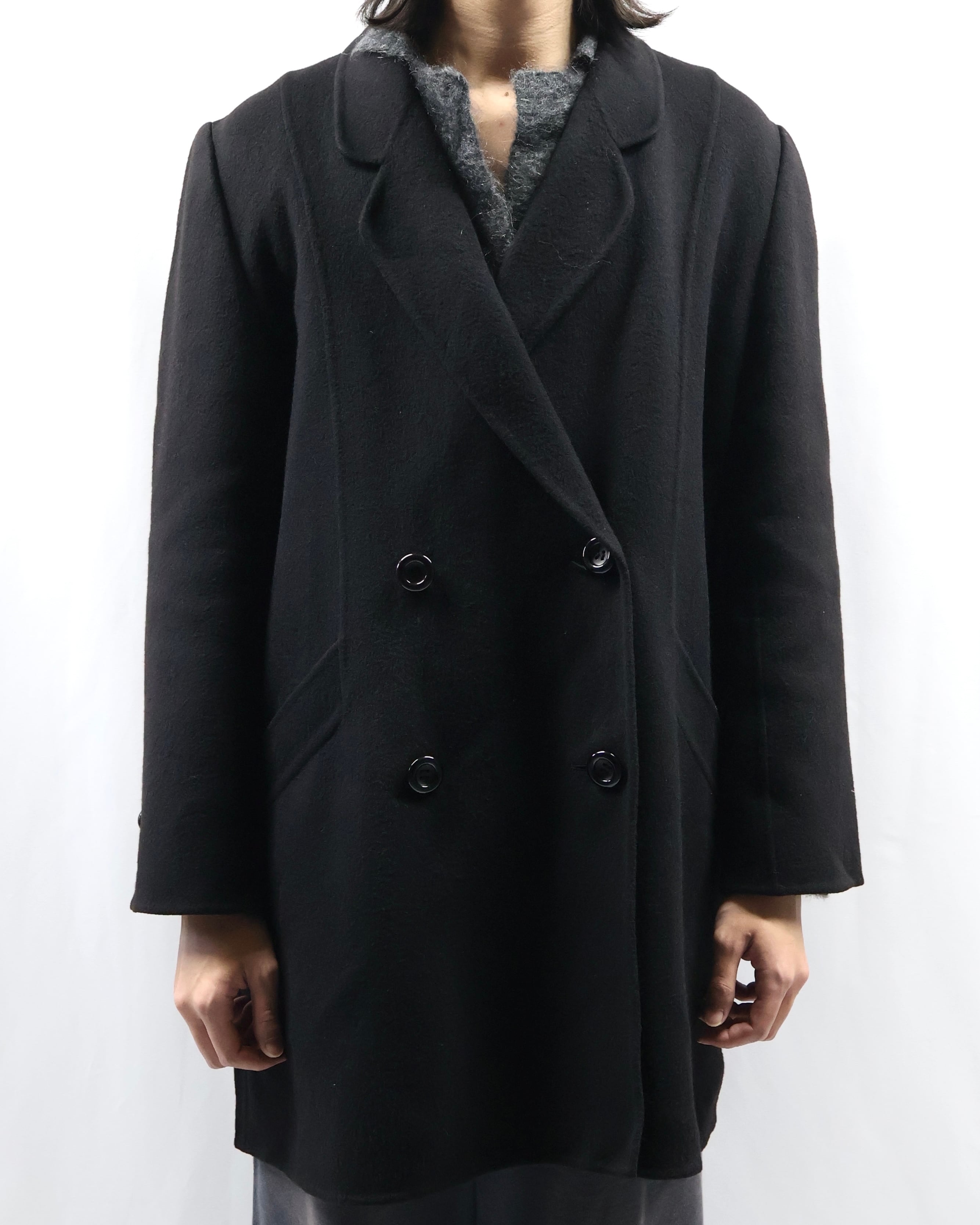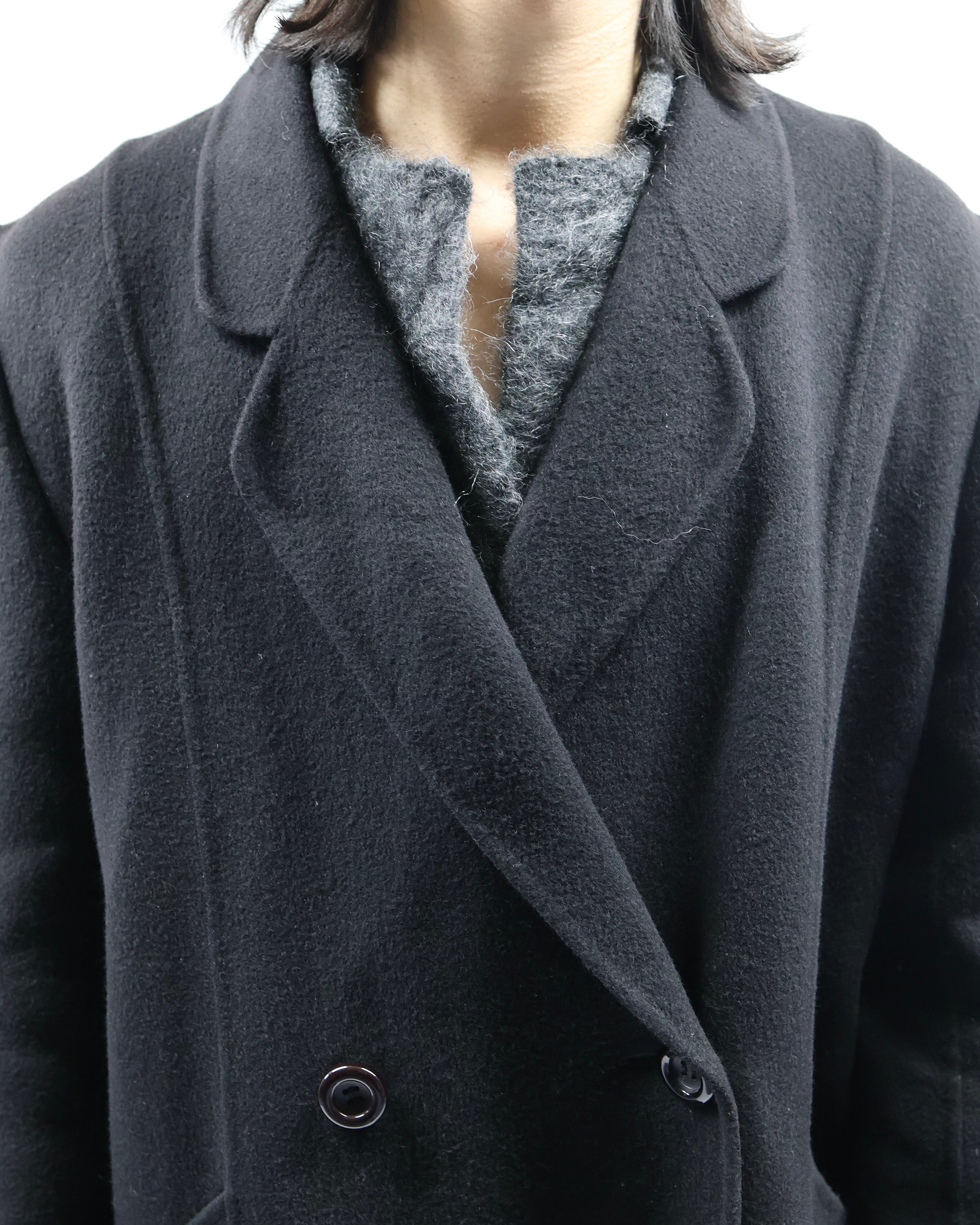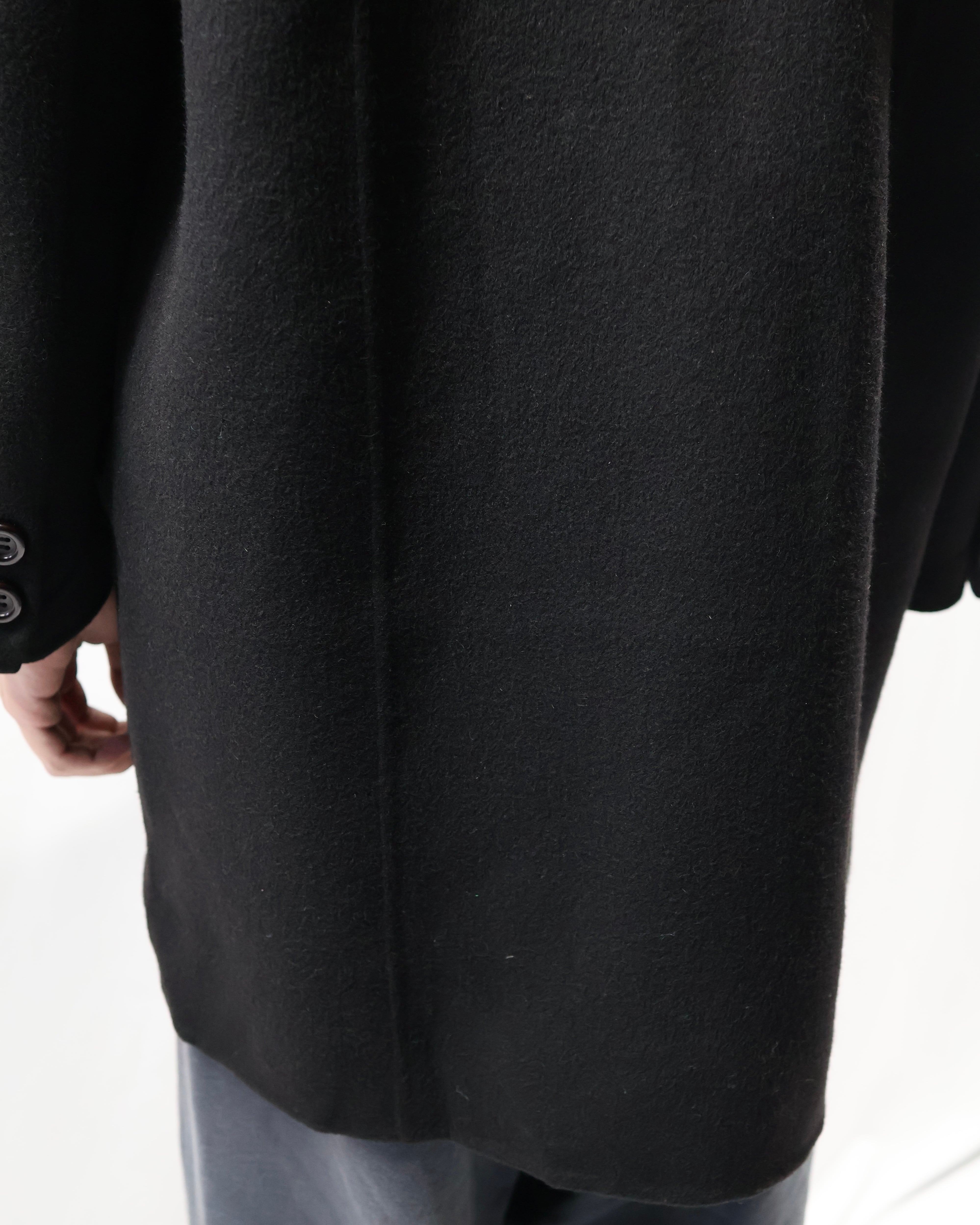 程よく構築的な肩周りと、身体のラインに沿って落ちるシルエットが落ち着きのある洗練された一着。