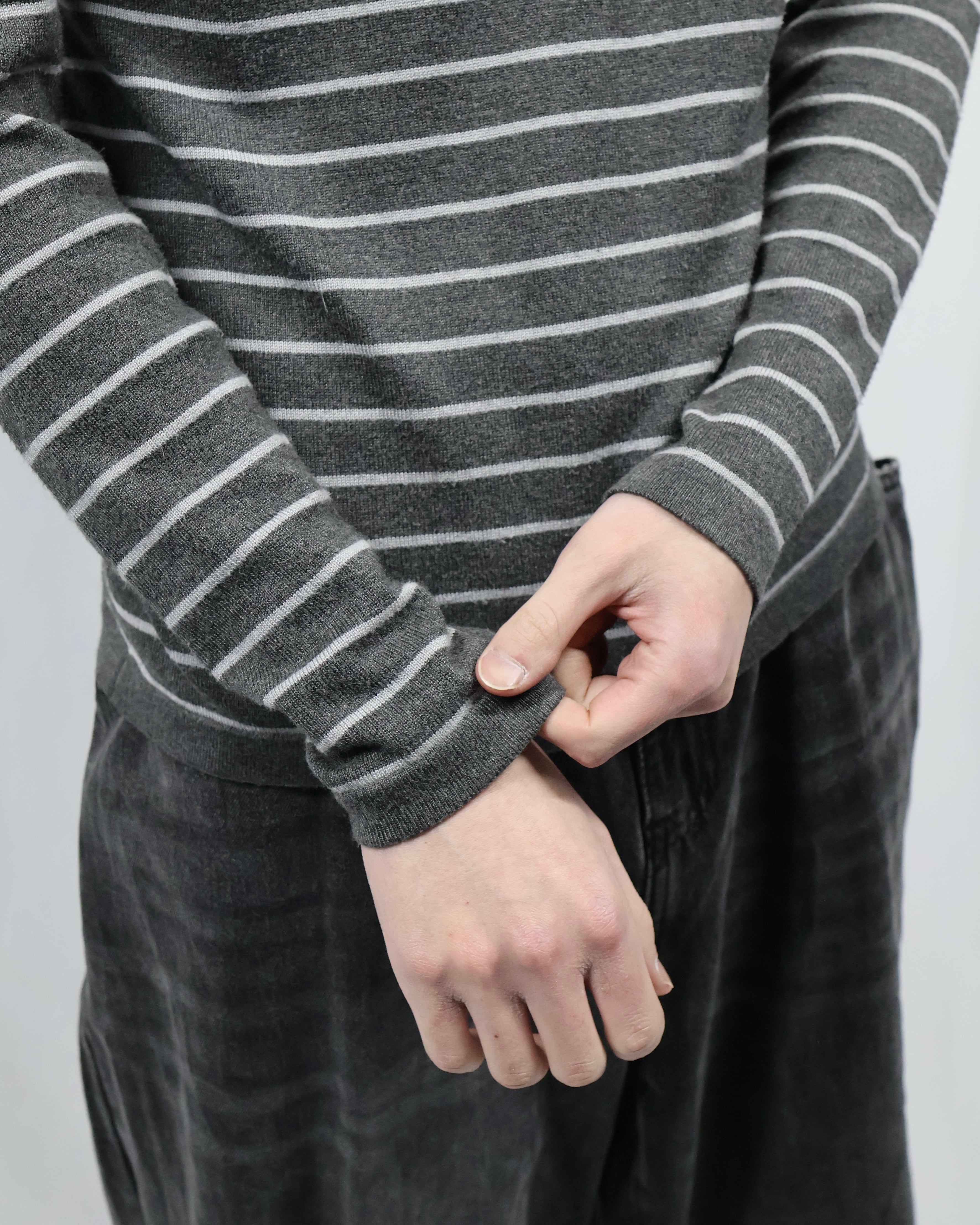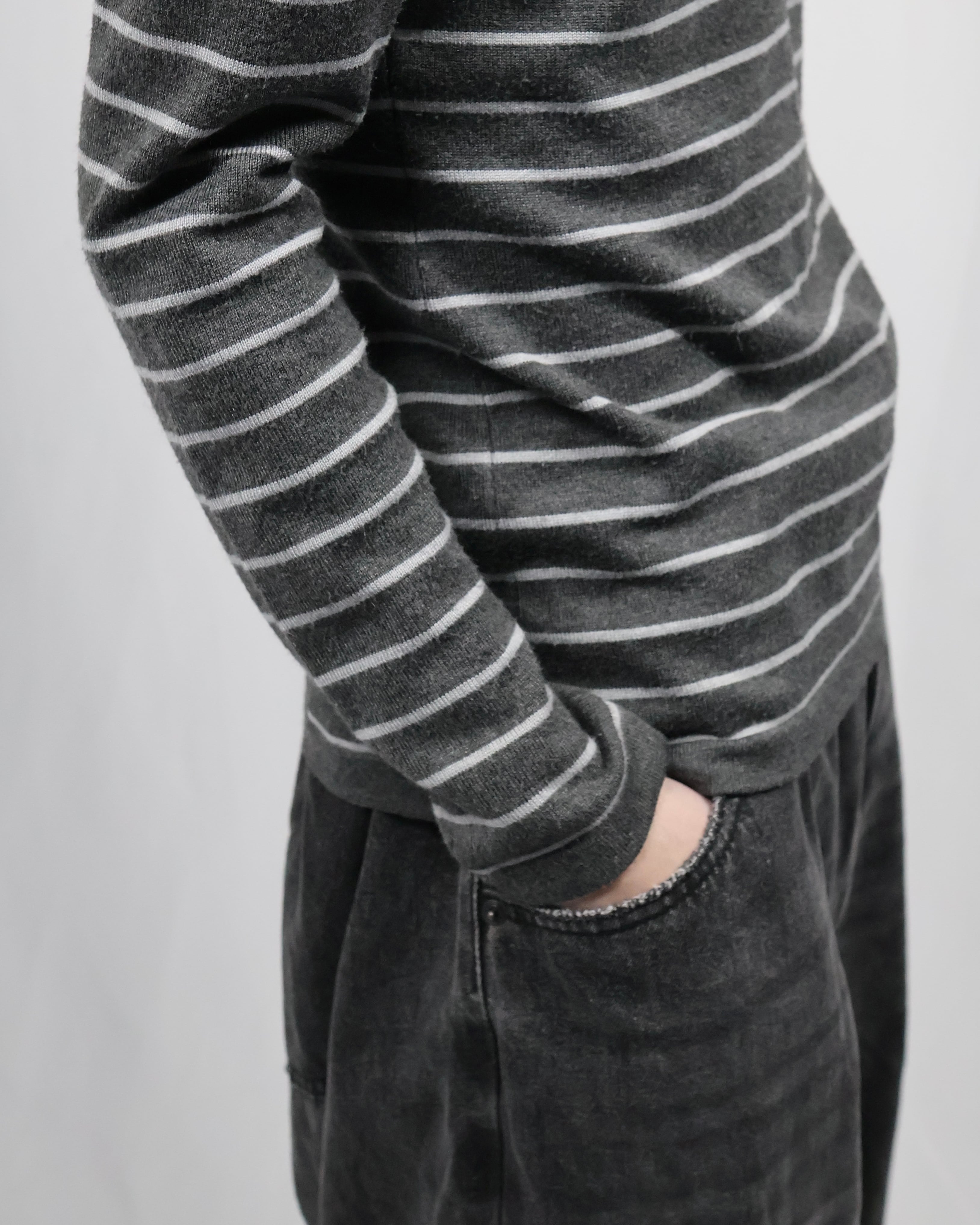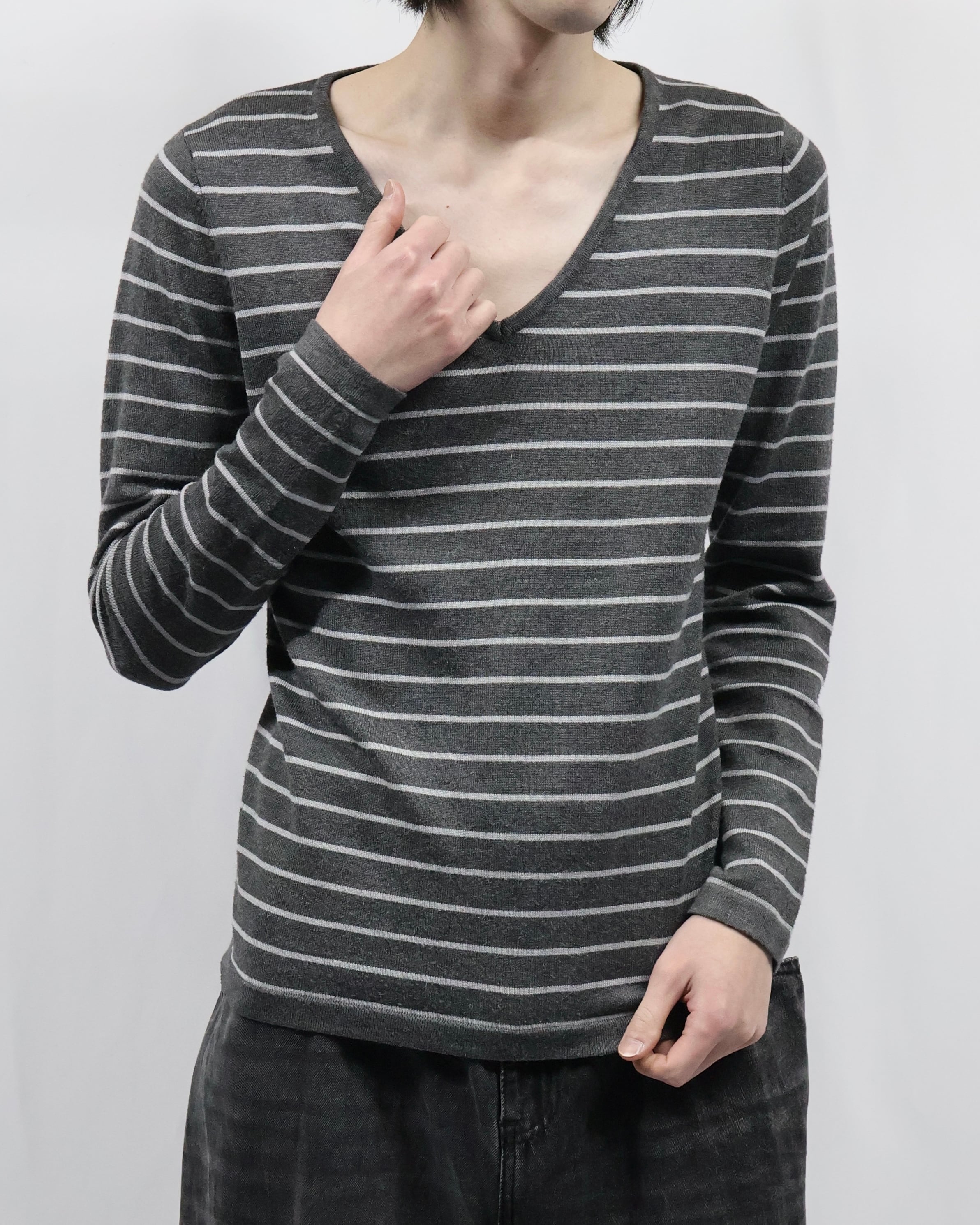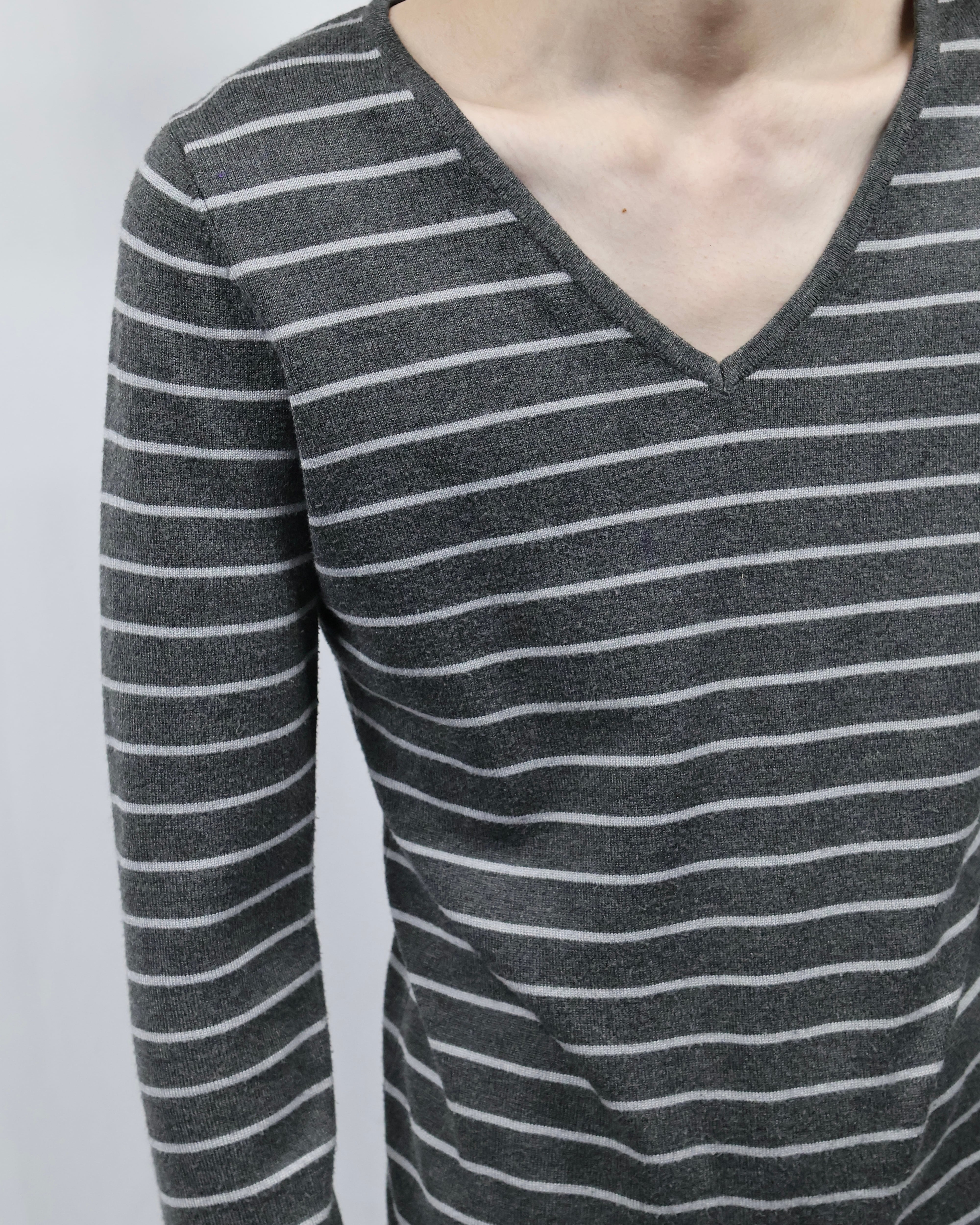 絶妙な厚みでインナーとしても一枚でサラッと着ていただいてもうまくコーディネートにはまります。Vネックで程よい抜け感もあり、冬のコーデにうまい具合に抜け感を演出してくれます。