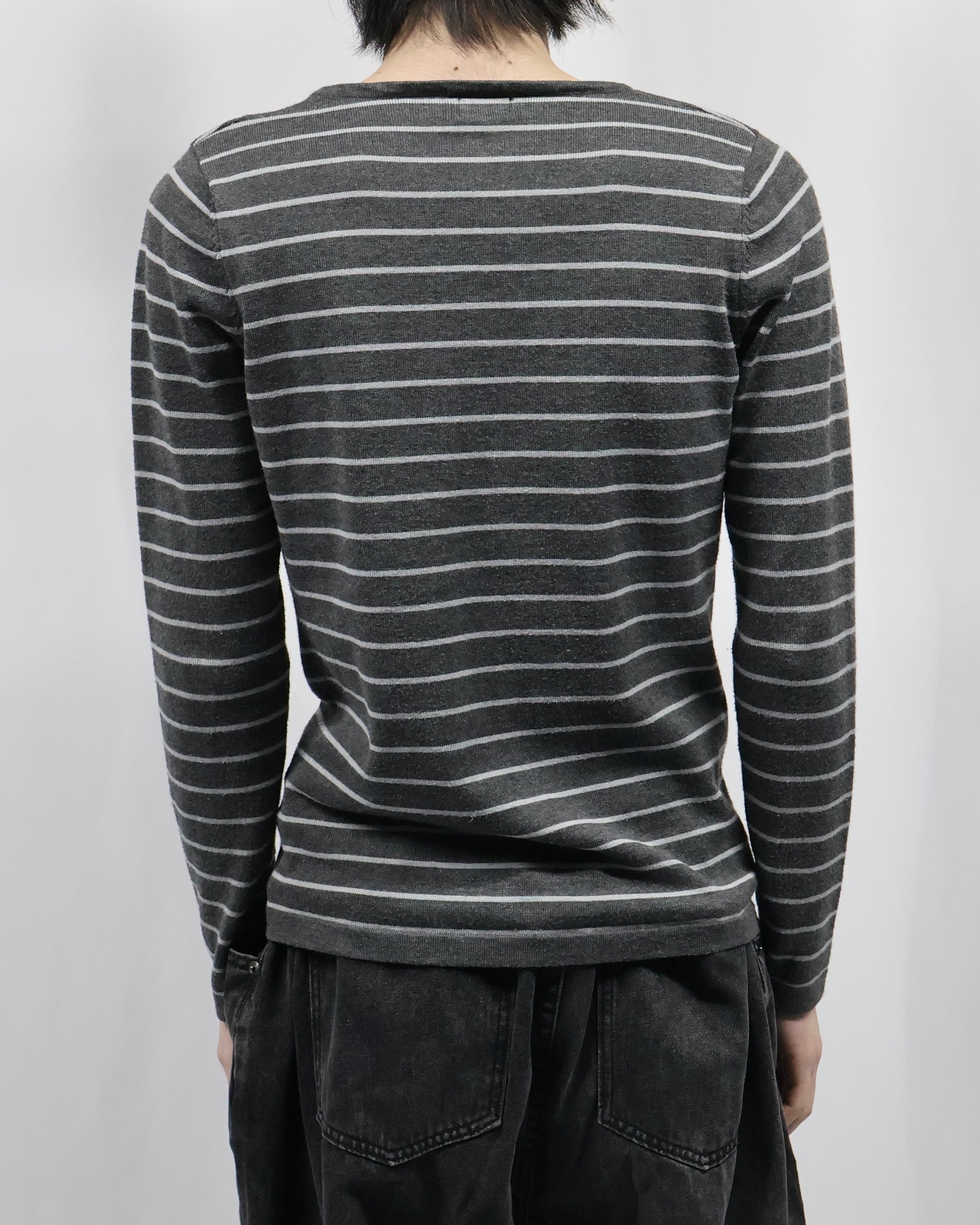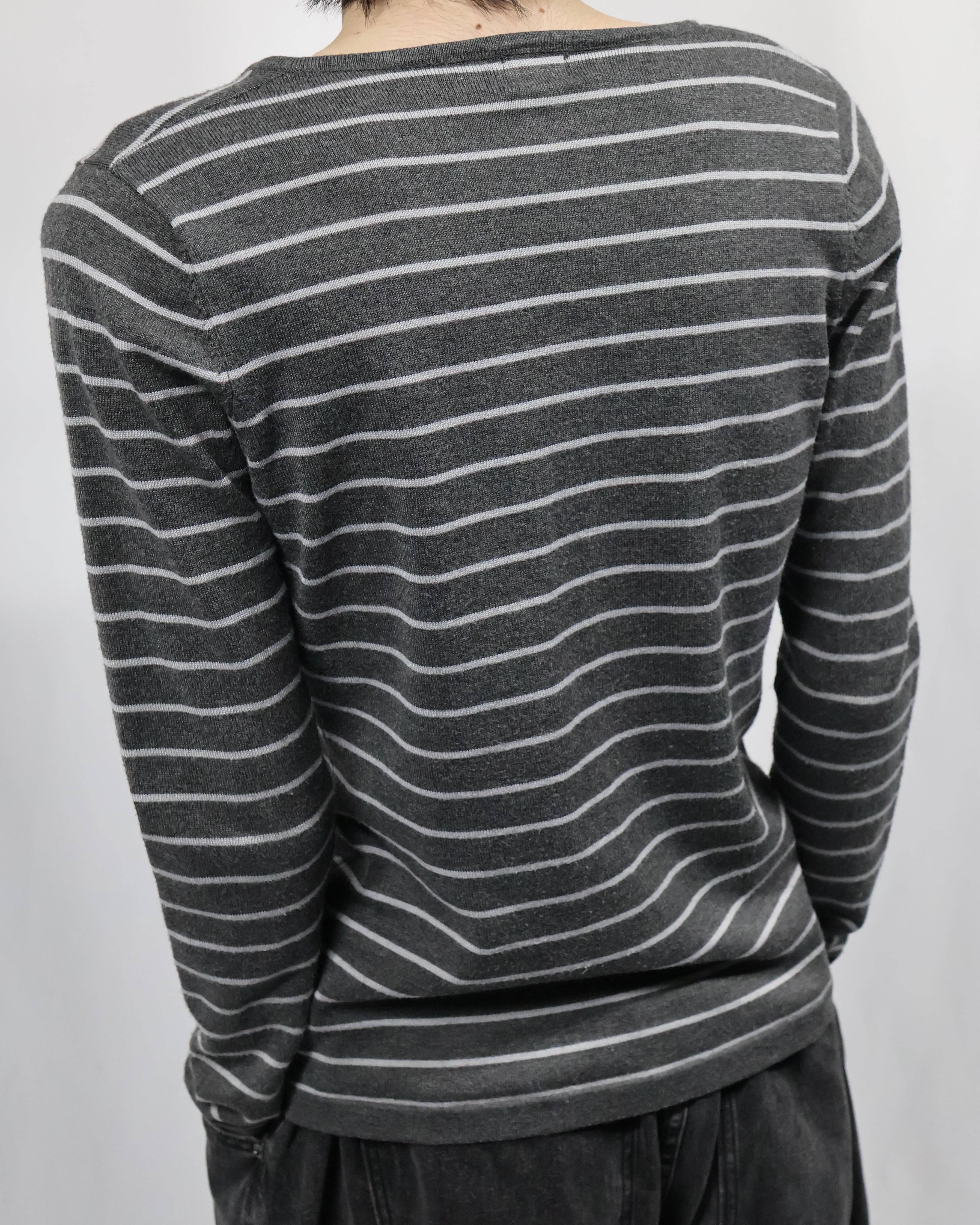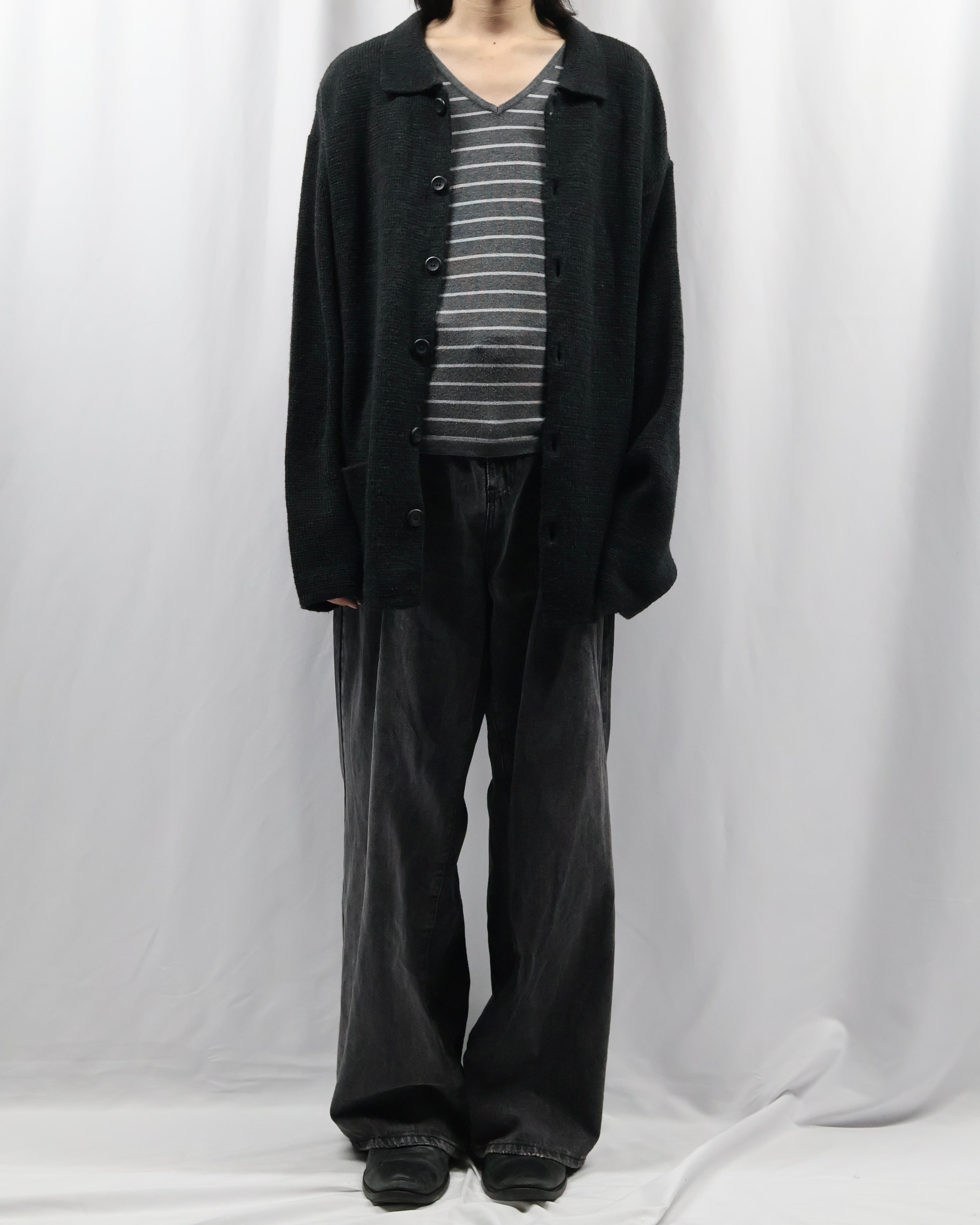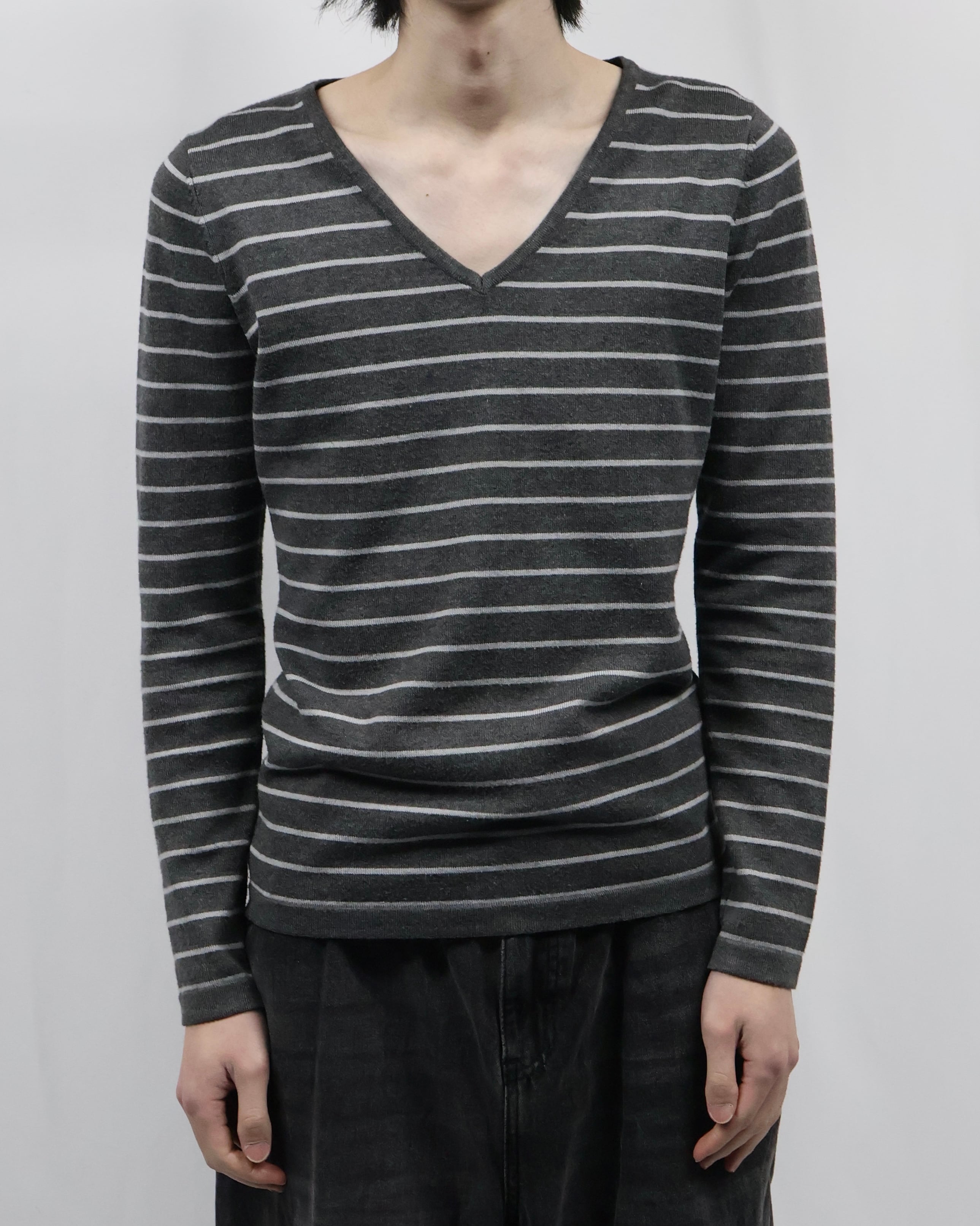 絶妙な厚みでインナーとしても一枚でサラッと着ていただいてもうまくコーディネートにはまります。Vネックで程よい抜け感もあり、冬のコーデにうまい具合に抜け感を演出してくれます。