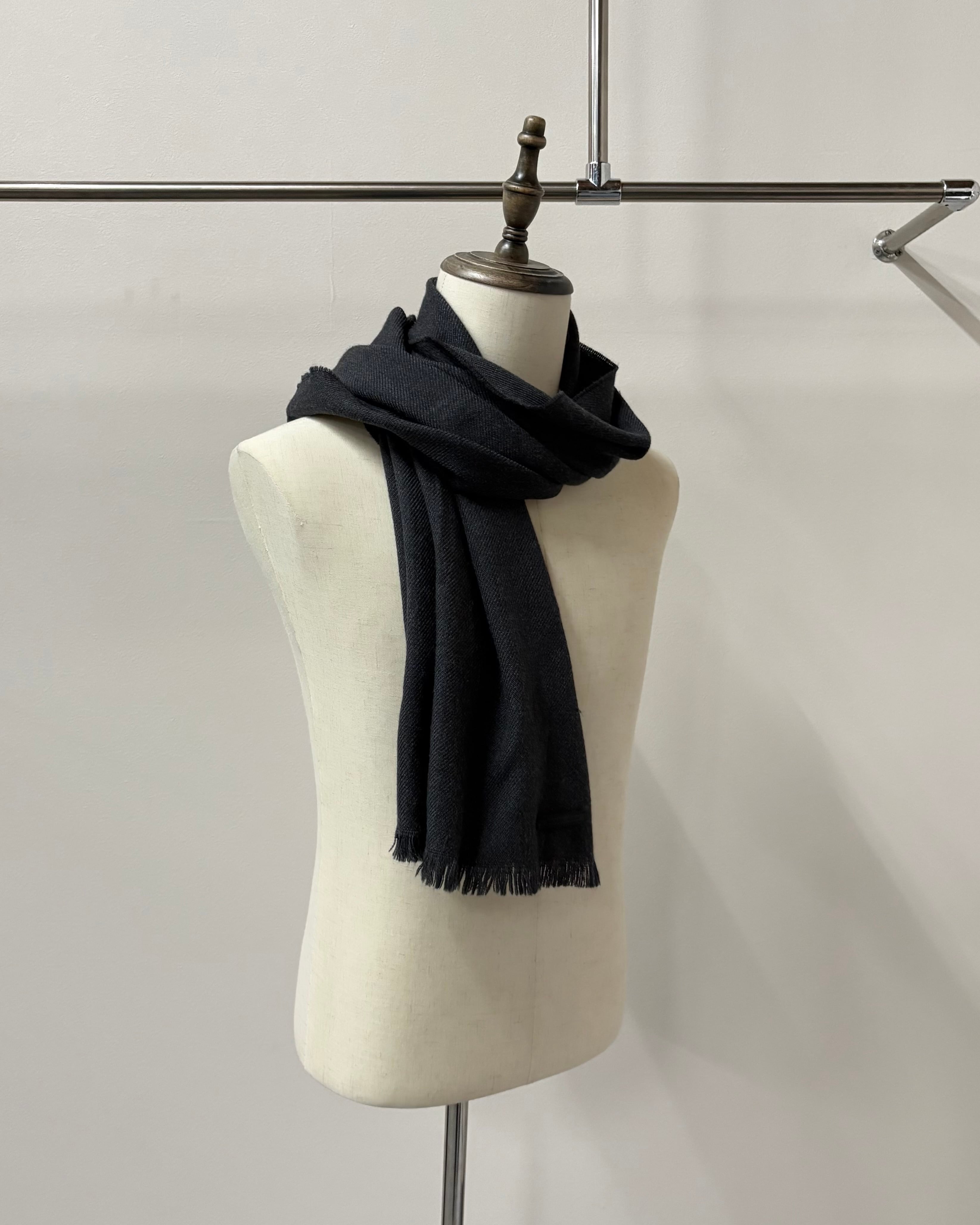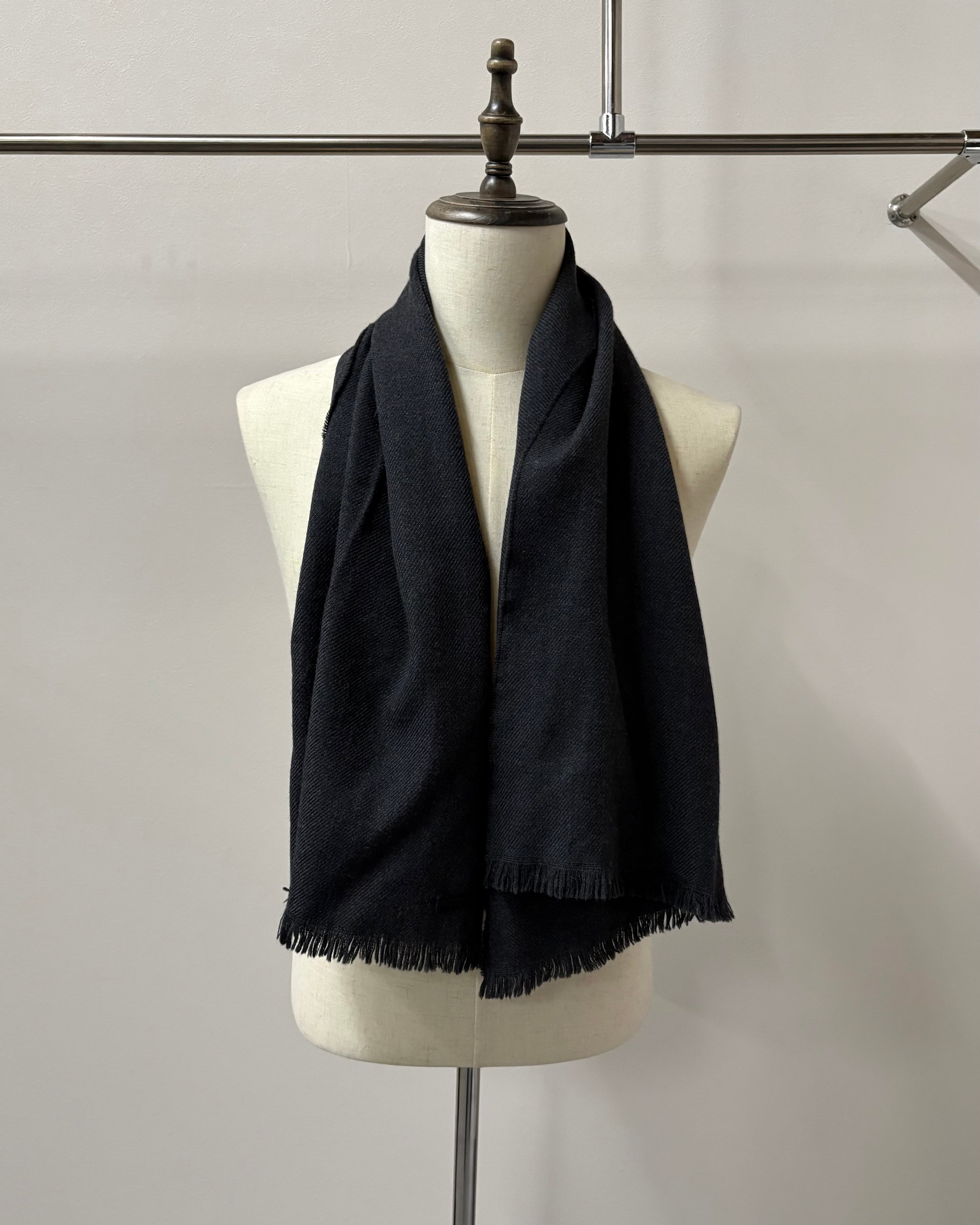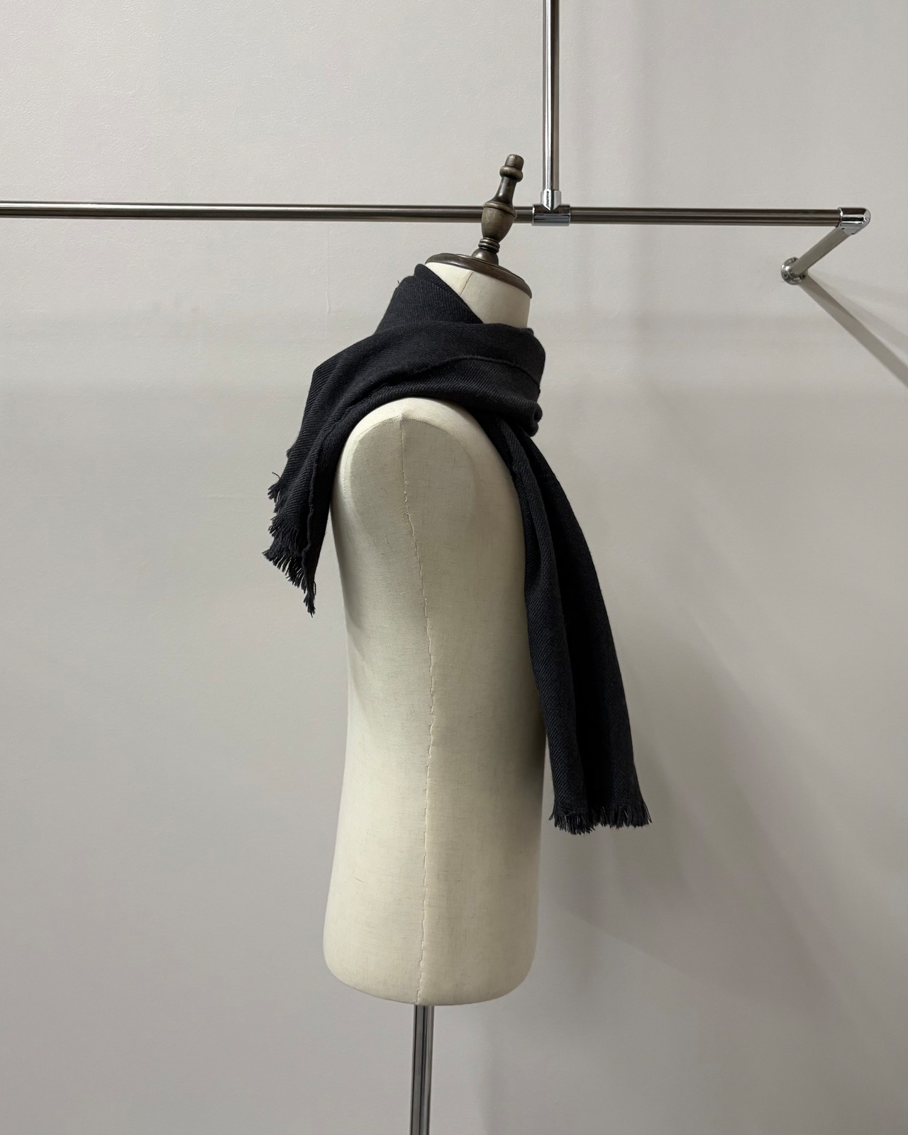 フリンジデザインにより柔らかい印象を引き出し、上質なウール素材を使用した春先の肌寒い時期まで重宝できるアイテム